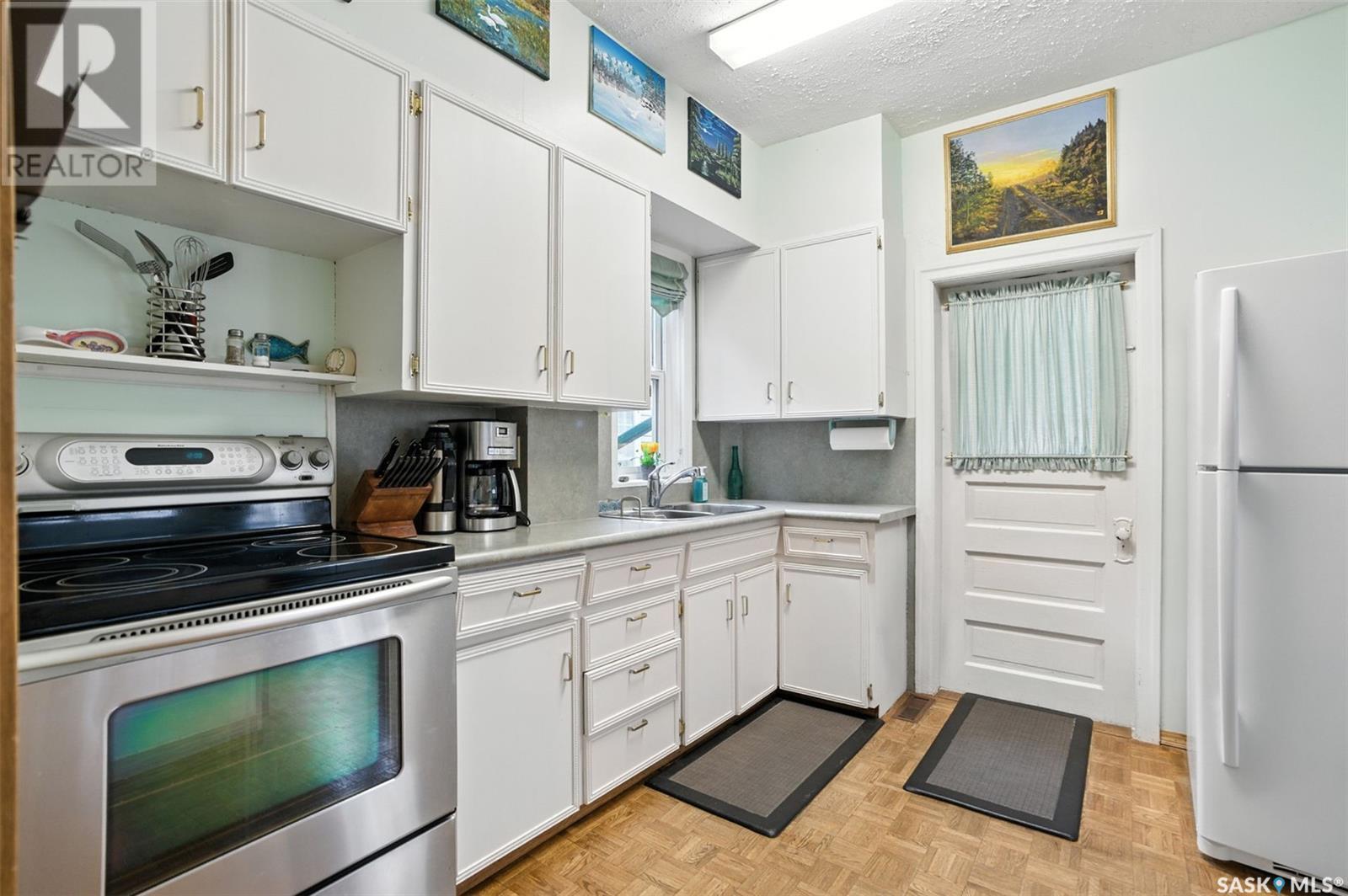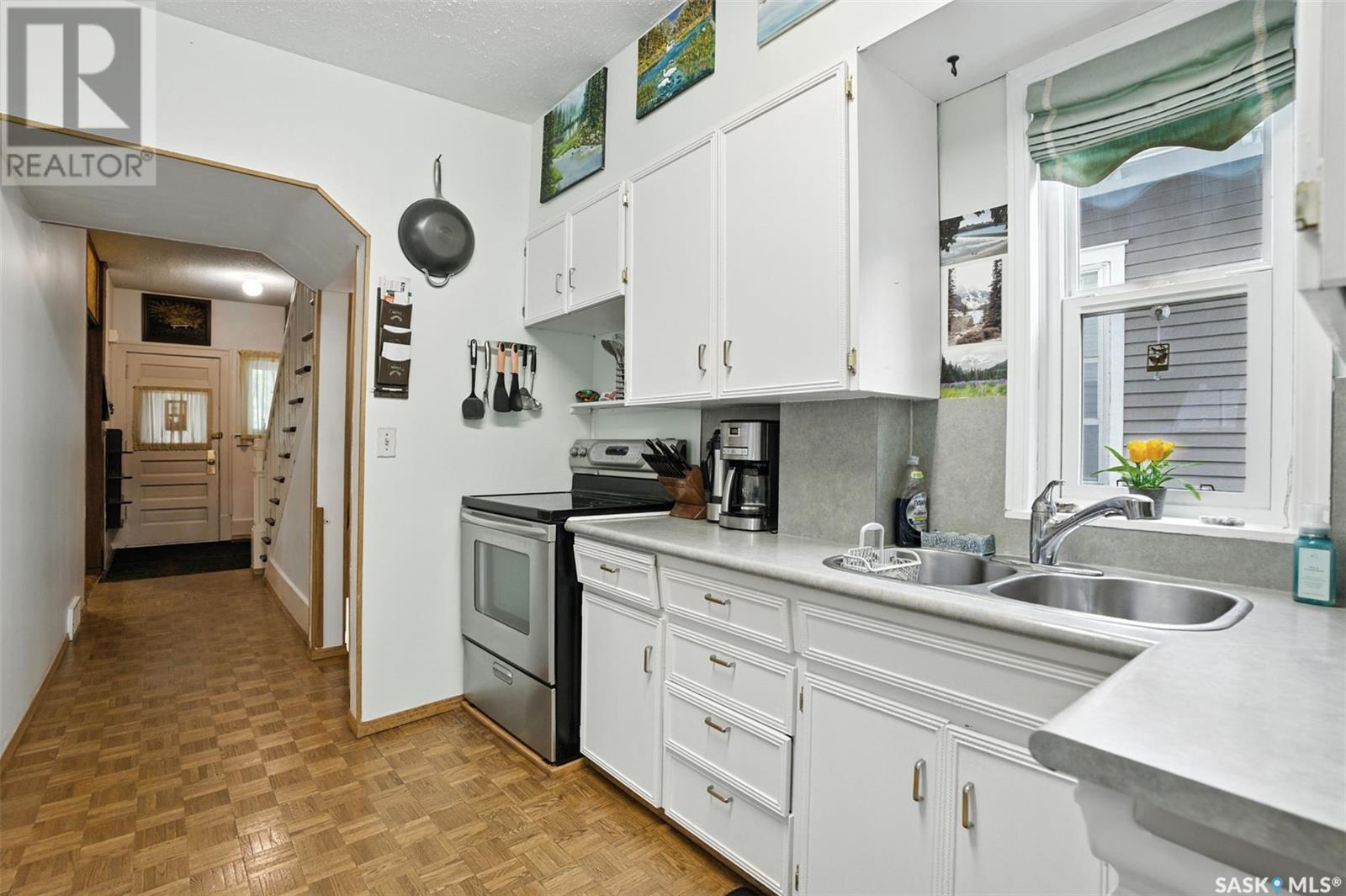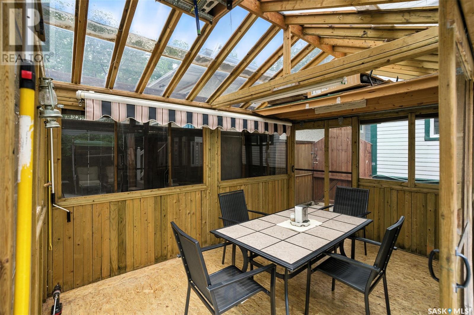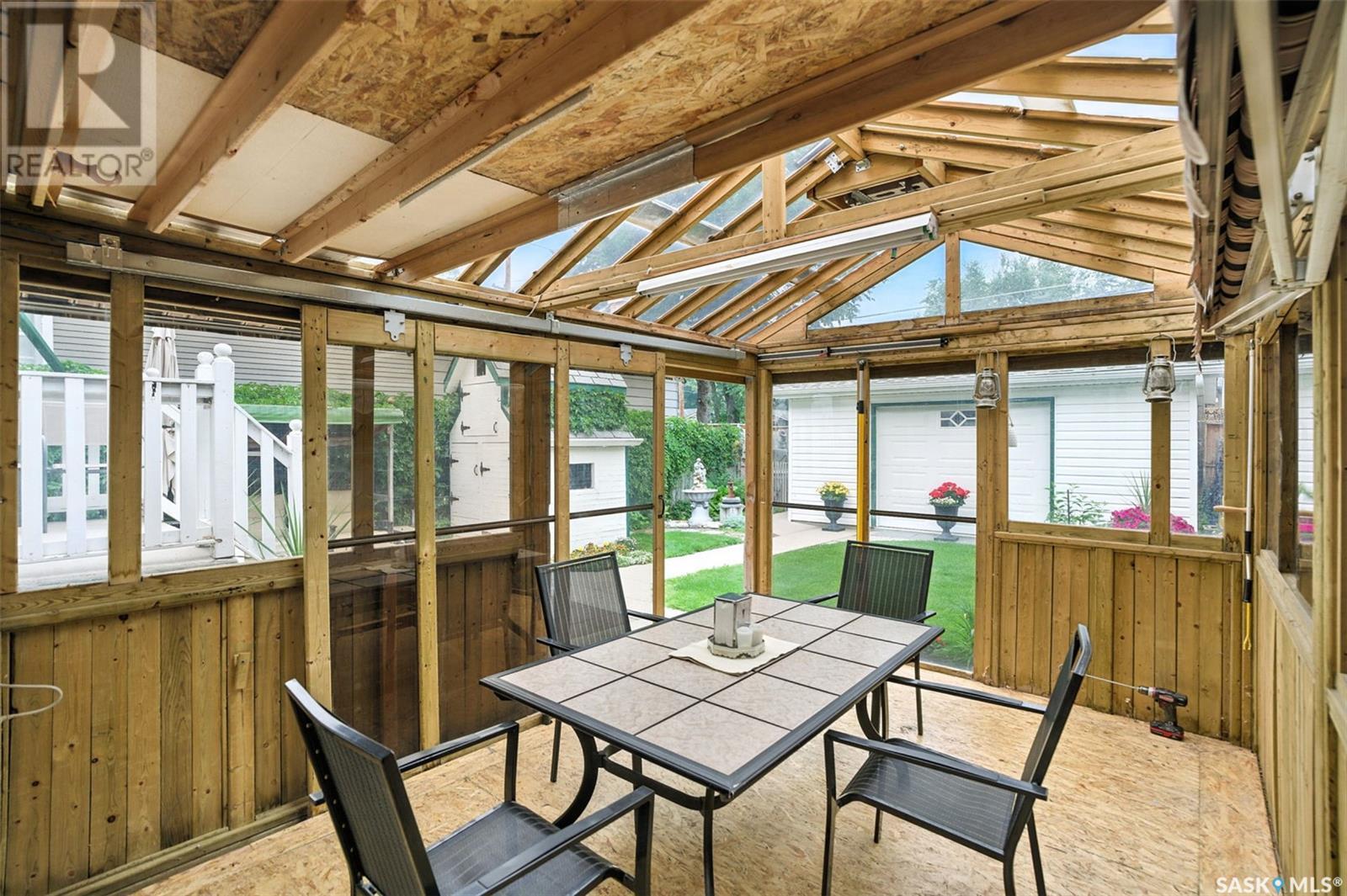 Welcome to 306 31st Street West—a truly special home that beautifully blends historic charm with thoughtful updates in one of Saskatoon’s most beloved neighbourhoods. Located just half a block from Ashworth Holmes Park and one block from Caswell Hill School, this well-maintained two-storey home is full of character and pride of ownership. Built in 1921 and offering over 1,332 sq. ft. of above-grade space, this property stands out with its inviting curb appeal, mostly updated vinyl windows, and 9-foot ceilings on the main floor, which add both space and charm. The main living areas comprise a bright and spacious living room, a formal dining room, and a warm, inviting parquet-floored kitchen. Upstairs, the primary bedroom was thoughtfully reconfigured by combining two bedrooms into one expansive retreat, while two additional bedrooms provide space for family or guests. There’s also an undeveloped full-height attic space offering the exciting potential for future development—perfect for a studio, loft, or additional living area. The basement includes a cozy family room featuring a built-in Murphy bed, an additional bedroom, a 4-piece bathroom, and a laundry area—making the lower level ideal for guests, teens, or flexible multi-use living. The outdoor space continues the home's story, featuring a fully fenced yard and a unique, repurposed grain elevator playhouse that now serves as a quirky and functional garden shed. Additionally, there is a large enclosed gazebo with awnings, perfect for entertaining. A 20' x 24' detached garage offers alley access and features an overhead door opening into the backyard—ideal for projects, storage, or hosting gatherings. From the tree-lined street to the vintage architectural details, this home is a rare find for buyers who appreciate quality craftsmanship and timeless character. Whether you're looking to settle in a family-friendly area or embrace the unique vibe of Caswell Hill, 306 31st Street W is a must-see. (id:43042)