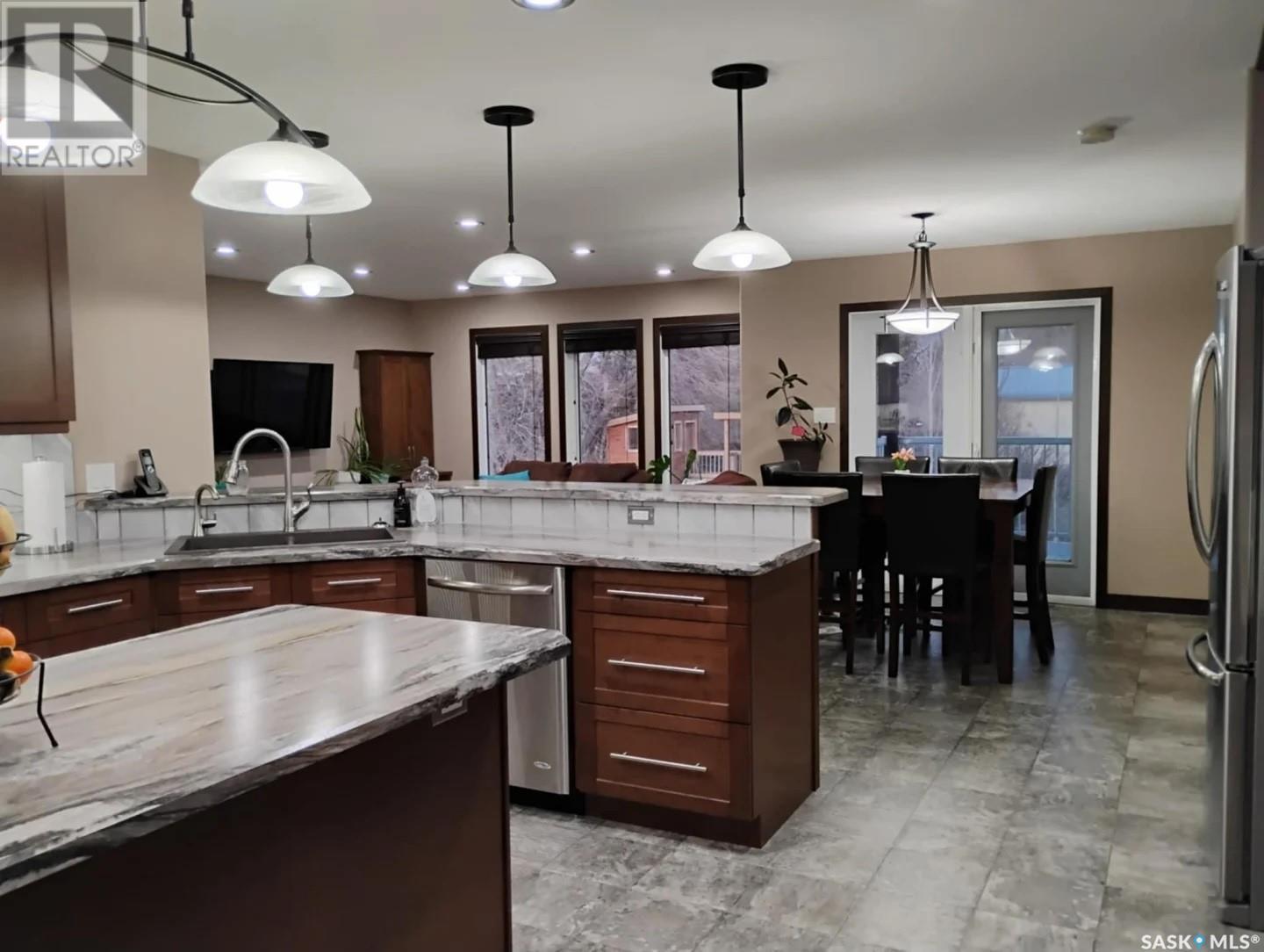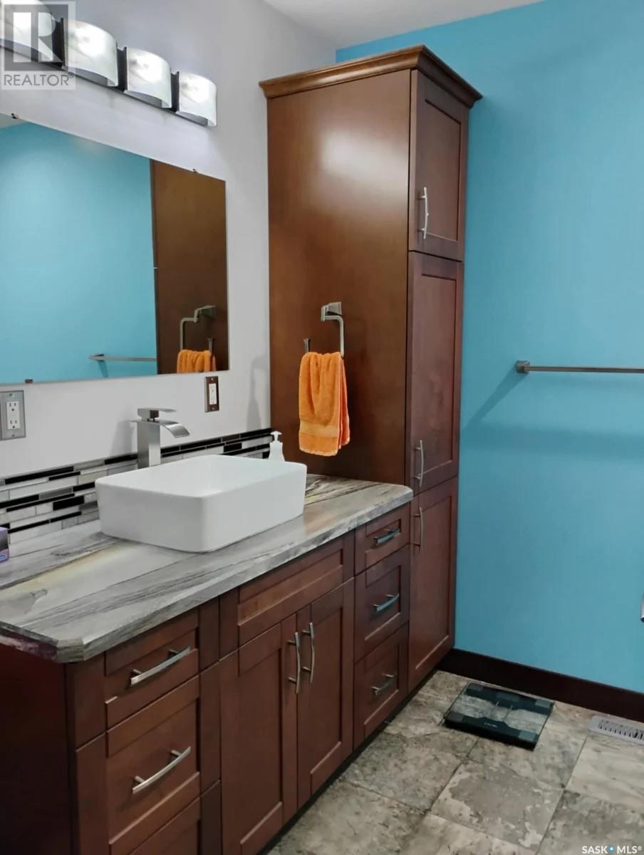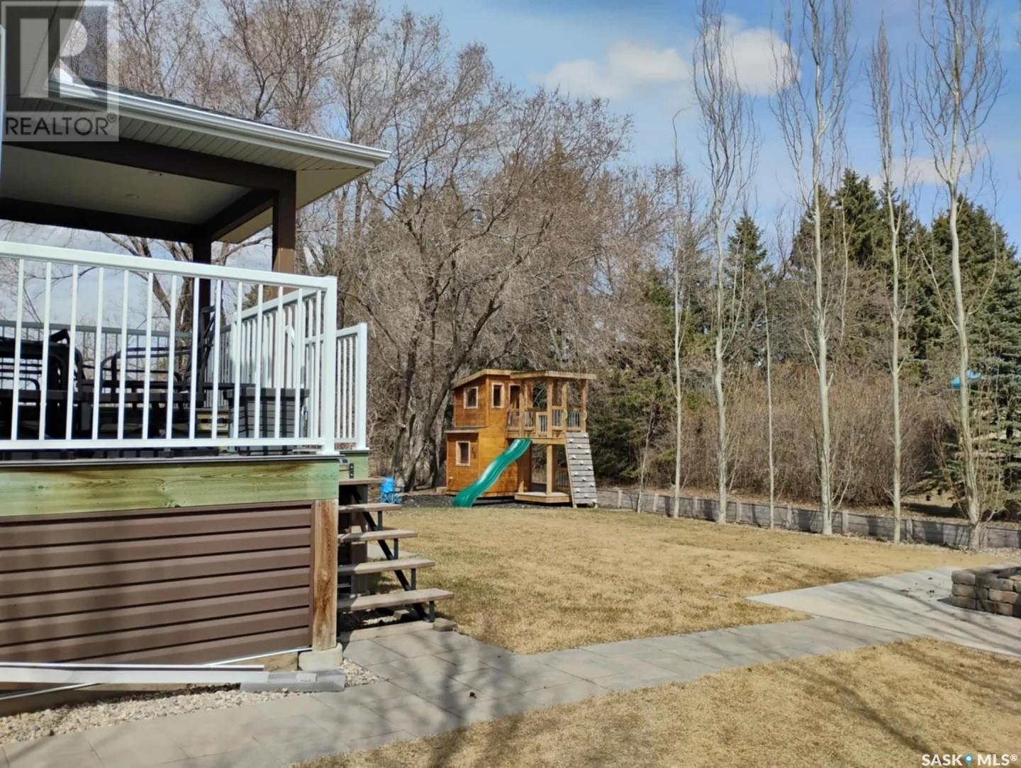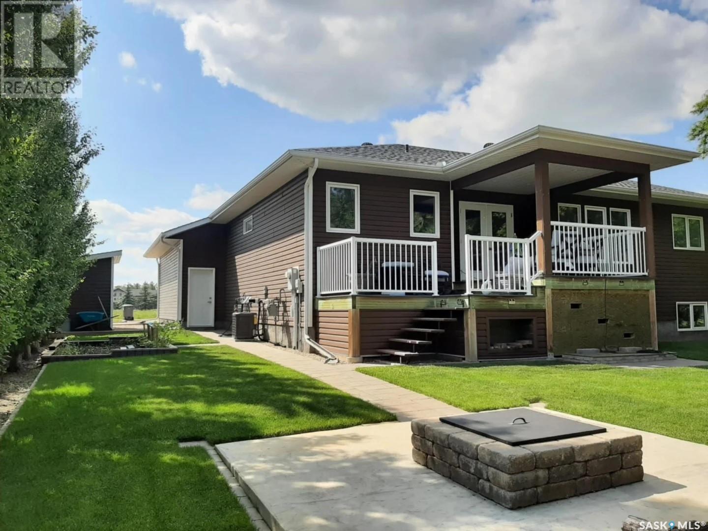 This stunning 5-bedroom, 3-bathroom bungalow, located on the outskirts of Yorkton, Saskatchewan, offers a perfect blend of modern comfort, functional space, and thoughtful design. Built in 2013 and meticulously maintained, this 1,388 sq. ft. home sits on a generous 120’ x 85’ fully landscaped lot just steps from Golf Course, the Ecological Preserve. Inside, the home features a bright, open-concept layout with custom glass railings at the front entrance, a spacious living area with custom cabinetry, a kitchen equipped with stainless steel appliances, a roomy pantry and beautiful finishes throughout. The walk-through closet off the primary bedroom is outfitted with custom cabinets, adding to the home’s upscale feel. The fully finished basement includes a recently completed bathroom, cozy electric fireplace, a home theatre room, and ample space for entertaining or relaxing. This home also includes a spacious laundry room complete with front-loading washer and dryer for added convenience. Comfort is a priority, with a high-efficiency gas furnace, tankless water heater, water softener, reverse osmosis system, and a brand-new air conditioner installed in 2024. Step outside and enjoy the beautifully landscaped backyard featuring an underground irrigation system (front and back), a two-tiered half-covered deck perfect for entertaining, a fire pit, a custom children’s playhouse with slide, a garden shed, and a small vegetable garden surrounded by mature Poplar and Aspen trees. The deck is also equipped with a gas hook-up for a BBQ, making outdoor grilling effortless. The heated double attached garage offers plenty of storage and functionality for year-round use. The neighborhood is ideal for families and outdoor enthusiasts alike, offering easy access to walking trails, nature preserves, and recreational facilities. With every detail thoughtfully designed and cared for, this home is truly move-in ready and perfect for your next chapter. (id:43042)