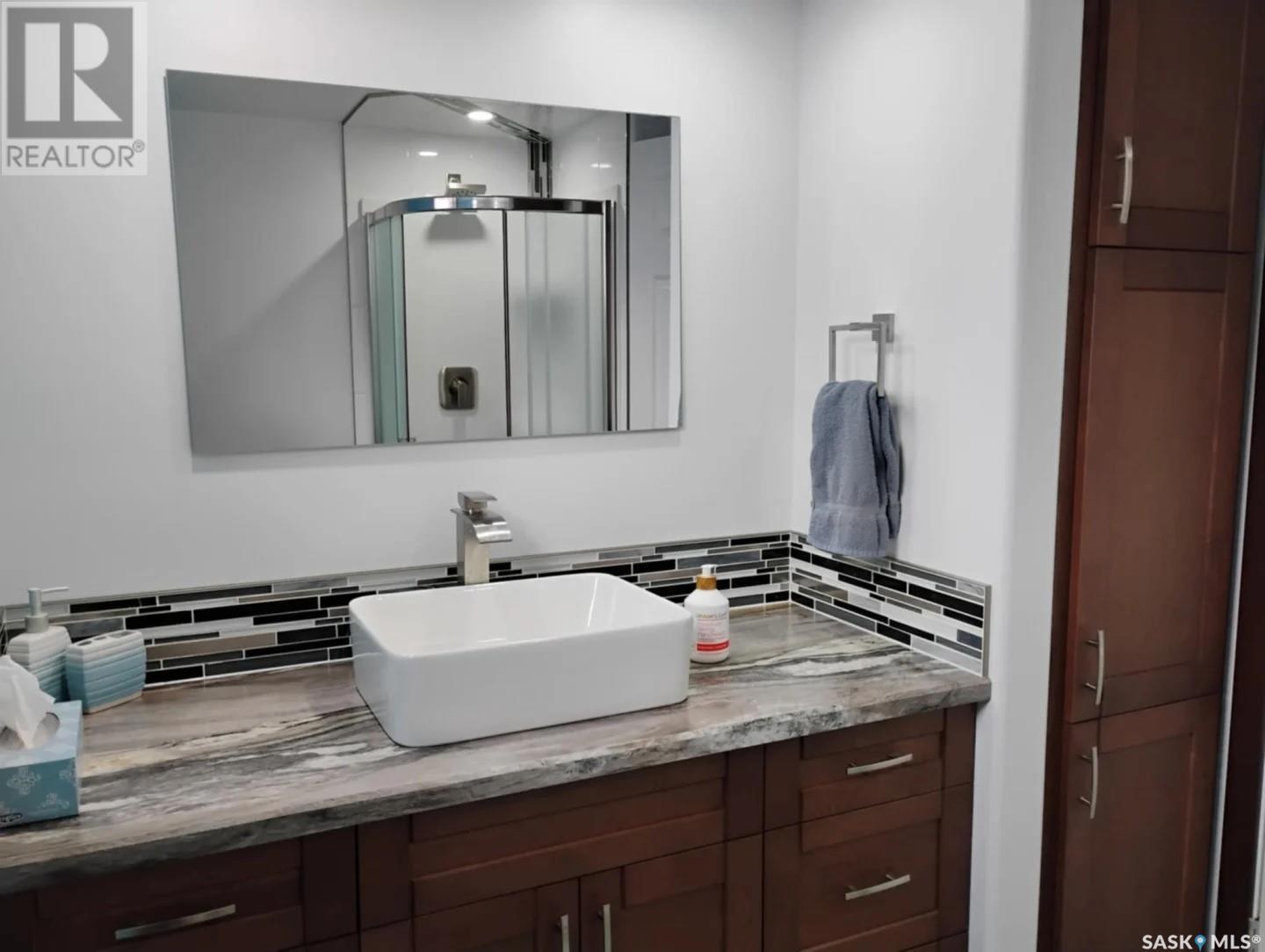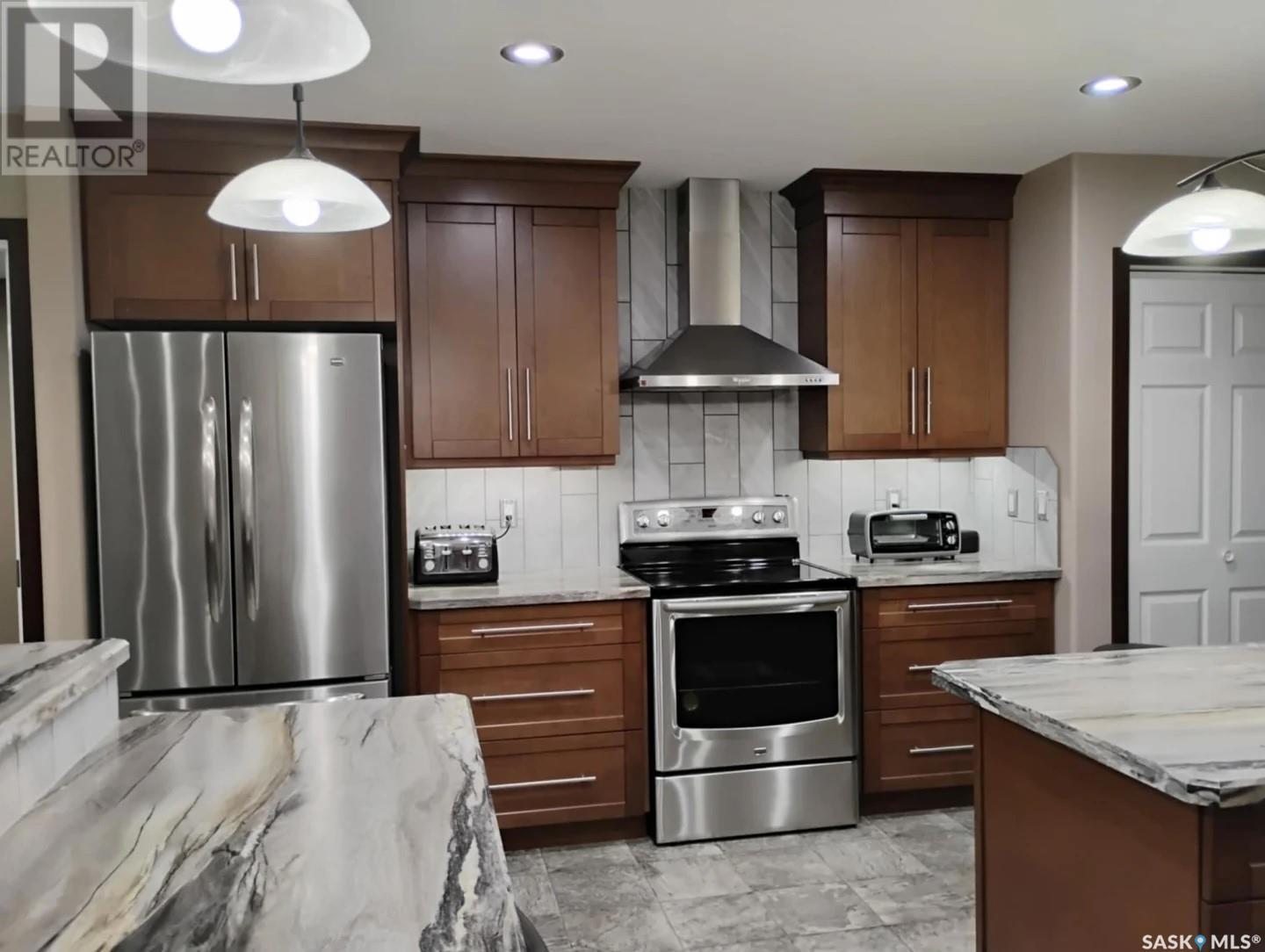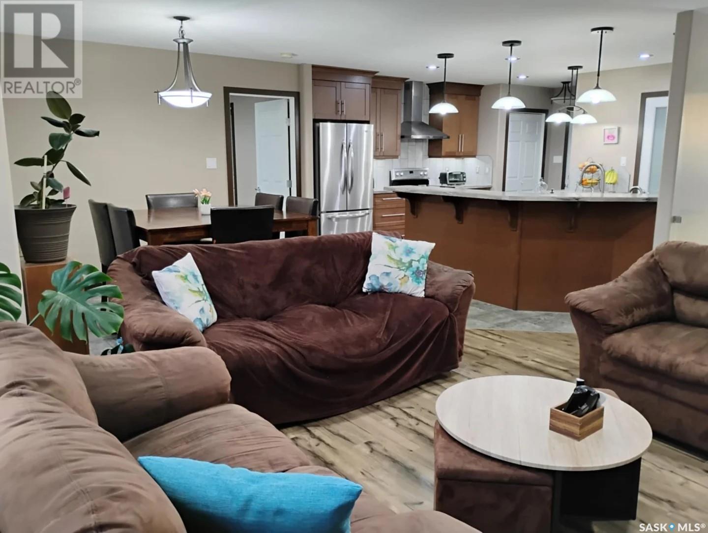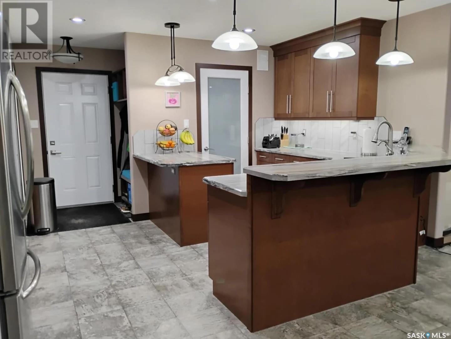 This stunning 5-bedroom, 3-bathroom bungalow, located on the outskirts of Yorkton, Saskatchewan, offers a perfect blend of modern comfort, functional space, and thoughtful design. Built in 2013 and meticulously maintained, this 1,388 sq. ft. home sits on a generous 120’ x 85’ fully landscaped lot just steps from Golf Course, the Ecological Preserve. Inside, the home features a bright, open-concept layout with custom glass railings at the front entrance, a spacious living area with custom cabinetry, a kitchen equipped with stainless steel appliances, a roomy pantry and beautiful finishes throughout. The walk-through closet off the primary bedroom is outfitted with custom cabinets, adding to the home’s upscale feel. The fully finished basement includes a recently completed bathroom, cozy electric fireplace, a home theatre room, and ample space for entertaining or relaxing. This home also includes a spacious laundry room complete with front-loading washer and dryer for added convenience. Comfort is a priority, with a high-efficiency gas furnace, tankless water heater, water softener, reverse osmosis system, and a brand-new air conditioner installed in 2024. Step outside and enjoy the beautifully landscaped backyard featuring an underground irrigation system (front and back), a two-tiered half-covered deck perfect for entertaining, a fire pit, a custom children’s playhouse with slide, a garden shed, and a small vegetable garden surrounded by mature Poplar and Aspen trees. The deck is also equipped with a gas hook-up for a BBQ, making outdoor grilling effortless. The heated double attached garage offers plenty of storage and functionality for year-round use. The neighborhood is ideal for families and outdoor enthusiasts alike, offering easy access to walking trails, nature preserves, and recreational facilities. With every detail thoughtfully designed and cared for, this home is truly move-in ready and perfect for your next chapter. (id:43042)