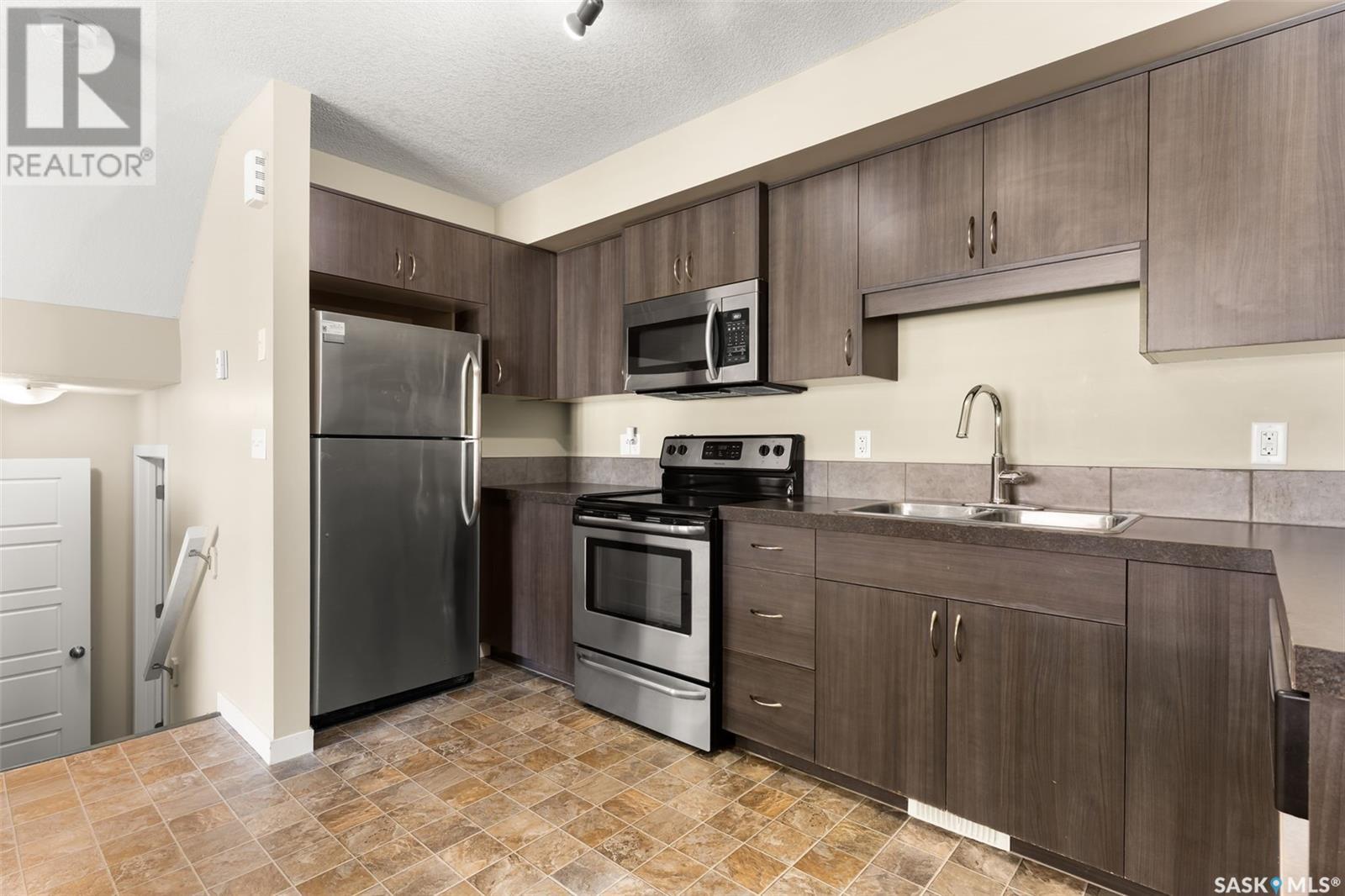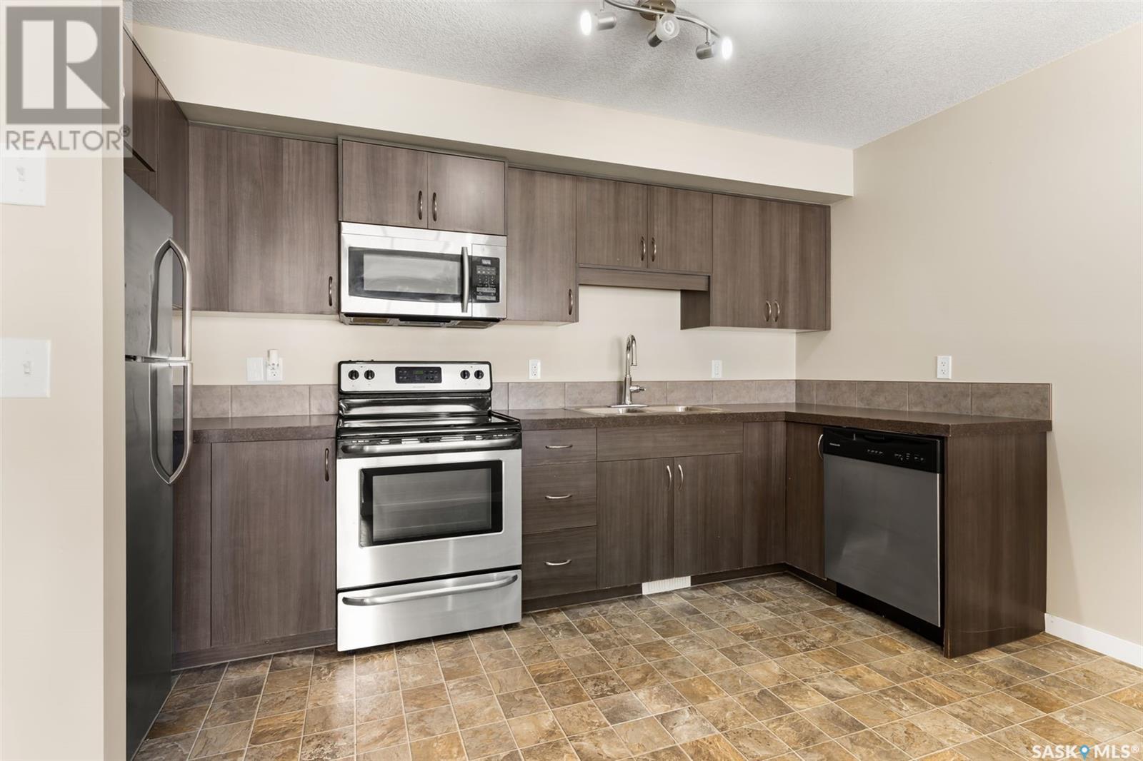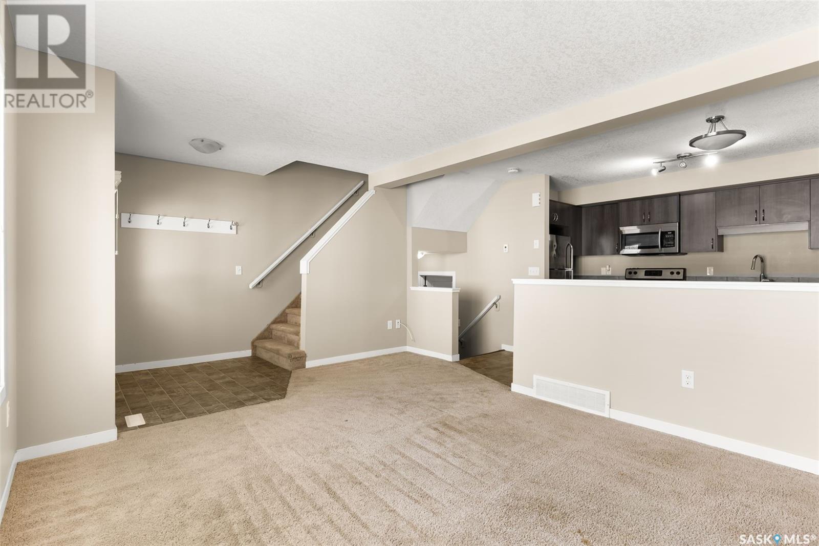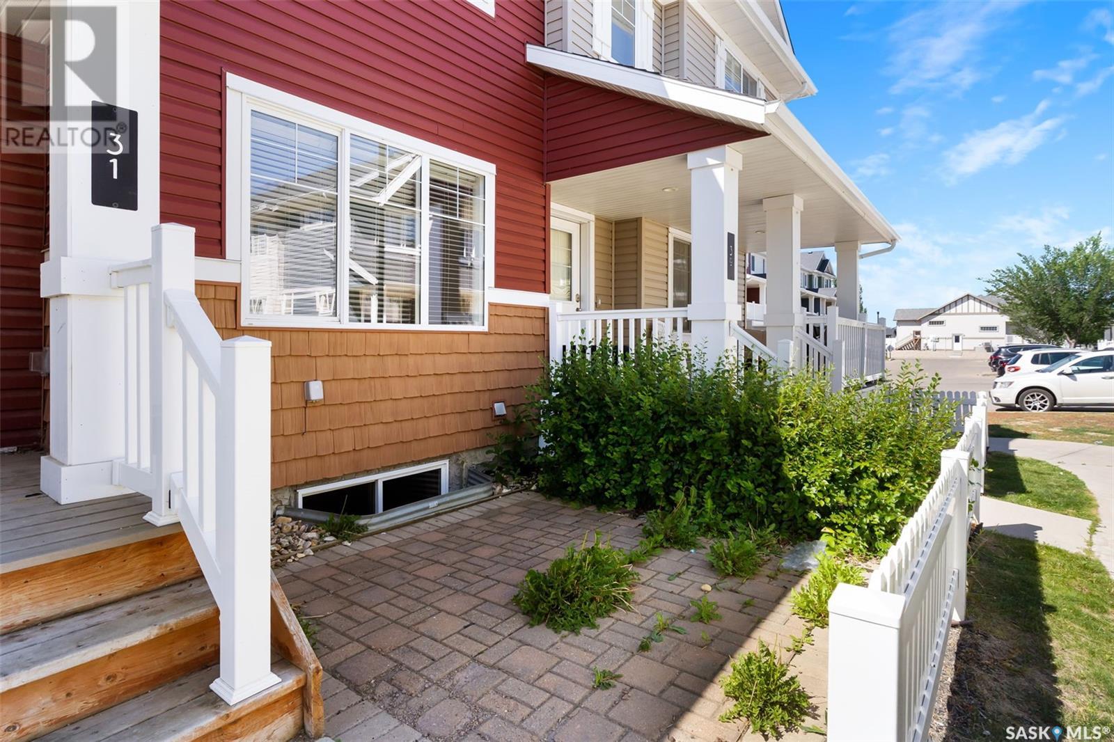 $256 MonthlyWelcome to #31 - 5282 Aerodrome Road in Harbour Landing. This 2 storey townhouse condo has a prime location adjacent to parks, walking paths, the joint Catholic/Public elementary school, all Harbour Landing shopping & amenities. The main floor offers open concept living with a generous living room, a kitchen and dining area. The kitchen offers modern dark cabinets and stainless steel apliances that include a Built-in Dishwasher, Built-in Microwave Hood Fan Combo, Fridge and Stove. The convenient 2 piece powder room and access to the unfinished basement completes the main level. The upstairs offers a laundry room, 2 bedrooms and a full bathroom. The primary bedroom features a walk in closet and direct private entry into the bathroom. The laundry room has a stacked washer/dryer combo unit which saves space providing more storage options. The basement offers loads of options, tons of storage space & the potential to finish into future living space. It houses the utility area with high-eff furnace and on-demand boiler as well as roughed-in plumbing for a future bathroom. The private outside patio area offers a charming spot to relax, to set up a barbecue, or to visit with friends. Parking space #100 is included with this unit. All appliances are included. Quick possession is available. (id:43042)