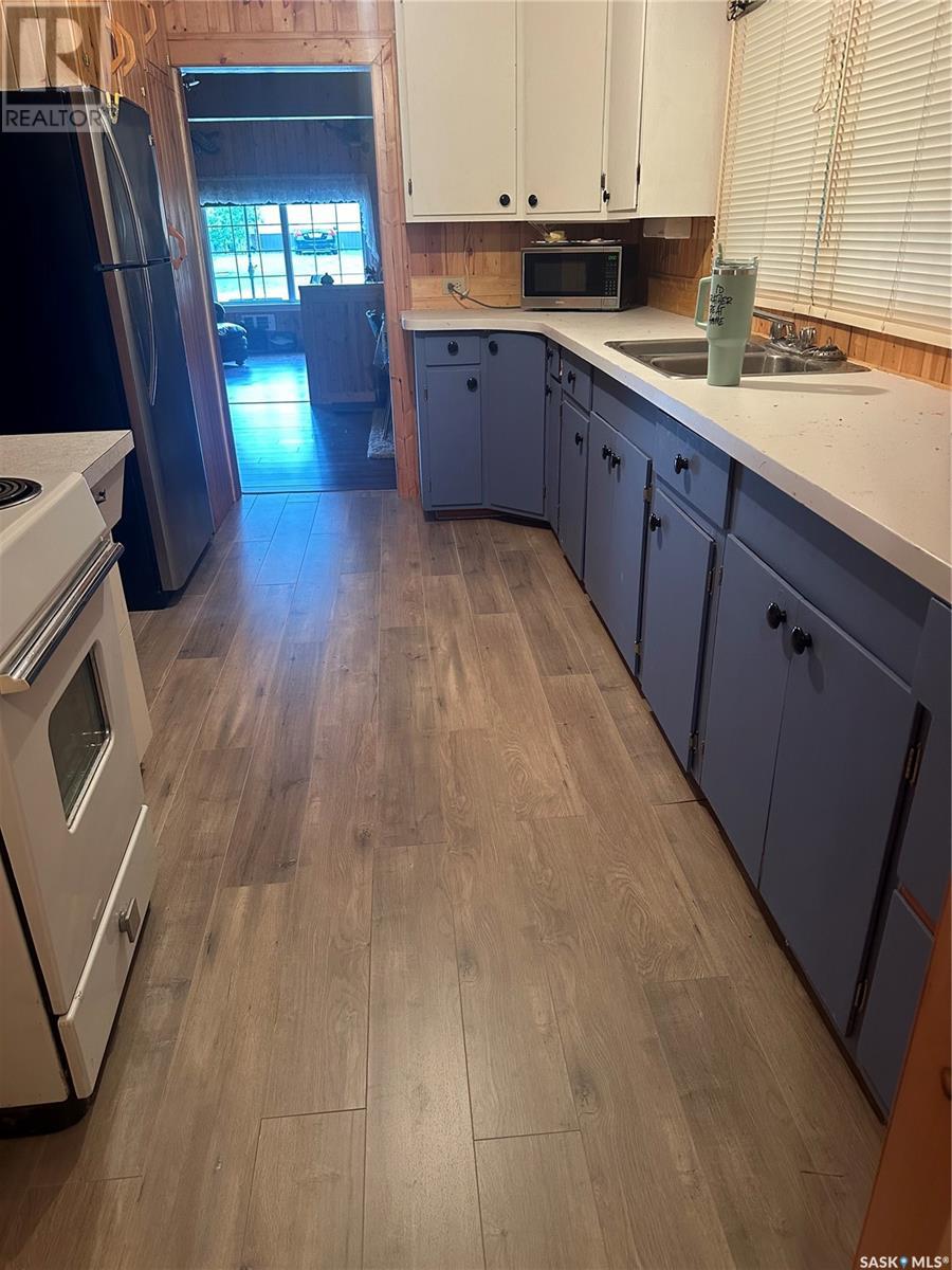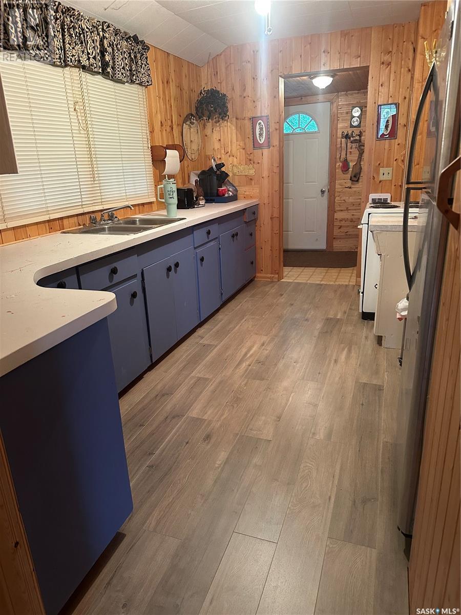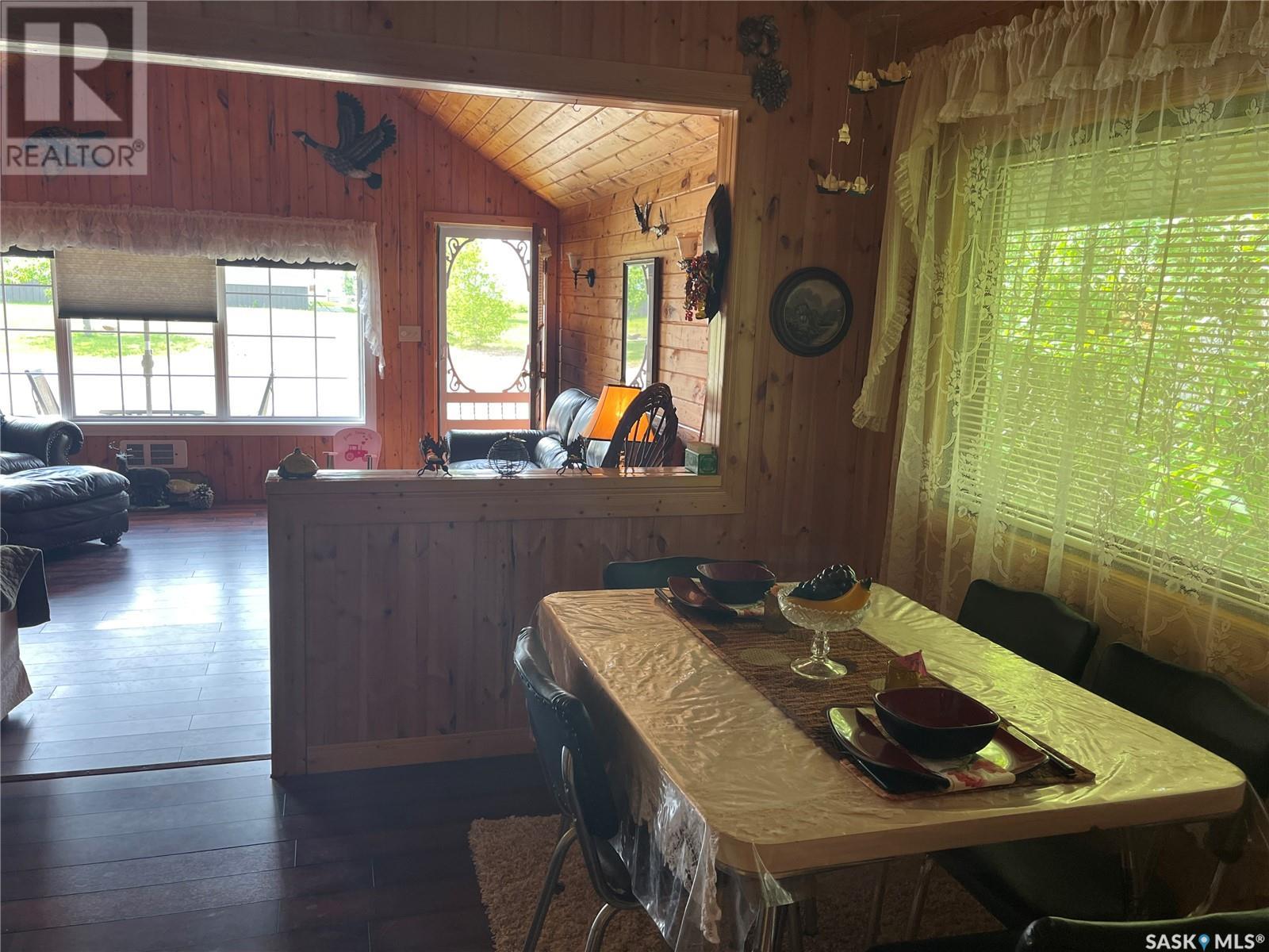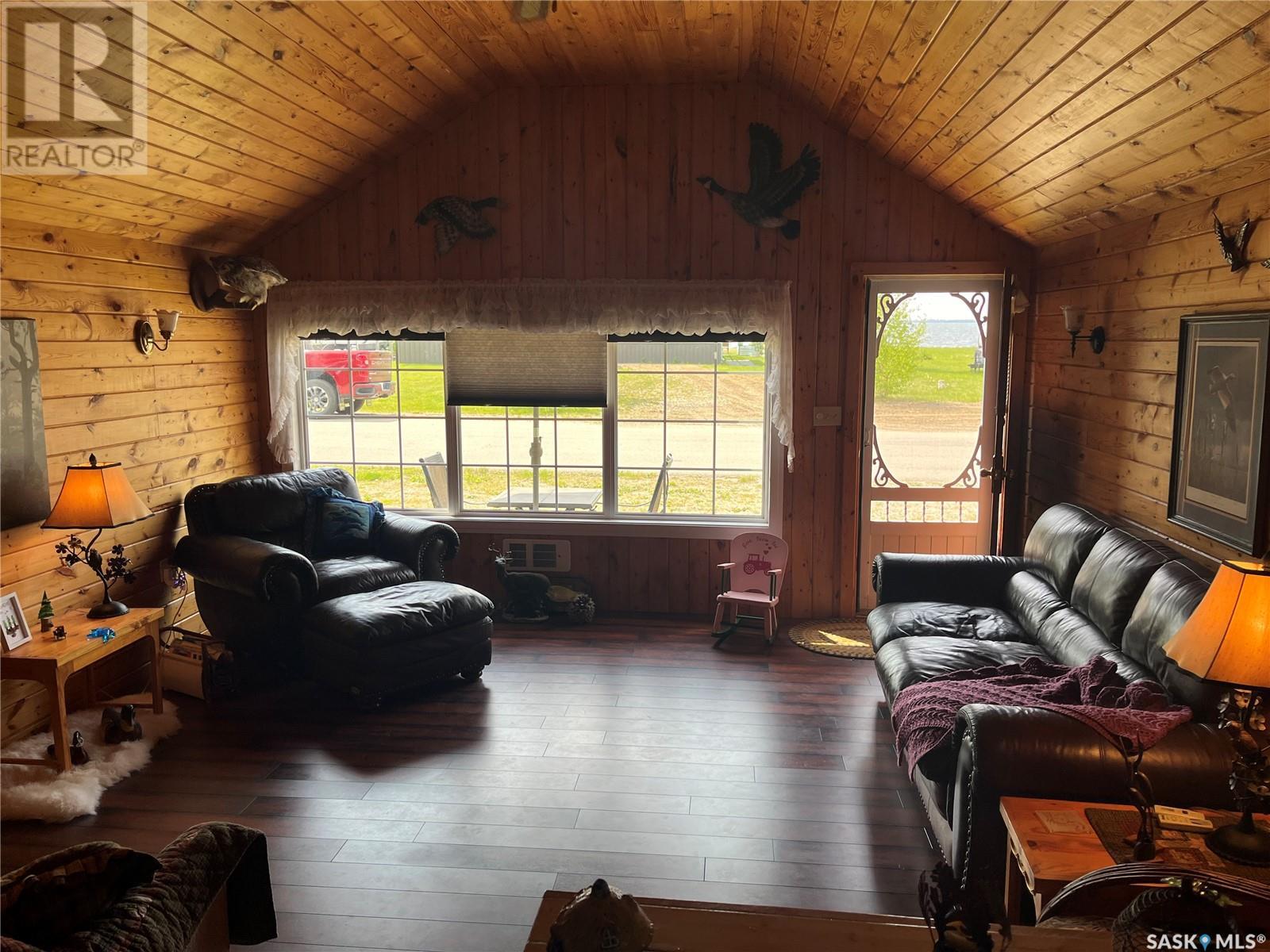 This 2 bedroom bungalow has a a great cabin look with a front deck with great evening views of the sunset. The cabin has a nice large living room with tongue and groove wood walls. The galley style kitchen leads to the two bedrooms, bathroom, and porch to back. The yard is kept like a park with stone walkways leading to firepit area, shed, wood shed, and side yard and plenty of parking including space for RV(s). Most windows have been updated, and the property has its own well. North Shore Fishing Lake offers a nice community with some updates to the recreational area, park and more. In the last 5 years, new features include a ball diamond, beach volleyball, social area with stage, pickleball court, basketball court and the canteen has been open in summer months. Fishing Lake offers plenty of water sports, excellent fishign a large lake, golf, community halls, and more. (id:43042)