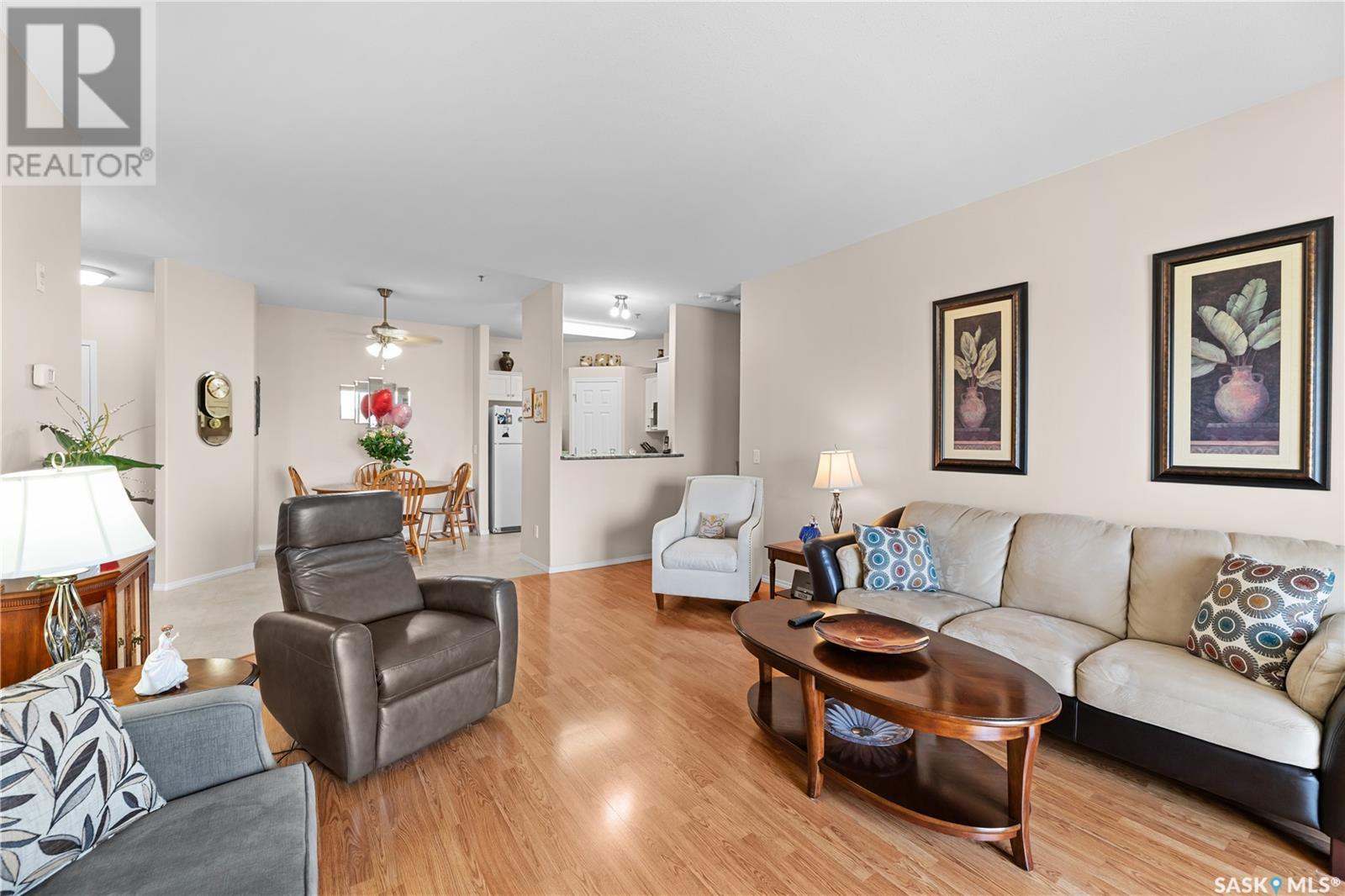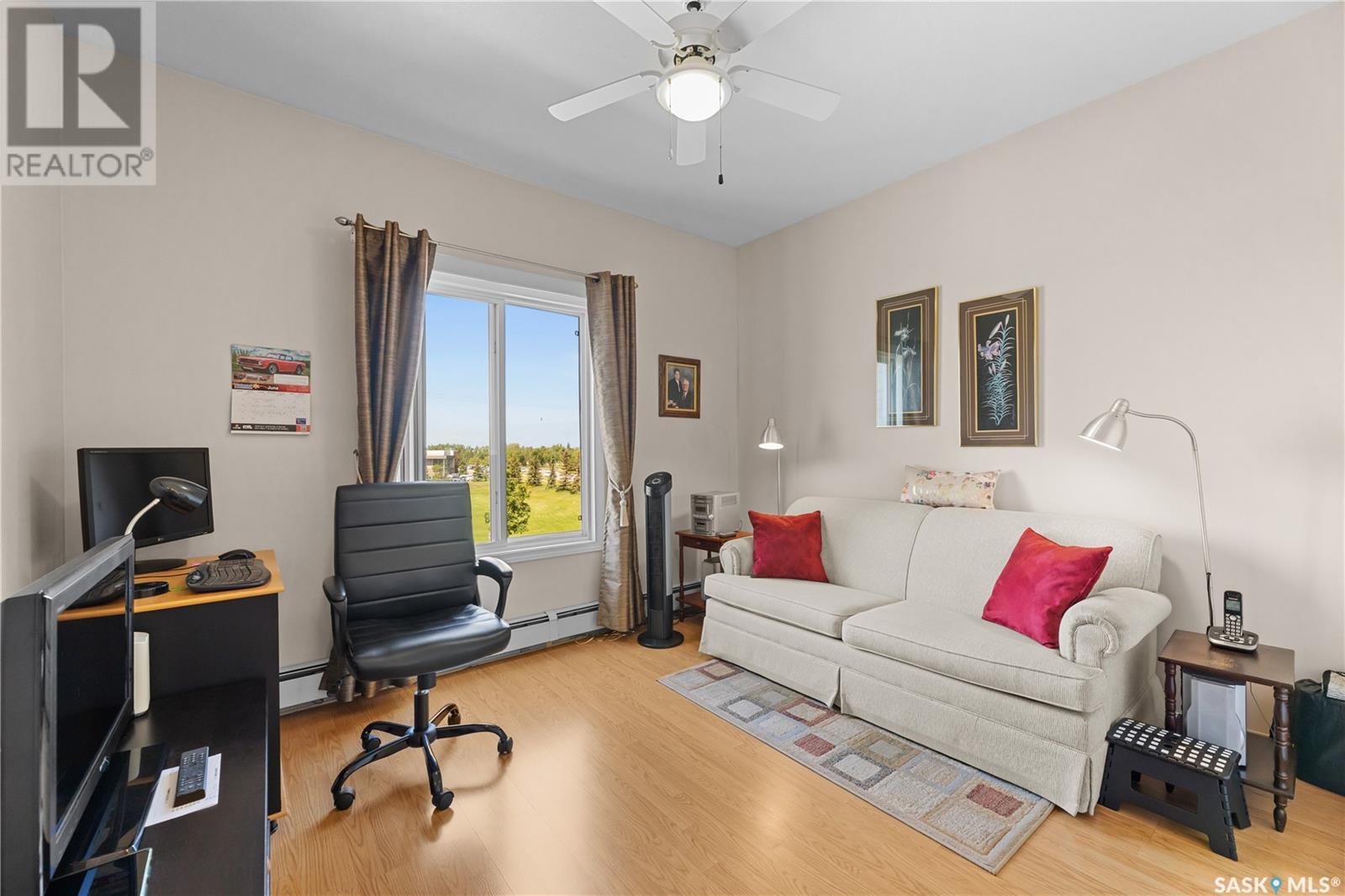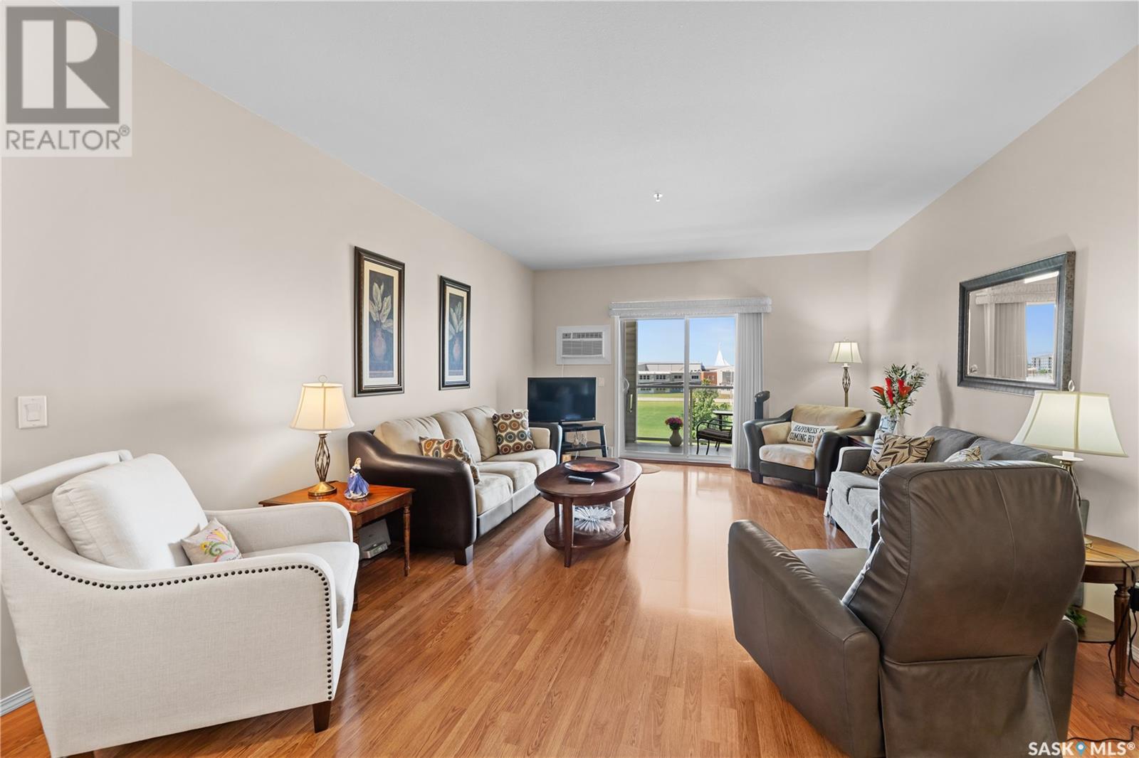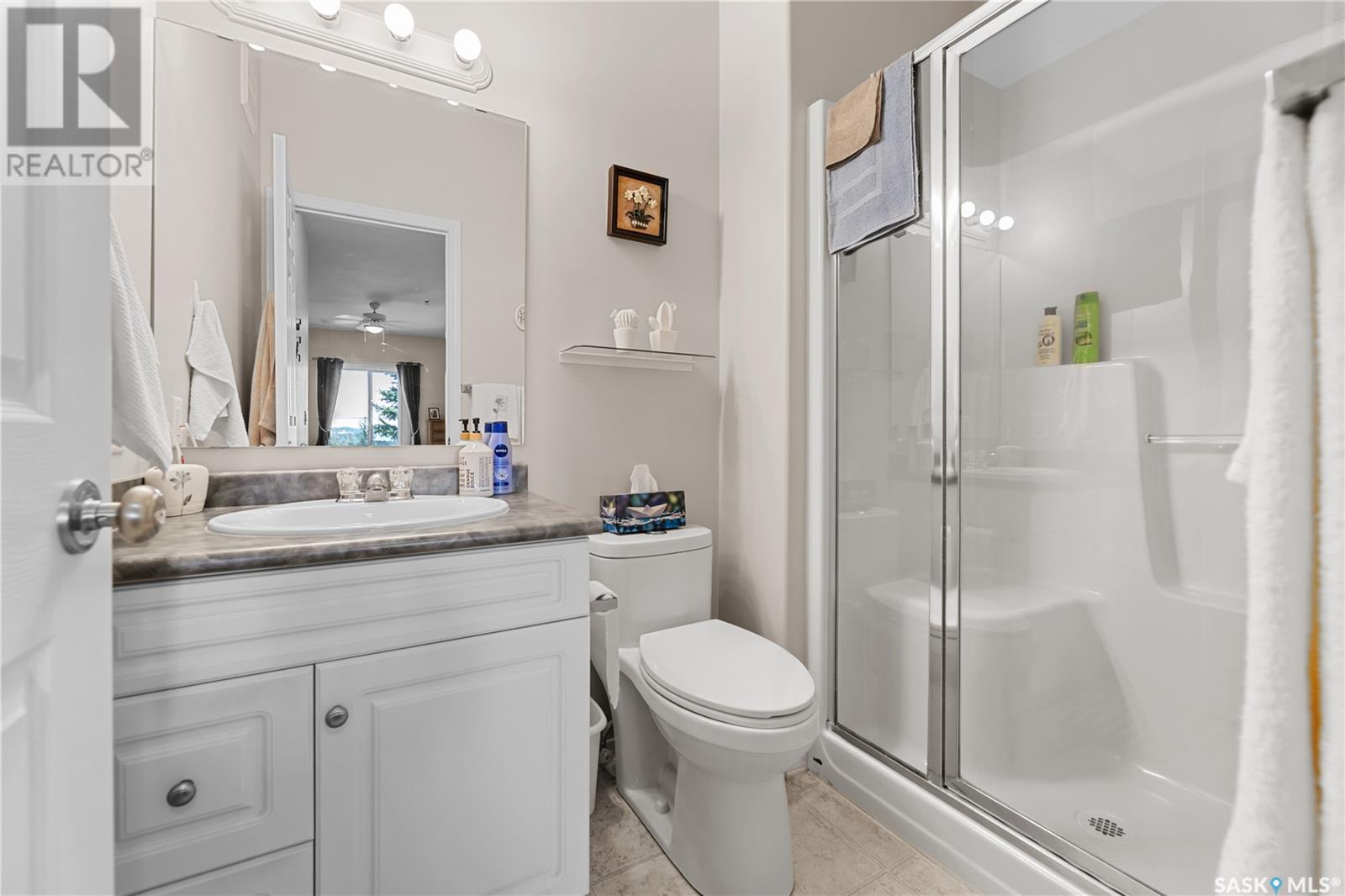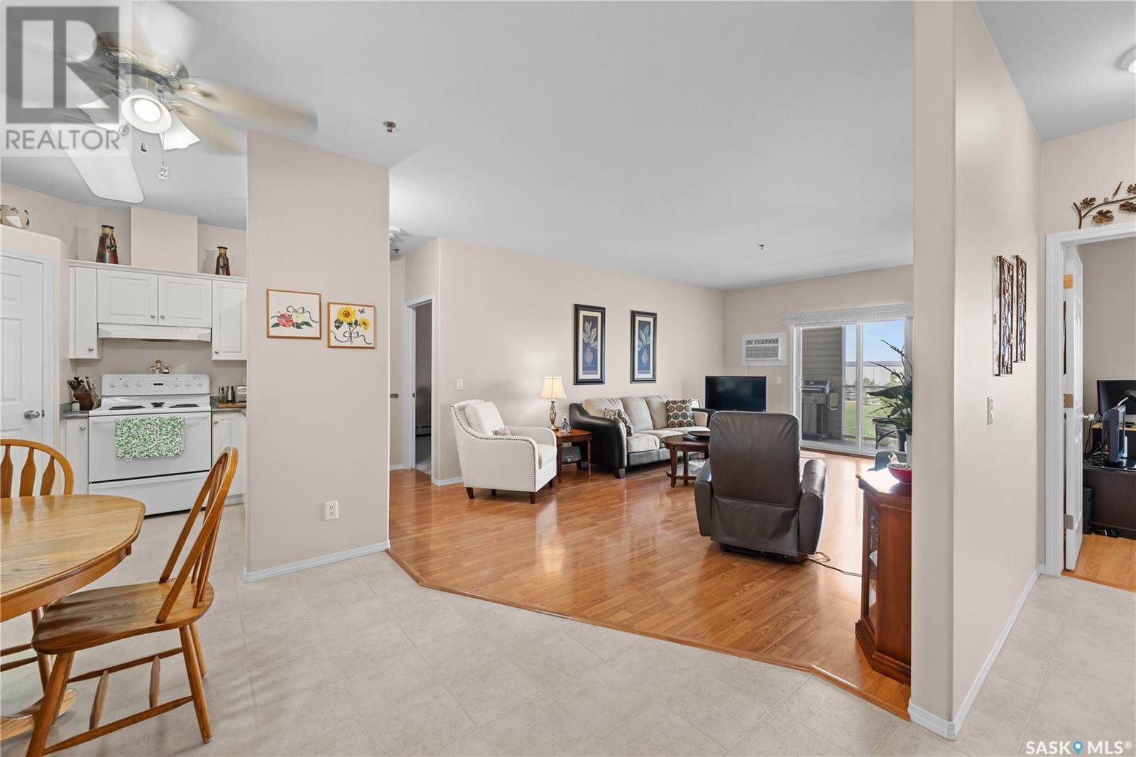 $525 MonthlySuperb 3rd floor sout-west facing corner unit overlooking Saskatoon Soccer centre and Forestry Farm. This bright unit features a white heritage kitchen, dining area, large living room overlooking park, main bathroom, massive primary bedroom with full ensuite bathroom, another bedroom, as well as a laundry/storage room. Other features include a private balcony with storage area, air conditioning, access to amenities room, elevator, and room to to park 2 vehicles in either the included garage stall or the electrified surface parking stall. Don't miss out on this great opportunity. (id:43042)