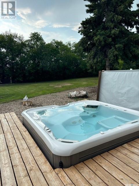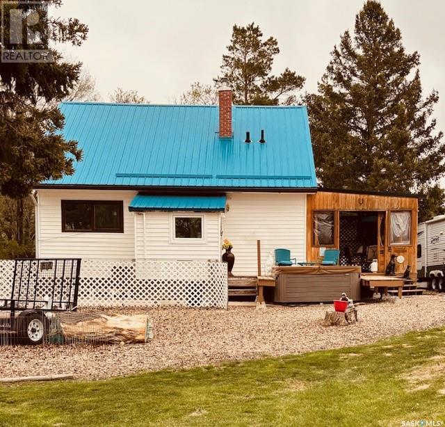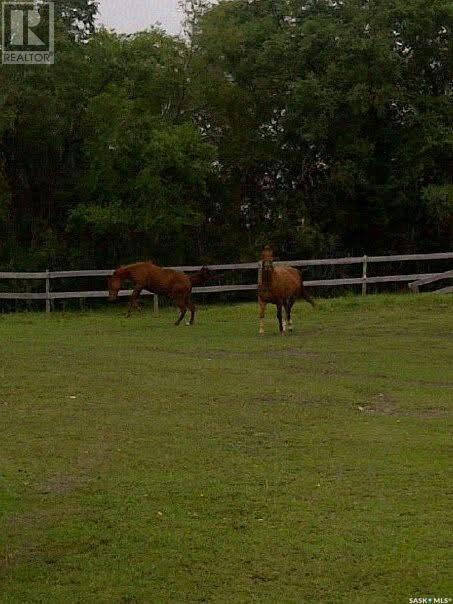 Charming Lewis Acreage – 9.5 Acres of Private Country Living with Town Amenities. The home is set up with hard wired high speed Internet and town RO water to be installed late 2025 and for those that want extra comforts of the Big City. Welcome to 312 Golling St. in Lemberg — a peaceful community blending rural charm with modern convenience. This 9.5-acre property on the edge of town includes full town services like water and sewer — a rare find! it offers trees, marsh, and wildlife in your backyard. Town bylaws allow up to two horses on the property. Built-in 1957, this cozy 1.5-story home features a south-facing covered deck (partially screened) for relaxing sunset and stargazing views. Inside, the kitchen and dining area provide ample cabinets and a pantry. The east-facing living room offers a comfortable spot to unwind. The main floor includes a bedroom and a 4-piece bath with a soaker tub. A small back entry leads to the deck. Upstairs are two bedrooms, including a spacious master. The partially finished basement includes a fourth bedroom, a small den, a bonus room, and laundry. Updates include a 100-amp electrical panel (2007), a new tub, toilet, and tile (2012), central air (2009), and a water heater (2017). New flooring runs through the main and second floors. The 22' x 24' garage has a metal roof (2015) and a detached covered deck (2016). A hot tub-ready area with wiring and extra power for a water feature or RV parking is available. The fenced yard combines chain link and Elk fencing with privacy slats, providing a secure space for kids and pets. A dog run connects to an insulated workshop off the garage. The complete loop driveway includes two gated entries. Approximately 5 acres of alfalfa are cut for hay, and the back acreage is fenced with shelters, ideal for horses or other animals. This unique acreage offers peaceful country living with town conveniences — a rare find! Contact the agent today for more details and to schedule a viewing. (id:43042)