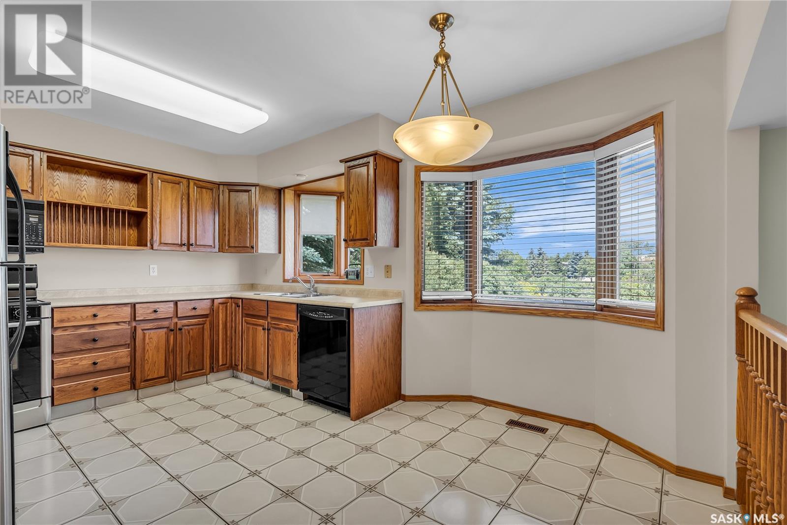 Welcome to 314 Whitewood Road – a stunning 1,952 square foot, park backing 5 level split in Lakeview! With walking paths surrounding, and a beautifully landscaped backyard to enjoy those outdoor evenings. Step into the foyer, with hard wood floors and a large closet. Coming into your living room with large front facing windows, then into your formal dining area. Kitchen is equipped with fridge, stove, dishwasher, microwave, pantry, and a lovely bay window viewing your rear yard. Passing the dinette brings you to your family room, which features a gas fireplace upon a stone feature wall with built in shelving – and garden door access to your deck. Main floor laundry, as well as a 2-pc bath complete this level. Coming upstairs you will find a king accommodating primary bedroom with a walk-in closet with custom organizers and shelving, as well as a 3-pc ensuite with dual vanity. Two additional bedrooms, as well as a 4-pc bath complete the second level. Basement is open, with insulation/vapor barrier, and utility area. Additional features include: A/C, underground sprinklers, double-attached garage, central vac, and outdoor shed. Located walking distance to elementary schools, quick access to Circle Drive and many amenities. Wonderful home on a gorgeous lot! (id:43042)