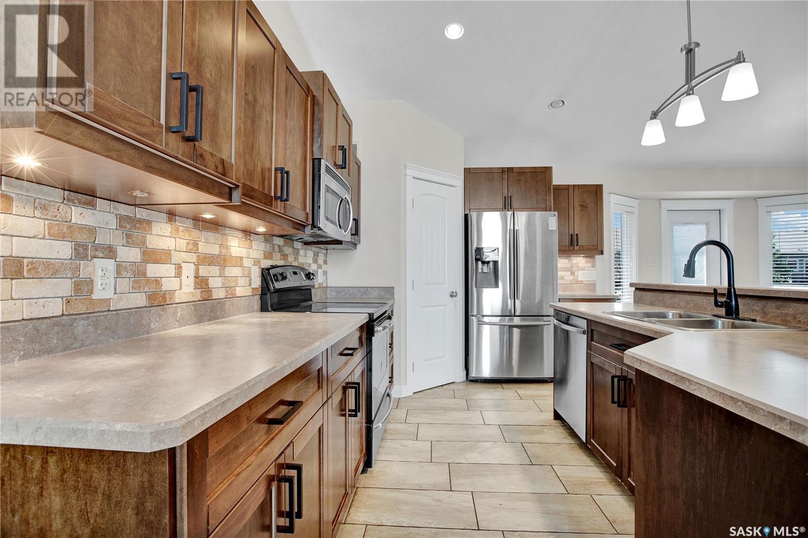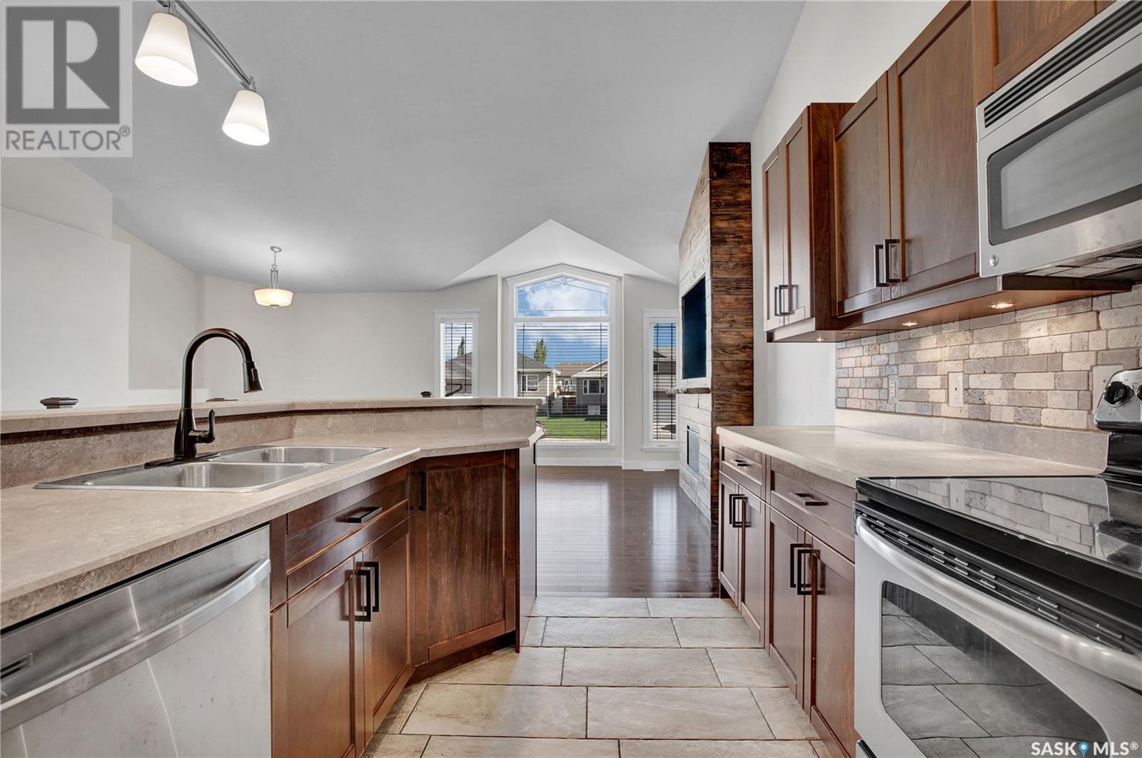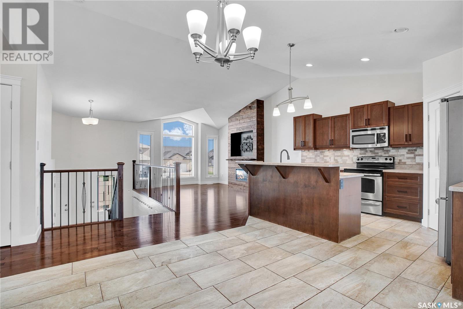 Fantastic opportunity to live in a fully finished home with many upgrades & stand-out features right around the corner from the Legends Golf Course! Wonderful community feel & situated close to walking trails, parks, grocery stores, schools & the Legends Centre Sports Complex. Main level features a big spacious foyer w/ ceramic tile finish & an open concept w/ beautiful hardwood floors, vaulted ceilings & an abundance of natural light for a bright/clean feel. Custom built-in electric fireplace on the feature wall right next to the kitchen that's perfect for entertaining guests. Kitchen has 2-tier island, corner pantry w/ coffee bar set up, lots of cabinet storage, tile backsplash/ under cabinet lights & custom cabinets w/ soft-close drawers. Patio door off the dining room leads onto your back deck where you can catch the summer sun (South facing). One-of-a-kind deck with stucco finish, glass/aluminum rail, glass privacy wall, duradeck finish & built-in powered awning to catch extra shade. You'll love the storage set-up under the deck where you can keep belongings well protected from the elements all year round. 3 bedrooms upstairs w/ a walk-in closet & en-suite bathroom off the primary bedroom. Lots of natural light in the basement w/ big windows. Very functional concept w/ an open family/games room set-up, big 3pc bath & oversized bedroom (massive walk-in closet leading to additional storage area). Laundry/mechanical room has a sink & room for more storage. Notice the thoughtful finishes in the double attached garage (nat gas heat, poxy flooring, painted finish, durable shelving).. perfect man-cave set up. Other extra's worth a mention: triple concrete driveway w/ tons of extra concrete work wrapping around the house to the large patio in the backyard, cozy fire-pit area (stone finish), & beautiful trees/shrubs/landscaping that give this home a warm touch. Original owner! Great street appeal & move-in ready! See in person to appreciate the value. Call today! (id:43042)