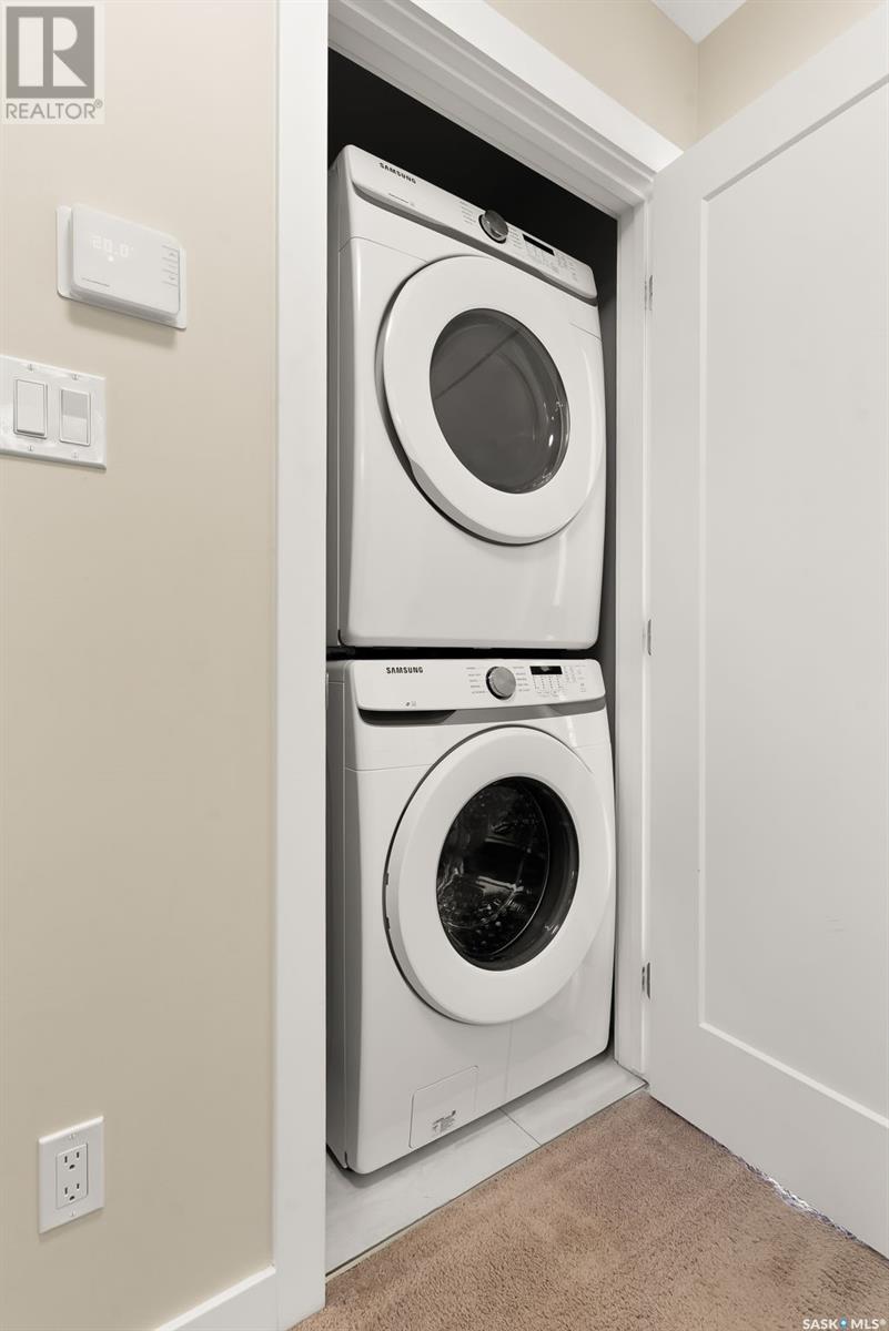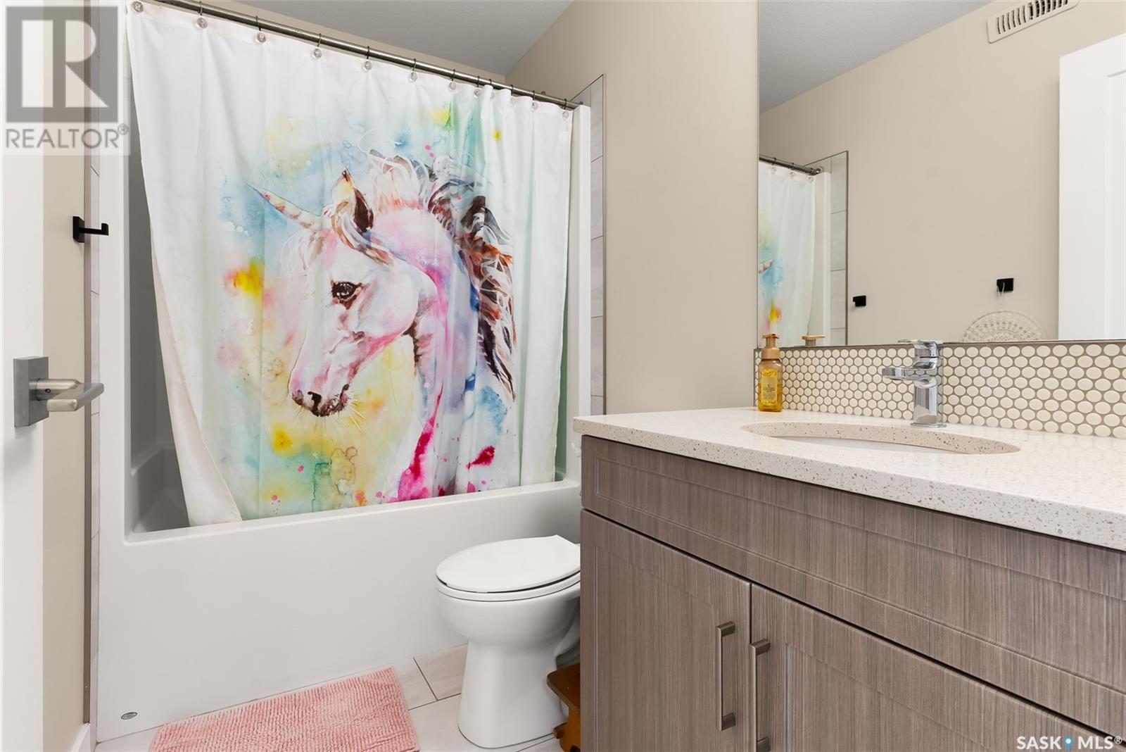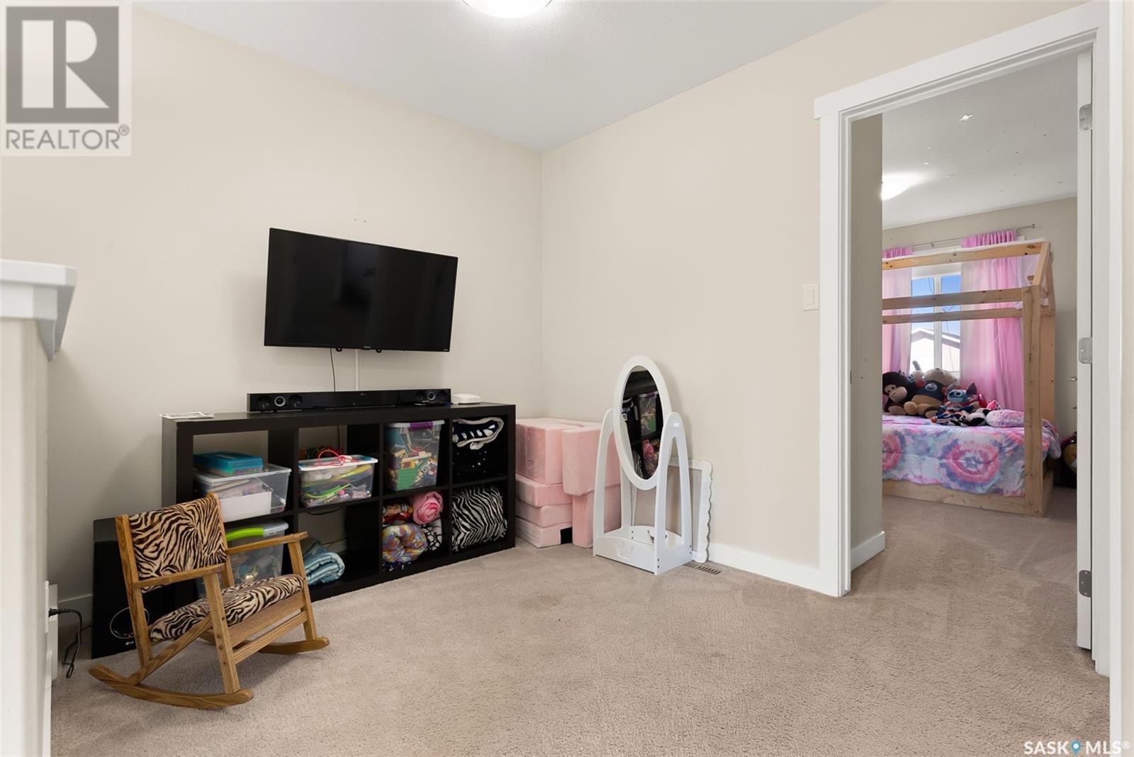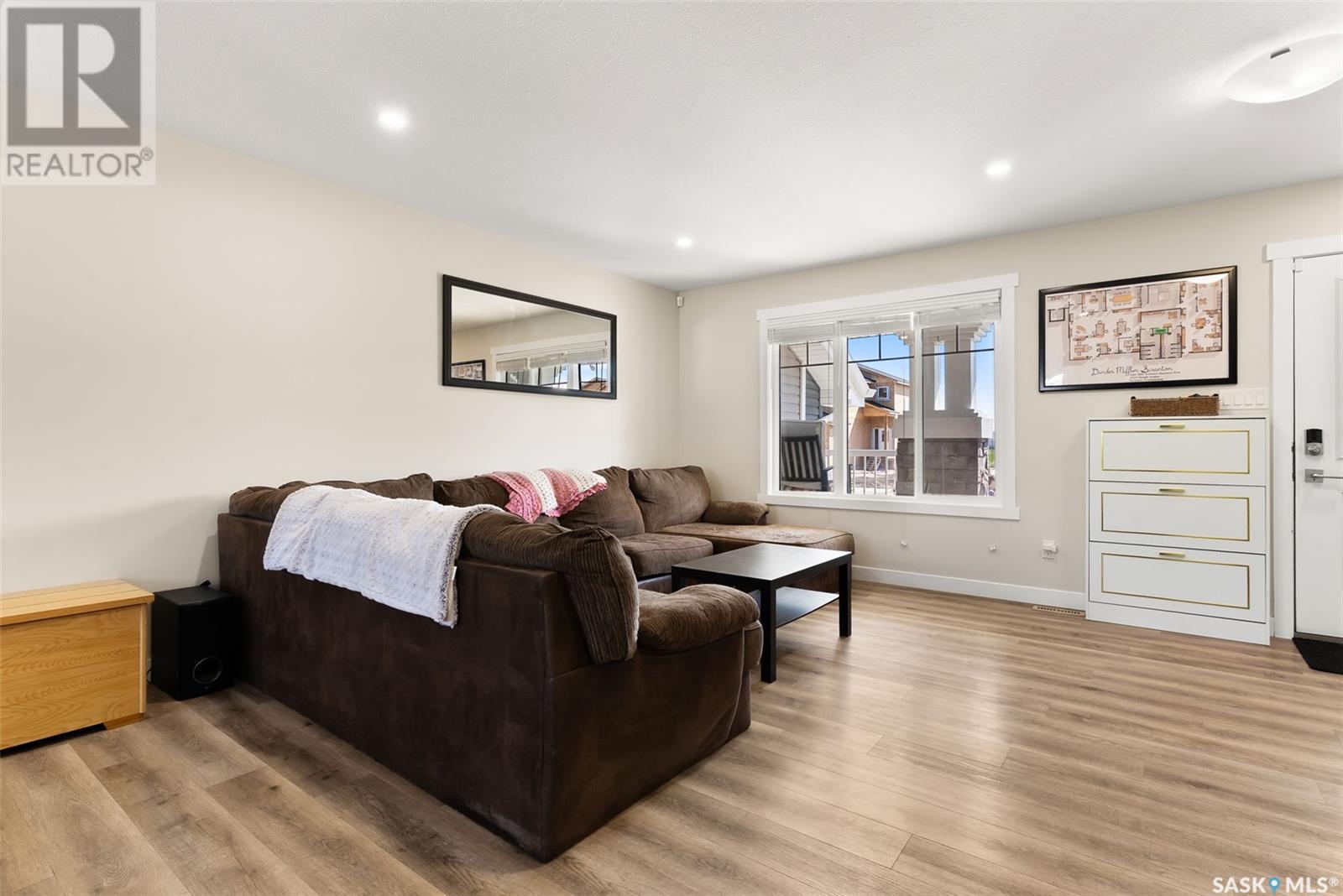 Welcome to 3150 Green Stone Road, a beautifully maintained multi-level townhome located in the vibrant and family-friendly neighbourhood of The Towns in Regina. This stylish 1,386 sq ft home features a modern and functional layout, ideal for growing families, professionals, or first-time buyers. Step inside to an inviting open-concept main floor adorned with durable vinyl plank flooring and large windows that fill the space with natural light. The spacious living room is perfect for relaxing or entertaining guests, while the adjacent dining area offers room for family dinners and casual gatherings. The kitchen is both stylish and functional, boasting quartz countertops, contemporary cabinetry, tile backsplash, stainless steel appliances, and a centre island with pendant lighting—ideal for meal prep or casual dining. A convenient two-piece bath completes the main floor. Upstairs, you'll find three comfortable bedrooms, including a spacious primary retreat with a walk-in closet and a private 4-piece ensuite. Two additional bedrooms and another full bathroom provide ample space for children, guests, or a home office. A bonus room adds versatility for a play area, study zone, or cozy TV nook. The upstairs laundry with stackable Samsung washer and dryer adds everyday convenience. Enjoy outdoor living on the private back deck—perfect for summer BBQs or morning coffee. Located near parks, schools, walking paths, and all East Regina amenities, this home offers the perfect combination of comfort, style, and location. Don't miss your opportunity to own a move-in-ready home in one of Regina’s most sought-after communities! (id:43042)