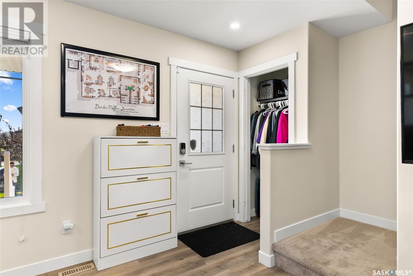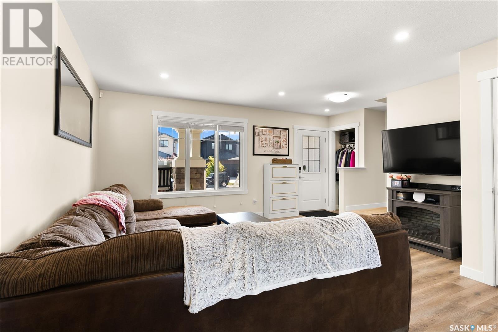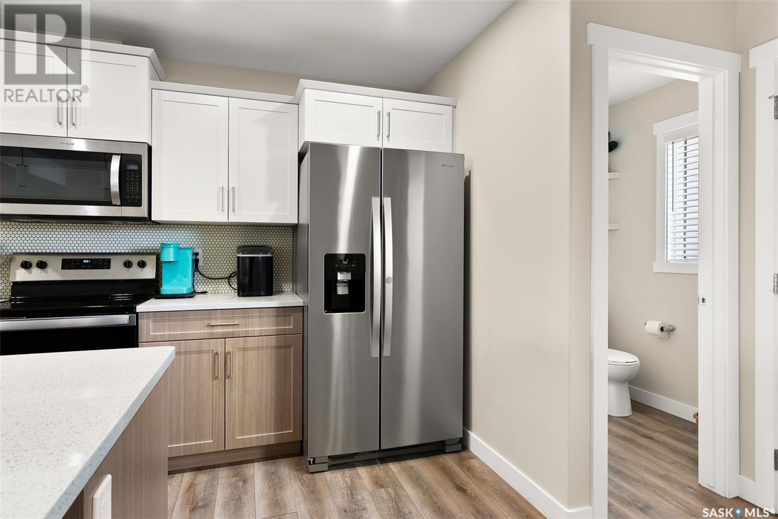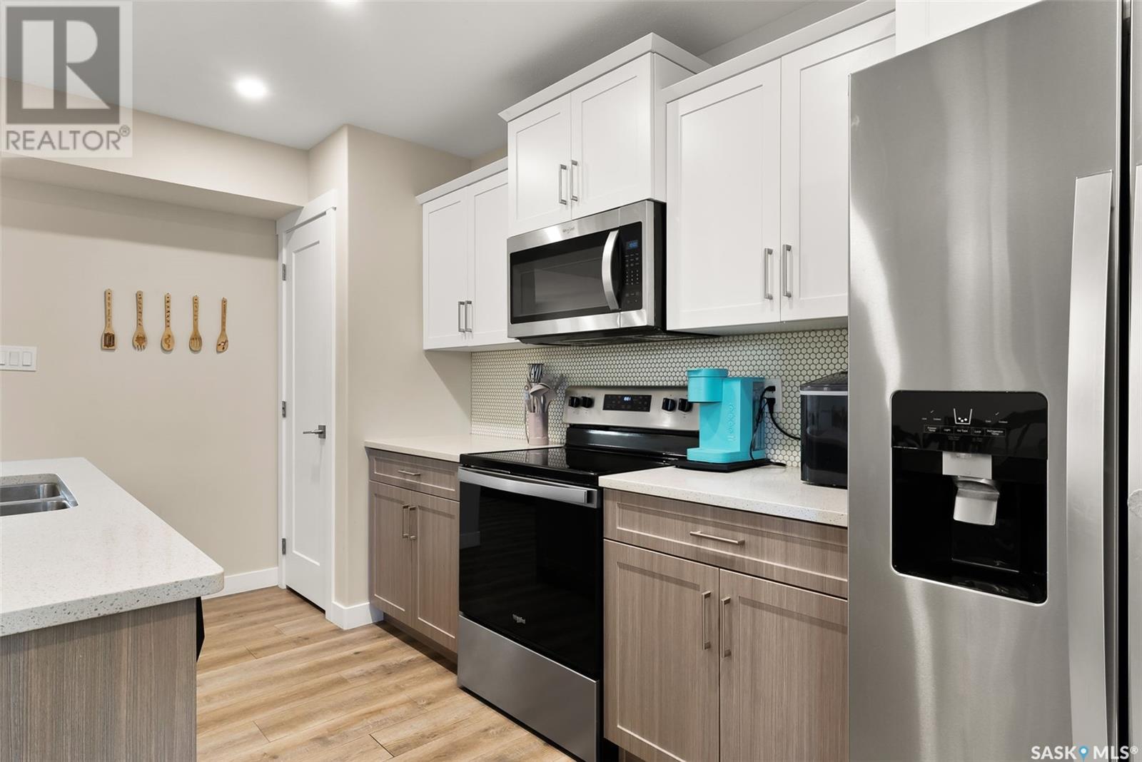 Welcome to 3150 Green Stone Road, a beautifully maintained multi-level townhome located in the vibrant and family-friendly neighbourhood of The Towns in Regina. This stylish 1,386 sq ft home features a modern and functional layout, ideal for growing families, professionals, or first-time buyers. Step inside to an inviting open-concept main floor adorned with durable vinyl plank flooring and large windows that fill the space with natural light. The spacious living room is perfect for relaxing or entertaining guests, while the adjacent dining area offers room for family dinners and casual gatherings. The kitchen is both stylish and functional, boasting quartz countertops, contemporary cabinetry, tile backsplash, stainless steel appliances, and a centre island with pendant lighting—ideal for meal prep or casual dining. A convenient two-piece bath completes the main floor. Upstairs, you'll find three comfortable bedrooms, including a spacious primary retreat with a walk-in closet and a private 4-piece ensuite. Two additional bedrooms and another full bathroom provide ample space for children, guests, or a home office. A bonus room adds versatility for a play area, study zone, or cozy TV nook. The upstairs laundry with stackable Samsung washer and dryer adds everyday convenience. Enjoy outdoor living on the private back deck—perfect for summer BBQs or morning coffee. Located near parks, schools, walking paths, and all East Regina amenities, this home offers the perfect combination of comfort, style, and location. Don't miss your opportunity to own a move-in-ready home in one of Regina’s most sought-after communities! (id:43042)