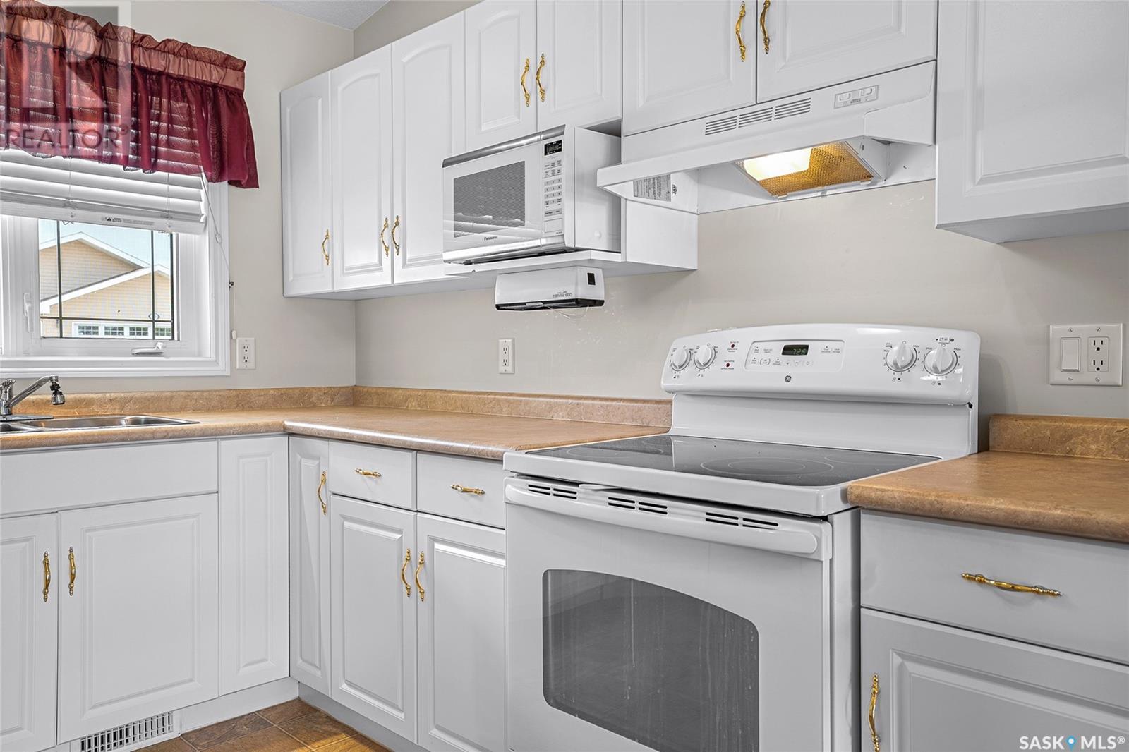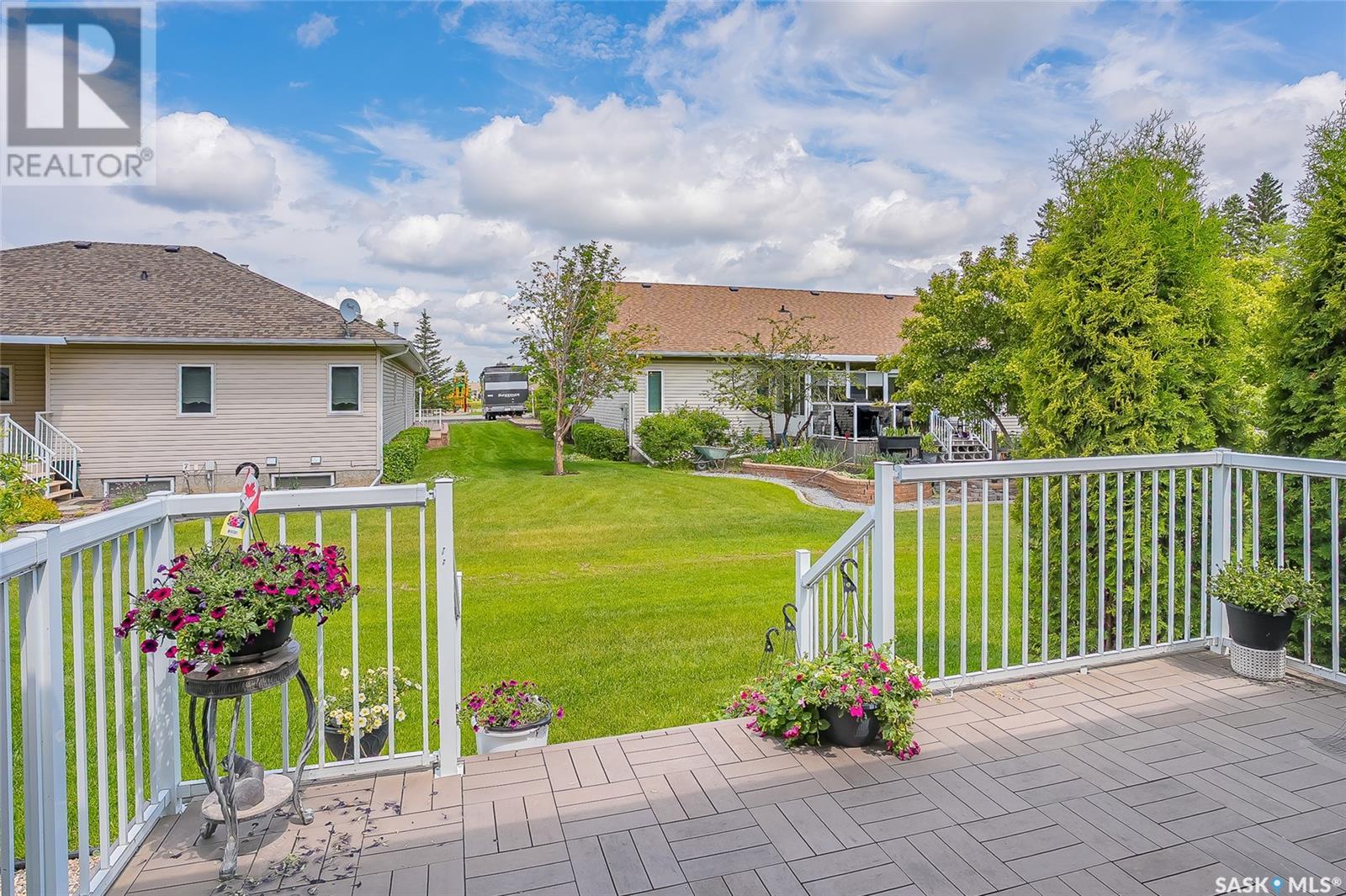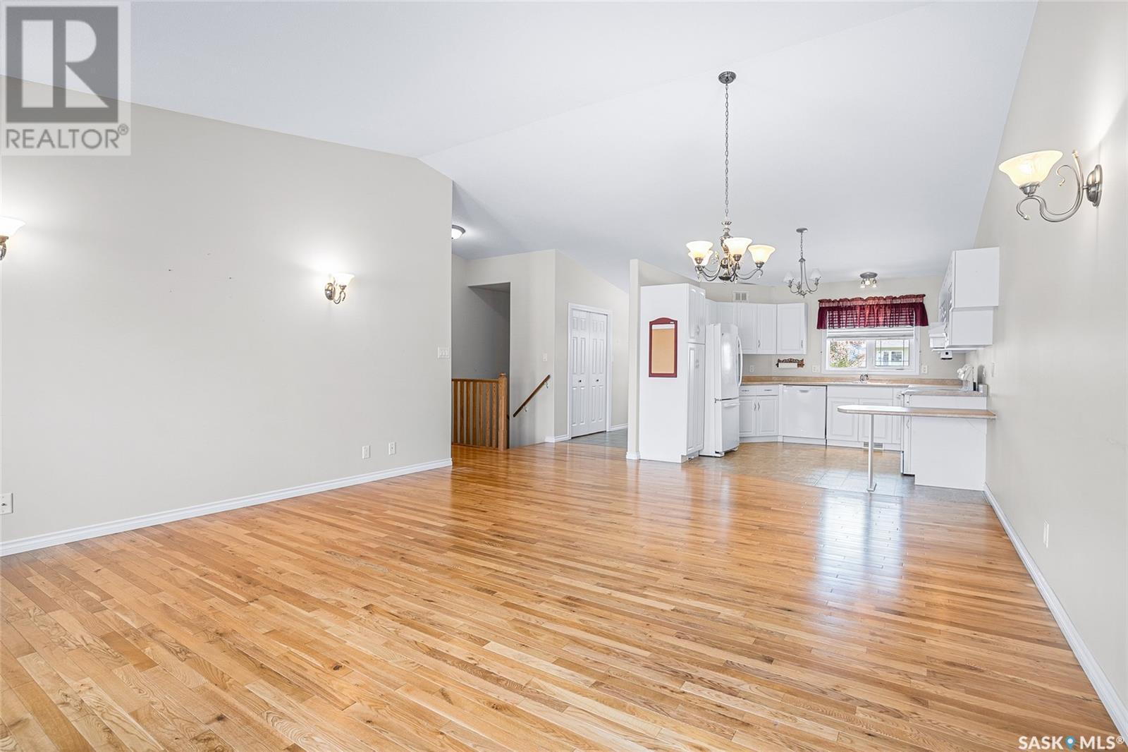 $200 MonthlyWelcome to the town of Waldheim! The ideal community! Just 30 minutes north of Saskatoon. You won't find a better townhouse than this well-cared-for bungalow style built in 2002. Sprawling 1307 sq. ft with an open concept floor plan and vaulted ceiling. Main floor laundry with wash basin and built-in cupboards. Great kitchen with ample cupboards, counter space and appliances included. Three piece ensuite bath off the primary bedroom with double closets. Featuring hardwood flooring throughout main living area. Basement mostly developed, just requires some flooring and ceiling to complete with two bedrooms, family room and a full bath. Large windows in the basement bedrooms. Direct entry into the attached garage that is roughed-in for a heater. Garden door to a maintenance free deck. Enjoy central air conditioning for the hot summers. Backing open green space. Visitor parking just a few steps away. Double concrete driveway for extra parking. Great surrounding properties. All situated a mere steps away from Sam Wendland Heritage park, an elaborate park and playground and a historical museum. Well managed property with good financial standings. Potential of a quick possession! (id:43042)