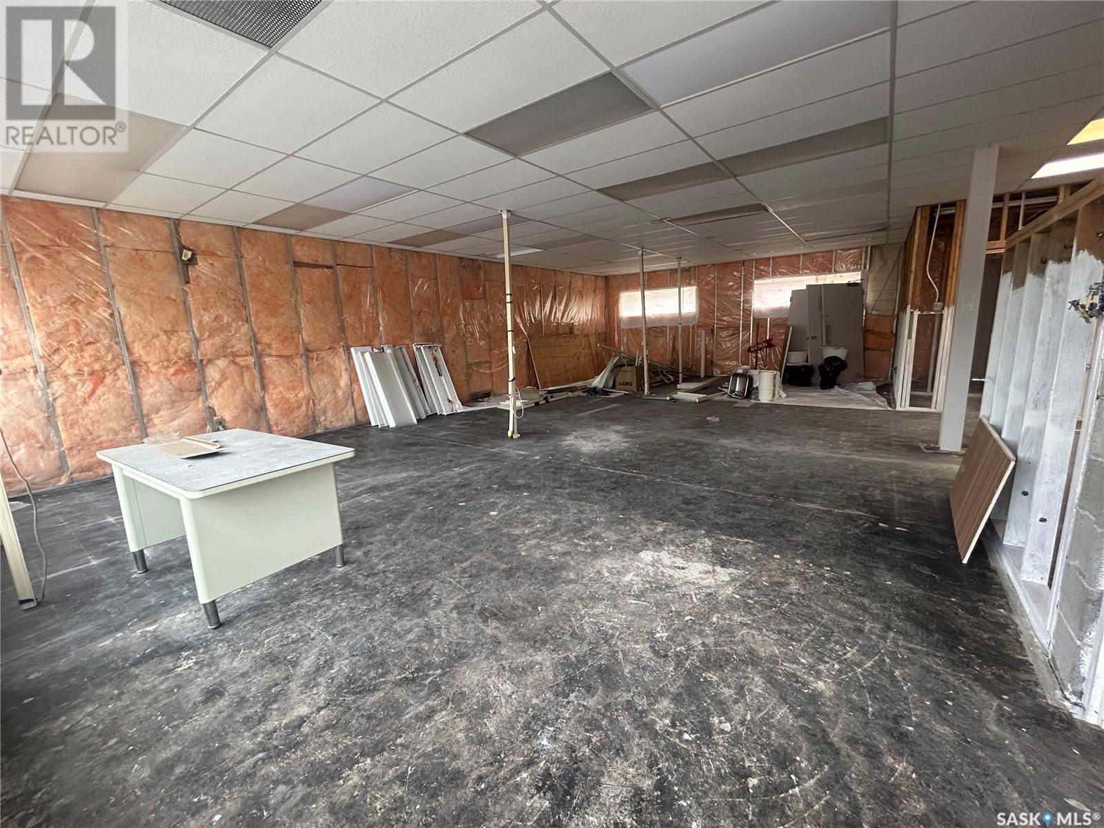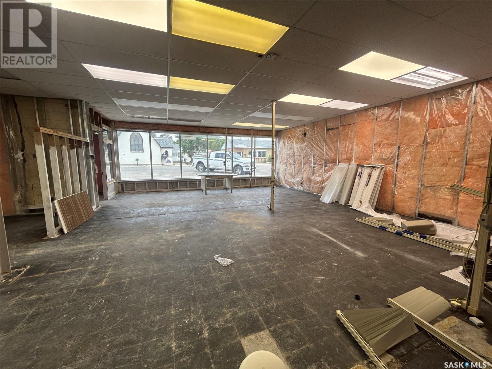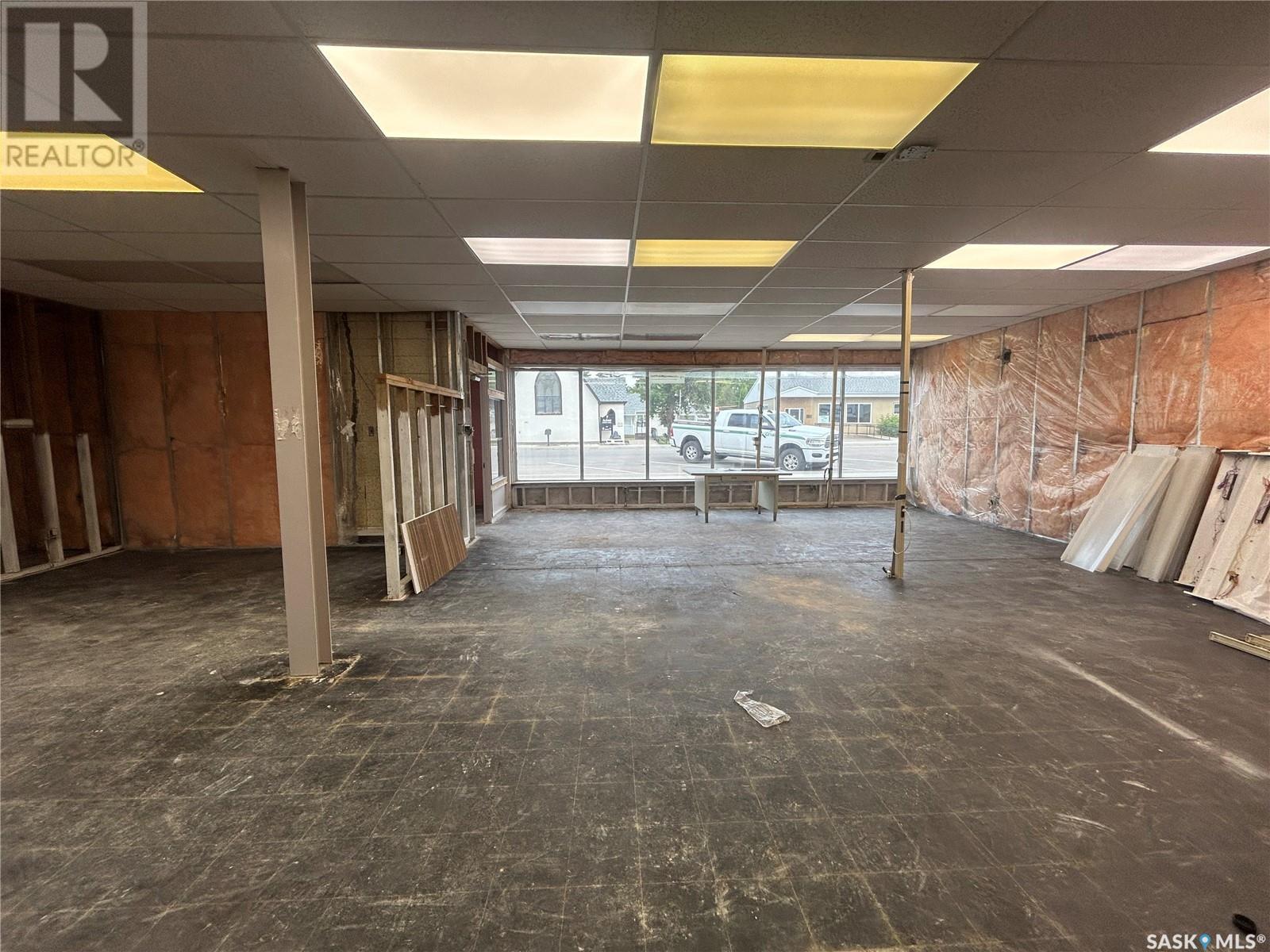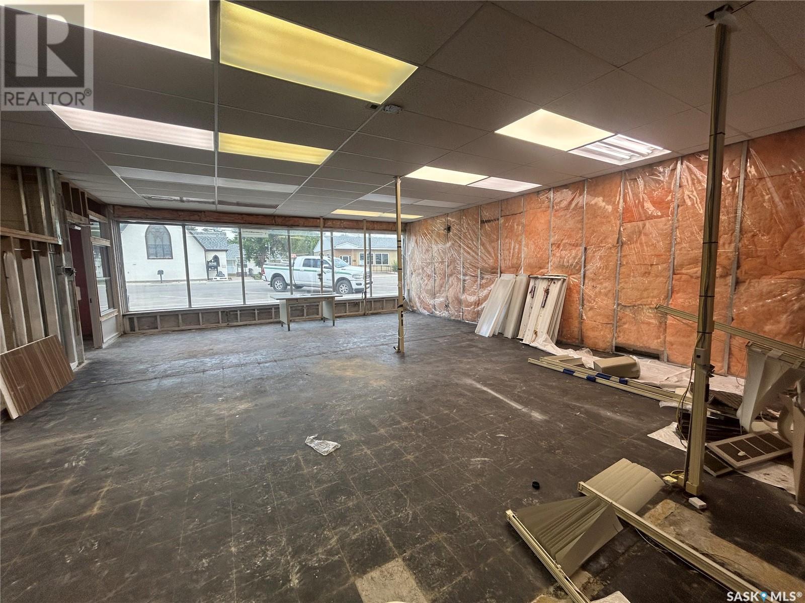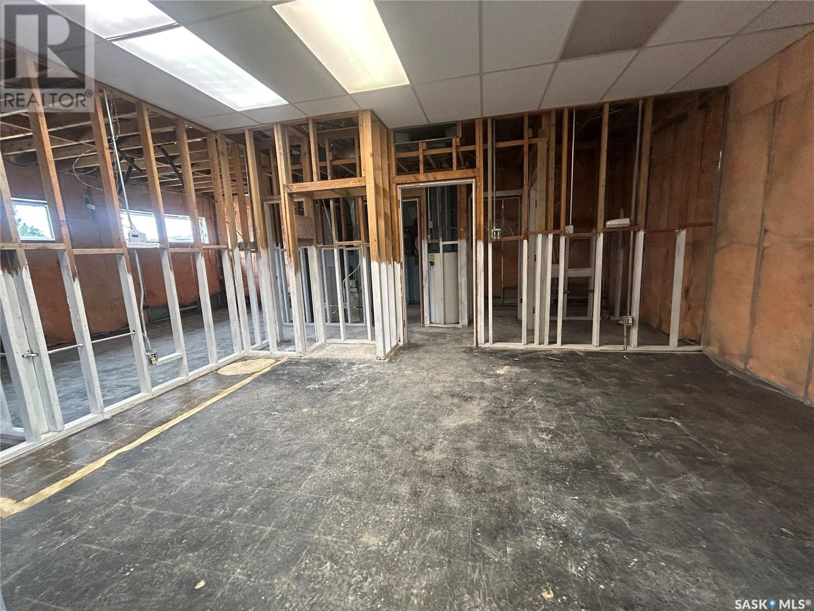 This commercial building in the busy town of Watrous is a blank canvas ready to finish to your liking! After a water main break damaged interior finishing was removed to studs/insulation. There is a huge open space that would be great for retail, studio, or whatever you can imagine. There are 2 roughed in bathroom spaces, and framing for former kitchen, utility, and storage areas. Building is brick construction with a metal roof, and is located on a corner lot on Main Street with plenty of parking at the rear. Call today for your viewing appointment! (id:43042)