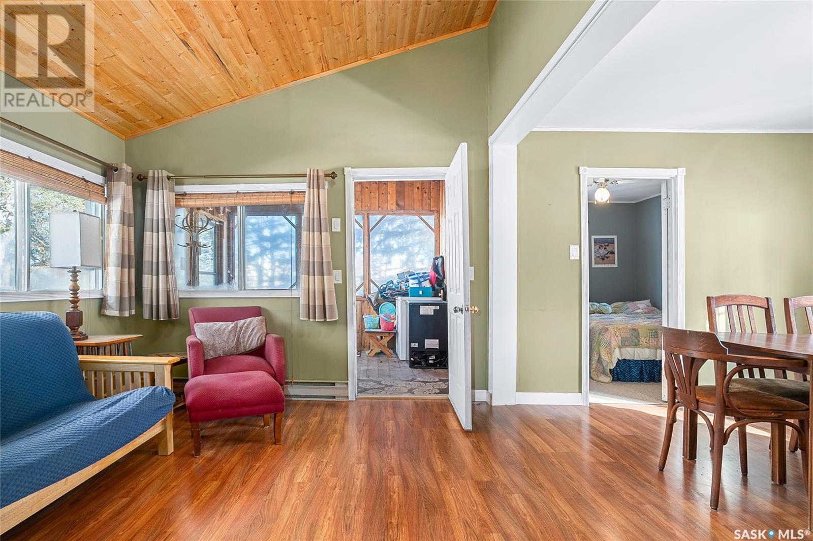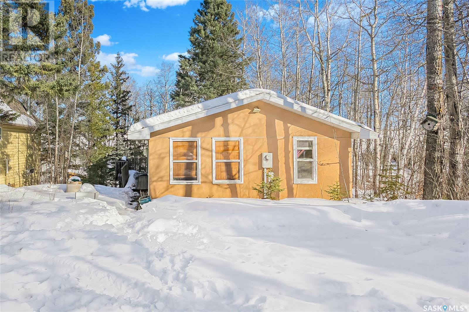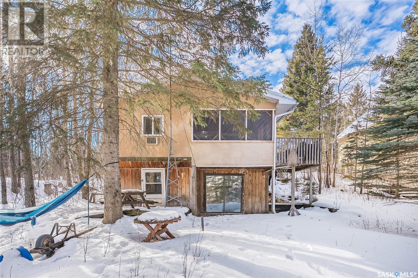 This affordable lake retreat at Echo Bay on Big Shell Lake is the perfect place to unwind, make memories, and enjoy all that lake life has to offer. This 2-bedroom cabin features an open concept layout, seamlessly connecting the living room, dining area, and kitchen, ideal for hosting family and friends. Large south-facing windows bring in natural light, while the front sunroom offers a cozy space to relax and take in the views. A bathroom with a stand-up shower is conveniently located near the entrance. Outside there is a gravel driveway with a large garden area to the side. Walk down the outdoor steps to your private oasis, surrounded by towering trees where you can spend your days soaking up the fresh air and your evenings gathered around the fire. Additional features include ample storage, with a large storage room accessible through sliding glass doors, offering potential for a separate guest suite, plus a second storage space for all your outdoor gear and lake toys. Located just 1.5 hours from Saskatoon and 10 minutes from Shell Lake, this cabin offers the best of both worlds: a peaceful escape with easy access to amenities. Echo Bay is a tight-knit lake community featuring walking trails, playgrounds, public beaches, and boat launches. The cabin comes fully furnished, including all appliances and a large water storage tank for hauled water. Imagine waking up to the peaceful sounds of nature, sipping your morning coffee in the sunroom while overlooking the trees, and spending long summer nights by the firepit under a star-filled sky. With a little TLC, this could be the perfect getaway spot for years to come! (id:43042)
