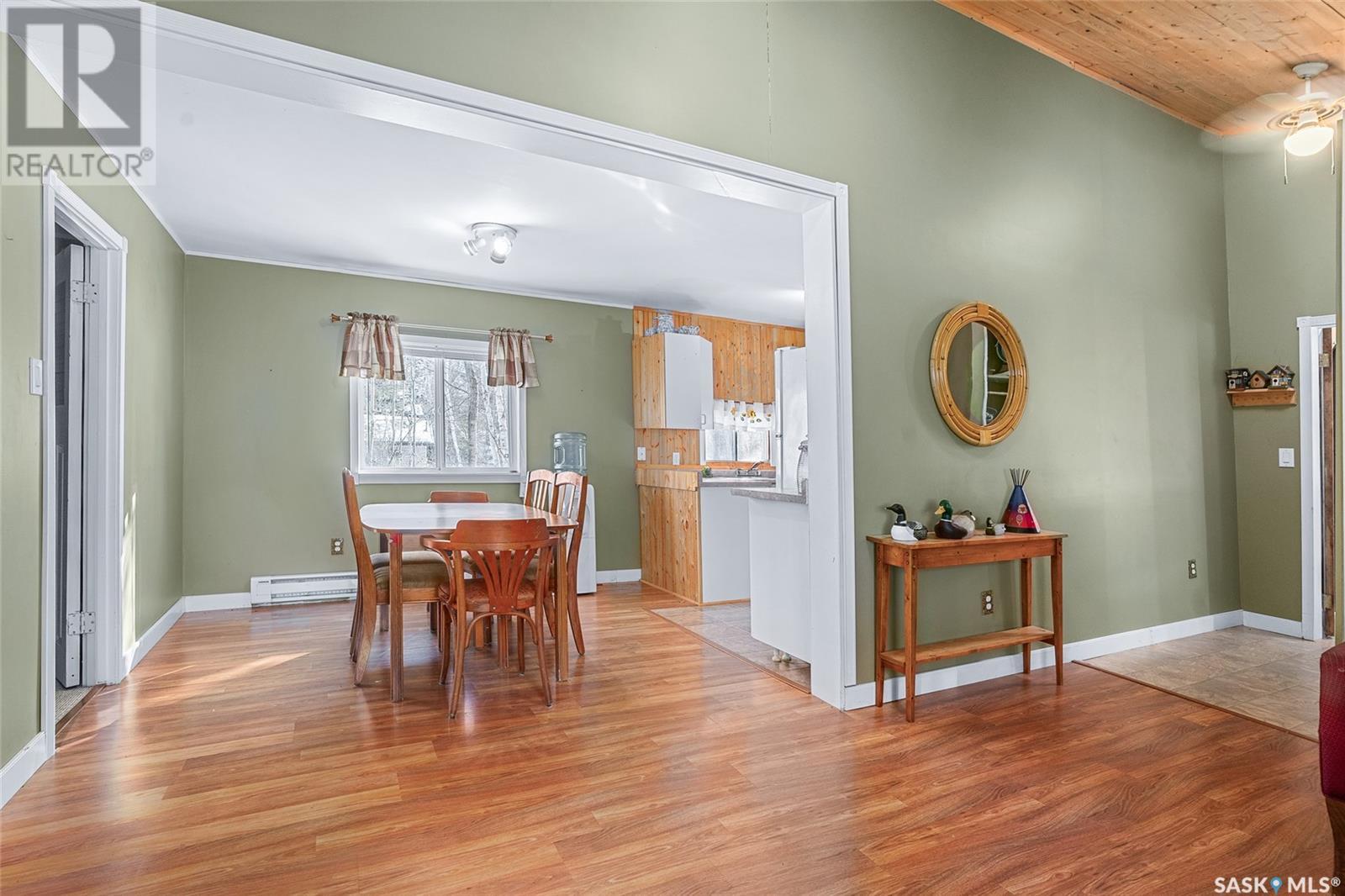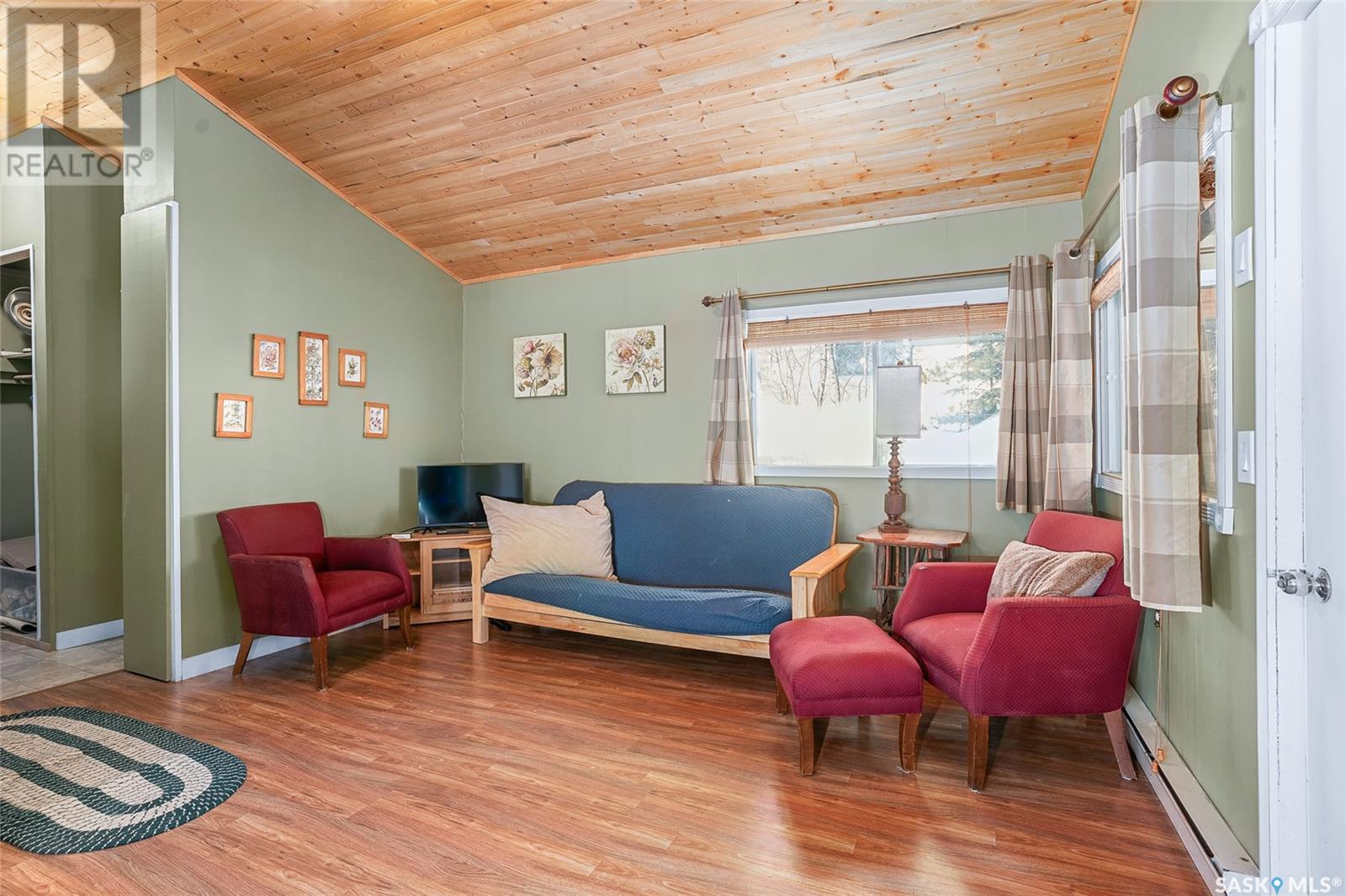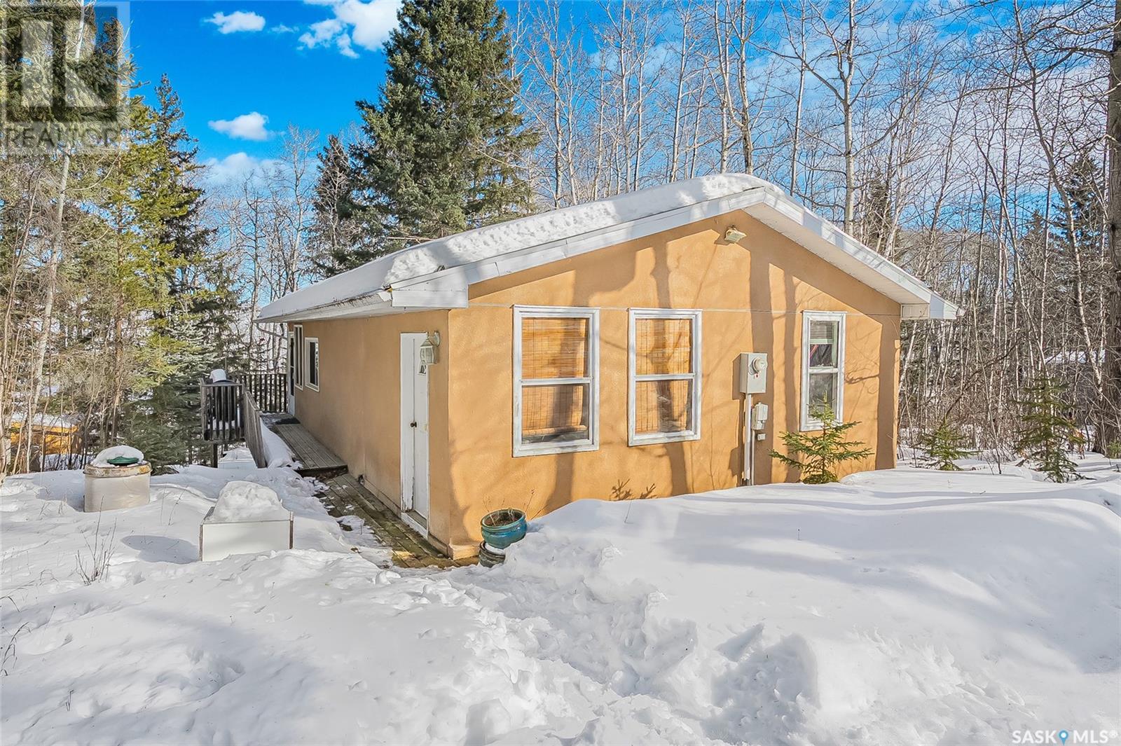 This affordable lake retreat at Echo Bay on Big Shell Lake is the perfect place to unwind, make memories, and enjoy all that lake life has to offer. This 2-bedroom cabin features an open concept layout, seamlessly connecting the living room, dining area, and kitchen, ideal for hosting family and friends. Large south-facing windows bring in natural light, while the front sunroom offers a cozy space to relax and take in the views. A bathroom with a stand-up shower is conveniently located near the entrance. Outside there is a gravel driveway with a large garden area to the side. Walk down the outdoor steps to your private oasis, surrounded by towering trees where you can spend your days soaking up the fresh air and your evenings gathered around the fire. Additional features include ample storage, with a large storage room accessible through sliding glass doors, offering potential for a separate guest suite, plus a second storage space for all your outdoor gear and lake toys. Located just 1.5 hours from Saskatoon and 10 minutes from Shell Lake, this cabin offers the best of both worlds: a peaceful escape with easy access to amenities. Echo Bay is a tight-knit lake community featuring walking trails, playgrounds, public beaches, and boat launches. The cabin comes fully furnished, including all appliances and a large water storage tank for hauled water. Imagine waking up to the peaceful sounds of nature, sipping your morning coffee in the sunroom while overlooking the trees, and spending long summer nights by the firepit under a star-filled sky. With a little TLC, this could be the perfect getaway spot for years to come! (id:43042)