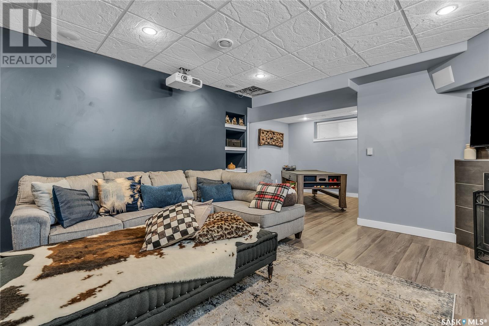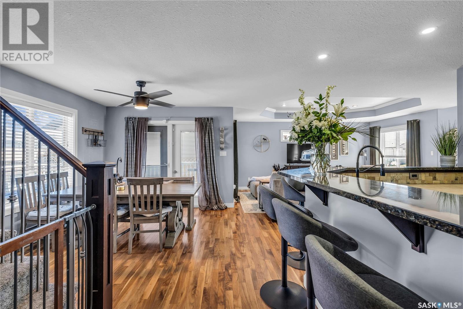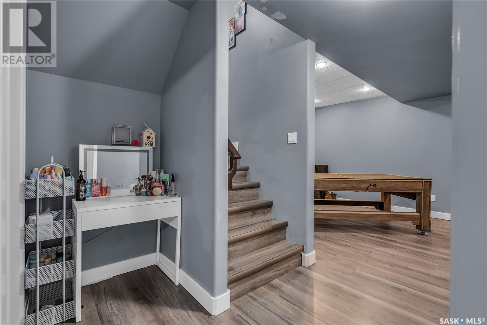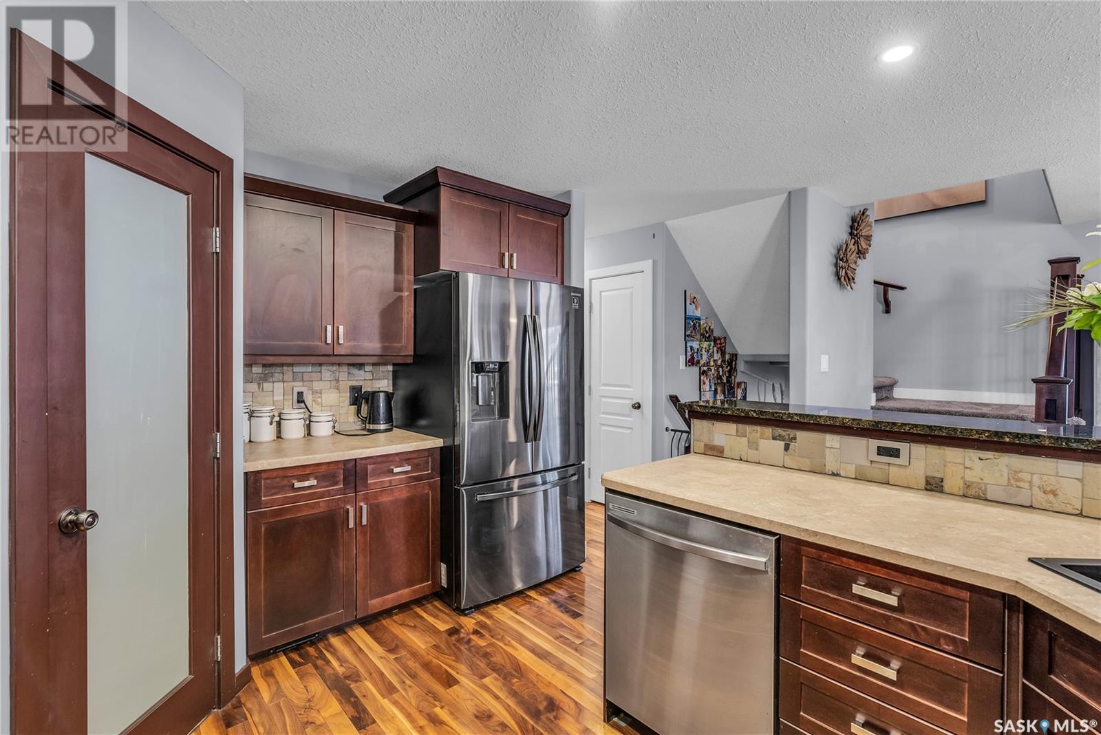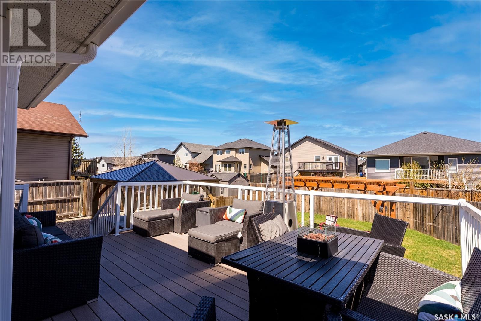 Take a look at this one of a kind fully developed 4-bedroom, 4-bathroom 2 Storey split home with a double attached 26x26 heated garage that has many upgrades located in the prestigious Crystal Springs area of Warman! This location is surrounded by walking paths, man-made lakes, a disc golf course and it is close to school bus routes. It features an exceptional floor plan with an open living room that brings in a lot of natural light, a stunning kitchen perfect for entertaining with a large sit up island/bar that has granite countertops, tile backsplash and a newer Fridge/stove & built in dishwasher. The kitchen has a very thought out walk though pantry to the mudroom that has access from the garage. The main floor also has a 2-piece bathroom and laundry room with a newer washer/dryer. The dining area is spacious and walks out onto a large partially covered deck that overlooks a beautifully landscaped backyard. The backyard is fully fenced and features a dog run, a firepit area, a gazebo, a newer hot tub and shed. The 2nd floor of this home has huge 4-piece bathroom, 3 good sized bedrooms with the primary having a walk-in closet and a gorgeous 3-piece ensuite bathroom with walk-in tiled shower. The basement is fully finished with 9-foot ceilings, newer vinyl plank flooring and it has a family room that features a natural gas fireplace and projector screen perfect for warm movie nights in with the family. The basement also has a 3-piece bathroom, a 4th bedroom and the utility room. The 26x26 double attached heated garage is in pristine condition as it features newer epoxy flooring. This perfect family home that has newly redone shingles and eavestroughs comes complete with all appliances, central air conditioning, an owned alarm system, a hot tub, 1 gazebo, 1 pergola, a pool table, all window coverings and so much more! Don’t wait! Call to view! Bar unit in garage not included - negotiable. (id:43042)