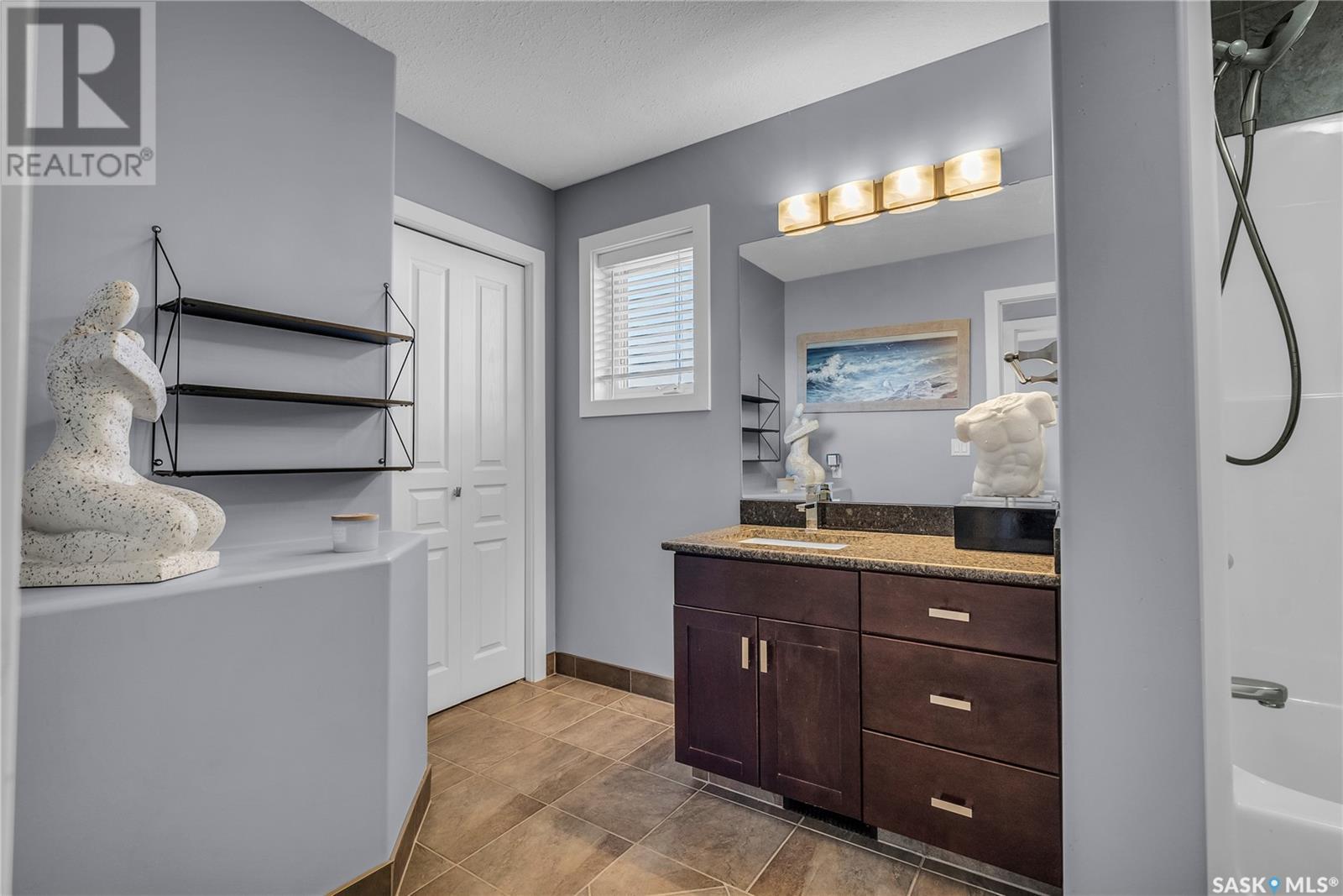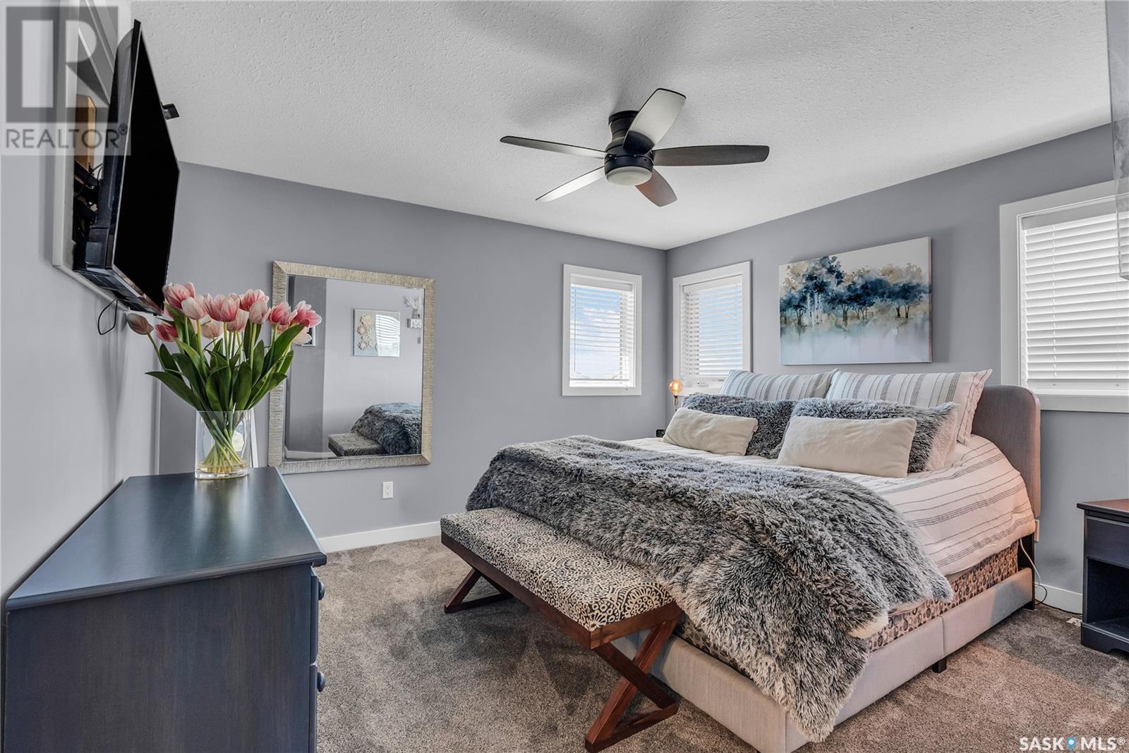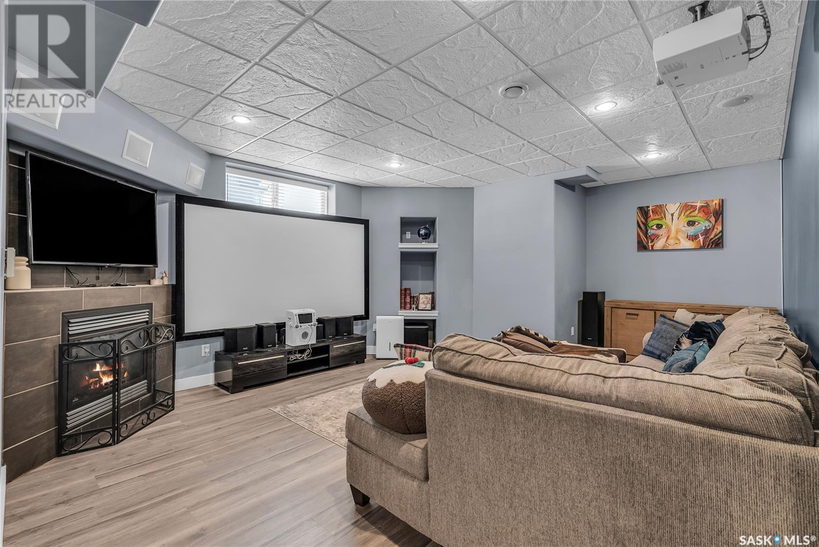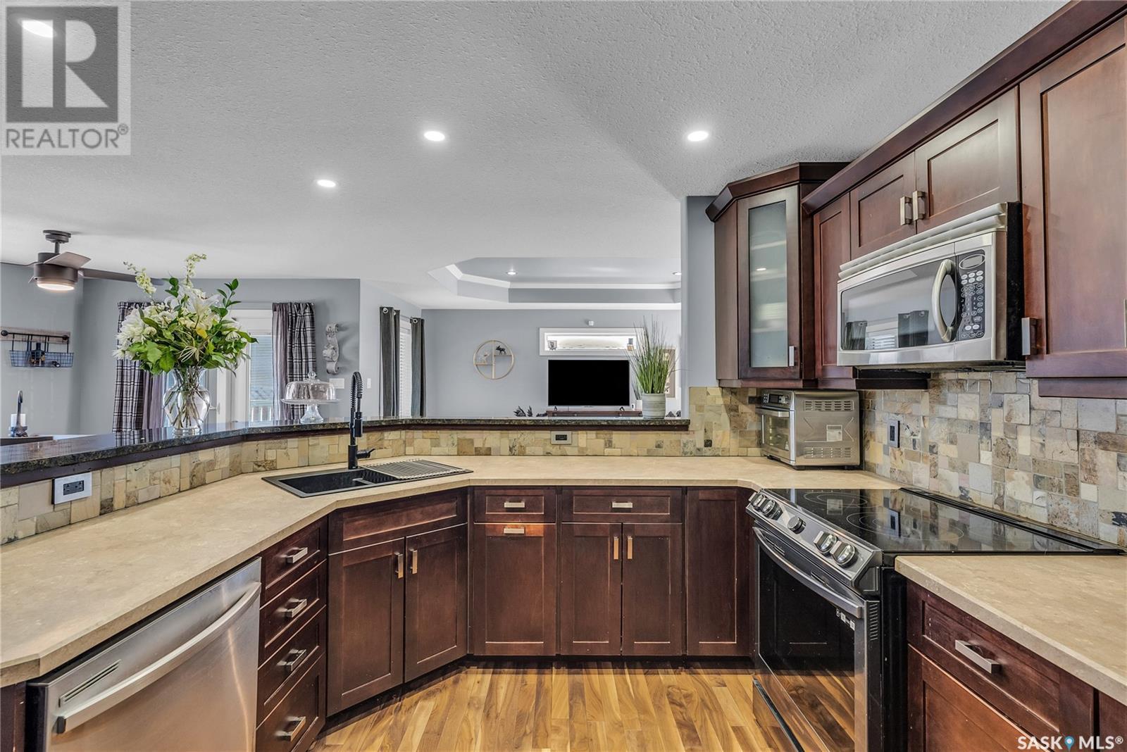 Take a look at this one of a kind fully developed 4-bedroom, 4-bathroom 2 Storey split home with a double attached 26x26 heated garage that has many upgrades located in the prestigious Crystal Springs area of Warman! This location is surrounded by walking paths, man-made lakes, a disc golf course and it is close to school bus routes. It features an exceptional floor plan with an open living room that brings in a lot of natural light, a stunning kitchen perfect for entertaining with a large sit up island/bar that has granite countertops, tile backsplash and a newer Fridge/stove & built in dishwasher. The kitchen has a very thought out walk though pantry to the mudroom that has access from the garage. The main floor also has a 2-piece bathroom and laundry room with a newer washer/dryer. The dining area is spacious and walks out onto a large partially covered deck that overlooks a beautifully landscaped backyard. The backyard is fully fenced and features a dog run, a firepit area, a gazebo, a newer hot tub and shed. The 2nd floor of this home has huge 4-piece bathroom, 3 good sized bedrooms with the primary having a walk-in closet and a gorgeous 3-piece ensuite bathroom with walk-in tiled shower. The basement is fully finished with 9-foot ceilings, newer vinyl plank flooring and it has a family room that features a natural gas fireplace and projector screen perfect for warm movie nights in with the family. The basement also has a 3-piece bathroom, a 4th bedroom and the utility room. The 26x26 double attached heated garage is in pristine condition as it features newer epoxy flooring. This perfect family home that has newly redone shingles and eavestroughs comes complete with all appliances, central air conditioning, an owned alarm system, a hot tub, 1 gazebo, 1 pergola, a pool table, all window coverings and so much more! Don’t wait! Call to view! Bar unit in garage not included - negotiable. (id:43042)