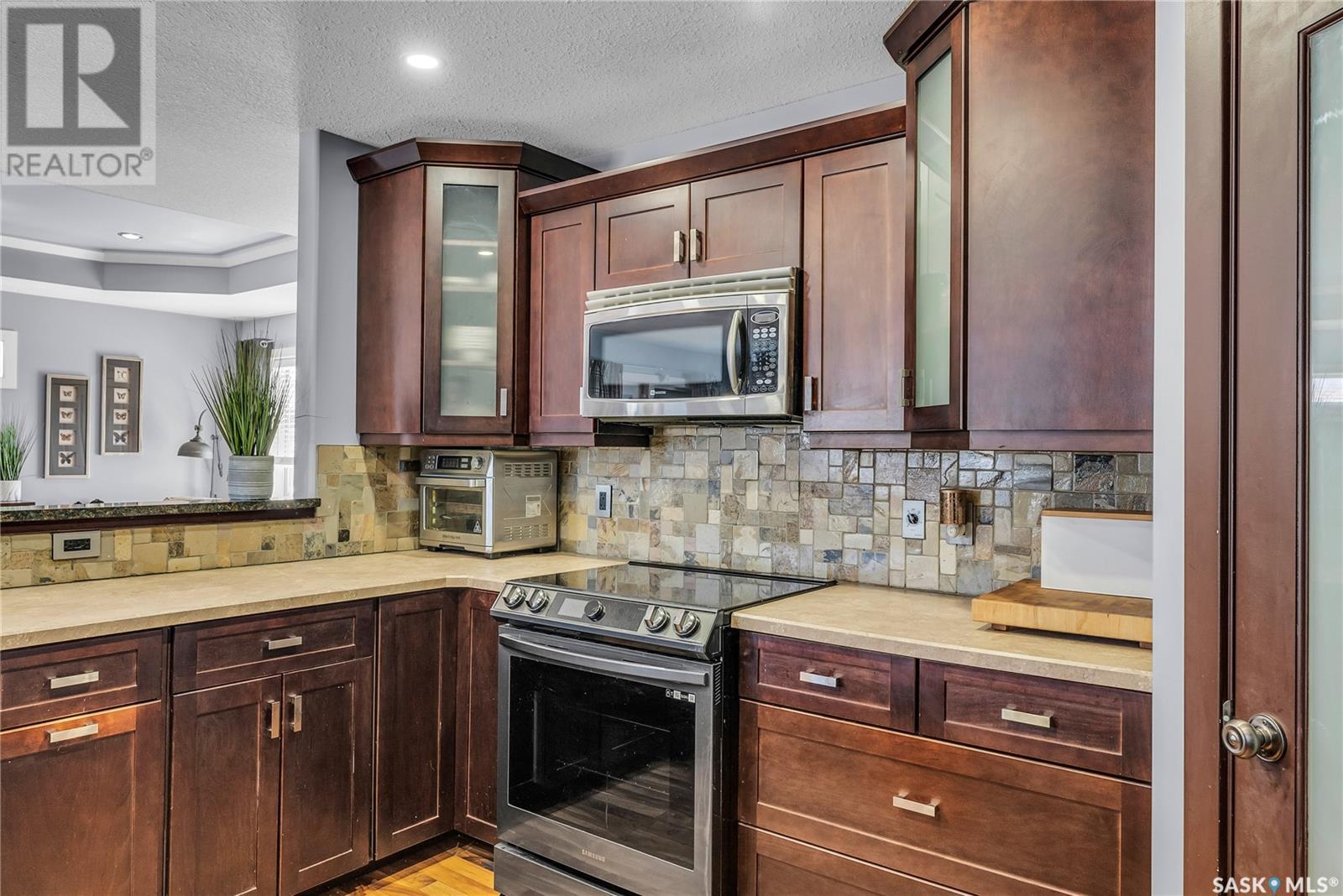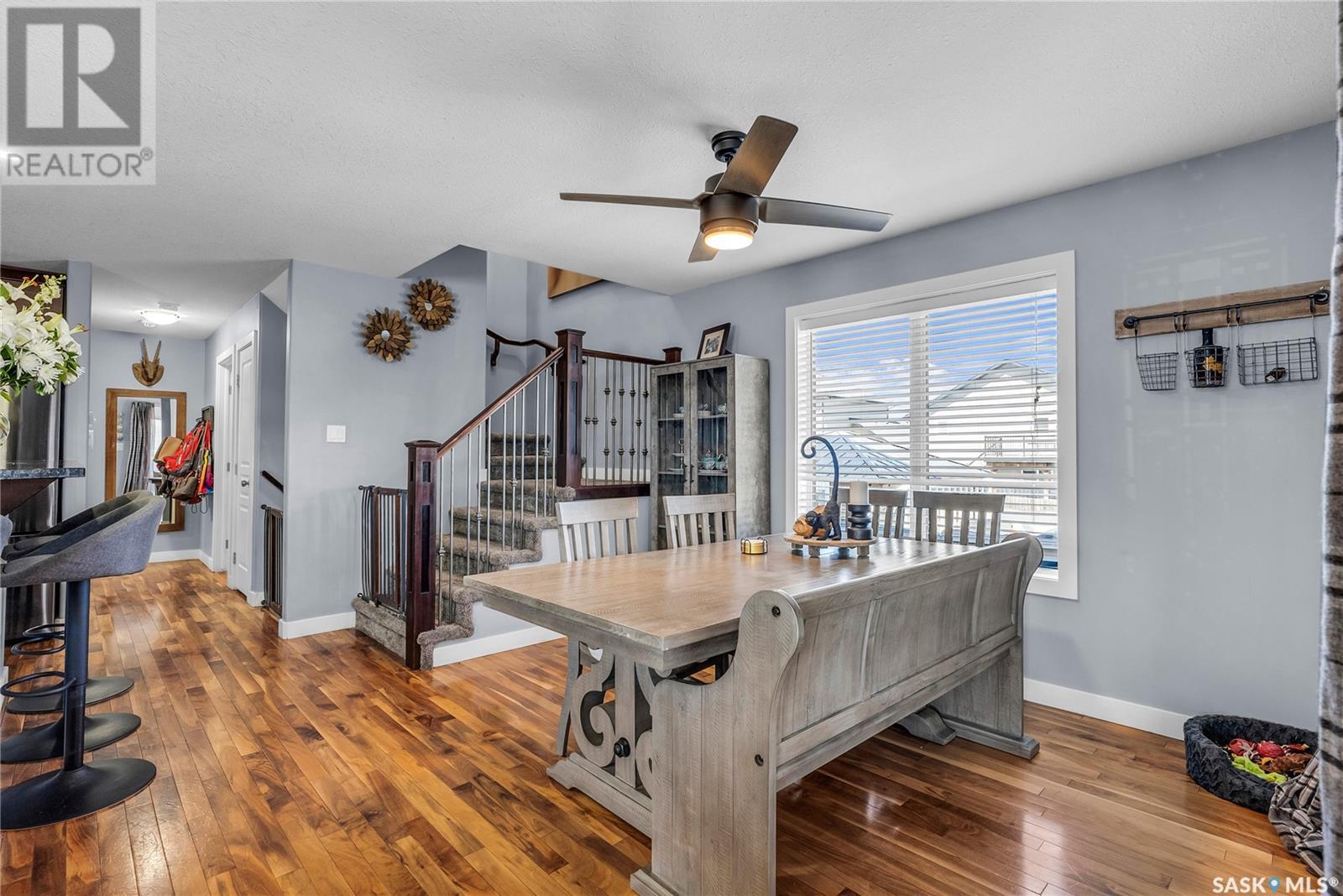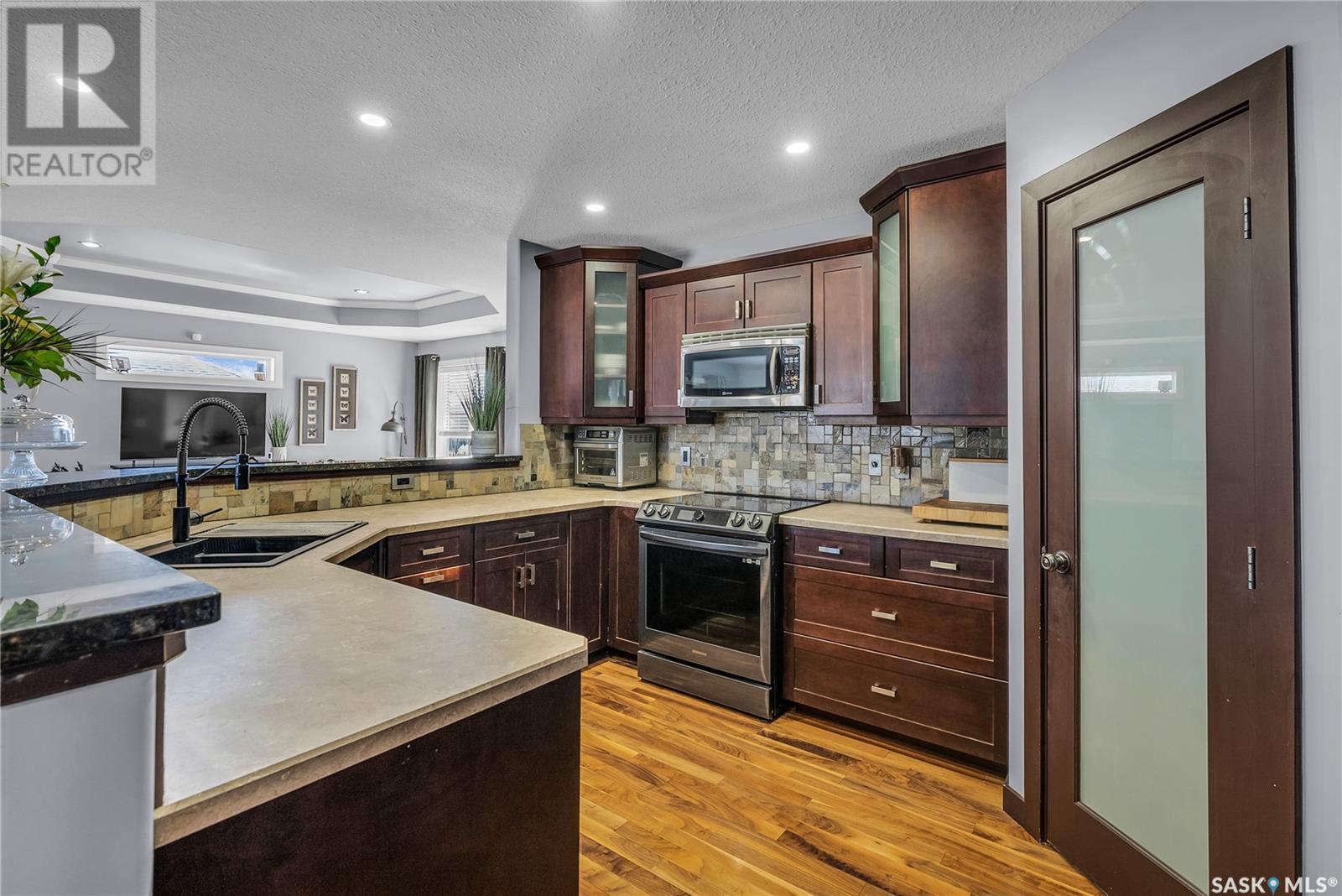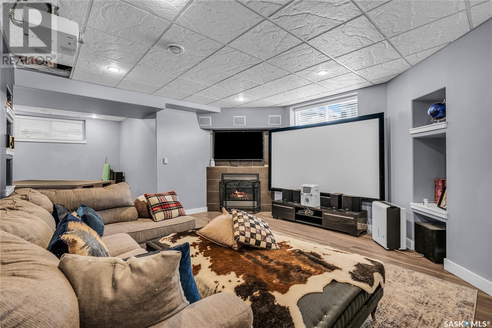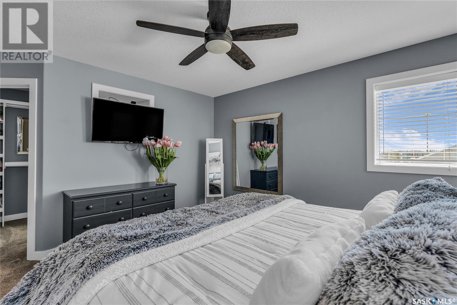 Take a look at this one of a kind fully developed 4-bedroom, 4-bathroom 2 Storey split home with a double attached 26x26 heated garage that has many upgrades located in the prestigious Crystal Springs area of Warman! This location is surrounded by walking paths, man-made lakes, a disc golf course and it is close to school bus routes. It features an exceptional floor plan with an open living room that brings in a lot of natural light, a stunning kitchen perfect for entertaining with a large sit up island/bar that has granite countertops, tile backsplash and a newer Fridge/stove & built in dishwasher. The kitchen has a very thought out walk though pantry to the mudroom that has access from the garage. The main floor also has a 2-piece bathroom and laundry room with a newer washer/dryer. The dining area is spacious and walks out onto a large partially covered deck that overlooks a beautifully landscaped backyard. The backyard is fully fenced and features a dog run, a firepit area, a gazebo, a newer hot tub and shed. The 2nd floor of this home has huge 4-piece bathroom, 3 good sized bedrooms with the primary having a walk-in closet and a gorgeous 3-piece ensuite bathroom with walk-in tiled shower. The basement is fully finished with 9-foot ceilings, newer vinyl plank flooring and it has a family room that features a natural gas fireplace and projector screen perfect for warm movie nights in with the family. The basement also has a 3-piece bathroom, a 4th bedroom and the utility room. The 26x26 double attached heated garage is in pristine condition as it features newer epoxy flooring. This perfect family home that has newly redone shingles and eavestroughs comes complete with all appliances, central air conditioning, an owned alarm system, a hot tub, 1 gazebo, 1 pergola, a pool table, all window coverings and so much more! Don’t wait! Call to view! Bar unit in garage not included - negotiable. (id:43042)