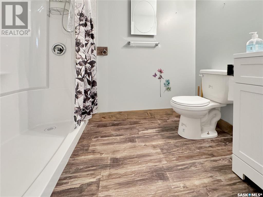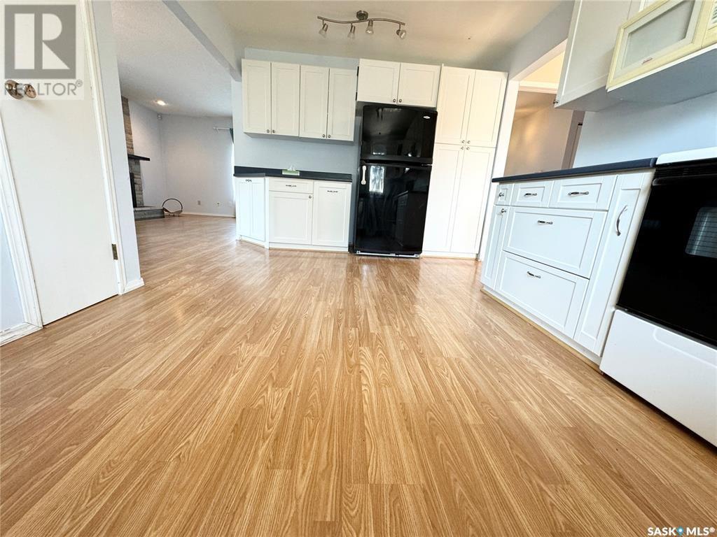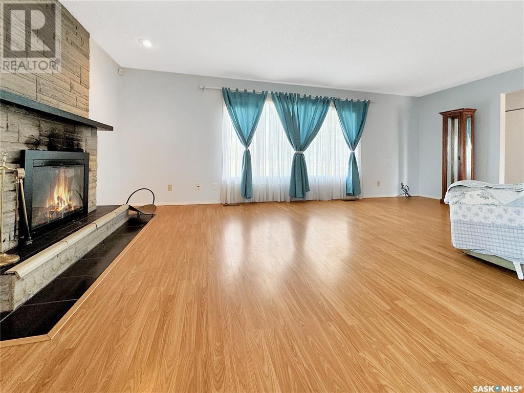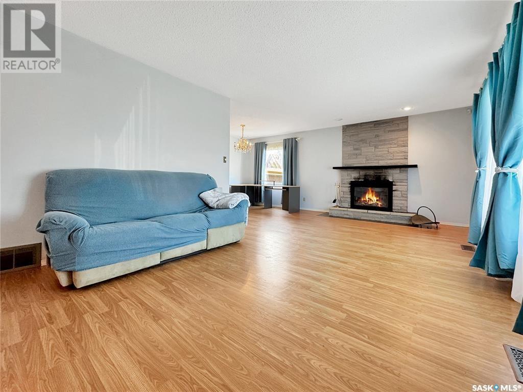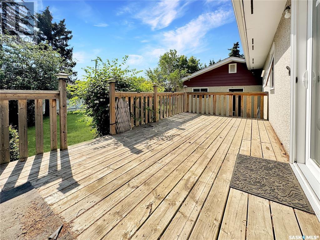 This is a fantastic family home in Cut Knife. The main level includes 3 spacious bedrooms, with the master bedroom featuring a 2-piece en-suite. Additionally, the main level also features a 4-piece family bathroom. The large kitchen offers plenty of cupboard and cabinet space and an attached informal eating area. Adjacent to the kitchen, you will find the dining room with a pocket door to close off the bedroom area, patio doors to the deck which features a built-in gas bbq (new fire rocks), and access to the fully fenced backyard with a garden area. The spacious living room features a traditional wood-burning fireplace and a large picture window overlooking green space. Direct entry to the house and backyard from the double attached garage, providing easy access to the main floor laundry. The developed basement includes one bedroom, a newly renovated 3-piece bathroom, a large rec room with a wood-burning stove inset fireplace, a cold storage area, a storage room, and a utility/workshop area. This is a great opportunity that you won't want to miss. Recent upgrades include a new hot water heater in June 2023, installation of a utility sink, new sewer line backflush valve, and furnace in late 2023. Call today to schedule a private showing. (id:43042)