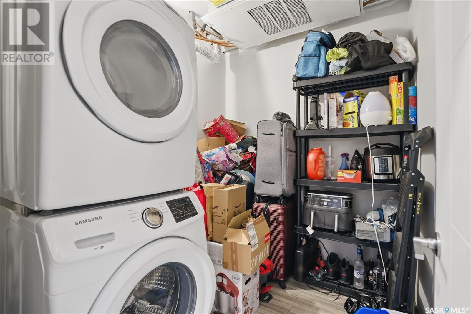 Stop renting and start investing in your future with The Saratoga — a stylish, south-facing 2-bedroom, 2-bathroom condominium in the desirable Lakewood neighborhood. This well-appointed home features a functional, open-concept layout and is finished with stainless steel appliances, sealed laminate flooring, quartz countertops, a full blind package, and central air conditioning. Located in one of Saskatoon’s safest and most convenient areas, you’ll enjoy easy access to parks, schools, shopping, and public transit. The unit also includes a secure underground parking stall, a dedicated storage locker, access to a fully equipped fitness centre, and the added convenience of a guest suite for visiting friends or family. Set up your private viewing today! (id:43042)