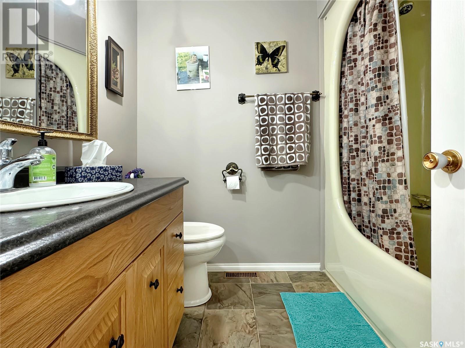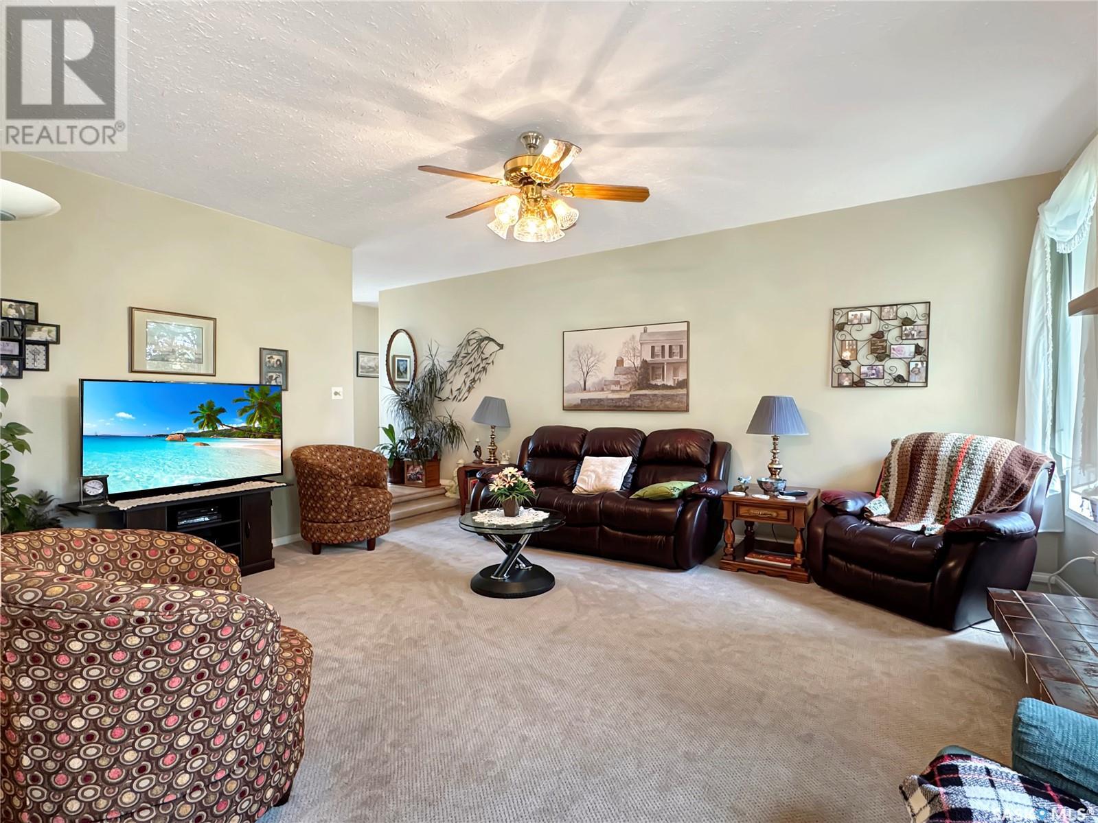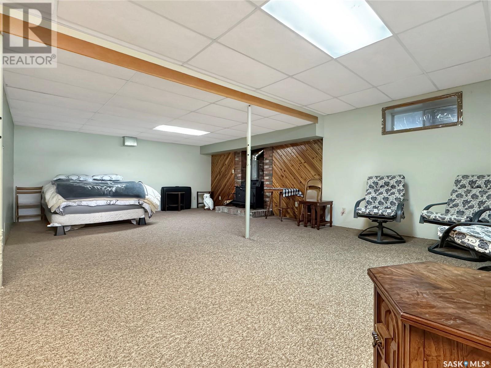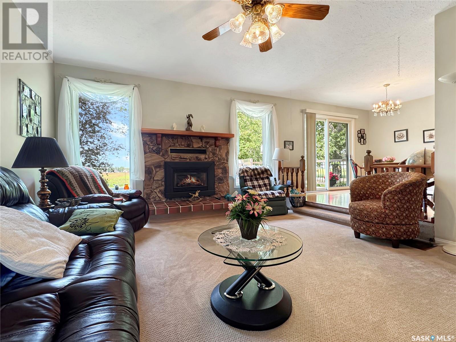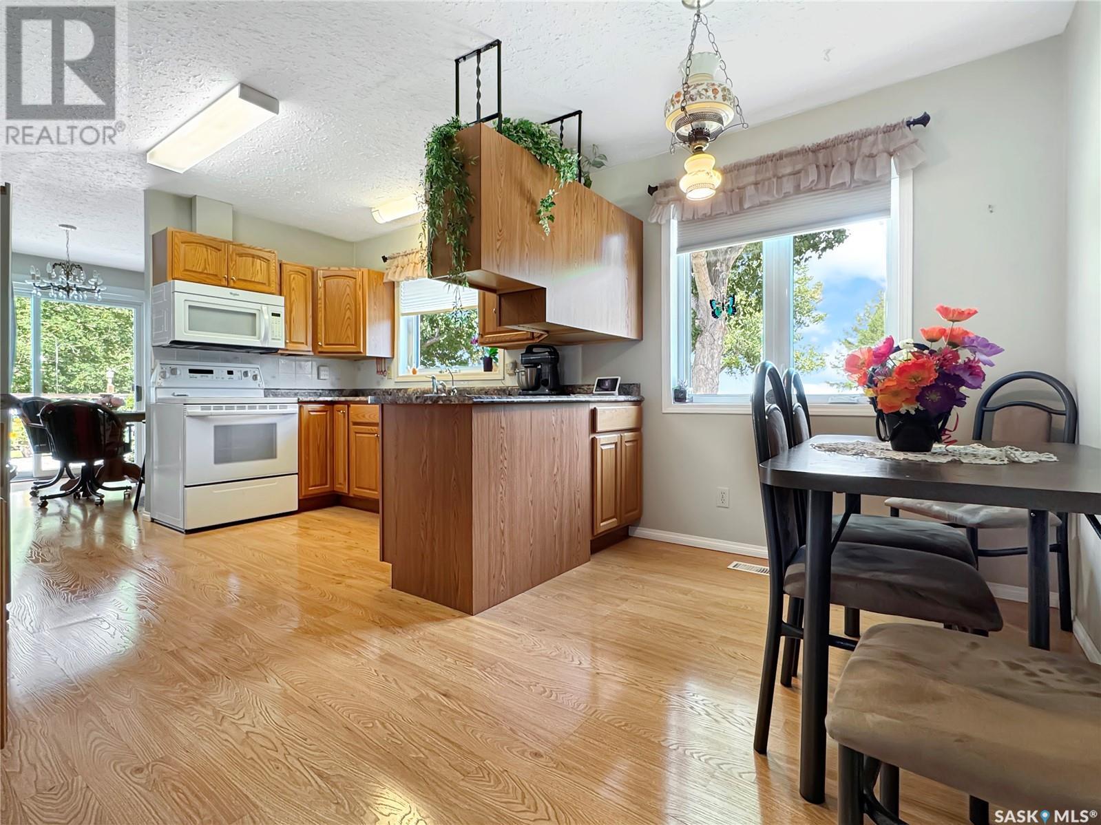Welcome to this fantastic family home located on a quiet street in the town of Cut Knife. Built in 1981, this 1,393 sq. ft. bungalow offers 3 bedrooms and 2 bathrooms on the main floor. One bedroom is currently used as a main floor laundry, but with laundry also available in the basement, it can easily be converted back to suit your needs and primary bedroom offering a 3 pc ensuite. The spacious kitchen offers plenty of cupboard space, while the dining area leads to a backyard deck—perfect for relaxing or entertaining. A cozy sunken living room with a natural gas fireplace creates a warm and inviting space. The basement features a wood-burning fireplace, a two-piece bathroom, and lots of storage. Updates include replaced windows, a new water heater (2020), front door, deck (2011), and cupboards and countertops. This home is wheelchair accessible and includes a mobility lift to the basement. The low-maintenance yard includes paved front access, and the backyard backs onto open fields for a peaceful, acreage-like feel. A double attached garage completes this well-rounded property. Don’t miss your chance to own this move-in-ready gem—book your showing today! (id:43042)