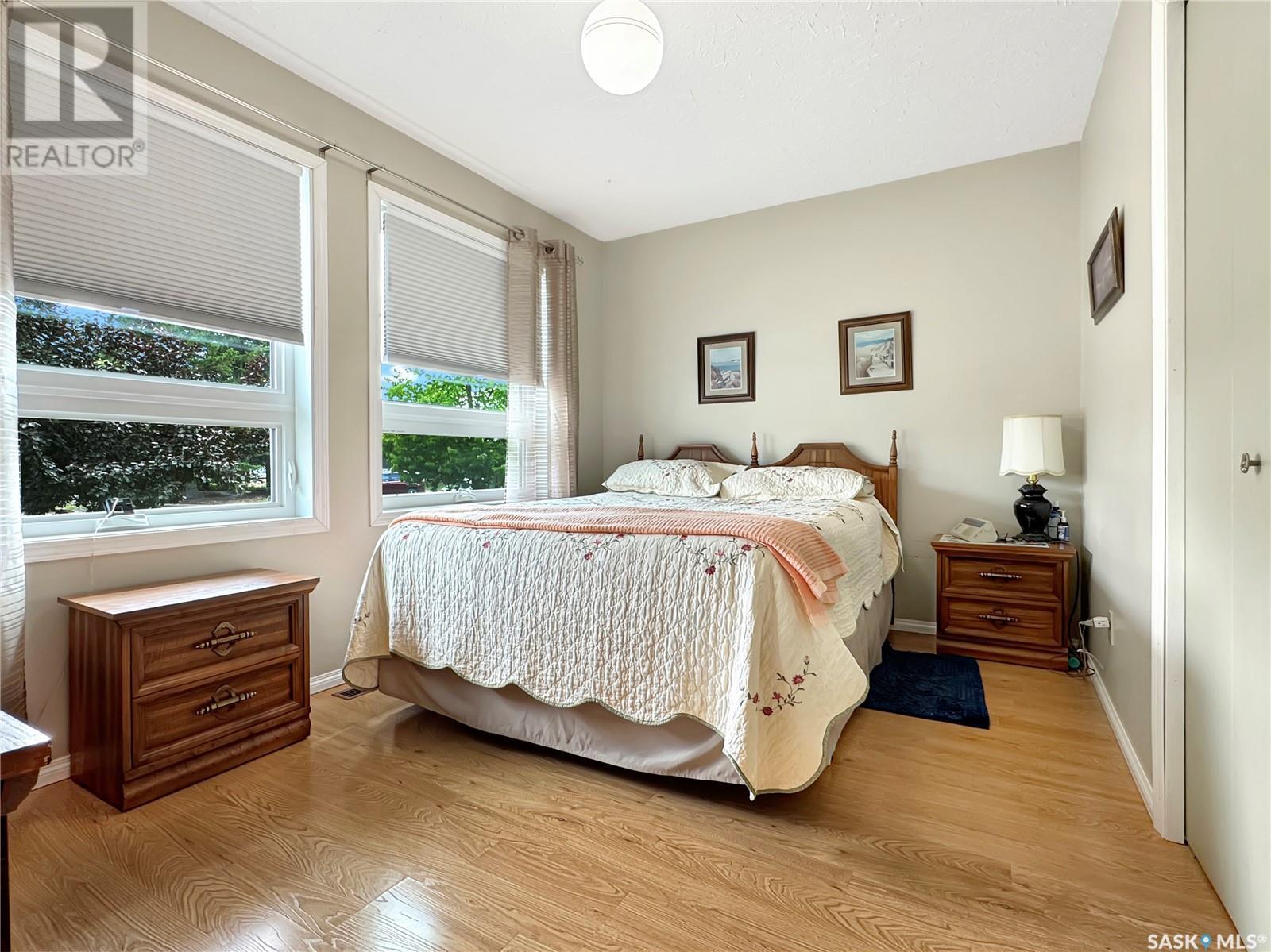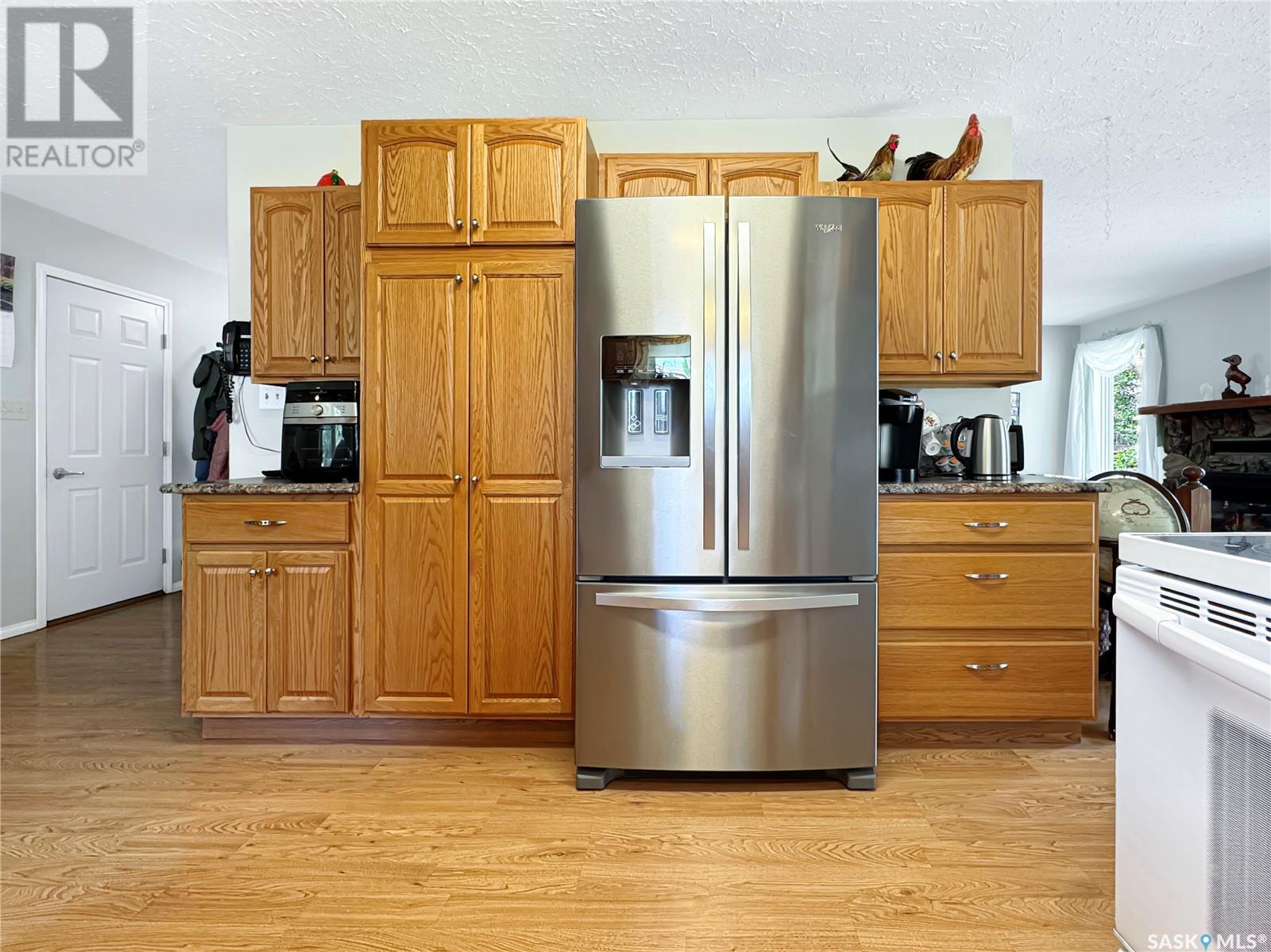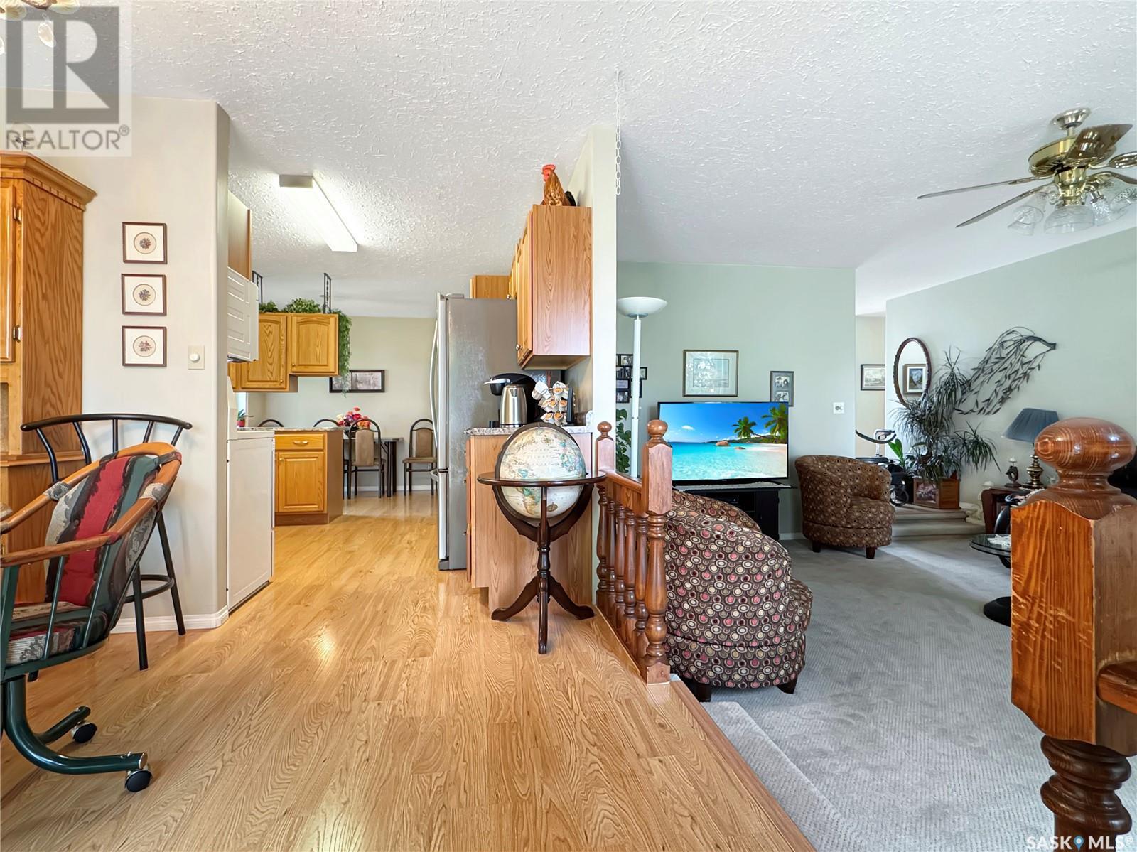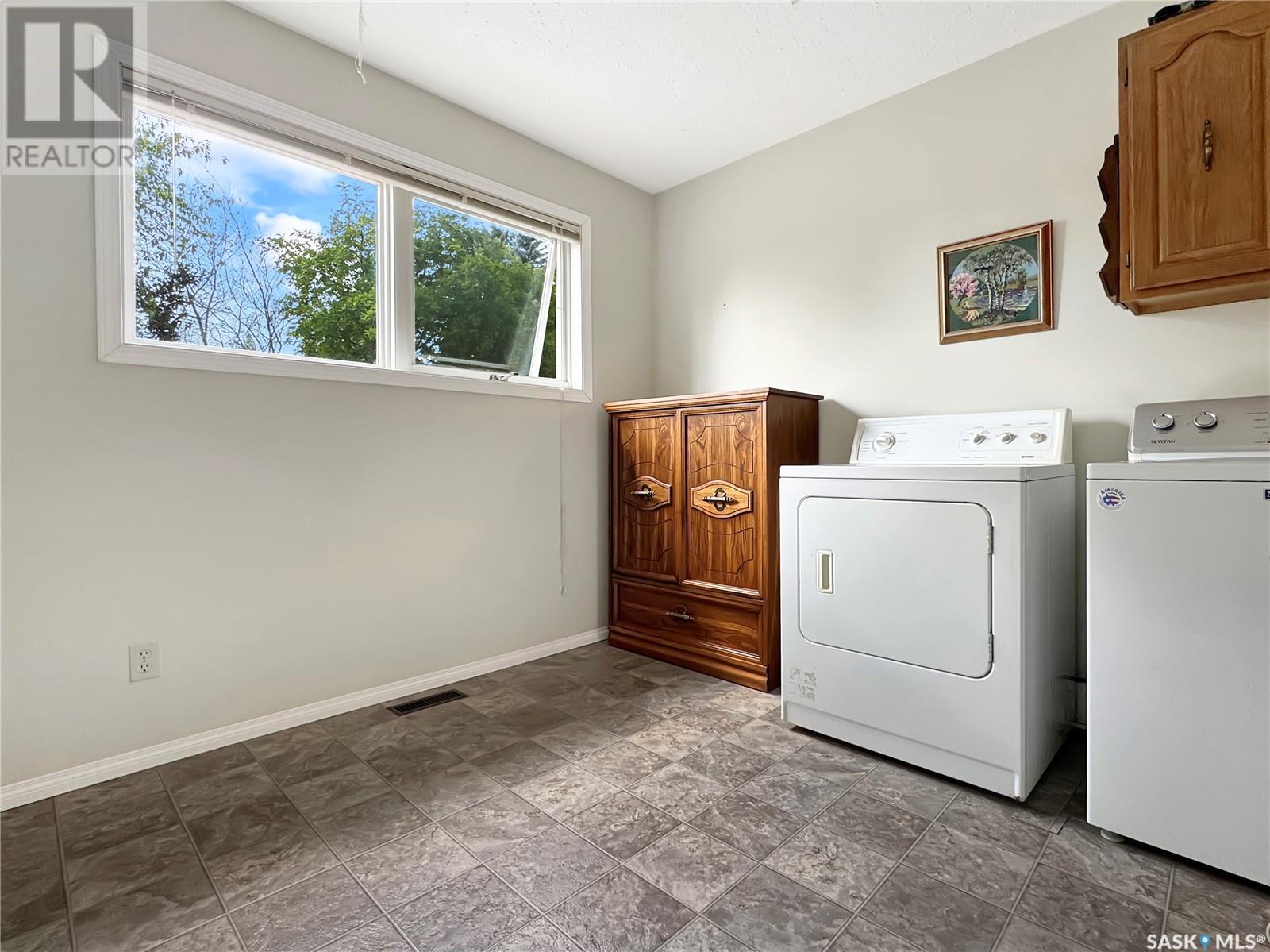 Welcome to this fantastic family home located on a quiet street in the town of Cut Knife. Built in 1981, this 1,393 sq. ft. bungalow offers 3 bedrooms and 2 bathrooms on the main floor. One bedroom is currently used as a main floor laundry, but with laundry also available in the basement, it can easily be converted back to suit your needs and primary bedroom offering a 3 pc ensuite. The spacious kitchen offers plenty of cupboard space, while the dining area leads to a backyard deck—perfect for relaxing or entertaining. A cozy sunken living room with a natural gas fireplace creates a warm and inviting space. The basement features a wood-burning fireplace, a two-piece bathroom, and lots of storage. Updates include replaced windows, a new water heater (2020), front door, deck (2011), and cupboards and countertops. This home is wheelchair accessible and includes a mobility lift to the basement. The low-maintenance yard includes paved front access, and the backyard backs onto open fields for a peaceful, acreage-like feel. A double attached garage completes this well-rounded property. Don’t miss your chance to own this move-in-ready gem—book your showing today! (id:43042)