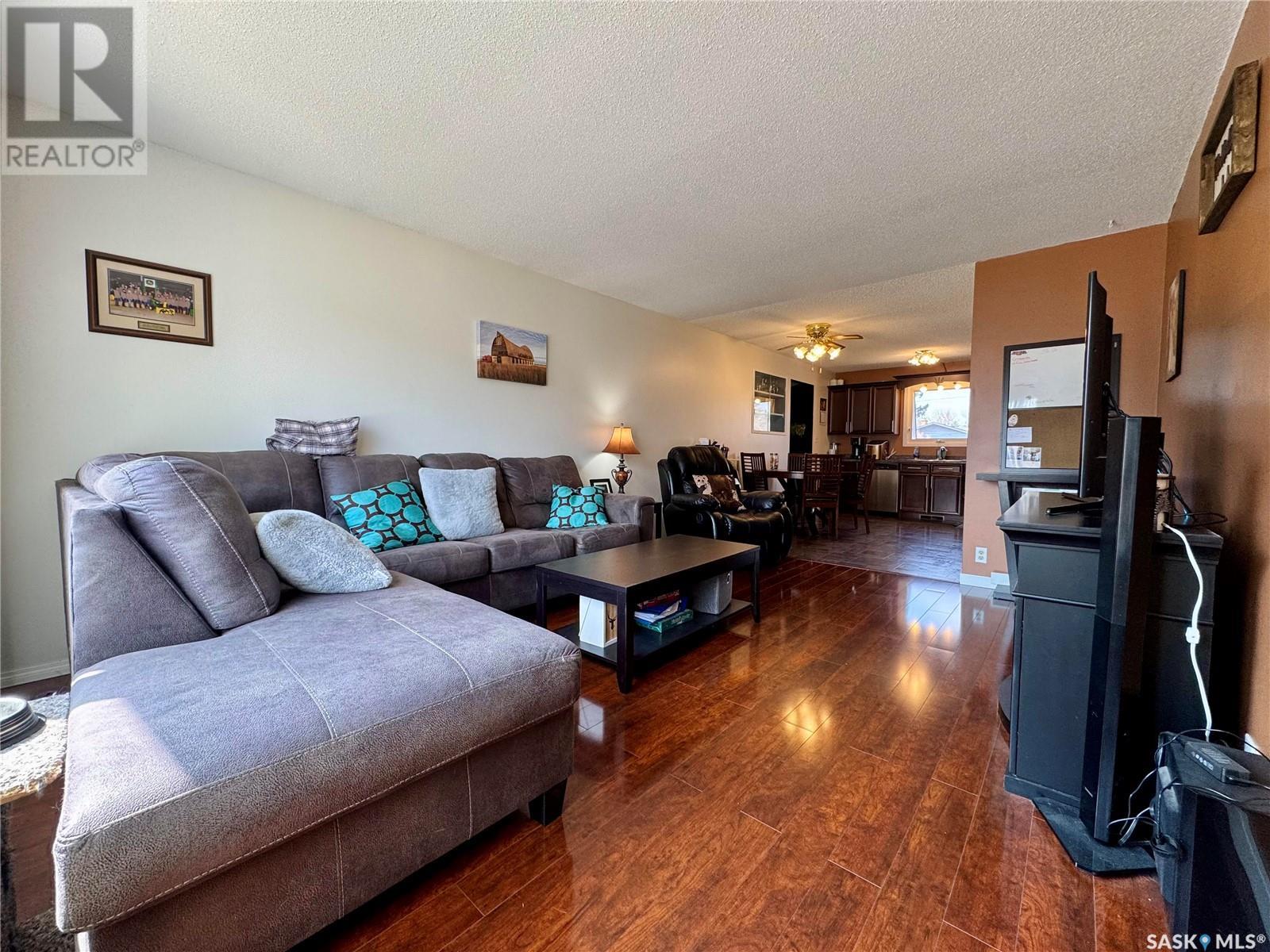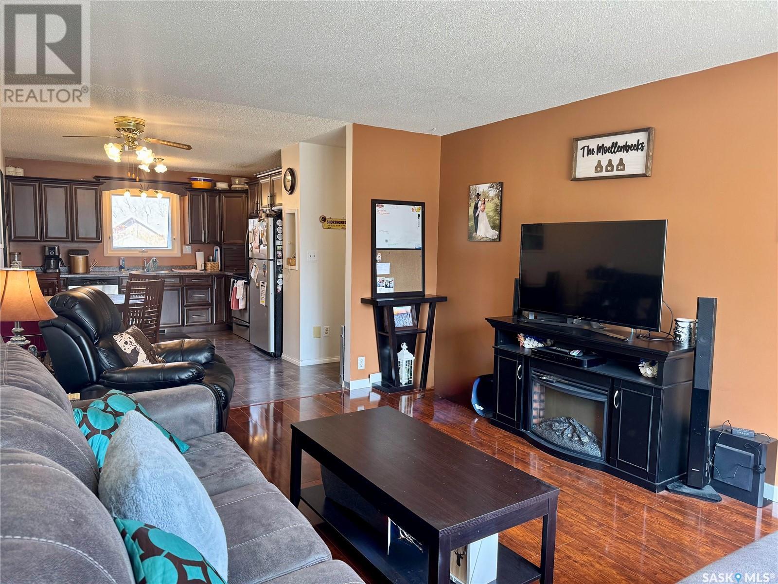 Welcome to Englefeld — a thriving community just 20 minutes east of Humboldt on Highway 5! Home to major employers like Koenders Manufacturing and Schulte Industries, Englefeld offers small-town living with big opportunities. This well-maintained 960 sq ft home features three bedrooms — two on the main level and one downstairs — plus two bathrooms- one 4 pc on the main floor and one 2 pc with rough in for shower in basement for added convenience. The main floor showcases beautiful engineered hardwood flooring and an updated kitchen, ideal for everyday living and entertaining. You’ll love the ease of main floor laundry! The large basement rec room provides plenty of space for family gatherings, hobbies, or a home gym. An attached single garage, fully insulated, adds year-round convenience. Step outside to a partially fenced backyard complete with a patio and fire pit area — perfect for relaxing evenings. Don’t miss your chance to enjoy affordable, quality living in a welcoming community. Call today to book your private showing! (id:43042)