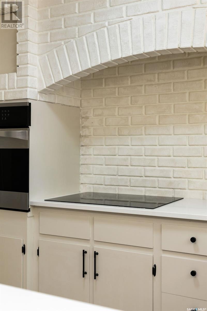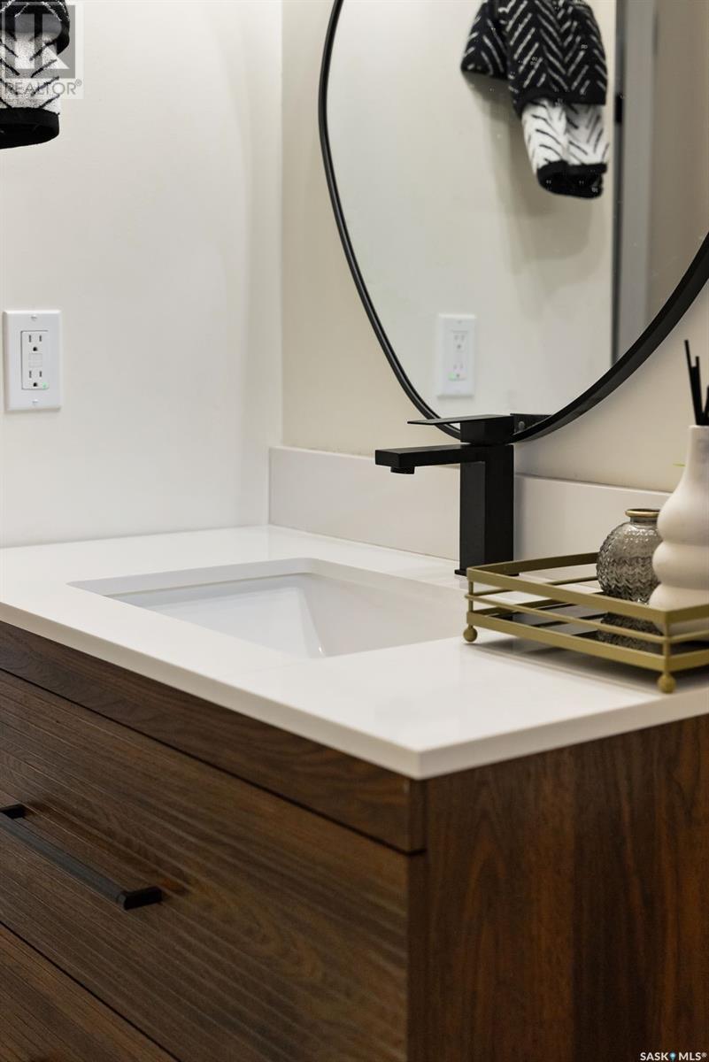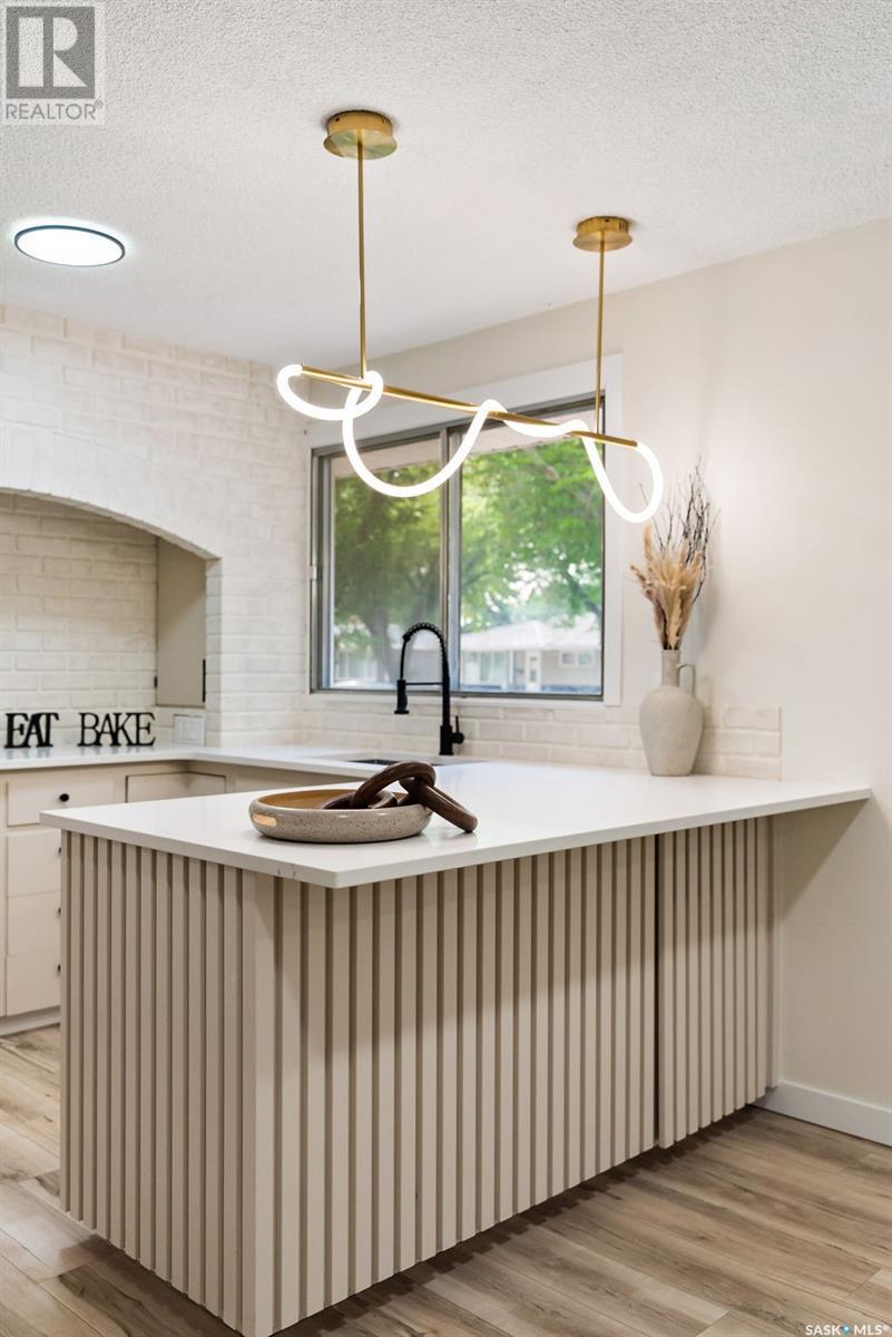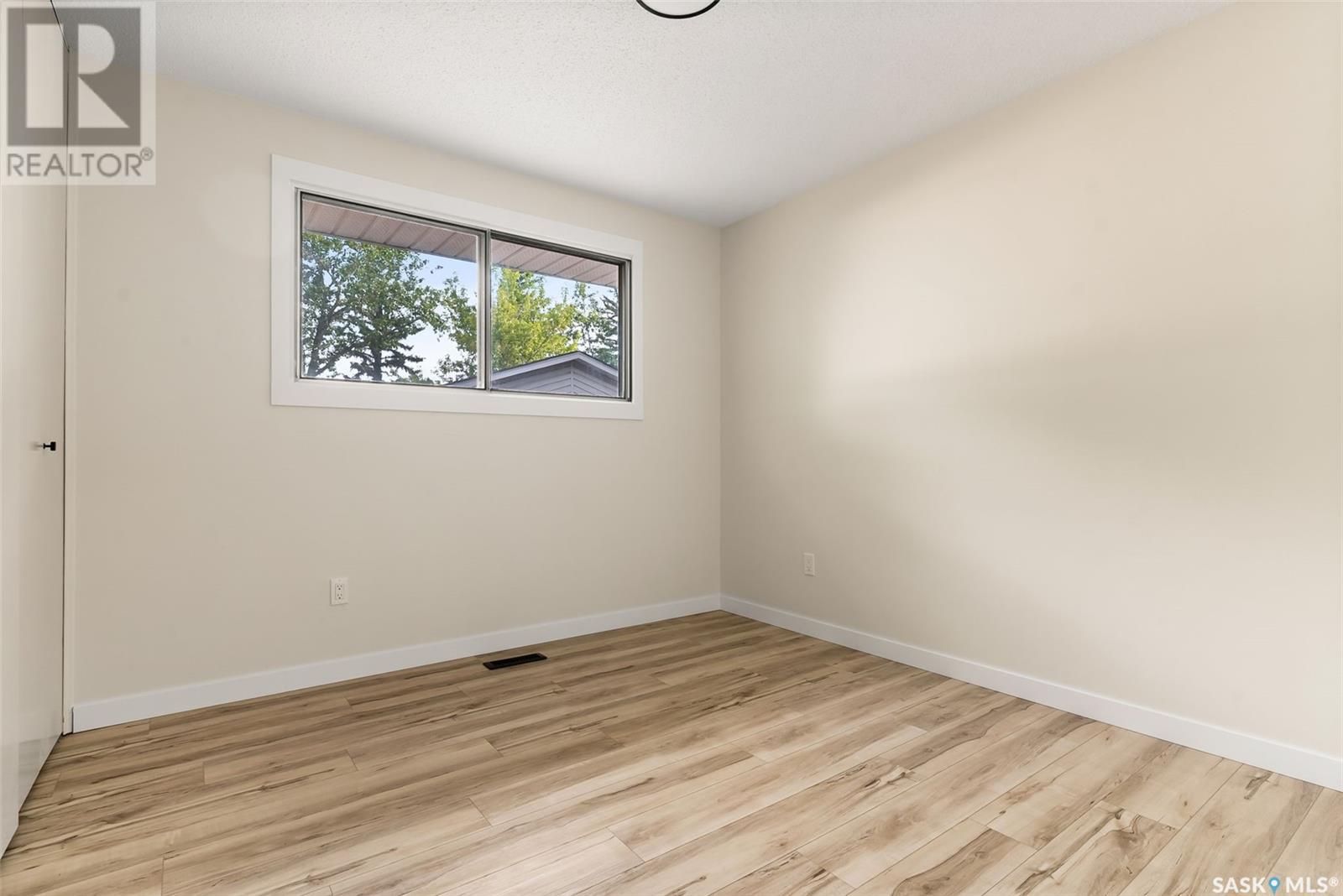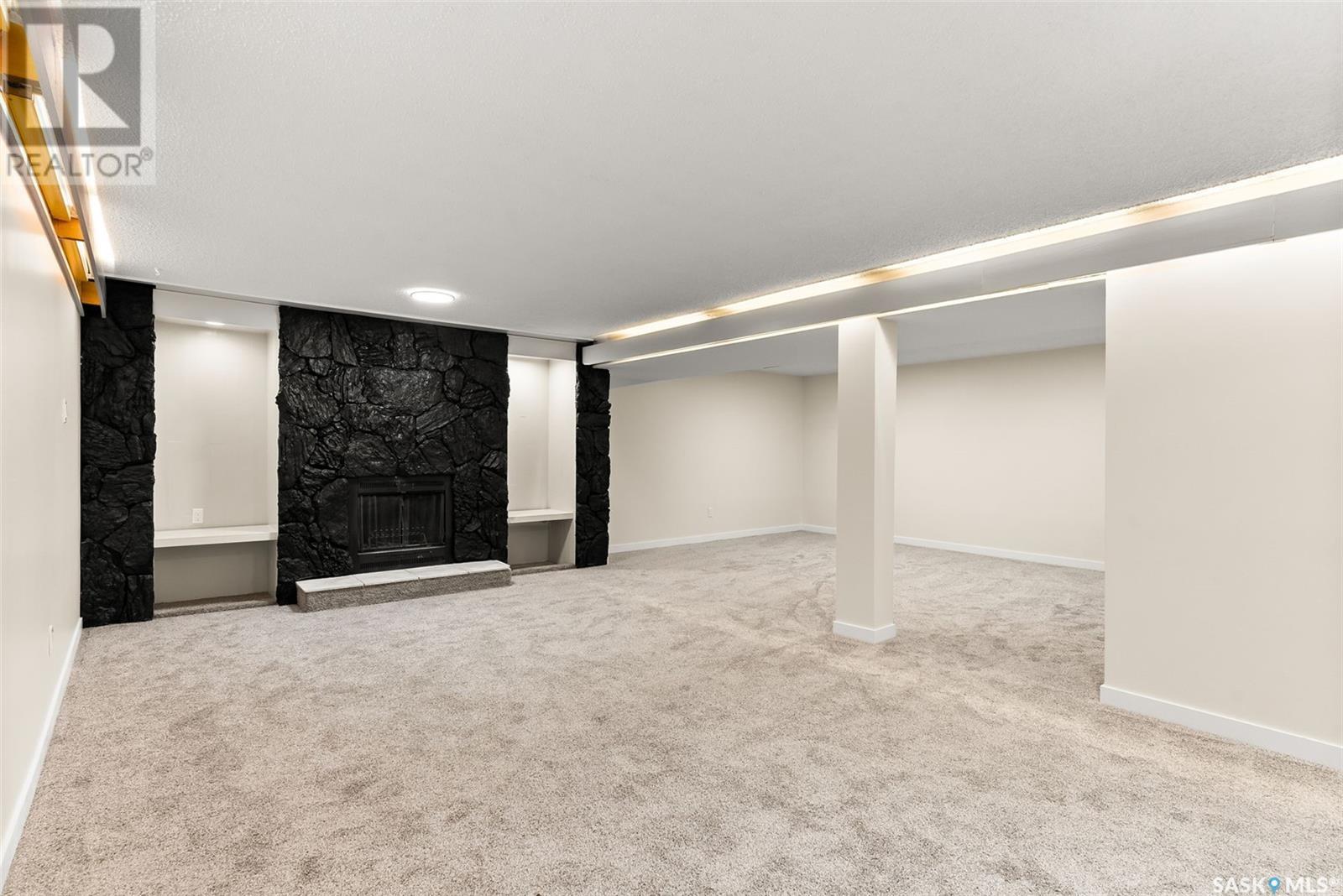 Welcome to 3230 6th Avenue North, a beautifully renovated bungalow nestled in the heart of Regina’s family-friendly Coronation Park. This stunning 1,147 sq ft home blends timeless charm with stylish modern upgrades and is move-in ready from top to bottom. Step inside to a spacious living room where natural light pours through large front windows, highlighting the elegant vinyl plank flooring and a custom black feature wall with built-in shelving and an electric fireplace that adds warmth and flair. The bright kitchen is a true standout with its arched white brick surround, striking island with vertical panel detailing and updated lighting and a cozy dining area with views of the mature front yard complete the main space. The main floor offers three well-sized bedrooms and a gorgeous 4-piece bathroom featuring designer tile work, a floating vanity, matte black fixtures, and a unique wood-accented shower wall. Downstairs, the fully developed basement boasts a massive rec room with new carpet and a striking black stone fireplace, an additional 3-piece bathroom with stylish finishes, and a den ideal for a home office or guest room. Outside, the low-maintenance yard offers plenty of potential and leads to a rare double detached garage with back lane access, providing ample storage and parking. Located on a quiet, tree-lined street close to schools, parks, and all north-end amenities, this home is perfect for families, first-time buyers, or anyone looking for a turnkey property with style and function. Don’t miss your opportunity to own this beautifully updated home! (id:43042)