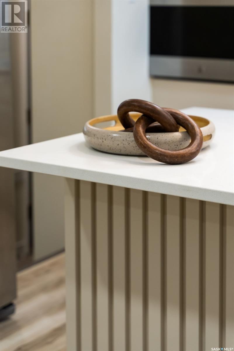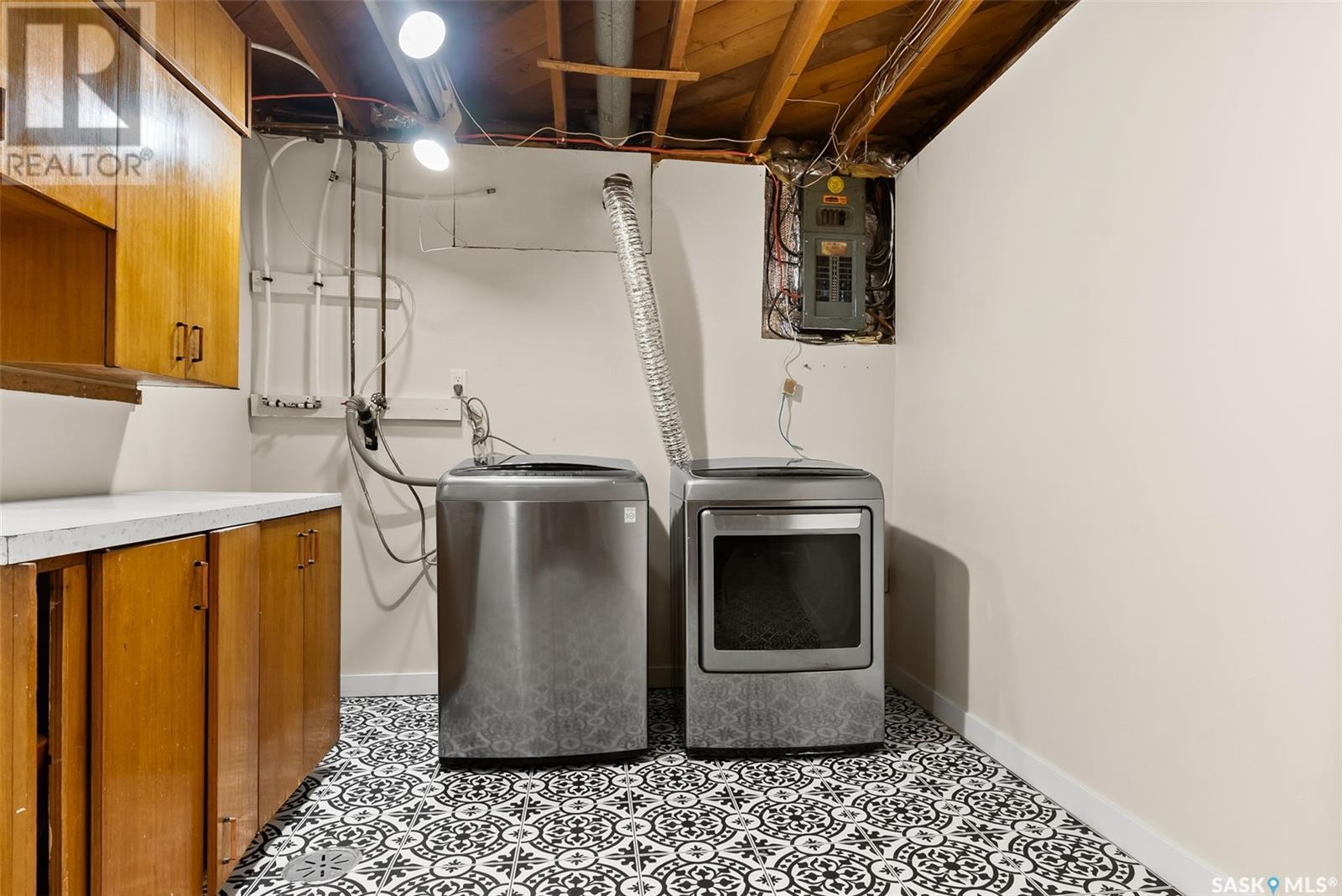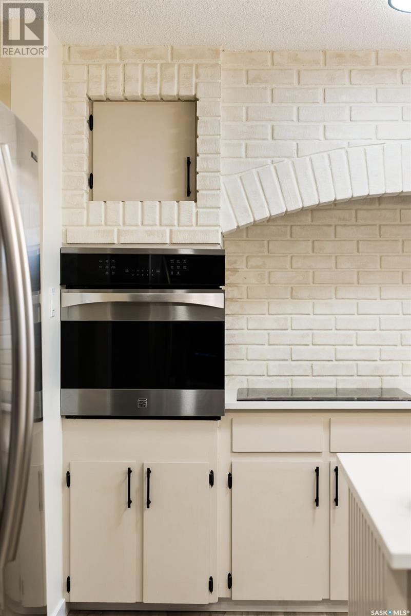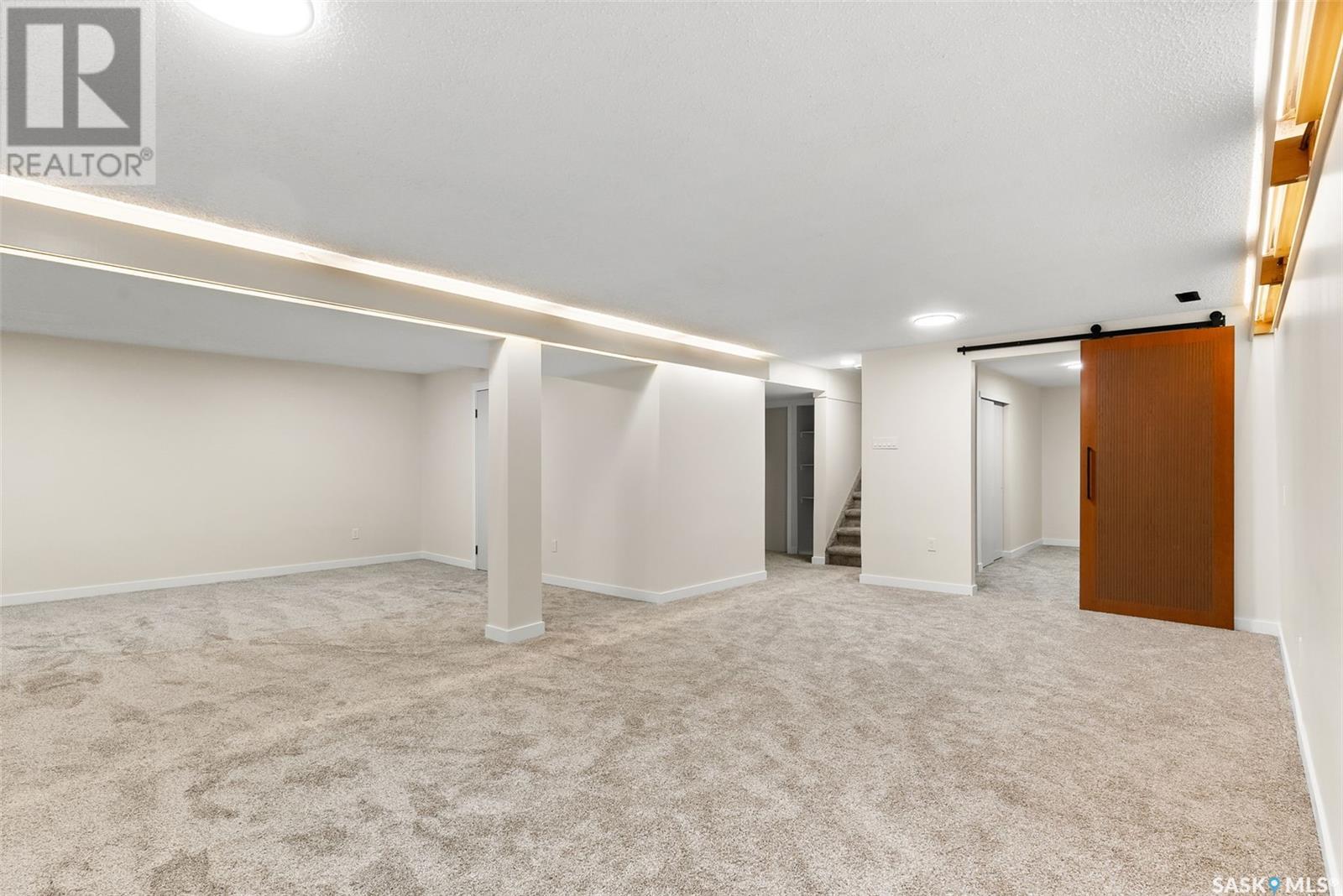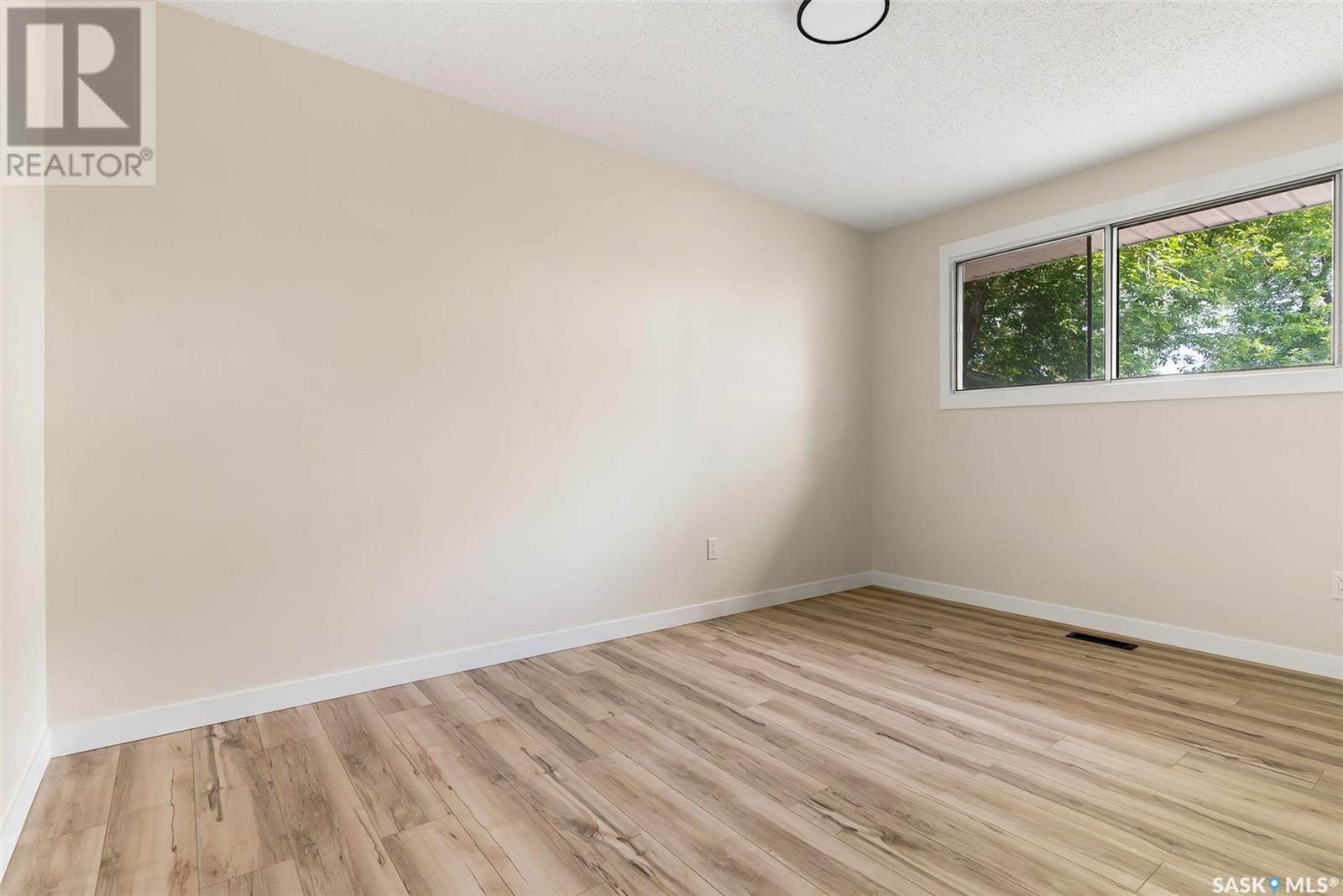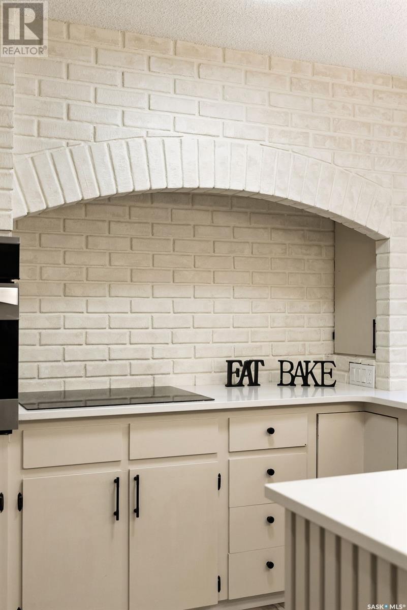 Welcome to 3230 6th Avenue North, a beautifully renovated bungalow nestled in the heart of Regina’s family-friendly Coronation Park. This stunning 1,147 sq ft home blends timeless charm with stylish modern upgrades and is move-in ready from top to bottom. Step inside to a spacious living room where natural light pours through large front windows, highlighting the elegant vinyl plank flooring and a custom black feature wall with built-in shelving and an electric fireplace that adds warmth and flair. The bright kitchen is a true standout with its arched white brick surround, striking island with vertical panel detailing and updated lighting and a cozy dining area with views of the mature front yard complete the main space. The main floor offers three well-sized bedrooms and a gorgeous 4-piece bathroom featuring designer tile work, a floating vanity, matte black fixtures, and a unique wood-accented shower wall. Downstairs, the fully developed basement boasts a massive rec room with new carpet and a striking black stone fireplace, an additional 3-piece bathroom with stylish finishes, and a den ideal for a home office or guest room. Outside, the low-maintenance yard offers plenty of potential and leads to a rare double detached garage with back lane access, providing ample storage and parking. Located on a quiet, tree-lined street close to schools, parks, and all north-end amenities, this home is perfect for families, first-time buyers, or anyone looking for a turnkey property with style and function. Don’t miss your opportunity to own this beautifully updated home! (id:43042)