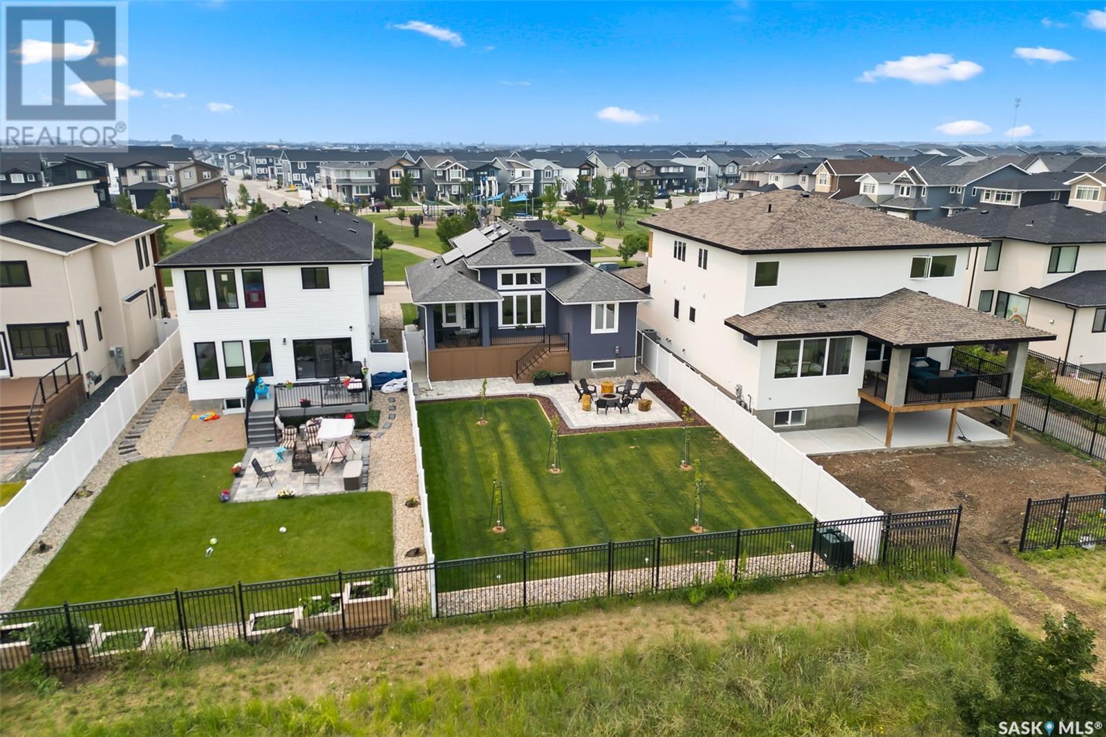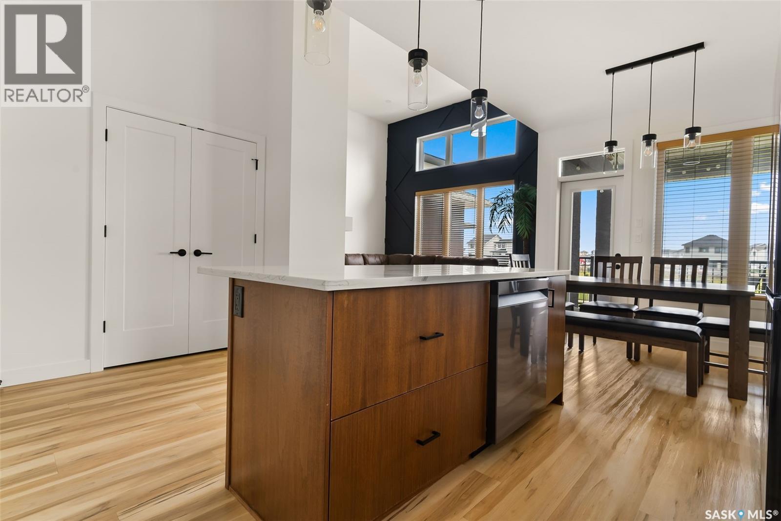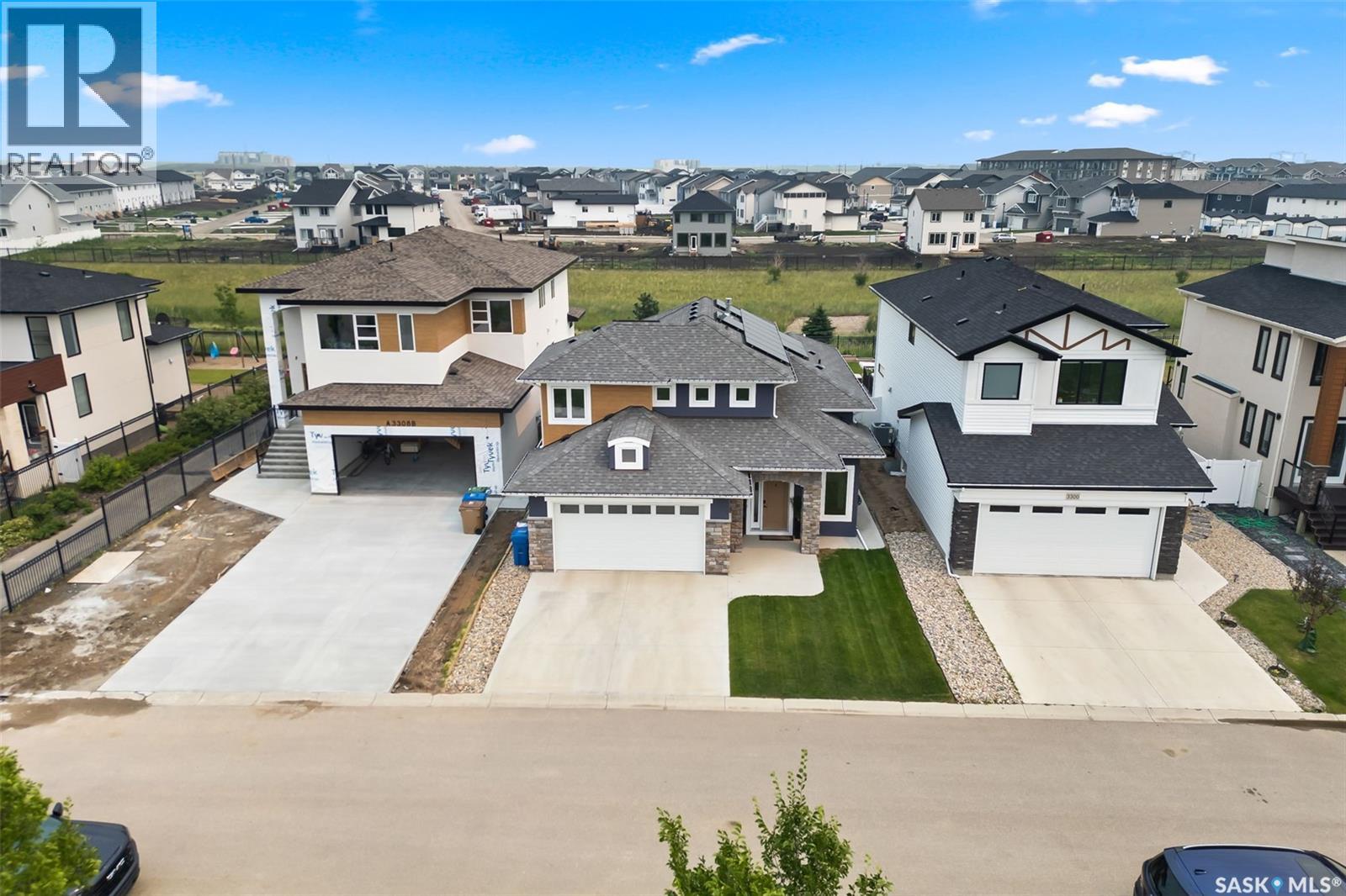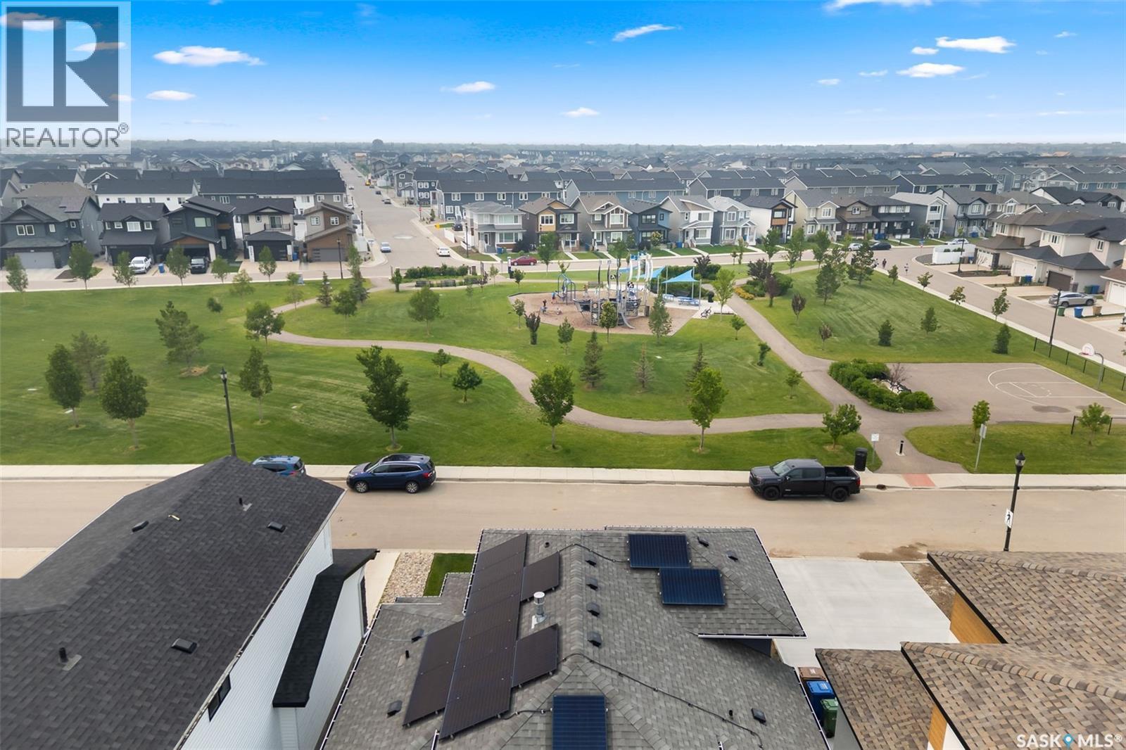 It is not everyday that you find a home that backs onto green-space but also fronts a park. This stunning custom built bi-level is located across from the Crosbie “Pirate” Park on a quiet cul de sac and has no backyard neighbours. Curb appeal is 10/10 with the dark acrylic stucco, stone accents, and a covered front entry. Step inside to the spacious foyer that has direct access to your heated double attached garage. The open concept main floor has a beautiful two-toned kitchen with tall cabinets, stainless steel appliances, and smooth quartz countertops. Plus you have a walk-in pantry for extra storage. The living room has imoressive tall ceilings with a wall of windows. Here you can relax with the family and enjoy the warmth of the gas fireplace. From the dining area you have access to your rear deck and yard. There are two bedrooms on this level along with a 4 piece main bathroom and laundry. On the second floor in the private primary retreat with 4 piece ensuite that has dual vanities and a large walk-in closet. The basement has been fully developed with family room and games room area. The built-in bookshelf is perfect for your reading collection or showcasing your trinkets. The under the stair storage is perfect for a kids secret play space. The 4th bedroom will delight any teenager or it could be a perfect guest room or office. Then completing the basement is a 4 piece bathroom. Outside you have a large partially covered composite deck with storage underneath. The front and rear yards are nicely landscaped with the rear yard being fully fenced. You will surely want to roast marshmallows around the fire-pit. A bonus feature of this home are the solar panels that are so efficient ent that you will only have to pay the SaskPower minimum monthly fee. This home is in walking distance to the Elementary Schools and you will have easy access to Starbucks for your mornin... As per the Seller’s direction, all offers will be presented on 2025-07-18 at 12:00 PM (id:43042)