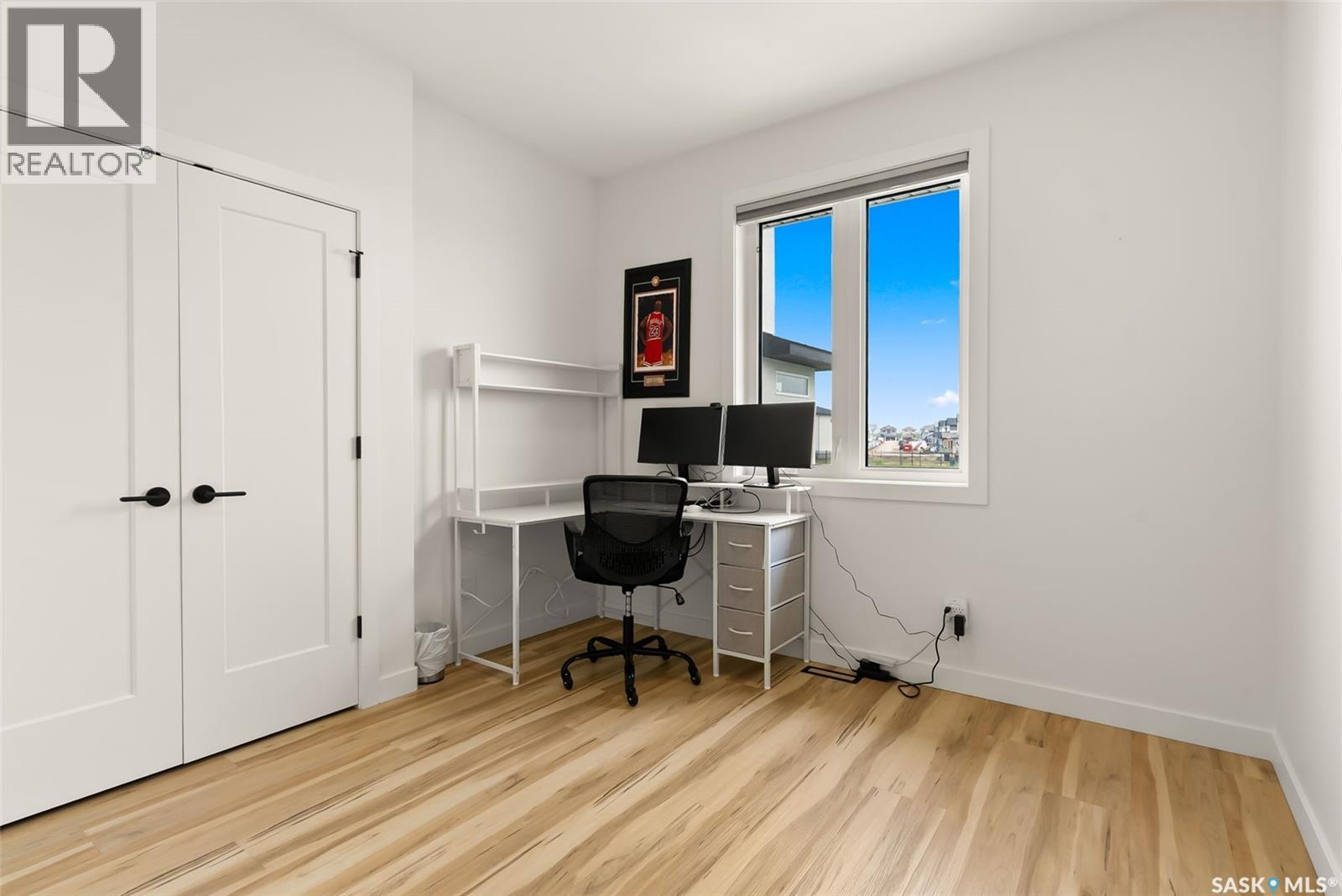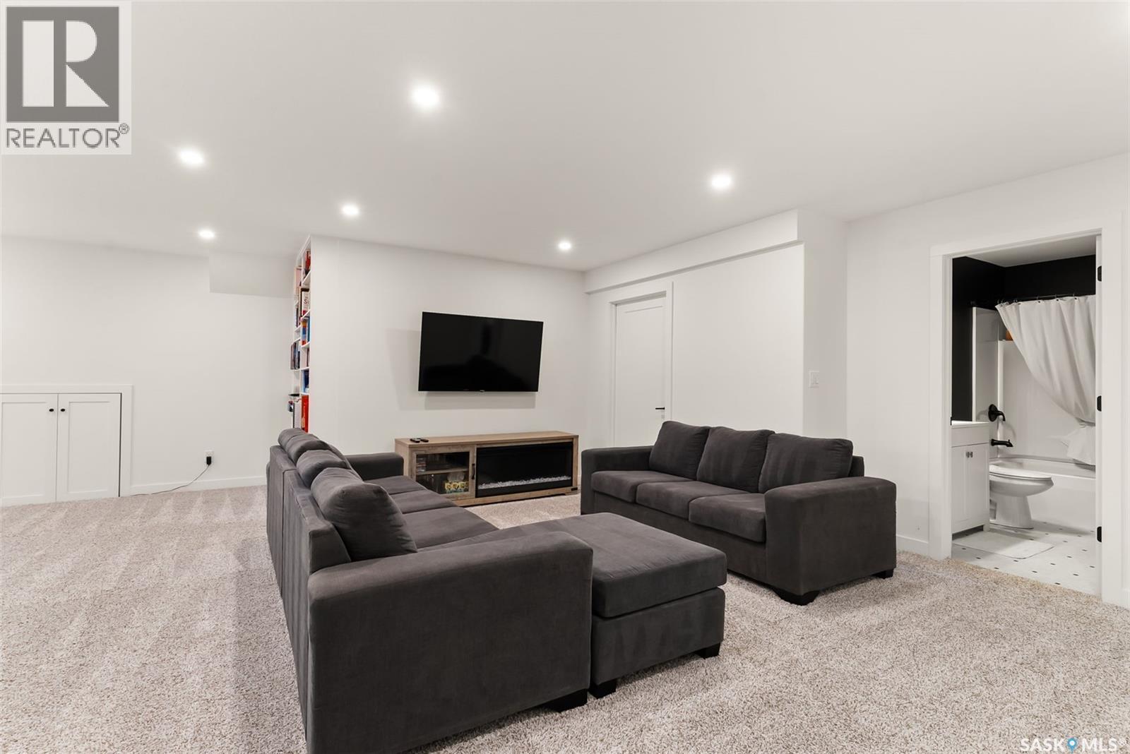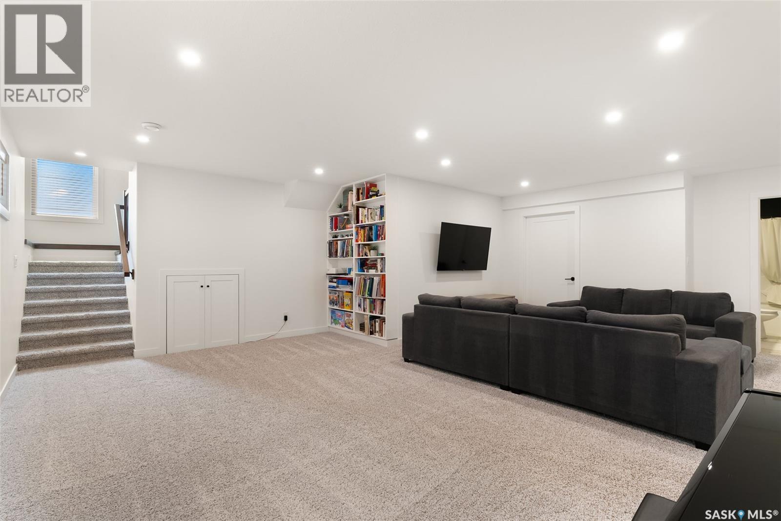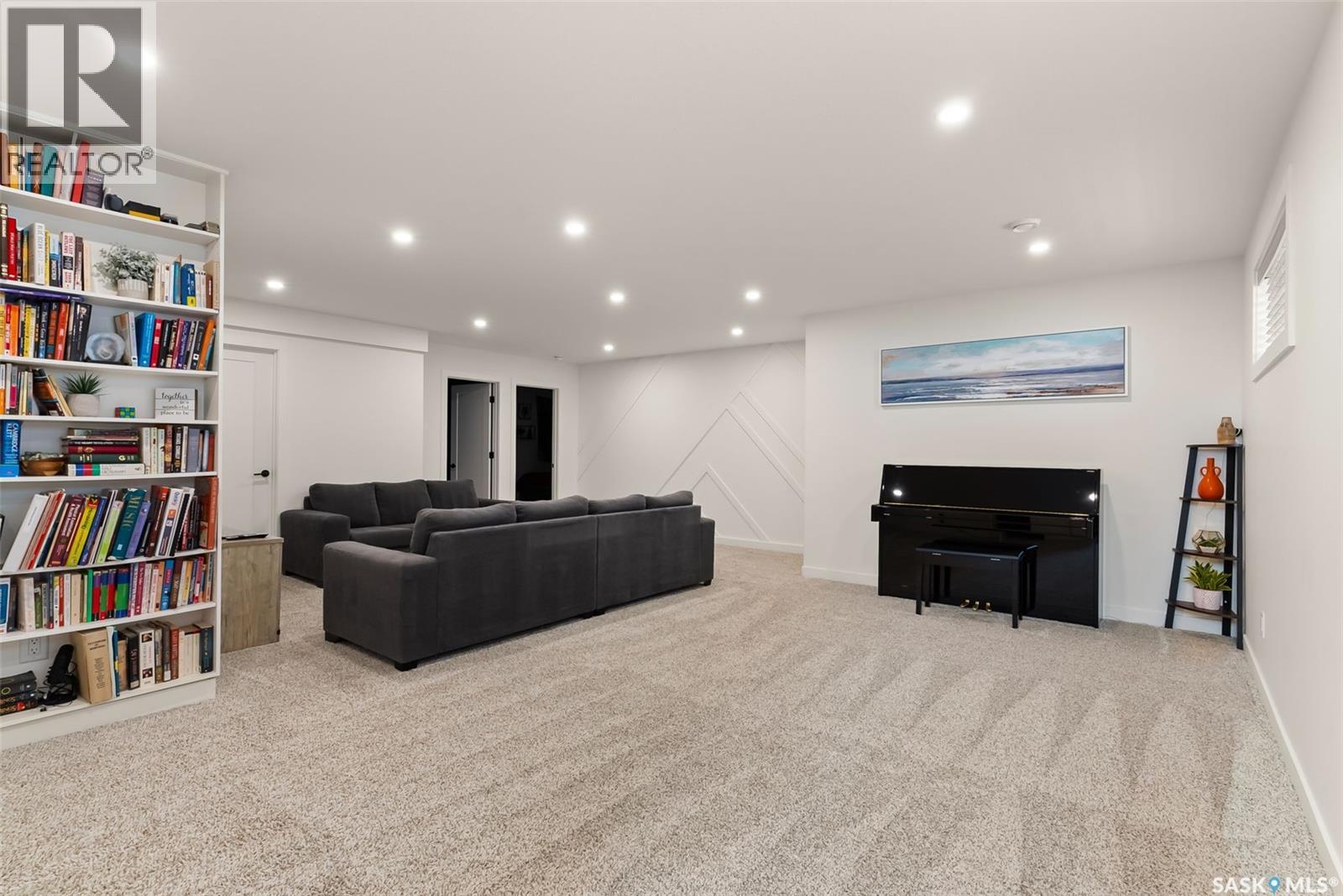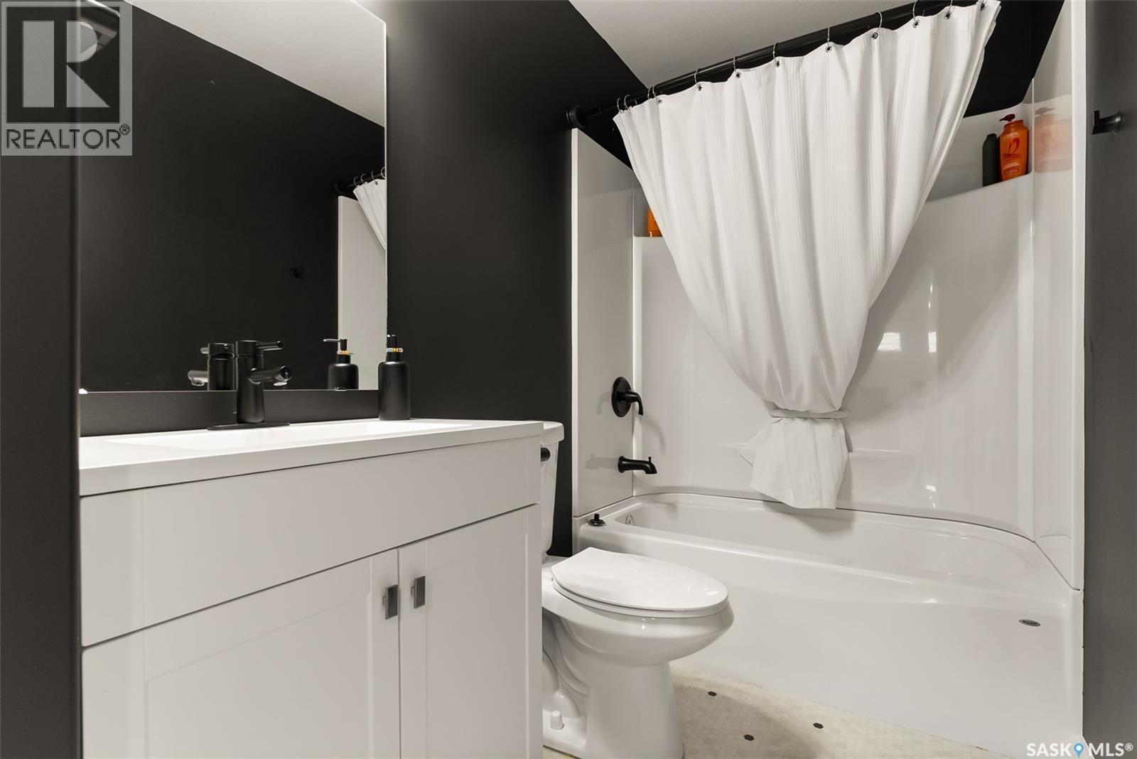 It is not everyday that you find a home that backs onto green-space but also fronts a park. This stunning custom built bi-level is located across from the Crosbie “Pirate” Park on a quiet cul de sac and has no backyard neighbours. Curb appeal is 10/10 with the dark acrylic stucco, stone accents, and a covered front entry. Step inside to the spacious foyer that has direct access to your heated double attached garage. The open concept main floor has a beautiful two-toned kitchen with tall cabinets, stainless steel appliances, and smooth quartz countertops. Plus you have a walk-in pantry for extra storage. The living room has imoressive tall ceilings with a wall of windows. Here you can relax with the family and enjoy the warmth of the gas fireplace. From the dining area you have access to your rear deck and yard. There are two bedrooms on this level along with a 4 piece main bathroom and laundry. On the second floor in the private primary retreat with 4 piece ensuite that has dual vanities and a large walk-in closet. The basement has been fully developed with family room and games room area. The built-in bookshelf is perfect for your reading collection or showcasing your trinkets. The under the stair storage is perfect for a kids secret play space. The 4th bedroom will delight any teenager or it could be a perfect guest room or office. Then completing the basement is a 4 piece bathroom. Outside you have a large partially covered composite deck with storage underneath. The front and rear yards are nicely landscaped with the rear yard being fully fenced. You will surely want to roast marshmallows around the fire-pit. A bonus feature of this home are the solar panels that are so efficient ent that you will only have to pay the SaskPower minimum monthly fee. This home is in walking distance to the Elementary Schools and you will have easy access to Starbucks for your mornin... As per the Seller’s direction, all offers will be presented on 2025-07-18 at 12:00 PM (id:43042)