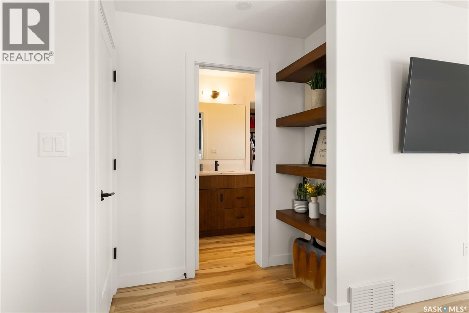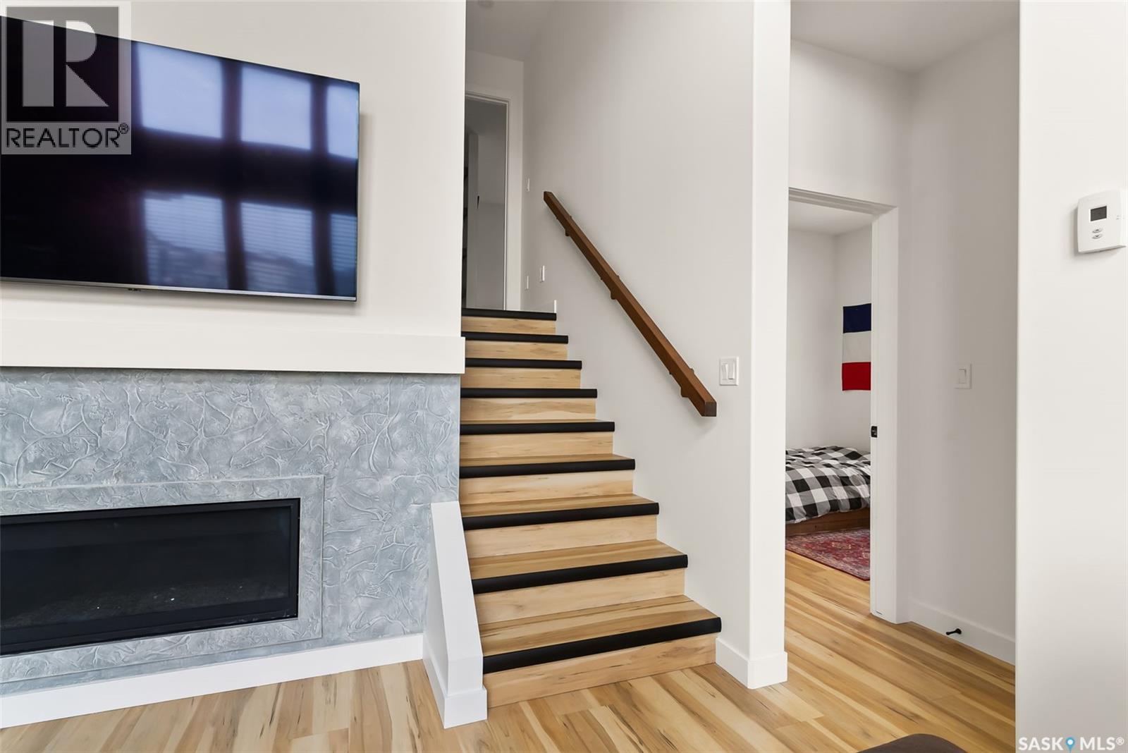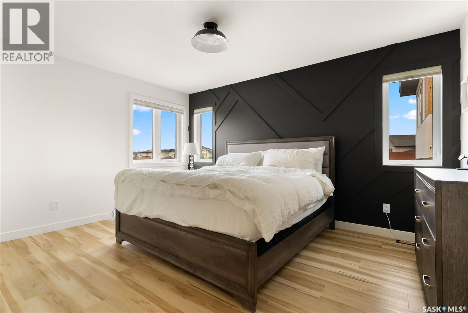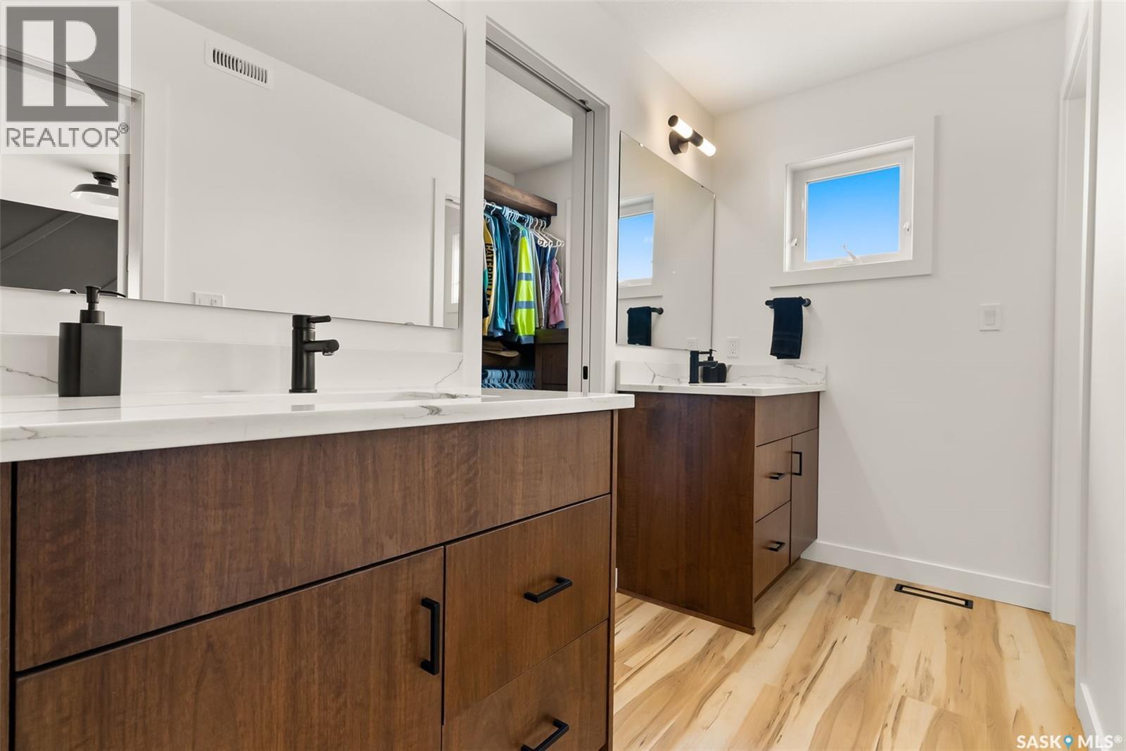 It is not everyday that you find a home that backs onto green-space but also fronts a park. This stunning custom built bi-level is located across from the Crosbie “Pirate” Park on a quiet cul de sac and has no backyard neighbours. Curb appeal is 10/10 with the dark acrylic stucco, stone accents, and a covered front entry. Step inside to the spacious foyer that has direct access to your heated double attached garage. The open concept main floor has a beautiful two-toned kitchen with tall cabinets, stainless steel appliances, and smooth quartz countertops. Plus you have a walk-in pantry for extra storage. The living room has imoressive tall ceilings with a wall of windows. Here you can relax with the family and enjoy the warmth of the gas fireplace. From the dining area you have access to your rear deck and yard. There are two bedrooms on this level along with a 4 piece main bathroom and laundry. On the second floor in the private primary retreat with 4 piece ensuite that has dual vanities and a large walk-in closet. The basement has been fully developed with family room and games room area. The built-in bookshelf is perfect for your reading collection or showcasing your trinkets. The under the stair storage is perfect for a kids secret play space. The 4th bedroom will delight any teenager or it could be a perfect guest room or office. Then completing the basement is a 4 piece bathroom. Outside you have a large partially covered composite deck with storage underneath. The front and rear yards are nicely landscaped with the rear yard being fully fenced. You will surely want to roast marshmallows around the fire-pit. A bonus feature of this home are the solar panels that are so efficient ent that you will only have to pay the SaskPower minimum monthly fee. This home is in walking distance to the Elementary Schools and you will have easy access to Starbucks for your mornin... As per the Seller’s direction, all offers will be presented on 2025-07-18 at 12:00 PM (id:43042)