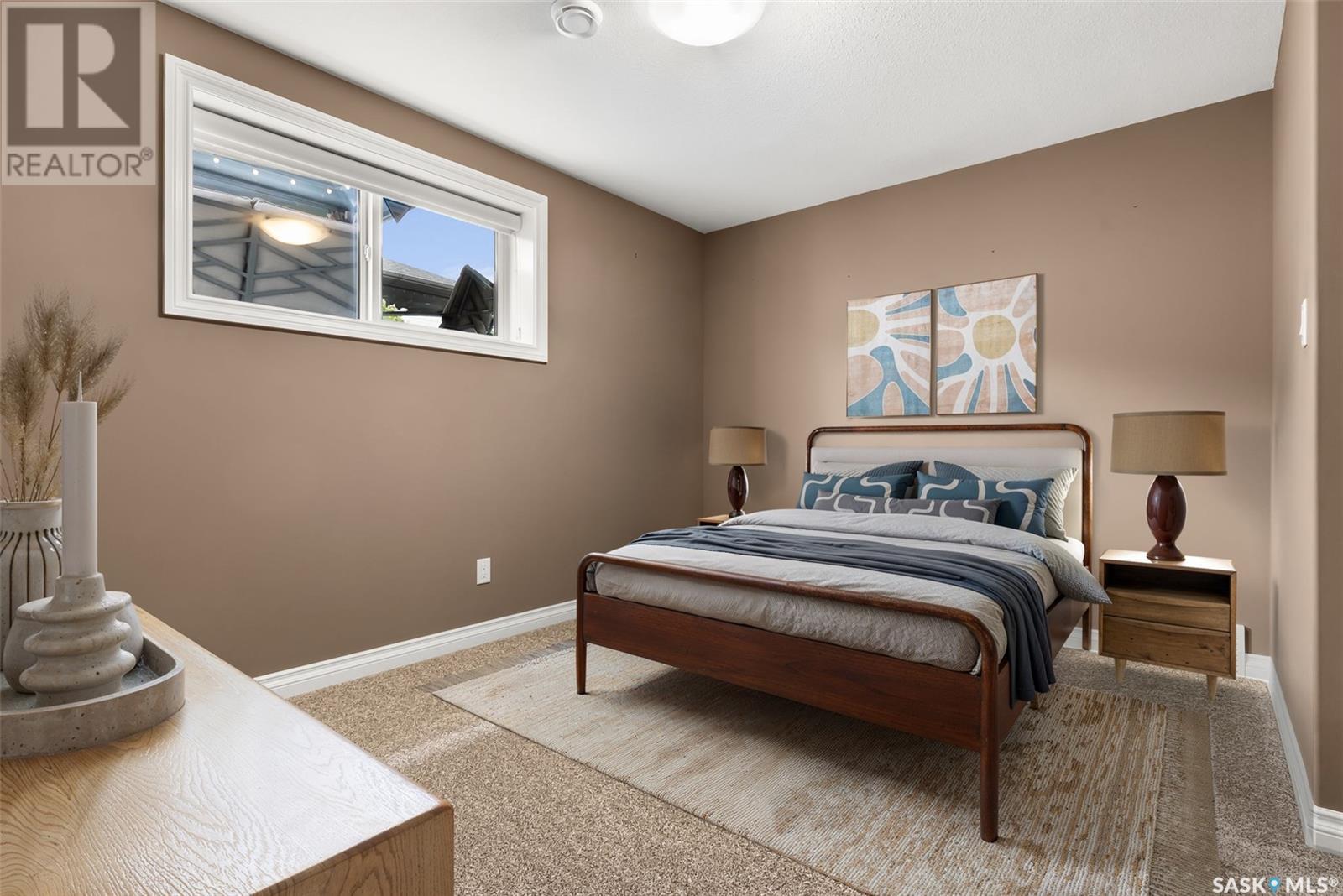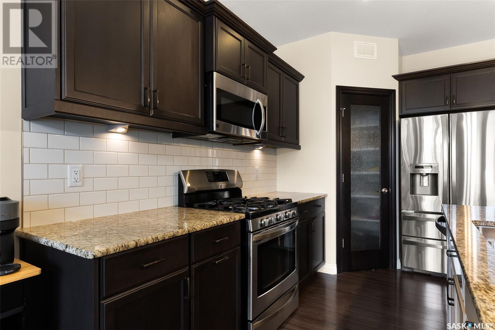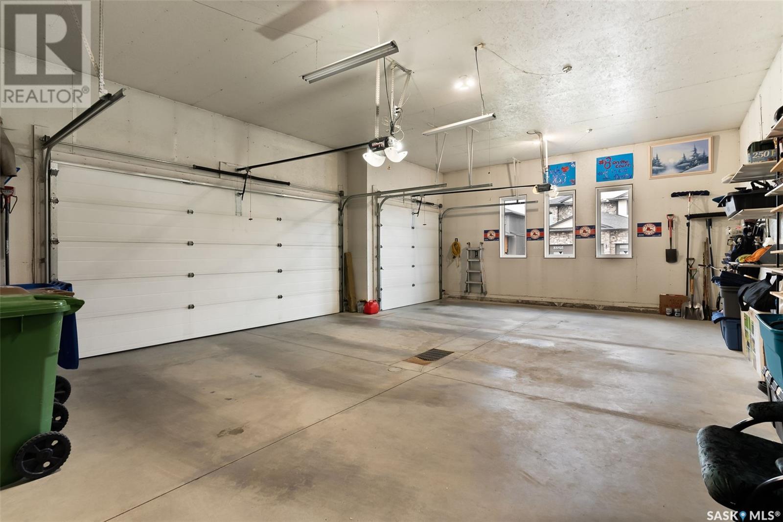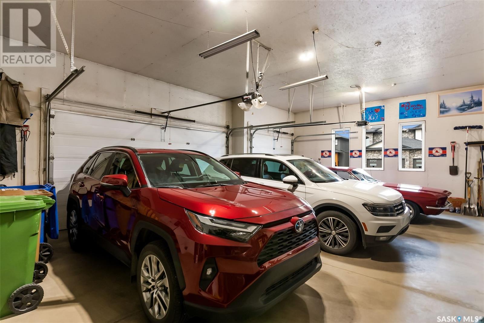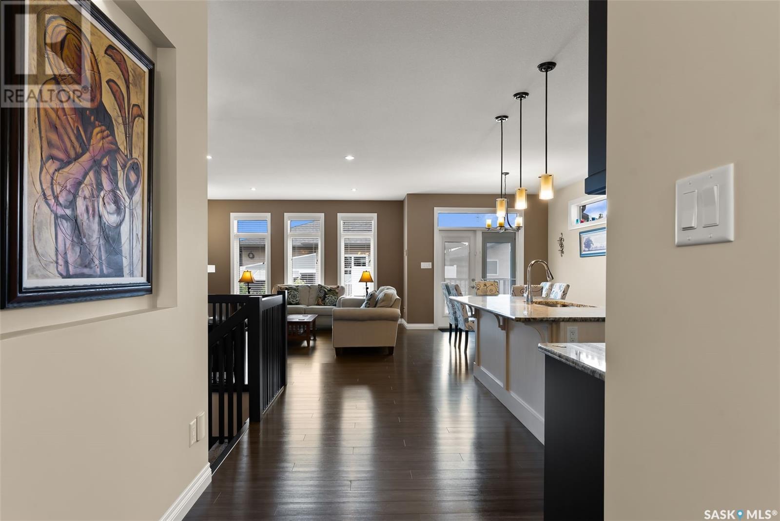 This pristine custom built 1,490 sq/ft bungalow in The Greens on Gardiner was expertly crafted and showcases quality, comfort, and thoughtful design throughout. Premium upgrades, energy-efficient systems, and an exceptionally functional layout perfect for families or downsizers. Exceptional street appeal with xeriscaped front yard with river rock, stack stone and arcylic stucco exterior, large exposed aggregate driveway to the triple attached heated garage. The open-concept main floor features 9-foot ceilings, and triple-pane windows that flood the space with natural light. The chef’s kitchen is beautifully appointed with rich maple cabinetry, gas range stove, soft-close doors and drawers, crown moulding, under-cabinet lighting, granite countertops, and a large central island with pendant lighting. The bright living room includes a gas fireplace with built-in shelving and tile surround. Spacious dining room with direct access to the backyard and additional light via the piano window. A front-facing den/office behind glass French doors offers privacy without sacrificing natural light. The office could be converted to a spare bedroom on the main floor. The spacious primary bedroom features a walk-in closet and luxurious ensuite with dual sinks, and a 5-ft walk-in shower. Completing the main floor is mudroom and designated main floor laundry area with tons of storage. The fully finished basement includes large rec room with two separate living spaces, two additional bedrooms with walk-in closets and a 4-pc bath. Oversized windows in the basement provide a comfortable feel with the additional natural light to shine through. Navien tankless water heater, high-efficiency furnace, HRV and open web truss floor system. Enjoy the beautifully landscaped, low-maintenance backyard with artificial turf, raised garden beds, gazebo and PVC fencing. The oversized triple garage is heated and finished, with a floor drain, built-in storage. Close to all east end amenities! (id:43042)