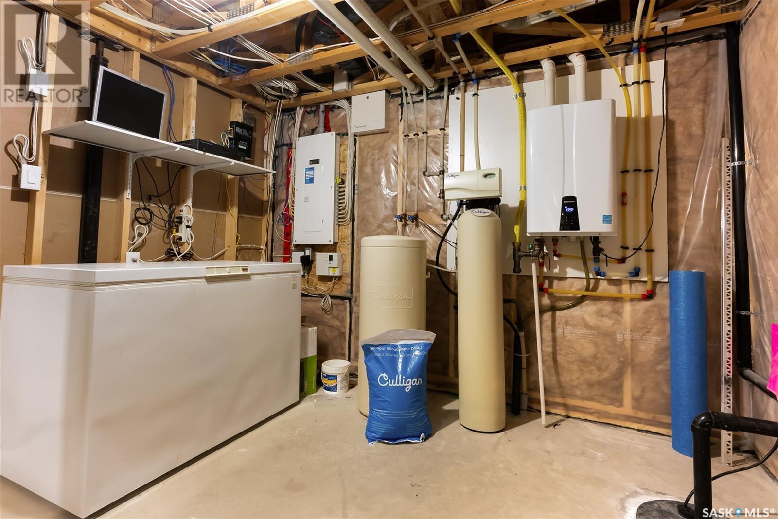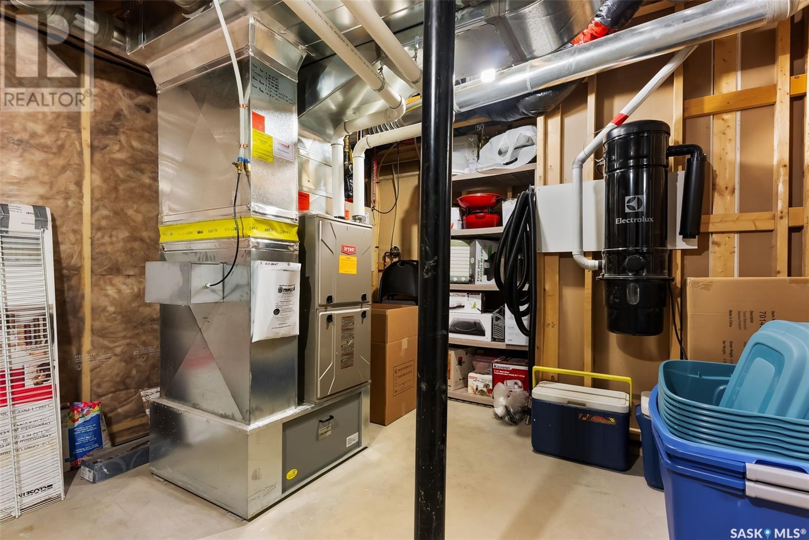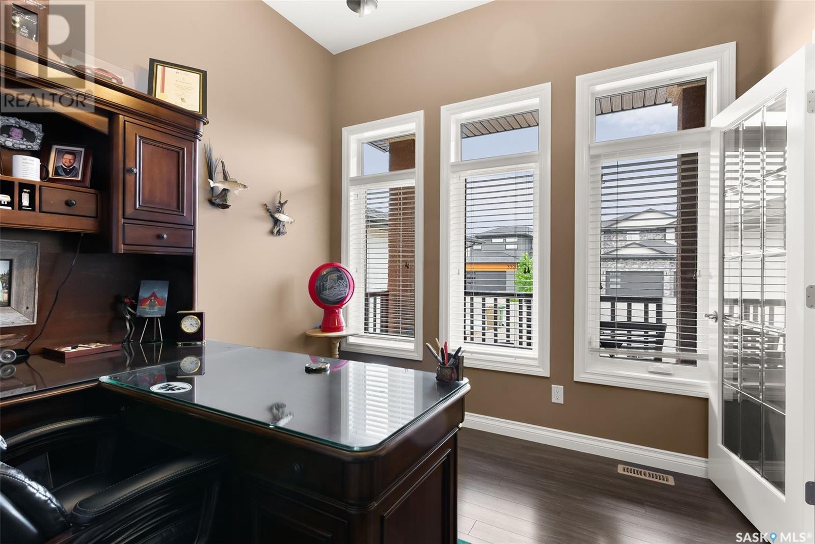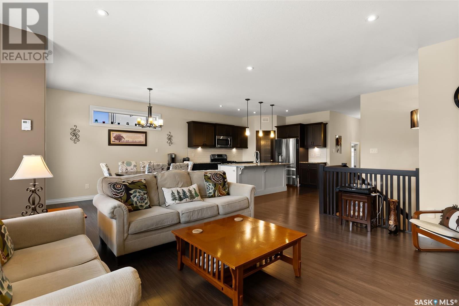 This pristine custom built 1,490 sq/ft bungalow in The Greens on Gardiner was expertly crafted and showcases quality, comfort, and thoughtful design throughout. Premium upgrades, energy-efficient systems, and an exceptionally functional layout perfect for families or downsizers. Exceptional street appeal with xeriscaped front yard with river rock, stack stone and arcylic stucco exterior, large exposed aggregate driveway to the triple attached heated garage. The open-concept main floor features 9-foot ceilings, and triple-pane windows that flood the space with natural light. The chef’s kitchen is beautifully appointed with rich maple cabinetry, gas range stove, soft-close doors and drawers, crown moulding, under-cabinet lighting, granite countertops, and a large central island with pendant lighting. The bright living room includes a gas fireplace with built-in shelving and tile surround. Spacious dining room with direct access to the backyard and additional light via the piano window. A front-facing den/office behind glass French doors offers privacy without sacrificing natural light. The office could be converted to a spare bedroom on the main floor. The spacious primary bedroom features a walk-in closet and luxurious ensuite with dual sinks, and a 5-ft walk-in shower. Completing the main floor is mudroom and designated main floor laundry area with tons of storage. The fully finished basement includes large rec room with two separate living spaces, two additional bedrooms with walk-in closets and a 4-pc bath. Oversized windows in the basement provide a comfortable feel with the additional natural light to shine through. Navien tankless water heater, high-efficiency furnace, HRV and open web truss floor system. Enjoy the beautifully landscaped, low-maintenance backyard with artificial turf, raised garden beds, gazebo and PVC fencing. The oversized triple garage is heated and finished, with a floor drain, built-in storage. Close to all east end amenities! (id:43042)