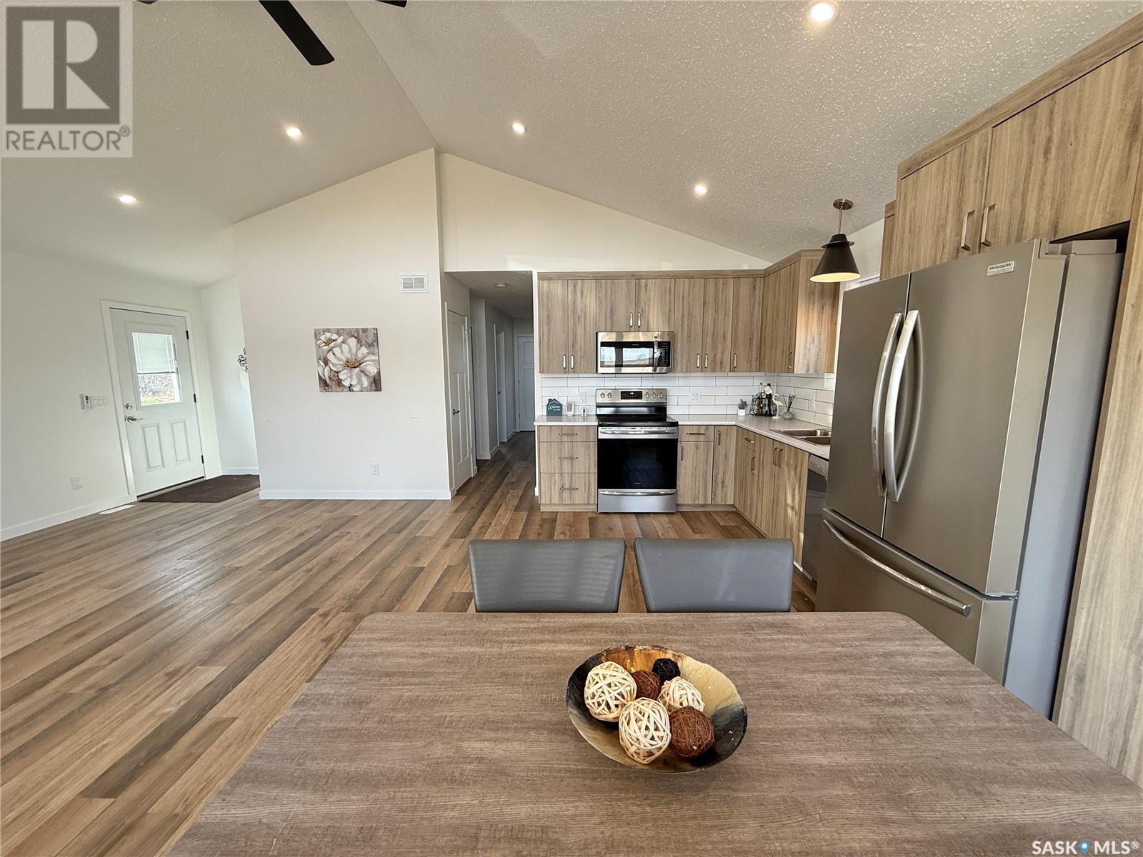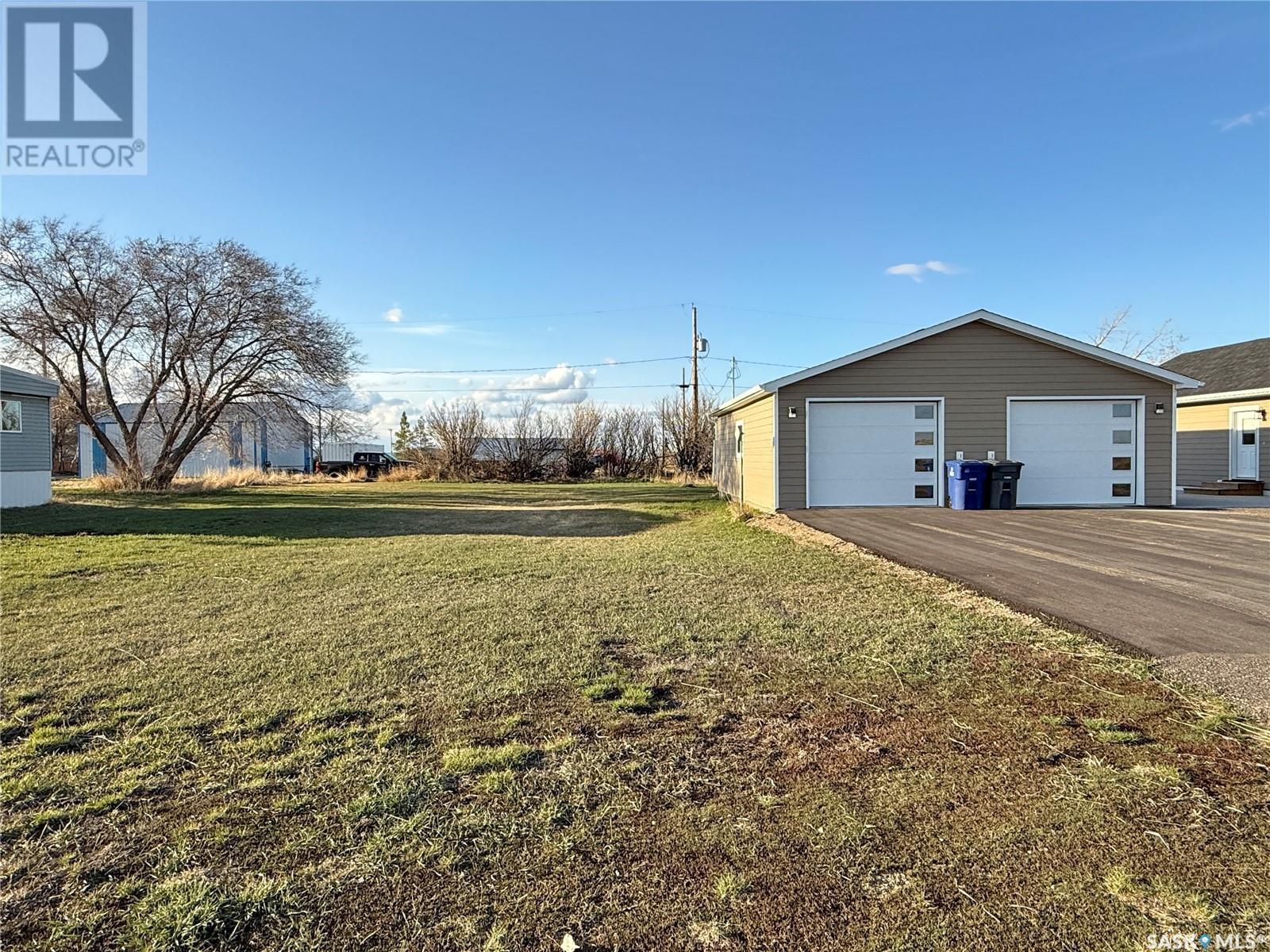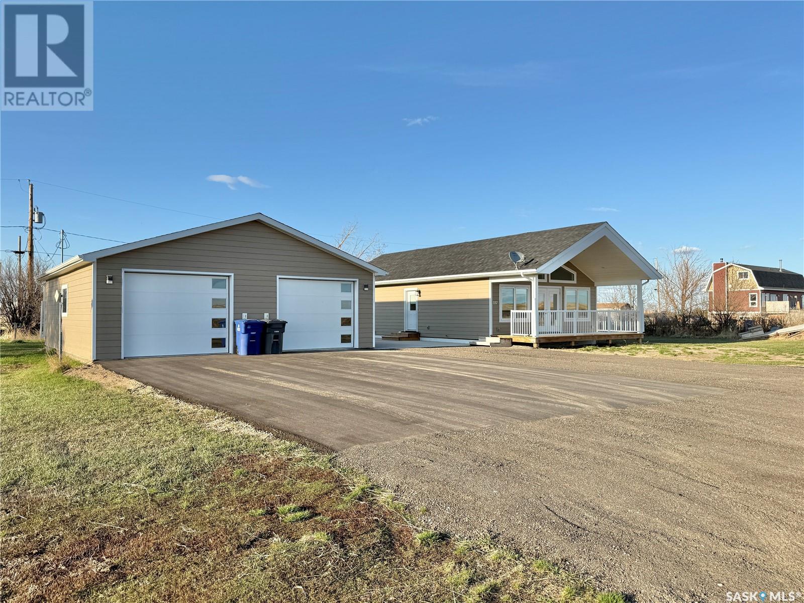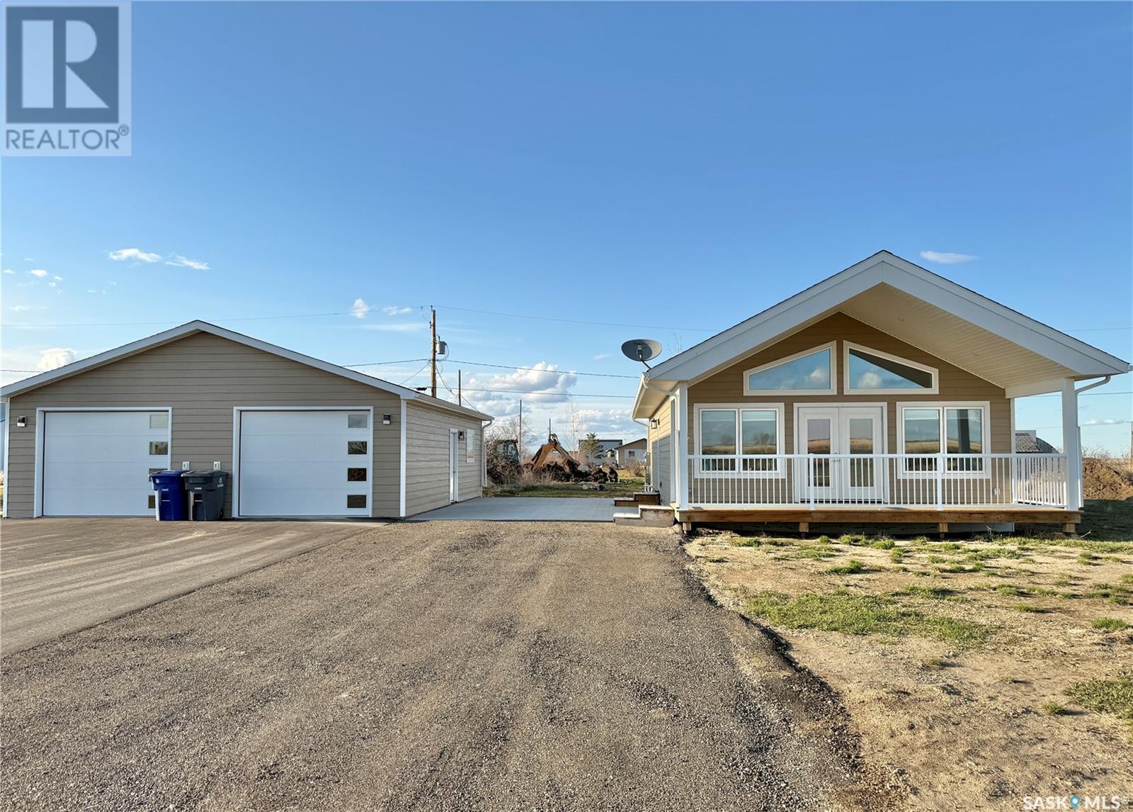 Welcome to the charming Village of Broderick, SK. Located just a short drive from Outlook, where all desired amenities are available, and only 50 minutes from Saskatoon. This delightful home has 1008 sq ft. of living space with three bedrooms and one bathroom. The third bedroom currently serves as laundry room but can also accommodate a desk for office use. This well-maintained property has numerous features, including; vinyl plank flooring, soft-close cabinets, tile backsplash, high-end Bosch appliances, a ceiling fan, triple-pane windows, new septic system installed during construction, a sump pump, satellite dish, a spacious and dry concrete crawl space for storage, an 8x24 deck, central air conditioning, an air exchanger, on-demand hot water, and a Generac generator. The garage is a 'standout' feature, measuring 30x34 with Trusscore walls, insulated & heated, high ceilings, two 8x10 doors, and a large asphalt driveway. This is a car lovers dream! Additionally, a sizable concrete pad connects the house to the garage which is an ideal space for enjoying coffee with family and friends. With 7 lots included (25 ft lots) 0.482 acres; the west 50x120 lot is available to develop if you wish. This gem of a home is not to be missed. (Tax amt to be verified) (id:43042)