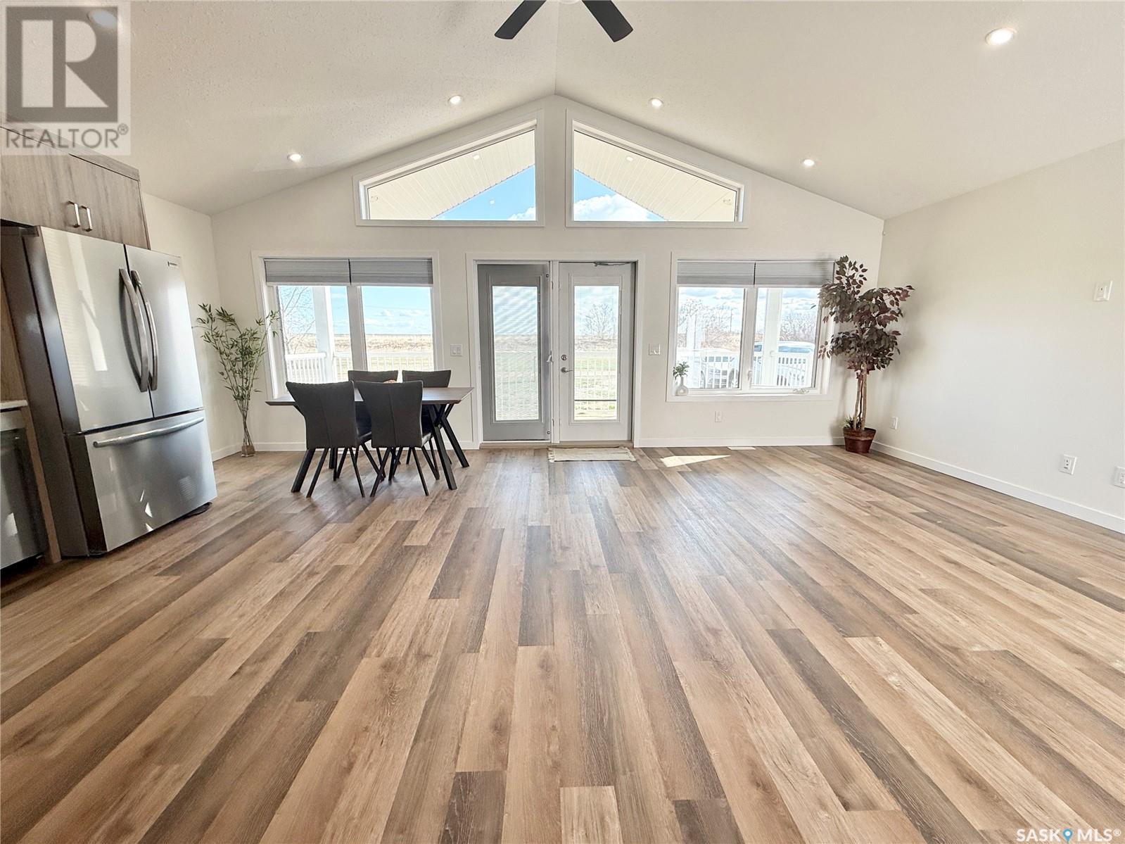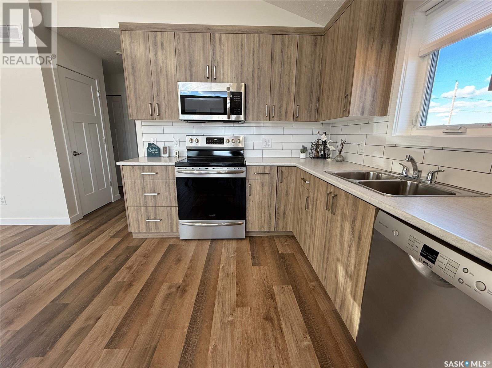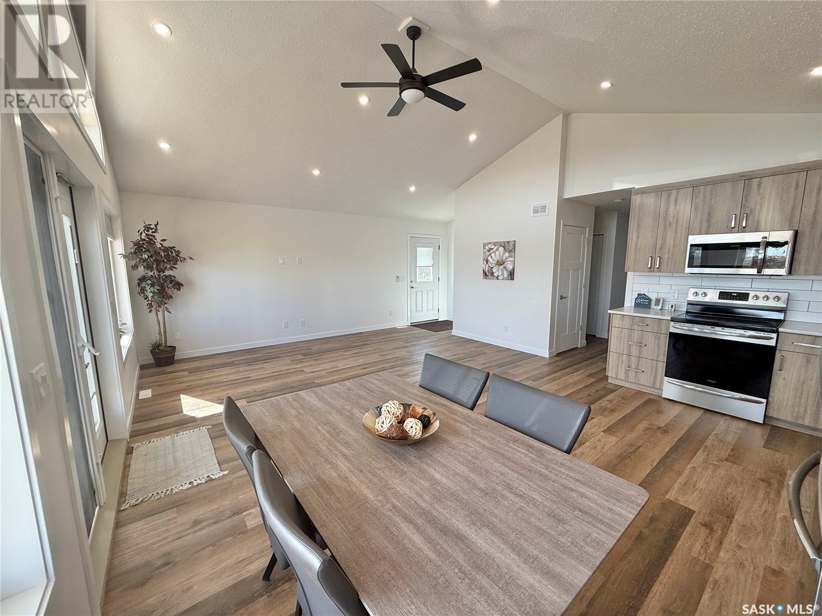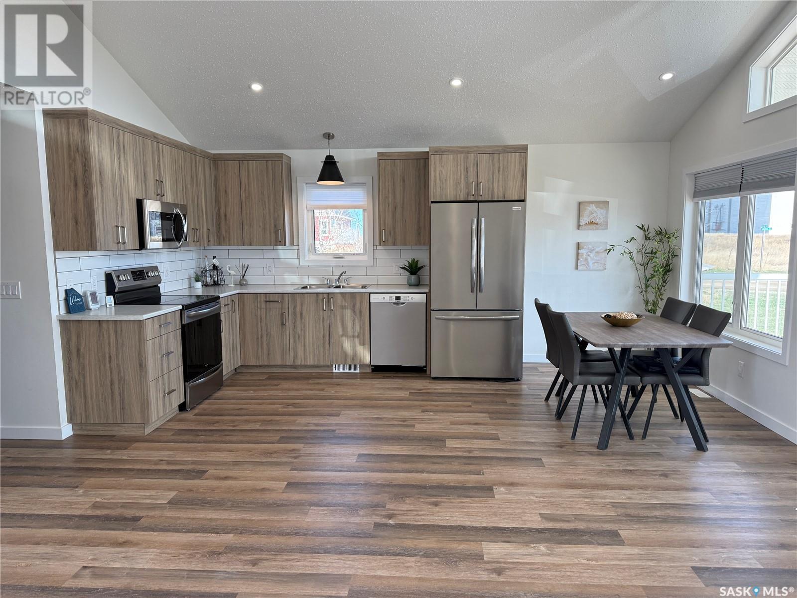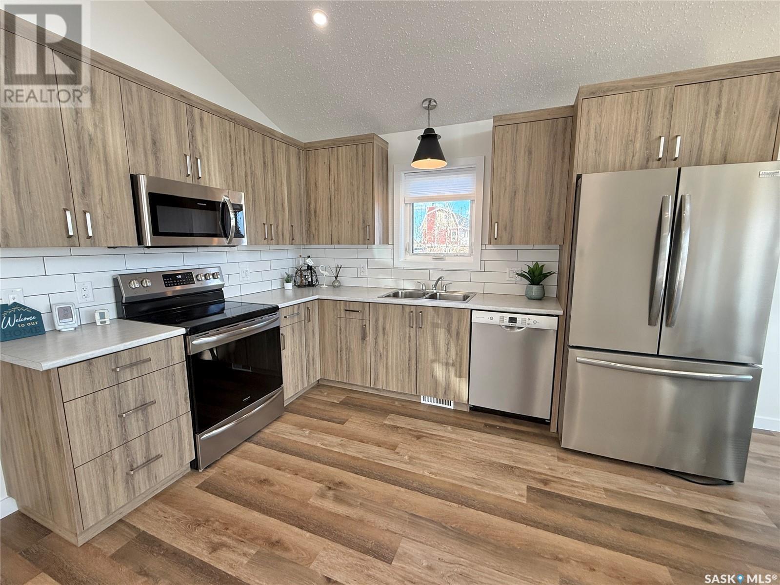 Welcome to the charming Village of Broderick, SK. Located just a short drive from Outlook, where all desired amenities are available, and only 50 minutes from Saskatoon. This delightful home has 1008 sq ft. of living space with three bedrooms and one bathroom. The third bedroom currently serves as laundry room but can also accommodate a desk for office use. This well-maintained property has numerous features, including; vinyl plank flooring, soft-close cabinets, tile backsplash, high-end Bosch appliances, a ceiling fan, triple-pane windows, new septic system installed during construction, a sump pump, satellite dish, a spacious and dry concrete crawl space for storage, an 8x24 deck, central air conditioning, an air exchanger, on-demand hot water, and a Generac generator. The garage is a 'standout' feature, measuring 30x34 with Trusscore walls, insulated & heated, high ceilings, two 8x10 doors, and a large asphalt driveway. This is a car lovers dream! Additionally, a sizable concrete pad connects the house to the garage which is an ideal space for enjoying coffee with family and friends. With 7 lots included (25 ft lots) 0.482 acres; the west 50x120 lot is available to develop if you wish. This gem of a home is not to be missed. (Tax amt to be verified) (id:43042)