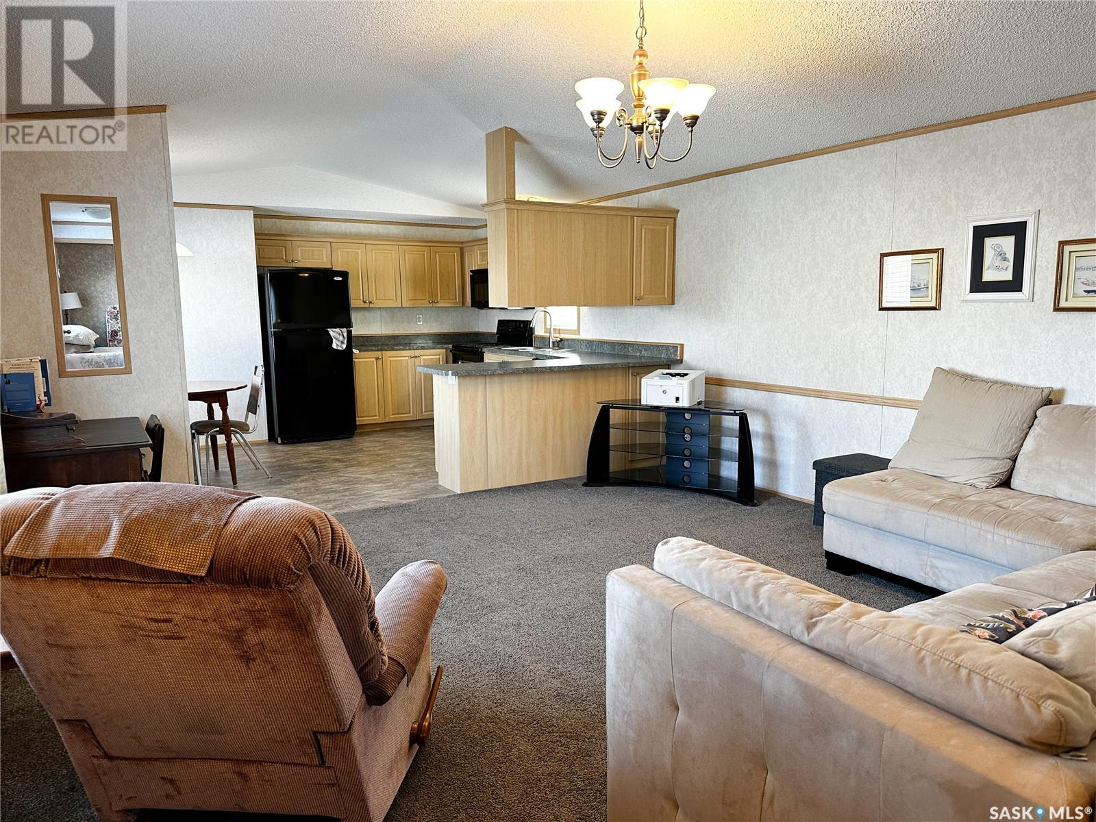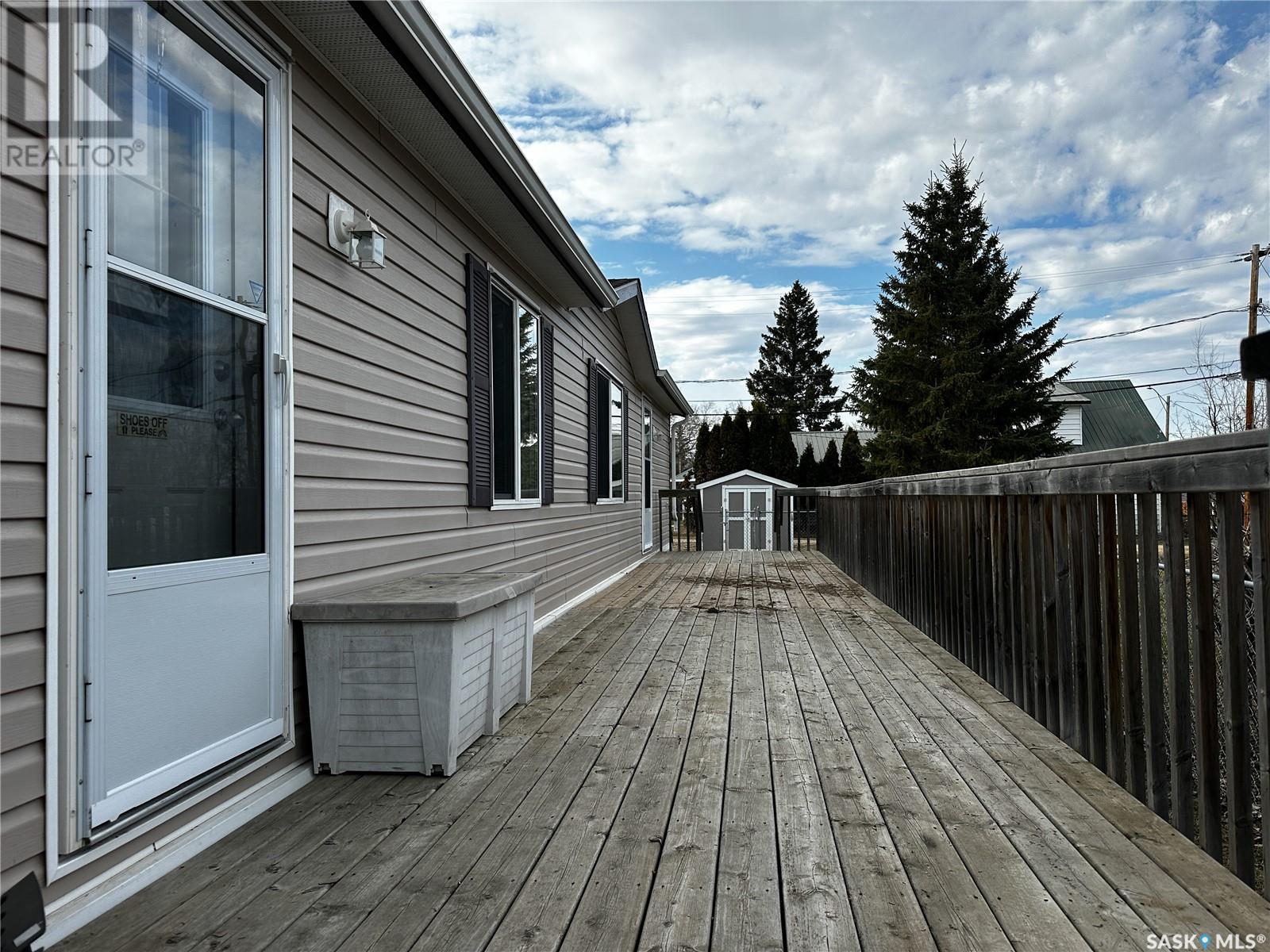 Charming 2-Bedroom Mobile Home in Meota – Near Jackfish Lake! This immaculate 2011 mobile home offers modern open-concept living with beautiful wood kitchen cabinets and ample storage. The spacious living room feels cozy yet inviting There is a large master bedroom which features sliding closet doors and an additional closet for extra storage, along with a 4-piece ensuite! On the other end of the mobile home there is an additional bedroom as well as another full 4-piece bathroom. Step outside to a treed, fenced backyard with a large deck and storage sheds—perfect for relaxing or entertaining. Centrally located near downtown Meota, you'll have easy access to golf, the beach, boating, swimming, fishing, snowmobiling, and more! There is central air for those hot summer days and all appliances will remain! Move in and start enjoying life by the lake! (id:43042)