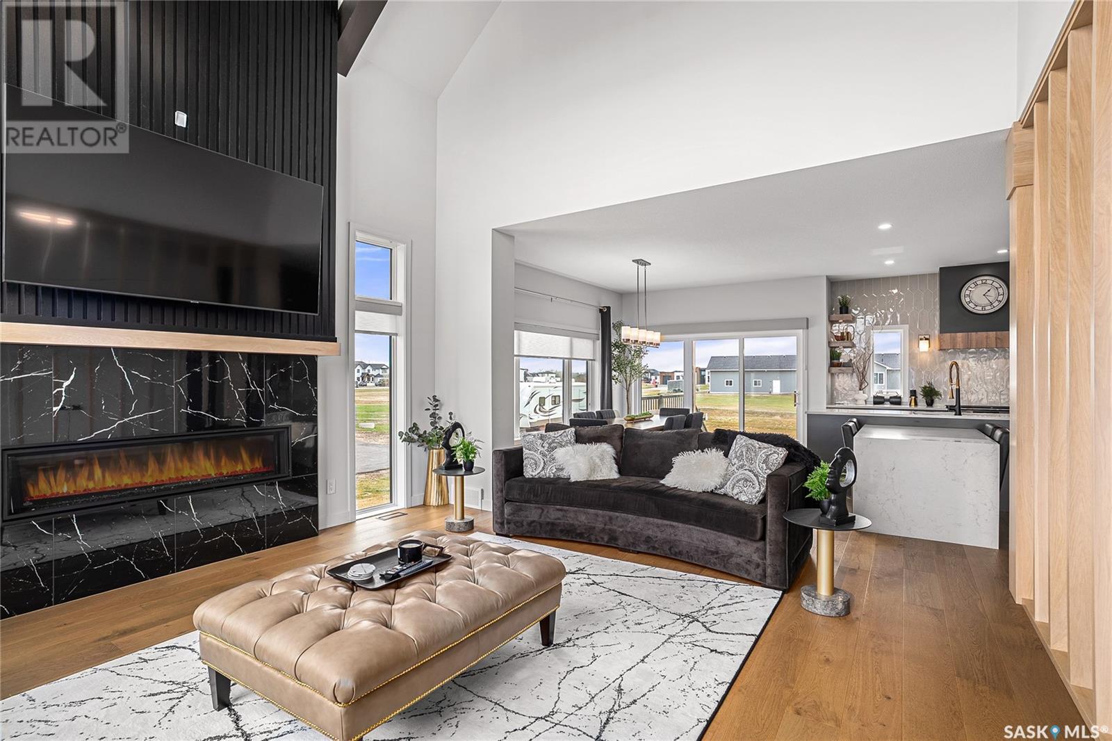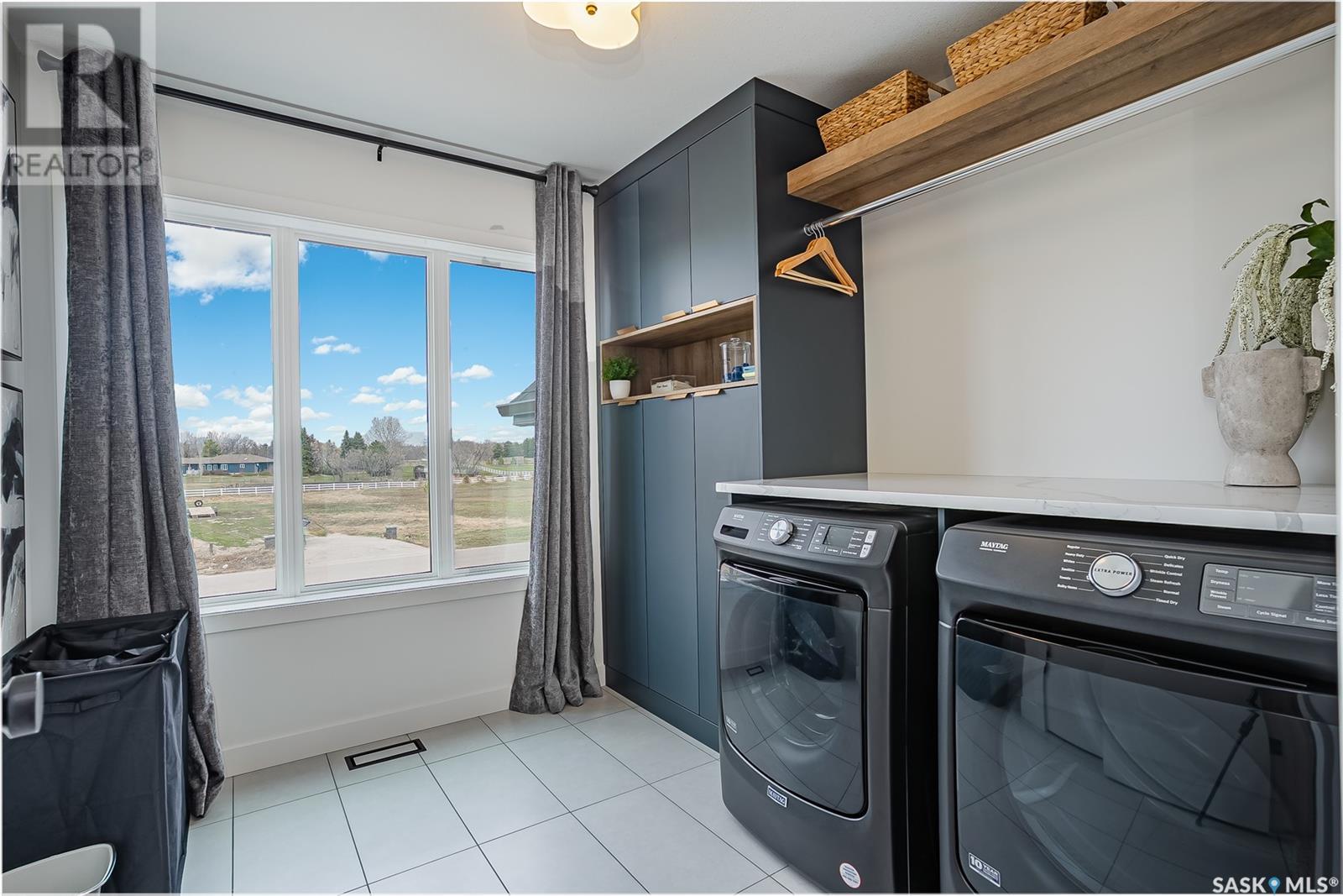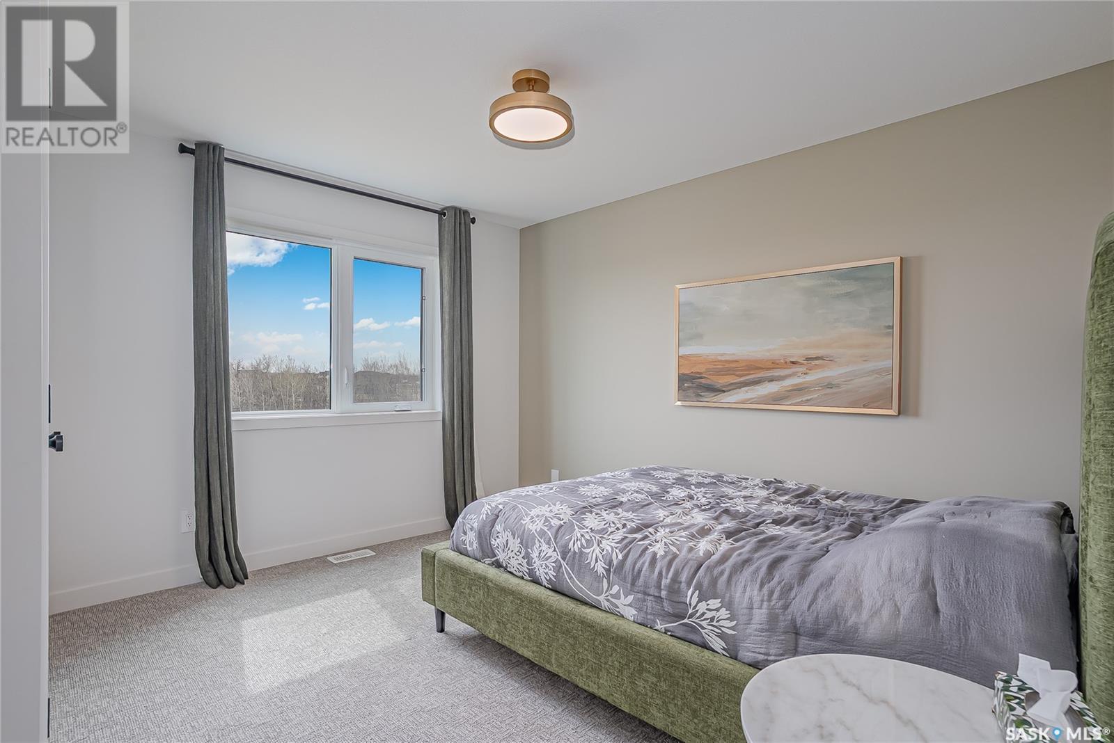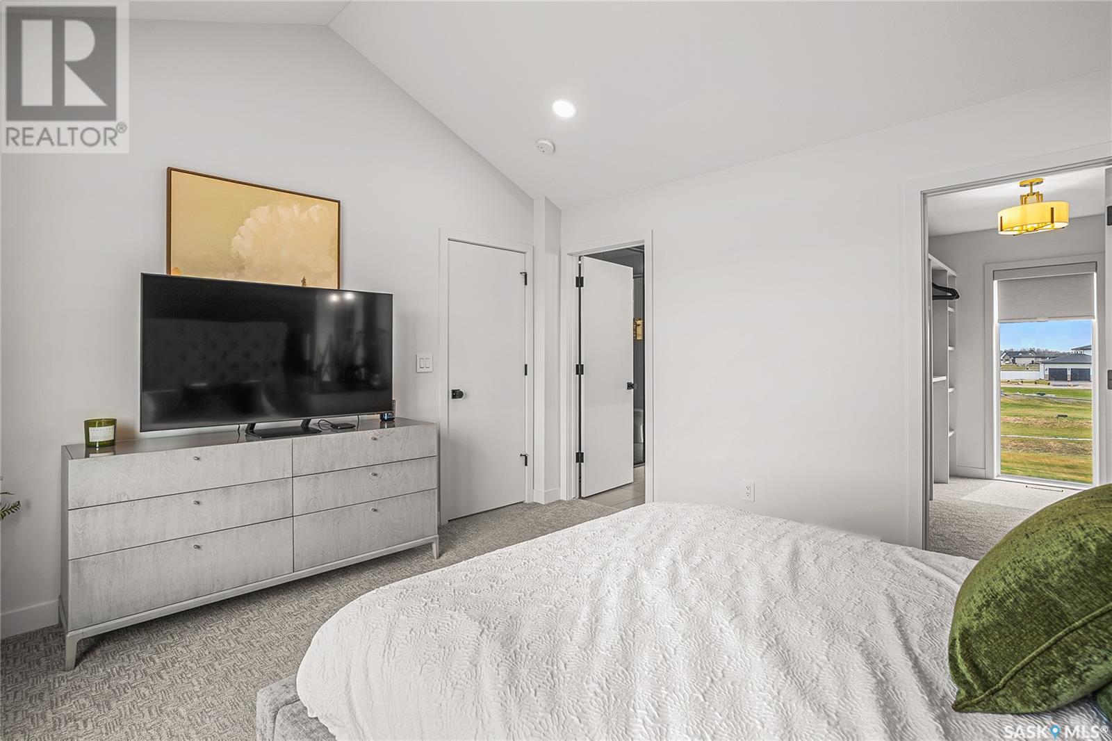 Welcome to luxury living in the prestigious community of Edgemont Estates, just minutes south of Saskatoon. This exceptional Fraser Homes built acreage property is designed to impress, from the moment you step into the breathtaking main living room featuring soaring vaulted ceilings, oversized triple-pane windows, and exquisite waterproof engineered hardwood flooring. Gather around one of two gorgeous natural gas fireplaces that set the perfect ambiance for cozy evenings or sophisticated entertaining. The custom-designed, one-of-a-kind kitchen boasts stunning stone countertops, high-end fixtures, luxurious hardware, and a cleverly concealed walk-in pantry, ideal for both daily living and hosting grand events. The home's thoughtful layout includes an incredibly spacious upstairs laundry room, detailed tile work throughout, and stylish LED lighting seamlessly integrated into the railings. Enjoy the fully finished basement that offers versatile space for recreation or relaxation with an extra bedroom and wetbar. Situated on a generous 0.55-acre lot, the property includes an oversized triple car garage 24/26x32, underground sprinklers, and maintenance-free composite decking, complemented perfectly by a high-end hot tub for ultimate relaxation. The window coverings are included and some of them are motorized too! Did you see the app Controlled LED Jewel lights on the front of the house too? How cool are those! Stay comfortable year-round with air conditioning and energy-efficient triple-pane windows, along with the convenience of city water on a drip system. Residents of this exclusive community also enjoy access to a private playground and park area, making it the ideal location for families looking for elegance, privacy, and a refined lifestyle. Quick possession and furnishings available on request too! (id:43042)