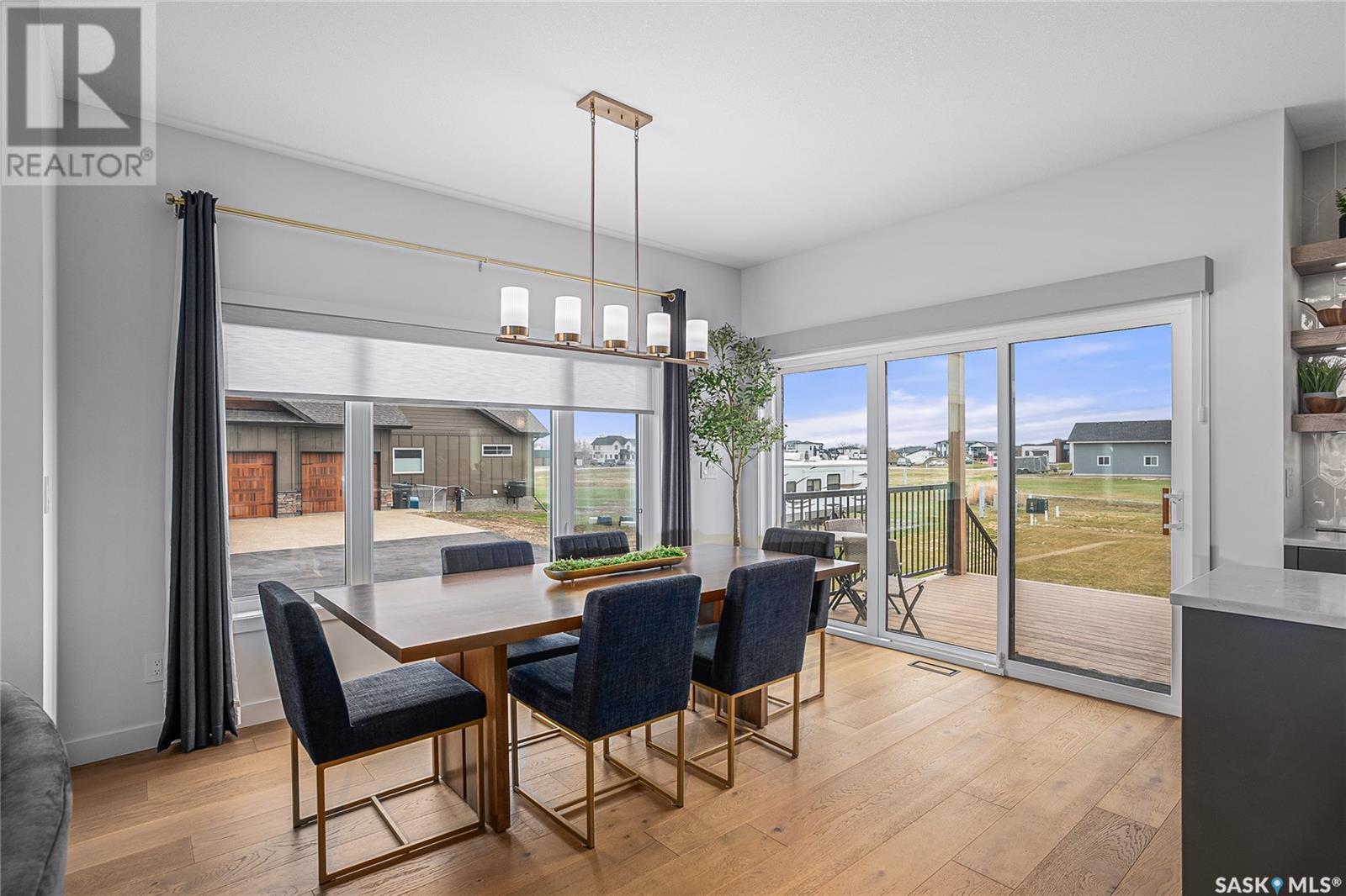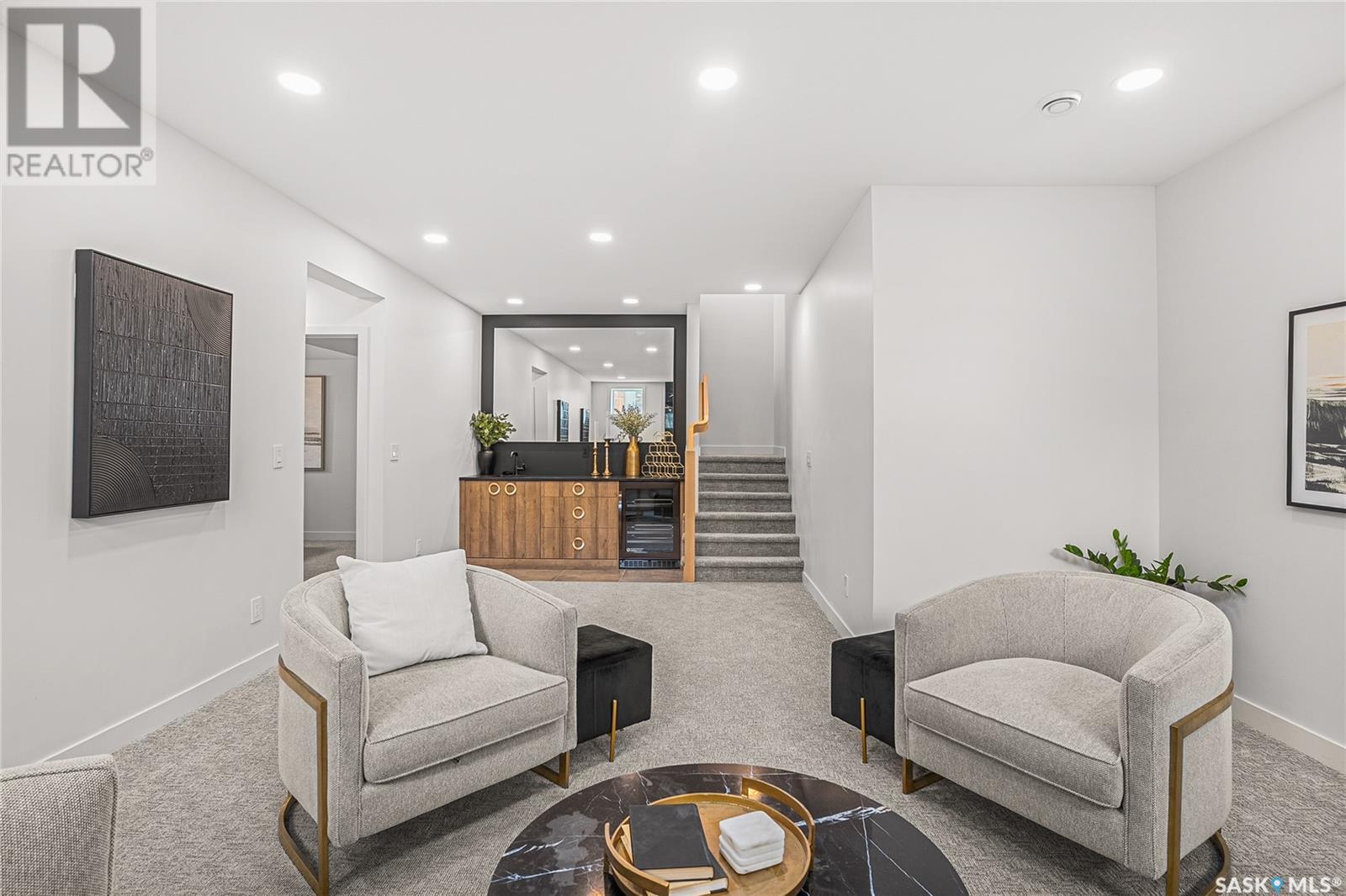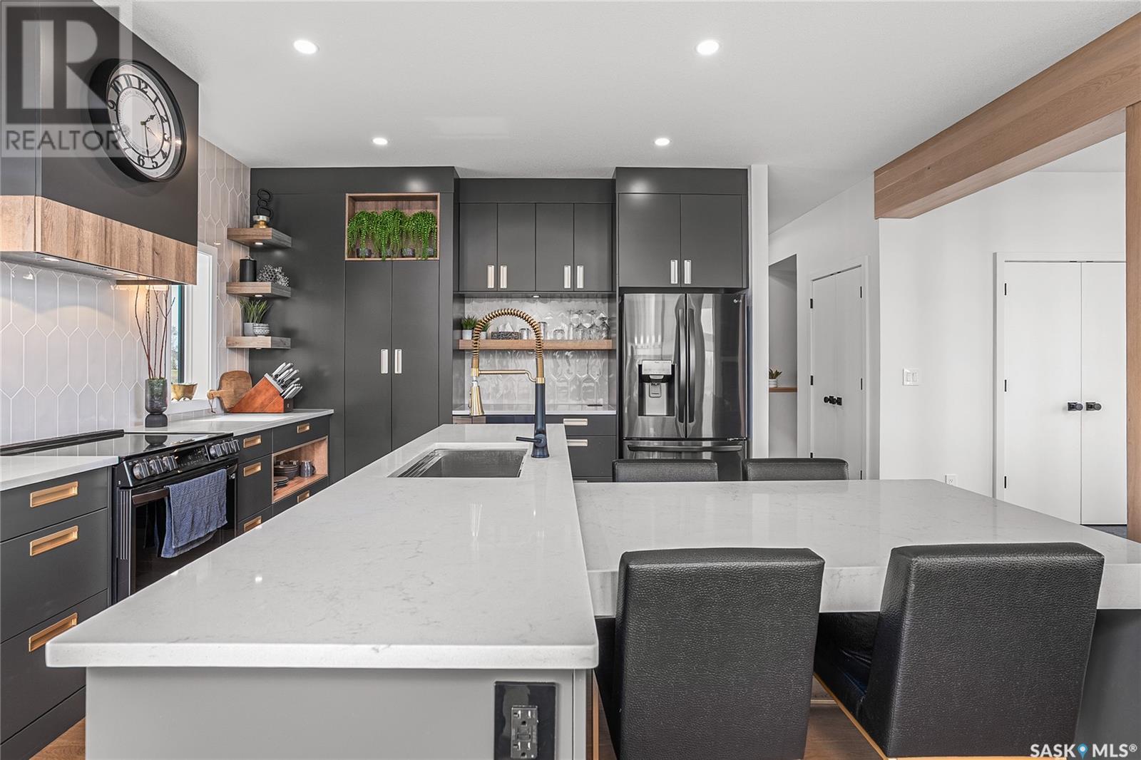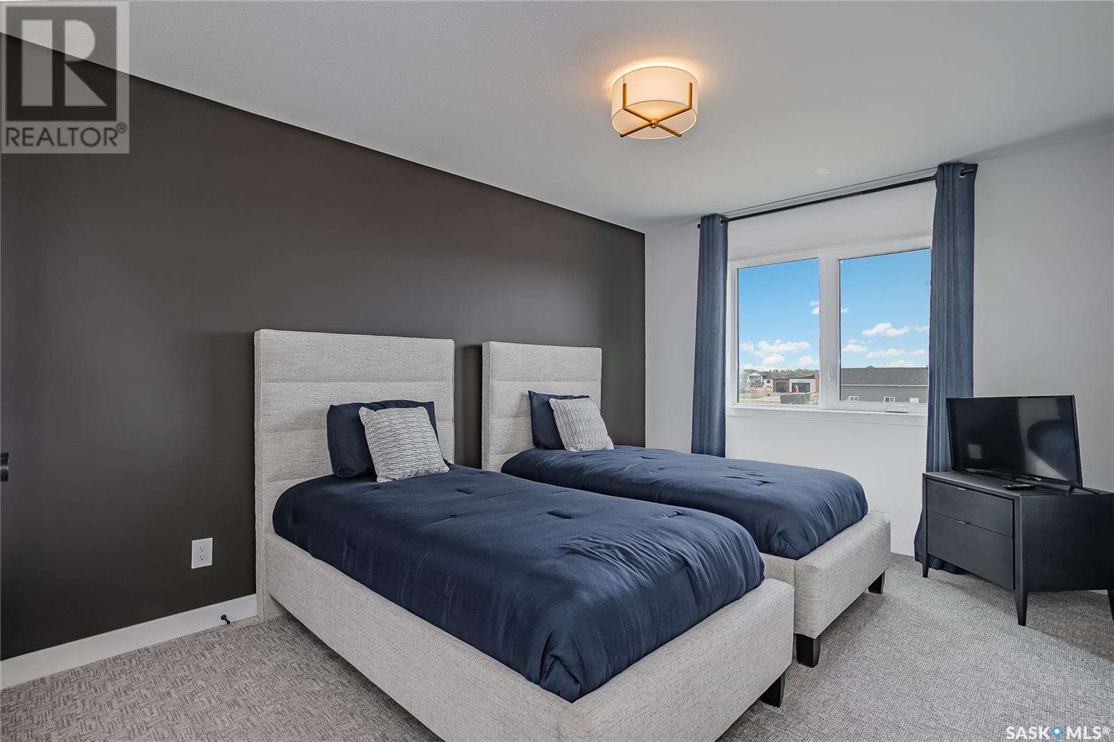 Welcome to luxury living in the prestigious community of Edgemont Estates, just minutes south of Saskatoon. This exceptional Fraser Homes built acreage property is designed to impress, from the moment you step into the breathtaking main living room featuring soaring vaulted ceilings, oversized triple-pane windows, and exquisite waterproof engineered hardwood flooring. Gather around one of two gorgeous natural gas fireplaces that set the perfect ambiance for cozy evenings or sophisticated entertaining. The custom-designed, one-of-a-kind kitchen boasts stunning stone countertops, high-end fixtures, luxurious hardware, and a cleverly concealed walk-in pantry, ideal for both daily living and hosting grand events. The home's thoughtful layout includes an incredibly spacious upstairs laundry room, detailed tile work throughout, and stylish LED lighting seamlessly integrated into the railings. Enjoy the fully finished basement that offers versatile space for recreation or relaxation with an extra bedroom and wetbar. Situated on a generous 0.55-acre lot, the property includes an oversized triple car garage 24/26x32, underground sprinklers, and maintenance-free composite decking, complemented perfectly by a high-end hot tub for ultimate relaxation. The window coverings are included and some of them are motorized too! Did you see the app Controlled LED Jewel lights on the front of the house too? How cool are those! Stay comfortable year-round with air conditioning and energy-efficient triple-pane windows, along with the convenience of city water on a drip system. Residents of this exclusive community also enjoy access to a private playground and park area, making it the ideal location for families looking for elegance, privacy, and a refined lifestyle. Quick possession and furnishings available on request too! (id:43042)
