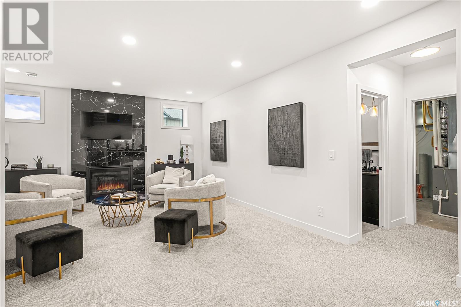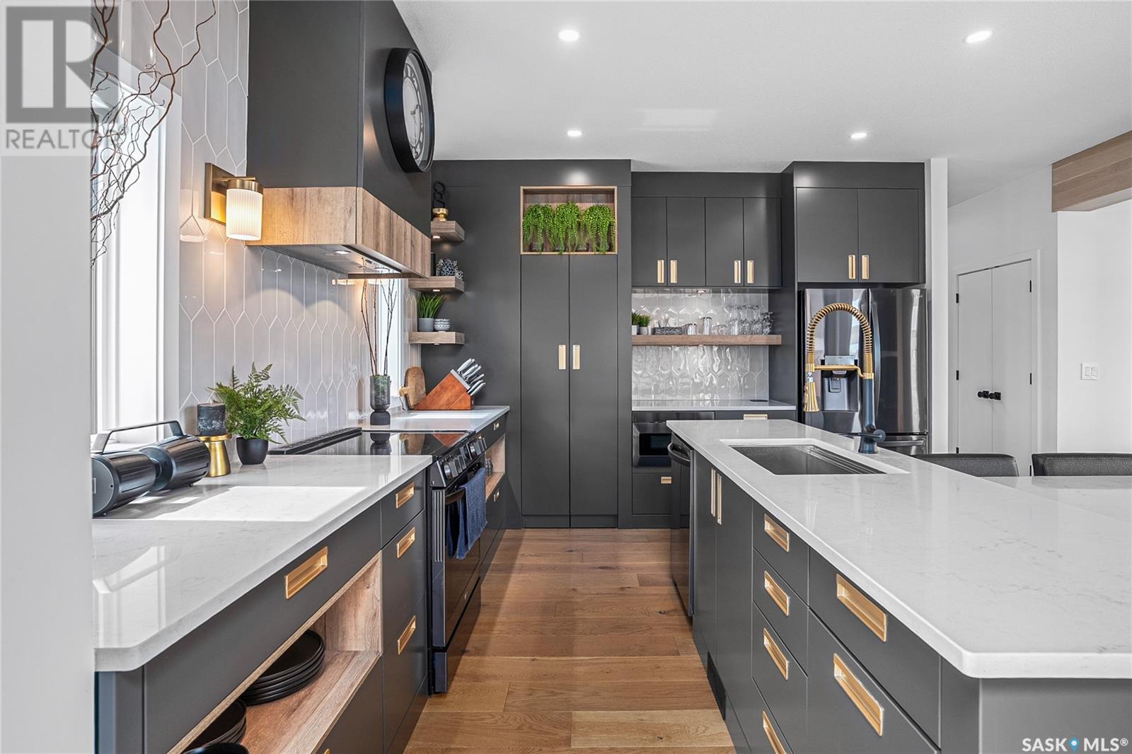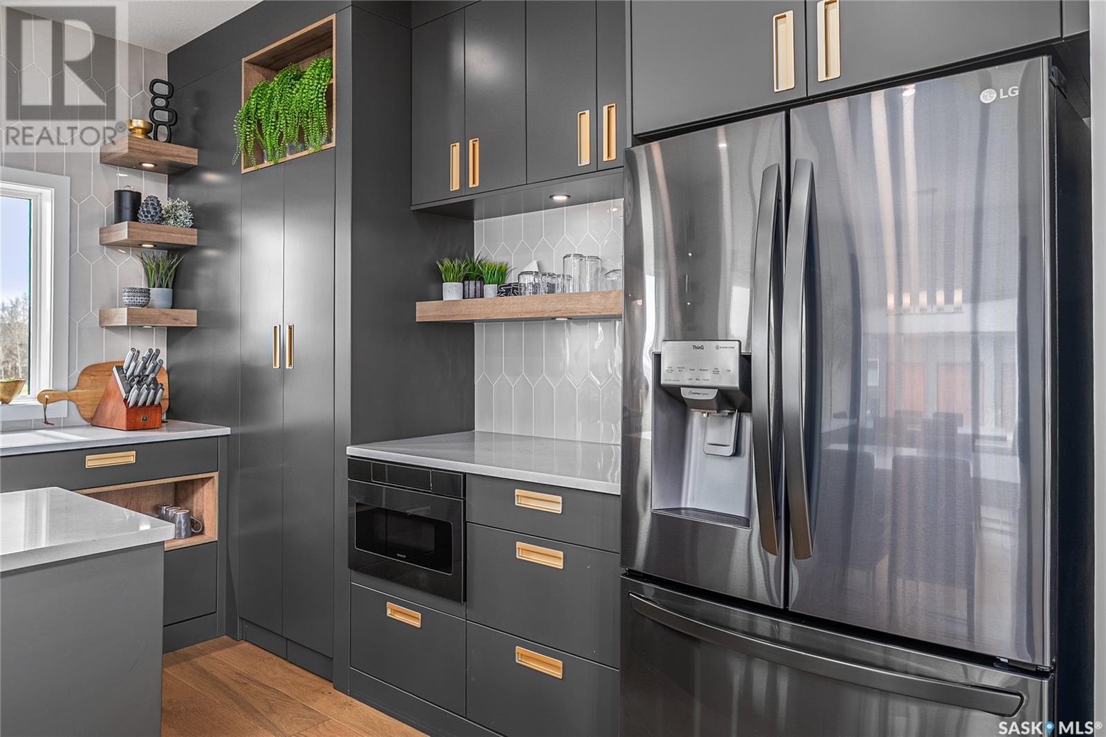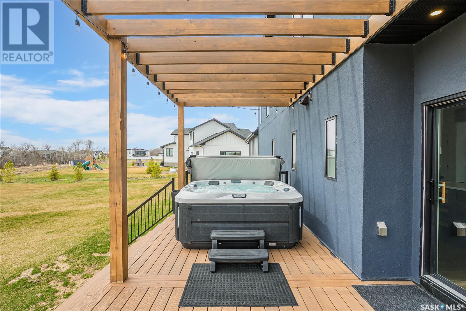 Welcome to luxury living in the prestigious community of Edgemont Estates, just minutes south of Saskatoon. This exceptional Fraser Homes built acreage property is designed to impress, from the moment you step into the breathtaking main living room featuring soaring vaulted ceilings, oversized triple-pane windows, and exquisite waterproof engineered hardwood flooring. Gather around one of two gorgeous natural gas fireplaces that set the perfect ambiance for cozy evenings or sophisticated entertaining. The custom-designed, one-of-a-kind kitchen boasts stunning stone countertops, high-end fixtures, luxurious hardware, and a cleverly concealed walk-in pantry, ideal for both daily living and hosting grand events. The home's thoughtful layout includes an incredibly spacious upstairs laundry room, detailed tile work throughout, and stylish LED lighting seamlessly integrated into the railings. Enjoy the fully finished basement that offers versatile space for recreation or relaxation with an extra bedroom and wetbar. Situated on a generous 0.55-acre lot, the property includes an oversized triple car garage 24/26x32, underground sprinklers, and maintenance-free composite decking, complemented perfectly by a high-end hot tub for ultimate relaxation. The window coverings are included and some of them are motorized too! Did you see the app Controlled LED Jewel lights on the front of the house too? How cool are those! Stay comfortable year-round with air conditioning and energy-efficient triple-pane windows, along with the convenience of city water on a drip system. Residents of this exclusive community also enjoy access to a private playground and park area, making it the ideal location for families looking for elegance, privacy, and a refined lifestyle. Quick possession and furnishings available on request too! (id:43042)