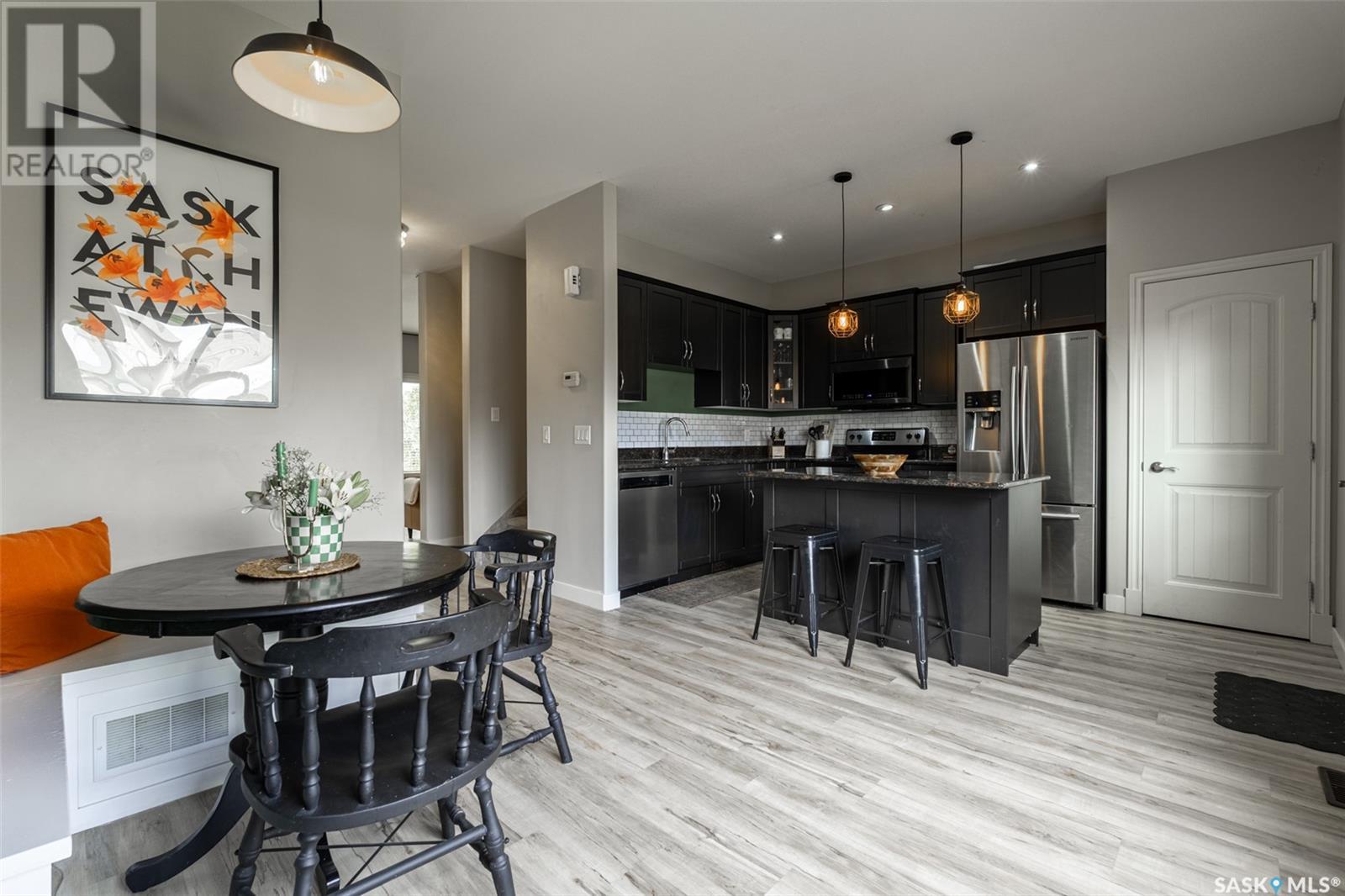 Welcome to 360 Willowgrove Lane – a bright, stylish townhome in one of Saskatoon's most desirable neighbourhoods. This 3-bedroom, 3-bathroom home offers thoughtful design and an unbeatable location. Nestled in the heart of family-friendly Willowgrove, you’re steps from parks and schools, close to University Heights shopping and restaurants, and just a quick drive or bus ride to the University of Saskatchewan and Royal University Hospital. Enjoy your morning coffee on the charming front porch, then step into a spacious front entry and sun-filled main floor. High ceilings and large windows create an open, welcoming vibe in the living room. The kitchen and dining area overlook the fully fenced backyard and feature a central island, walk-in pantry, and convenient access to the covered back deck and single detached garage. A two-piece powder room rounds out the main floor. Upstairs, the spacious primary suite offers a walk-in closet and private two-piece ensuite. Two additional bedrooms and a four-piece bathroom provide flexible options for kids, guests, or a home office. Downstairs, the finished basement adds even more room to spread out – perfect for a playroom, family room, home gym, or even a future fourth bedroom. Low-maintenance, move-in ready, and ideally located – 360 Willowgrove Lane is ready to welcome you home! (id:43042)
