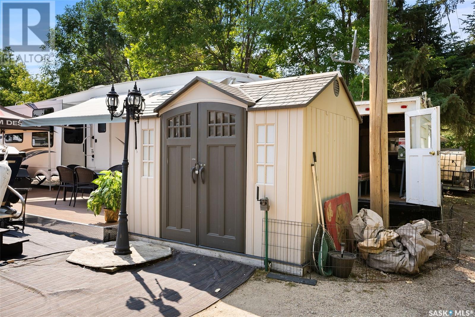 What do you picture when someone says they're "living the dream"? For me, the visual is a quiet place for peace, away from the noise of the city, somewhere near the water. A simple life, days spent in sun on the beach while laughing children play, or making memories reeling in their first fish on the boat. Evenings involve endless BBQ's or brews with friends, and crisp nights are spent around a fire sharing stories & smores. If this sounds like your definition of living the dream too, then I've got the perfect opportunity for you. Located at 365 Metz Avenue at Wee-Too Beach down the street from the west shores of Last Mountain Lake, the whole package is ready and waiting for someone like YOU! Included in the price is the land, along with all of the personal chattles & fixtures (does not include the boat) that make it turn key & ready to rock. All you need to do is pack your things and come on out! The lot itself is low maintenance with 50 feet of frontage and lane access, which makes it super easy to park a second RV. Power box will handle 2-50 AMP RVs and there is a 1200 gallon septic and a 500 gallon water tank. Currently, a 38.4 ft 2012 Keystone Avalanche 5th wheel with four slides is on the lot. It comes with a beautiful kitchen & open concept living space ft fireplace with remote, 42" LCD HDTV which lowers into cabinet, dining table & chairs, leather hide-a-bed couch & recliners. The 3pc bathroom features corner shower and access to the bedroom slide with queen bed, mirror closet, tons of storage, and the ability to sneak in a washer/dryer. The power awning is extended over the 31x12 composite deck with checker plating & aluminum steps completed last year. A shed with second fridge/freezer is also included, along with all patio furniture, and a fish cleaning station, hunter's camper (needs TLC), and golf cart shed. One price & you have it ALL! COME ON OUT! Your dream life at the lake is waiting! (id:43042)