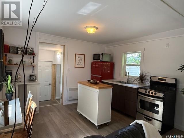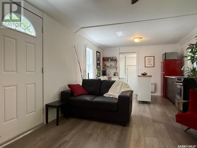 Looking for a cozy, move-in-ready place that feels just right? Welcome to 369 2nd Ave E in Melville, SK! Originally built in 1946, this home has undergone a complete renovation from top to bottom, inside and out and is now ready for its next chapter. At 458 sq ft, it may be considered a tiny home—but don’t be fooled, it makes the most of every inch! The open concept layout gives the main living area a spacious feel. This one bedroom home has a 3 piece bathroom with walk-in corner shower, kitchen, window seat dining, coffee bar area and a bonus space at the entry for an office. Whether you're flying solo or starting fresh as a couple, this little gem offers everything you need—with a stylish, modern touch. Bonus? If you need furnishings, they’re negotiable too—just ask! Under the home, there’s a full concrete basement offering loads of storage space, and outside you’ll find two handy sheds on a 50 x 140 lot that’s beautifully treed. It’s the kind of yard you can actually enjoy, not just maintain. The home has an updated 100 amp service panel, pex water lines and is heated with electric baseboard heaters, but the gas line is already on the property—so adding a natural gas furnace down the line is totally doable. Whether you're looking to downsize, buy your first home, or pick up a solid little rental, this property offers easy living with zero reno headaches. Just bring your suitcase—and maybe your favourite mug. (id:43042)