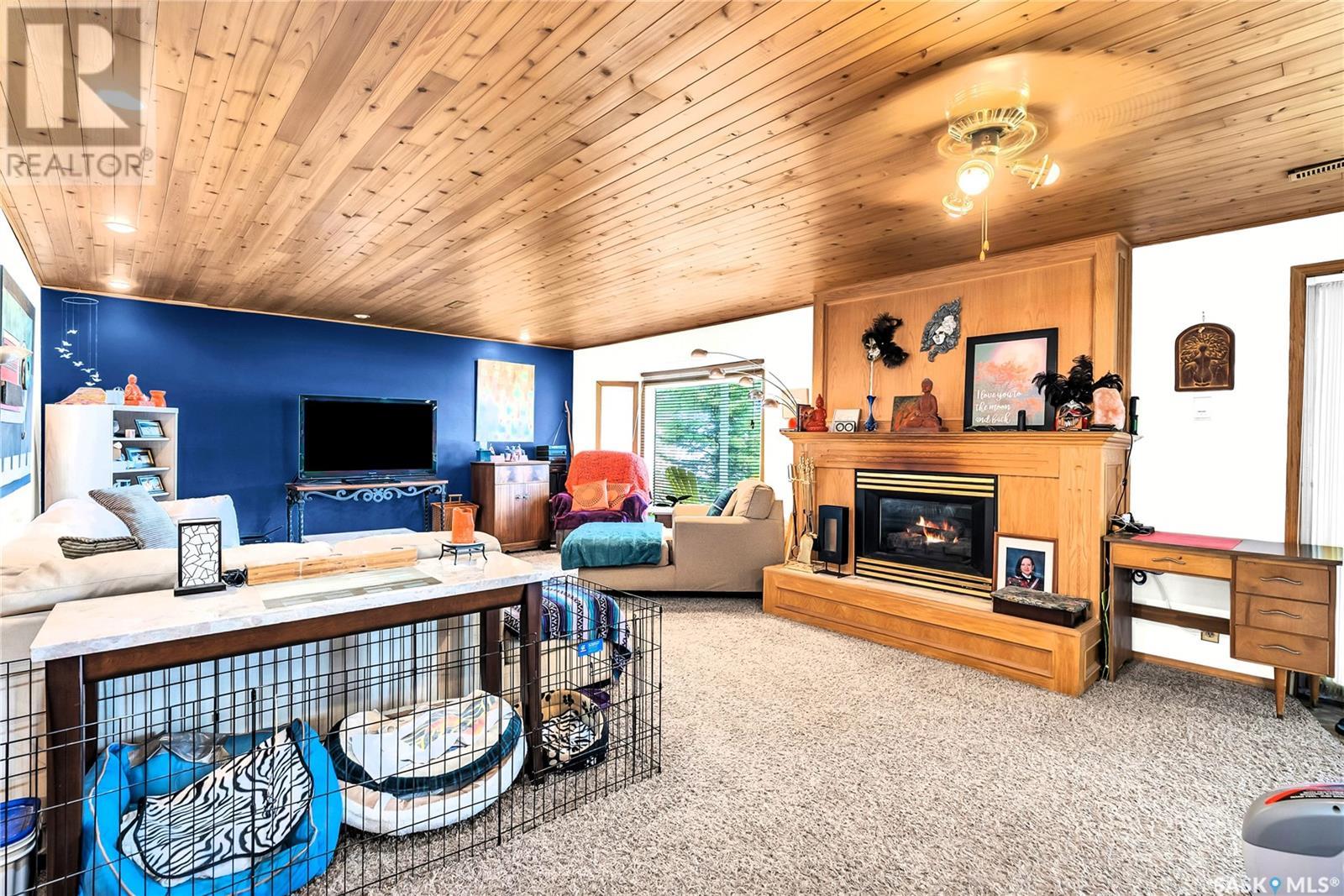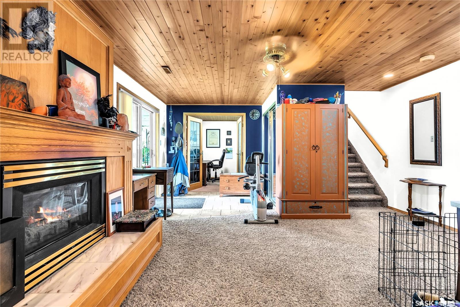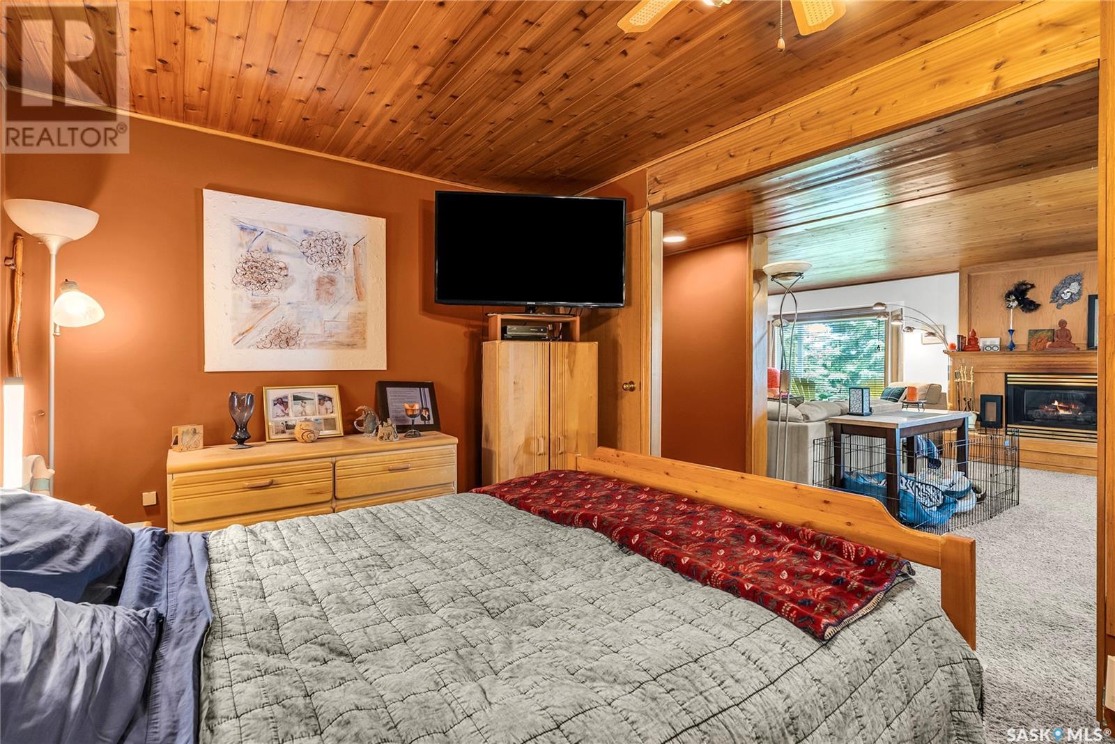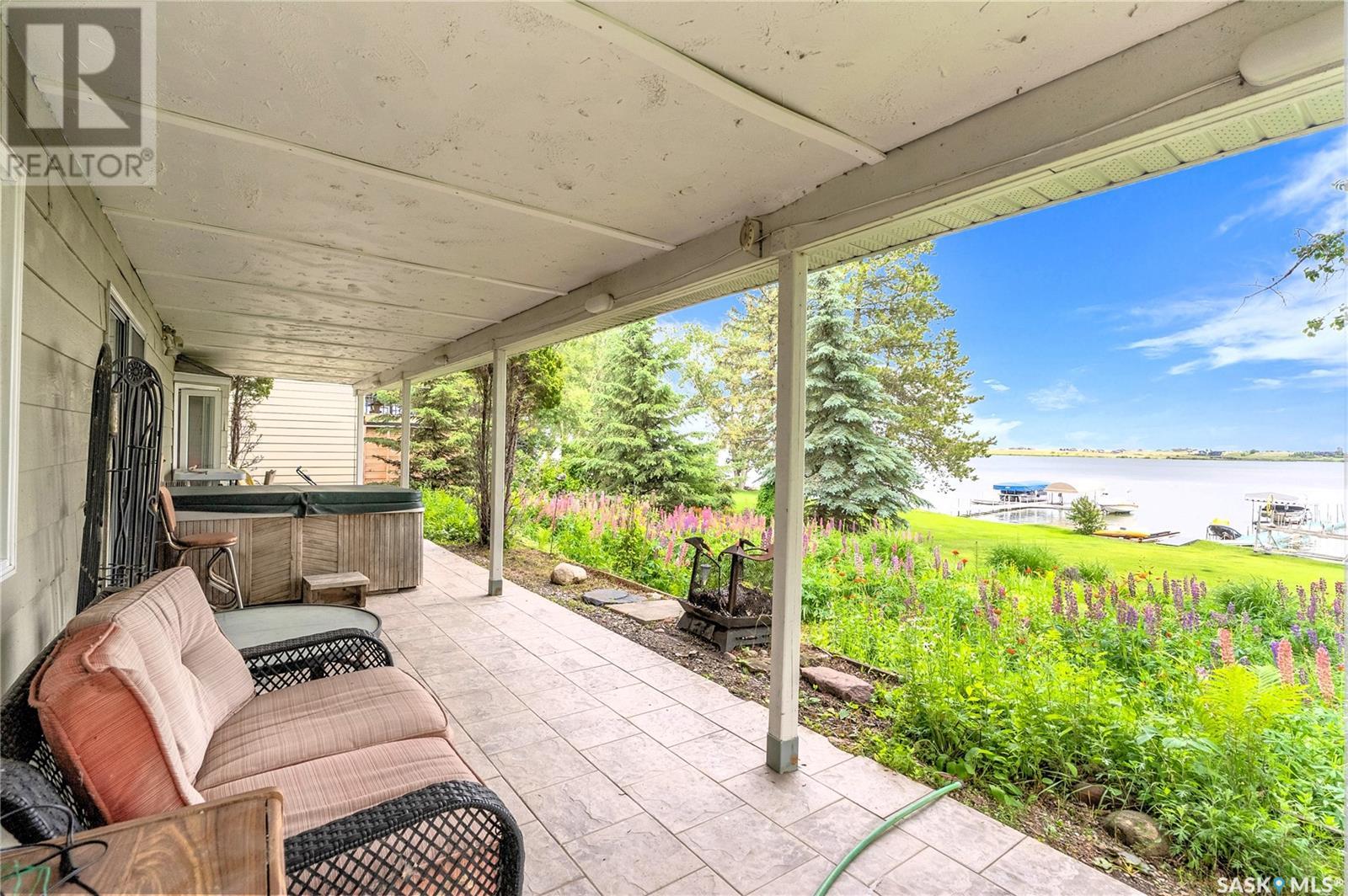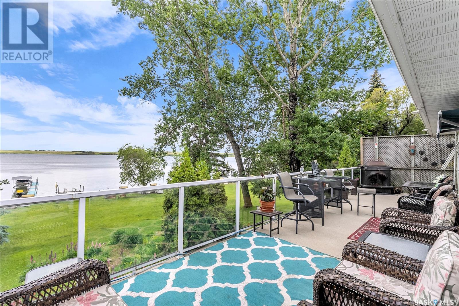 Embrace the idyllic lifestyle offered by this modern waterfront walk-out bungalow on the tranquil shores of Blackstrap Lake. Designed for both comfort and functionality, the home features a meticulously crafted kitchen equipped with shaker cabinets, a pantry, and a double convection oven. The dining area has garden doors leading to an expansive 10' x 45' wrap-around deck with glass railing, ideal for entertaining and relishing the breathtaking lake views, complemented by a gas BBQ hookup for alfresco dining. Natural light floods the inviting living room, furnished with a cozy gas fireplace and expansive windows that showcase the mesmerizing lake views. The main floor is adorned with charming cove molding further enhancing the main floor’s aesthetics. The walkout basement serves as a private haven, featuring a master bedroom with a spa-like 4-piece bath, complete with a corner soaker jet tub and separate neo-angle shower. A spacious family room, also graced with a gas fireplace and patio doors leading to an Italian-tiled patio, perfect for outdoor relaxation. This property ensures modern conveniences with triple PVC windows and city water. Additional amenities include a dock, multiple outdoor spaces complete with two fire pits, and three storage sheds. In addition, a tarped carport offers covered parking and lake water for exterior use is included free of charge. Do not miss this opportunity to claim this exceptional slice of paradise at Blackstrap Lake. (id:43042)