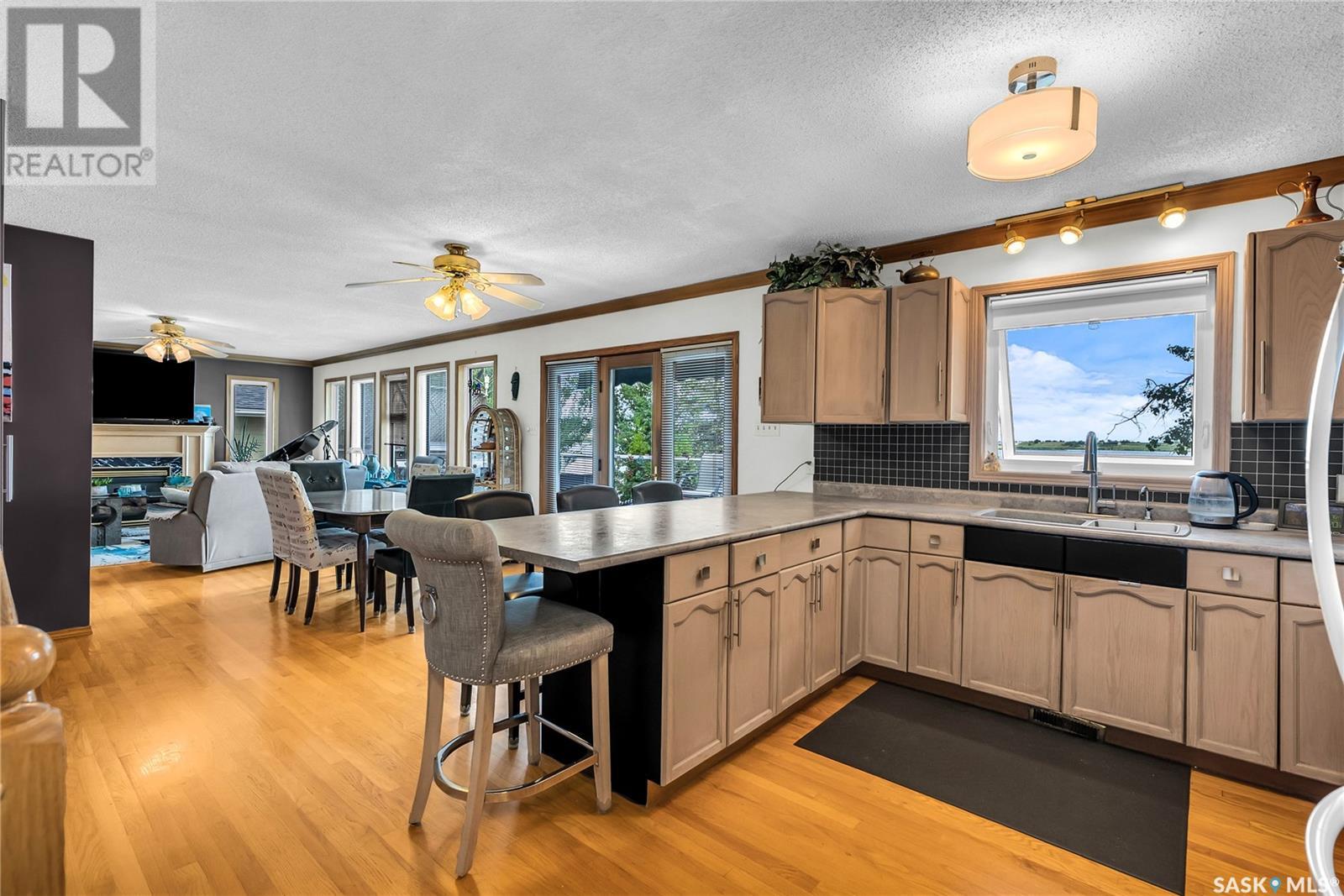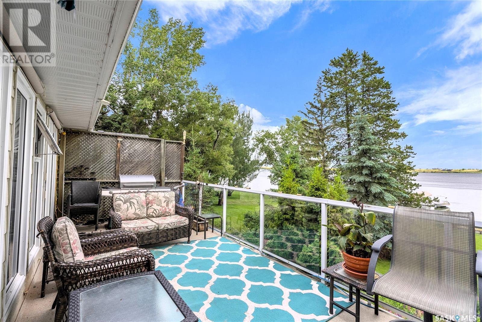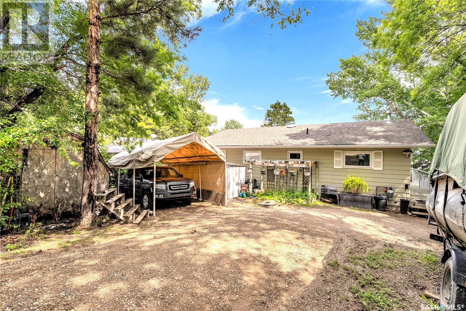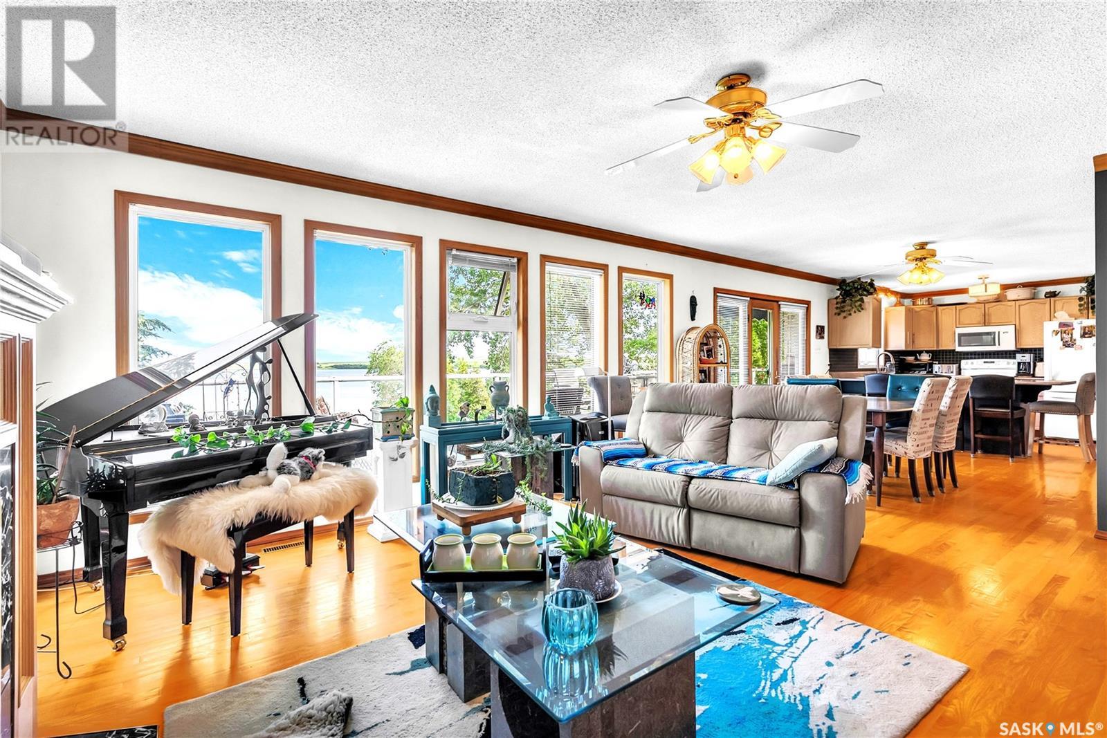 Embrace the idyllic lifestyle offered by this modern waterfront walk-out bungalow on the tranquil shores of Blackstrap Lake. Designed for both comfort and functionality, the home features a meticulously crafted kitchen equipped with shaker cabinets, a pantry, and a double convection oven. The dining area has garden doors leading to an expansive 10' x 45' wrap-around deck with glass railing, ideal for entertaining and relishing the breathtaking lake views, complemented by a gas BBQ hookup for alfresco dining. Natural light floods the inviting living room, furnished with a cozy gas fireplace and expansive windows that showcase the mesmerizing lake views. The main floor is adorned with charming cove molding further enhancing the main floor’s aesthetics. The walkout basement serves as a private haven, featuring a master bedroom with a spa-like 4-piece bath, complete with a corner soaker jet tub and separate neo-angle shower. A spacious family room, also graced with a gas fireplace and patio doors leading to an Italian-tiled patio, perfect for outdoor relaxation. This property ensures modern conveniences with triple PVC windows and city water. Additional amenities include a dock, multiple outdoor spaces complete with two fire pits, and three storage sheds. In addition, a tarped carport offers covered parking and lake water for exterior use is included free of charge. Do not miss this opportunity to claim this exceptional slice of paradise at Blackstrap Lake. (id:43042)