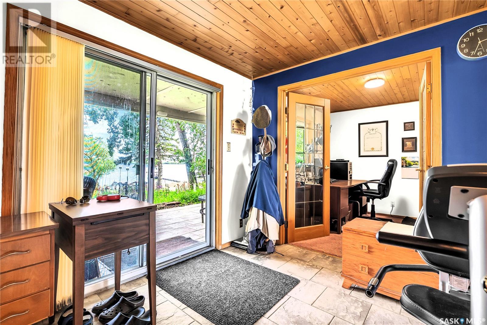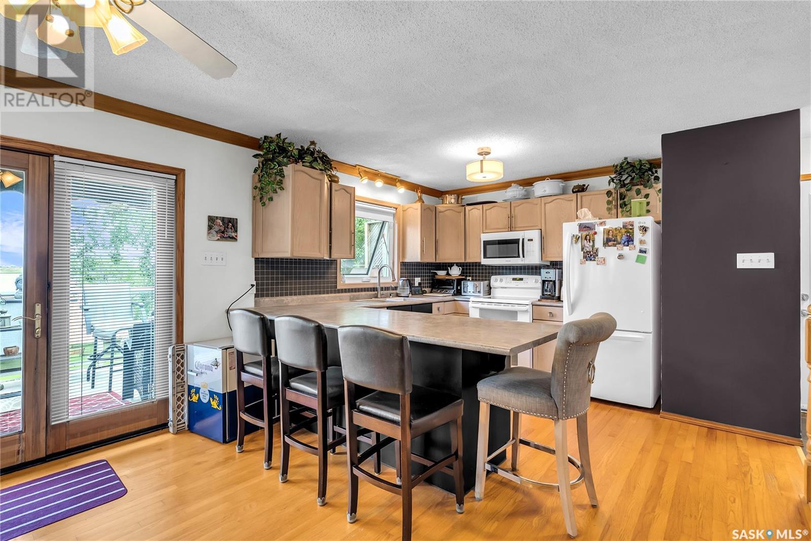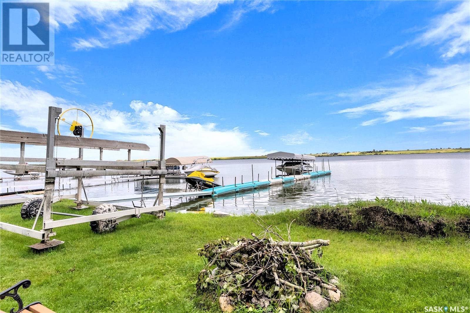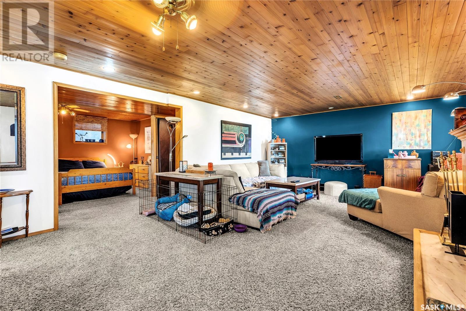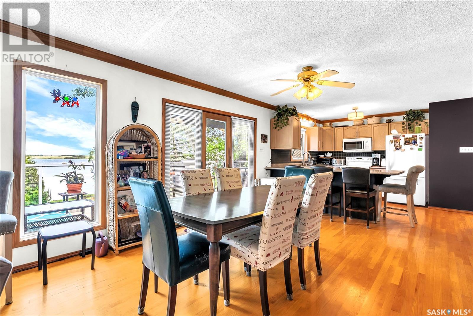 Embrace the idyllic lifestyle offered by this modern waterfront walk-out bungalow on the tranquil shores of Blackstrap Lake. Designed for both comfort and functionality, the home features a meticulously crafted kitchen equipped with shaker cabinets, a pantry, and a double convection oven. The dining area has garden doors leading to an expansive 10' x 45' wrap-around deck with glass railing, ideal for entertaining and relishing the breathtaking lake views, complemented by a gas BBQ hookup for alfresco dining. Natural light floods the inviting living room, furnished with a cozy gas fireplace and expansive windows that showcase the mesmerizing lake views. The main floor is adorned with charming cove molding further enhancing the main floor’s aesthetics. The walkout basement serves as a private haven, featuring a master bedroom with a spa-like 4-piece bath, complete with a corner soaker jet tub and separate neo-angle shower. A spacious family room, also graced with a gas fireplace and patio doors leading to an Italian-tiled patio, perfect for outdoor relaxation. This property ensures modern conveniences with triple PVC windows and city water. Additional amenities include a dock, multiple outdoor spaces complete with two fire pits, and three storage sheds. In addition, a tarped carport offers covered parking and lake water for exterior use is included free of charge. Do not miss this opportunity to claim this exceptional slice of paradise at Blackstrap Lake. (id:43042)