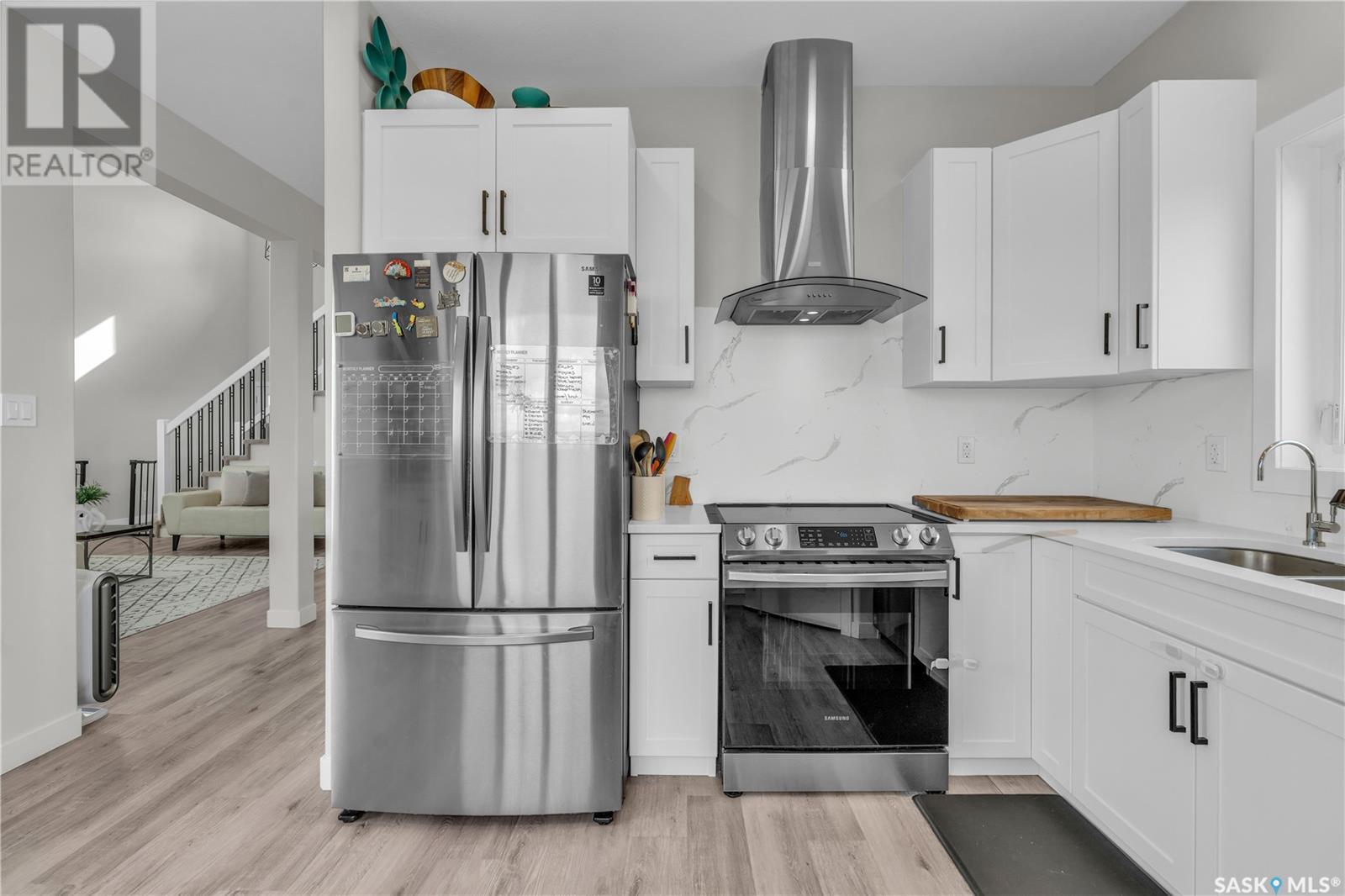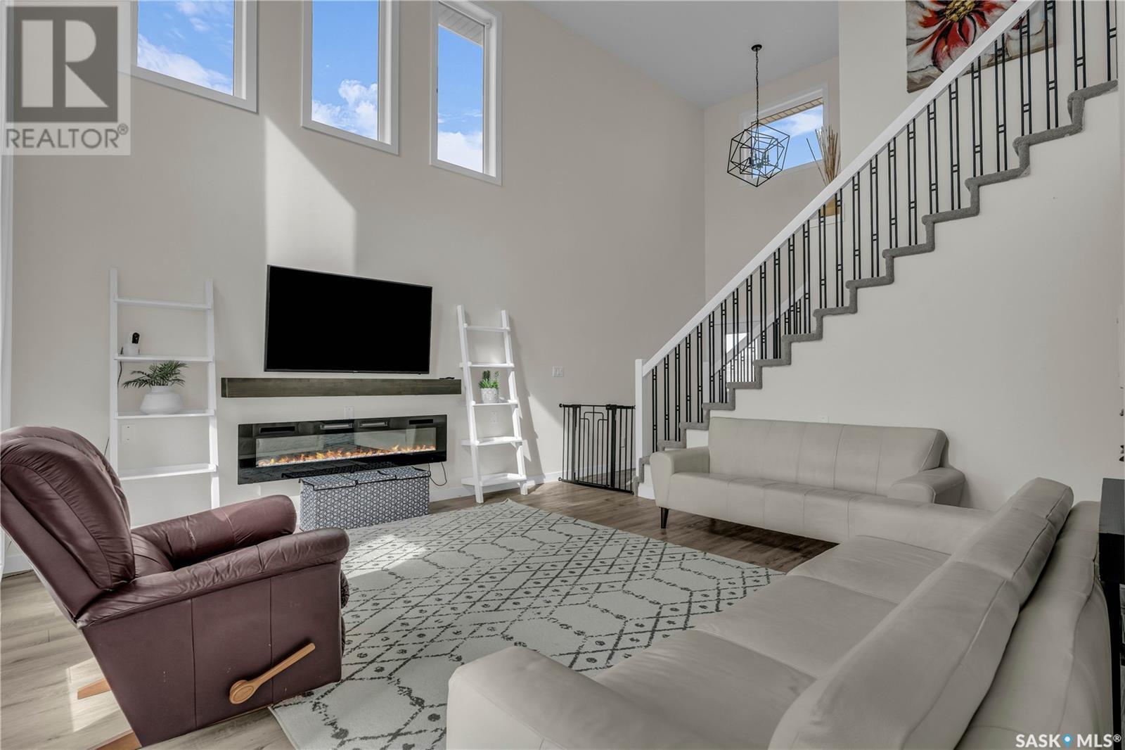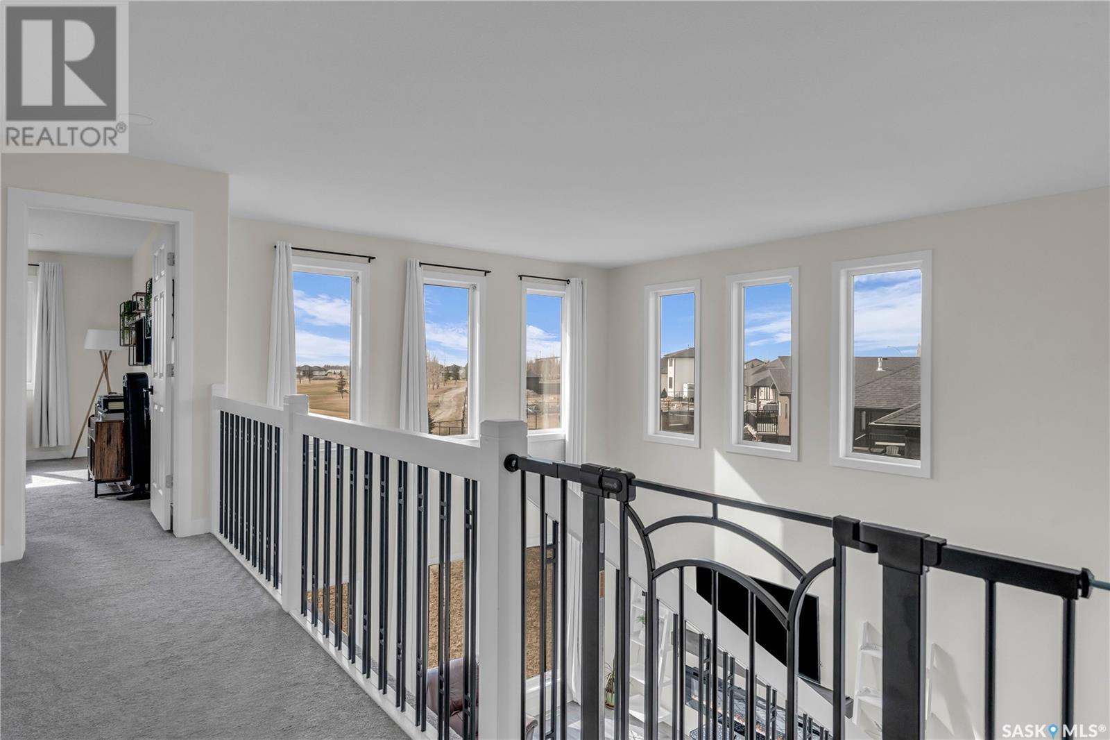 Welcome to 372 Emerald Park Road, a bright & spacious home backing the golf course. Step into this beautiful home where a soaring open-to-above ceiling in the living room creates a bright, airy ambiance, enhanced by an abundance of windows and grounded by the warmth of a cozy fireplace.. The modern kitchen is complete with crisp white cabinetry, stainless steel appliances, quartz countertops, an eat-up bar, and a picture window offering serene views of the golf course. A dedicated dining area seamlessly connects to the living room, making it ideal for entertaining. The main level is completed by a convenient 2-piece bathroom and a laundry area. Upstairs, a hallway open to below adds to the spacious feel. You'll find two well-sized secondary bedrooms, a full bathroom with a large vanity, and a spacious primary bedroom featuring a walk-in closet and its own private 3-piece ensuite with generous counter space. The basement is partially developed with a recreation room and a bedroom, and offers potential for two full bedrooms if desired—perfect for growing families or additional guest space. This home offers style, comfort, and flexibility, all in a beautiful location backing the golf course. A must-see for anyone looking for space, light, and lifestyle! (id:43042)