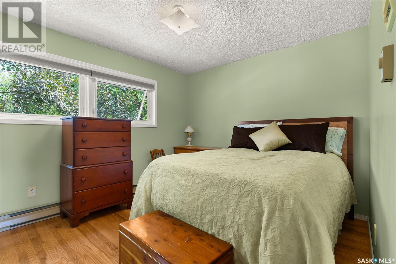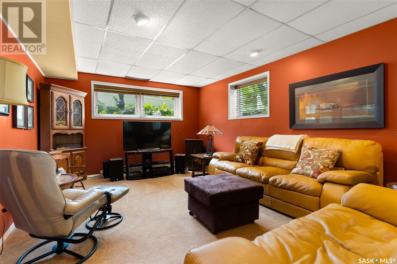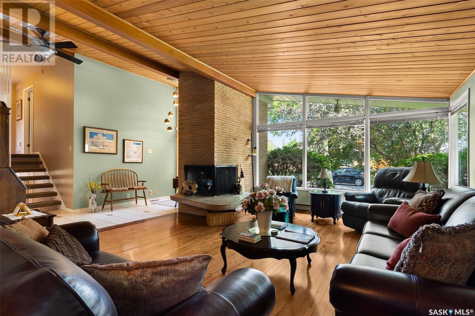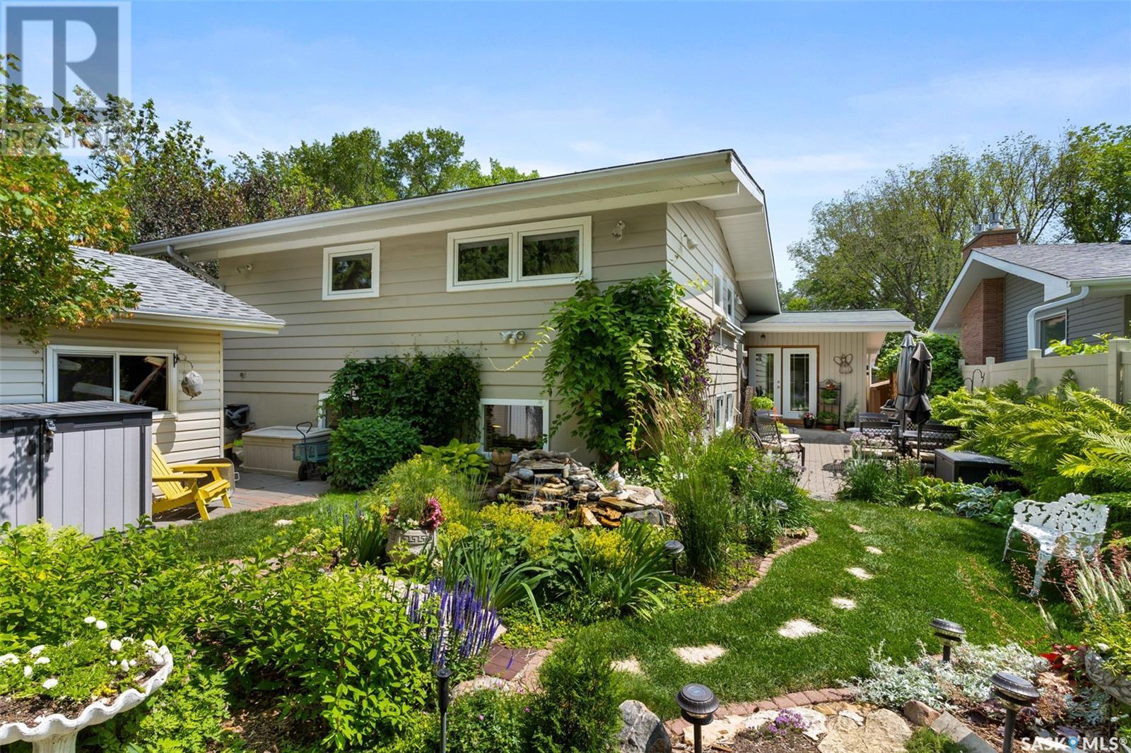 Wow! This gorgeous mid-century split-level awaits in Hillsdale on the prestigious Calder Crescent. This smoke free and pet free 2,309sqft home has maintained the key elements of its mid-century charm while also seeing extensive updates to major components of the home. One enters the home and is immediately impressed by the large tiled foyer accented by the rear of the stone fireplace. Entering the large living room, the size of the house is accentuated even further by the vaulted cedar ceilings anchored by a two-sided Roman brick fireplace with terrazzo hearth and floor-to-ceiling windows. The dining room provides ample space for most dining suites and conveniently adjoins the oak eat-in kitchen with updated countertops and stainless steel appliances. Off the kitchen is a spacious mud room with two entry doors providing access to the carport and the rear yard. Heading up the beautiful suspended staircase with open risers, you will find three large bedrooms, all updated with hardwood flooring and triple-pane windows. The upper main bathroom features double sinks, a jet tub/shower combo, and a surprising amount of hidden storage. On the 3rd level, you will find the laundry room with a stackable laundry set and stand-up shower, a convenient powder room, and a massive family room with large windows providing plenty of natural light. To top it off, the walls and ceiling of this room have been insulated, making it the perfect theatre space for movie night. The basement features a large rec-room, another 3/4 bathroom, utility room, storage room, cedar closet and workshop complete with 220V plug and another laundry hook-up. Equally as impressive as the inside of this home is the outdoor space. The mature corner lot has been meticulously manicured with trees, shrubs, and perennials. The private backyard has two excellent patios, a gorgeous pond and ample storage options in the Bike, Tool and Storage sheds as well as a large electrified workshop. (id:43042)