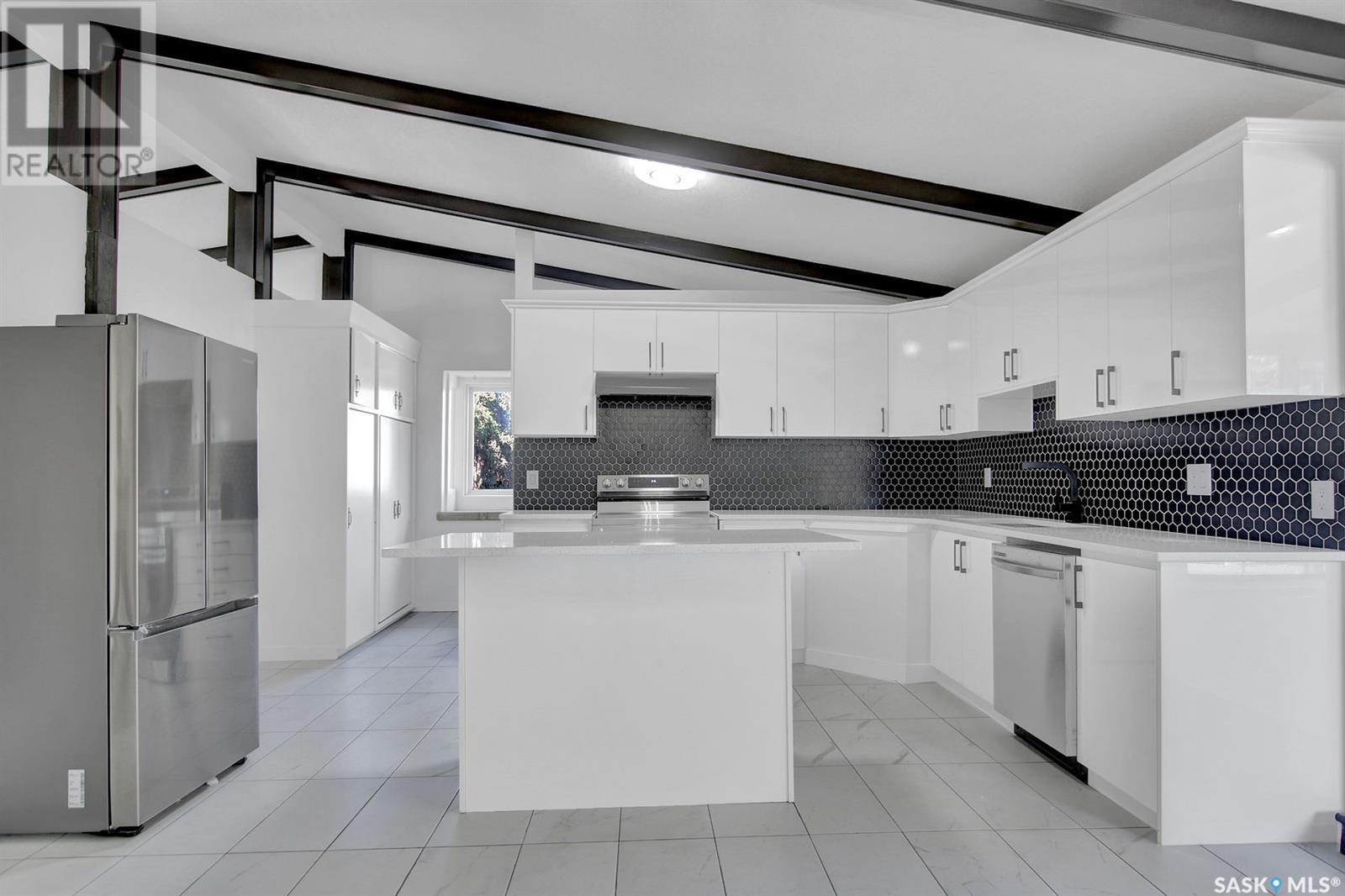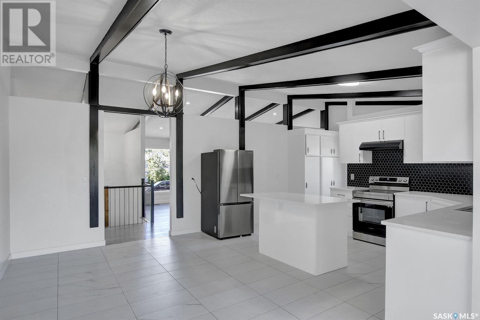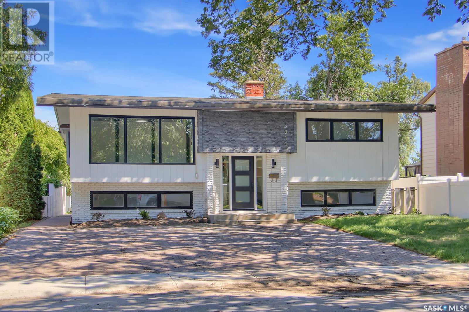 Welcome to 3911 Athol Street – A Refined Retreat in Parliament Place Nestled in the heart of the desirable and family-friendly Parliament Place neighborhood, this extensively renovated residence backs onto a tranquil creek and sits amid some of the city's most iconic mid-century homes. Boasting a perfect blend of modern luxury and timeless design, this expansive home is surrounded by an abundance of amenities while offering peaceful suburban charm. Step inside to discover soaring vaulted ceilings and a thoughtfully designed layout featuring five generously sized bedrooms and three fully upgraded bathrooms. At the heart of the home lies a stunning custom kitchen, complete with a large central island, brand-new appliances, and sleek finishes that will delight any culinary enthusiast. The main floor showcases two spacious living areas, bathed in natural light, and adorned with contemporary light fixtures and premium faucets throughout. The fully finished basement offers a versatile family room that includes an oversized, unused walk-in freezer, ideal for conversion into a bar, gym, or entertainment space tailored to your lifestyle. Outside, the meticulously landscaped backyard is a private oasis featuring a traditional stone pizza oven—perfect for entertaining. Recent upgrades include a new ABS sewer line, ensuring peace of mind for years to come. This exceptional property is a rare opportunity to own a beautifully modernized home in one of Regina’s most architecturally rich neighborhoods. (id:43042)