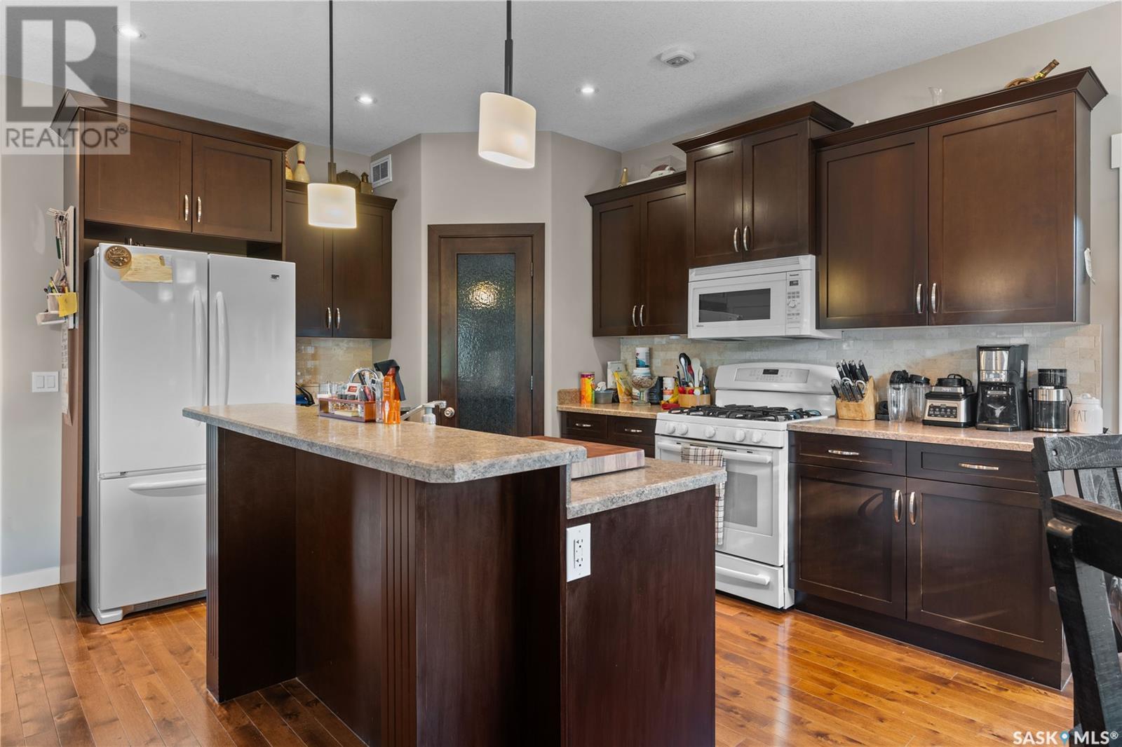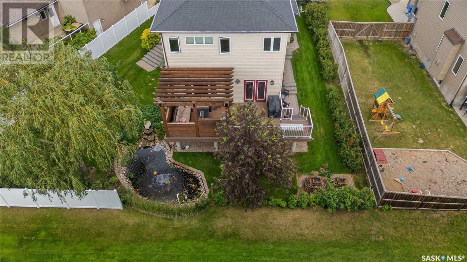 Enjoy the charm of small-town living in this beautifully laid out and well-maintained 1,686 sq ft two-storey home, ideally located in the friendly community of Pense. Just a short walk to the elementary school and local rink, and only 23 minutes to Regina’s south end, this home offers the perfect balance of peaceful living and city convenience. Step into a meticulously cared for backyard oasis — a gardener’s dream! This lush, private retreat is filled with Saskatoon berries, haskaps, strawberries, cherries, blueberries, grapes, and an apple tree, along with a tranquil waterfall and pond. The hardscaping features paving stone steps, driveway and walkways with integrated lighting, creating a magical ambiance after sunset. A stunning deck with a pergola offers the perfect space to relax or entertain. Mature trees, colourful perennials, shrubs, and a handy shed complete this impressive outdoor space. Inside, the home is bright and welcoming, with large windows that let in plenty of natural light. The main floor features an open-concept layout with a cozy gas fireplace in the living room, and a spacious kitchen with a corner pantry and four included appliances. This home has been meticulously maintained and offers a warm, inviting atmosphere throughout. Additional features include a high-efficient furnace and direct vent water heater in the basement and internet-connected smoke, heat, and water detectors offering peace of mind and modern safety. The basement is open for future development, ready for your personal touch. The 22’x23’ attached garage is fully insulated and features a sleek epoxy floor (seller doesn't park in there), built-in cabinetry, and storage racks—ideal for organized storage, hobbies, or a workshop. This thoughtfully designed and lovingly cared for home is a rare opportunity in a vibrant, close-knit community. Don’t miss your chance to make it yours! (id:43042)
