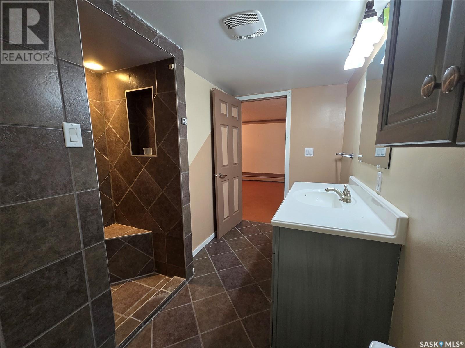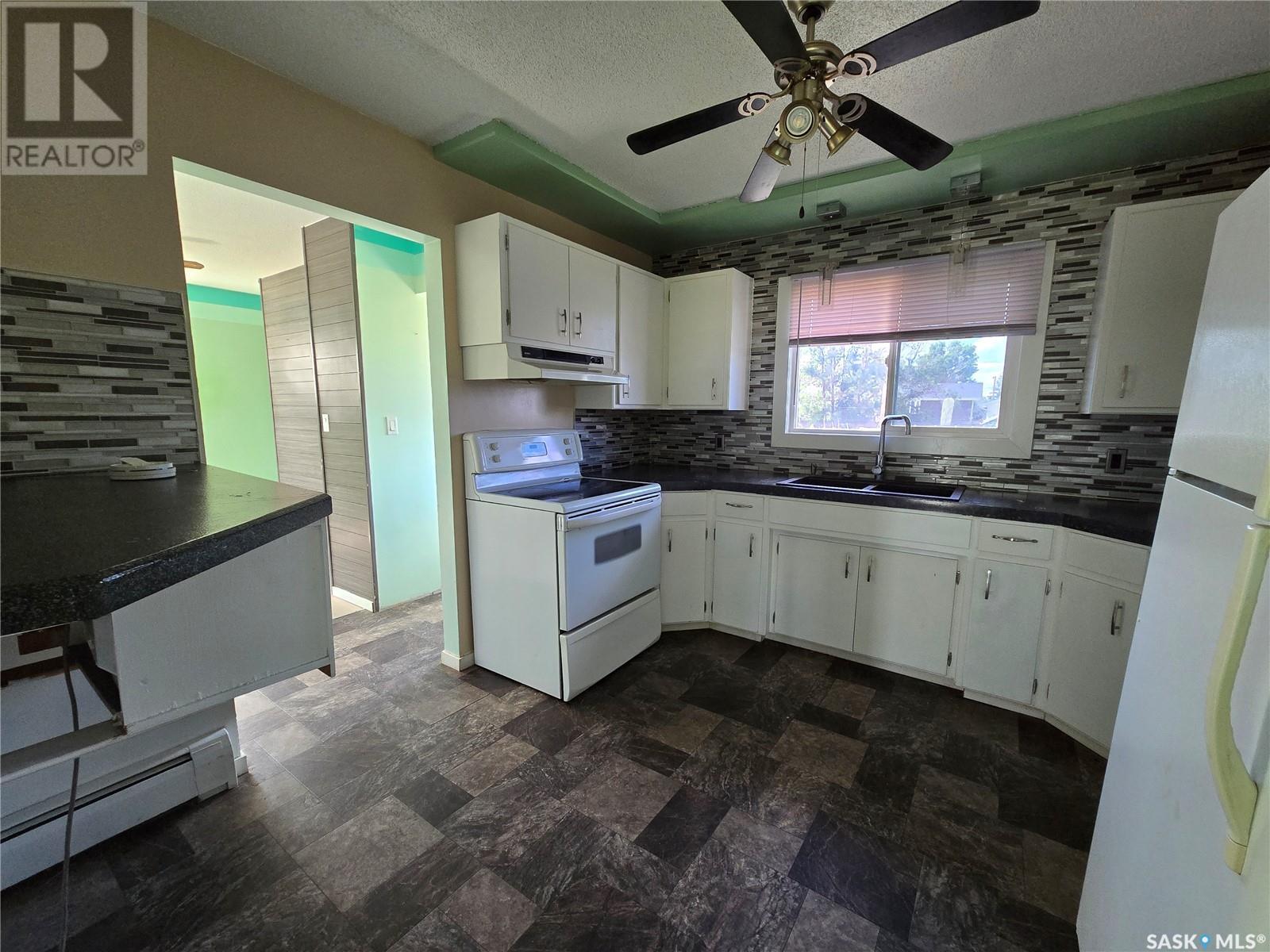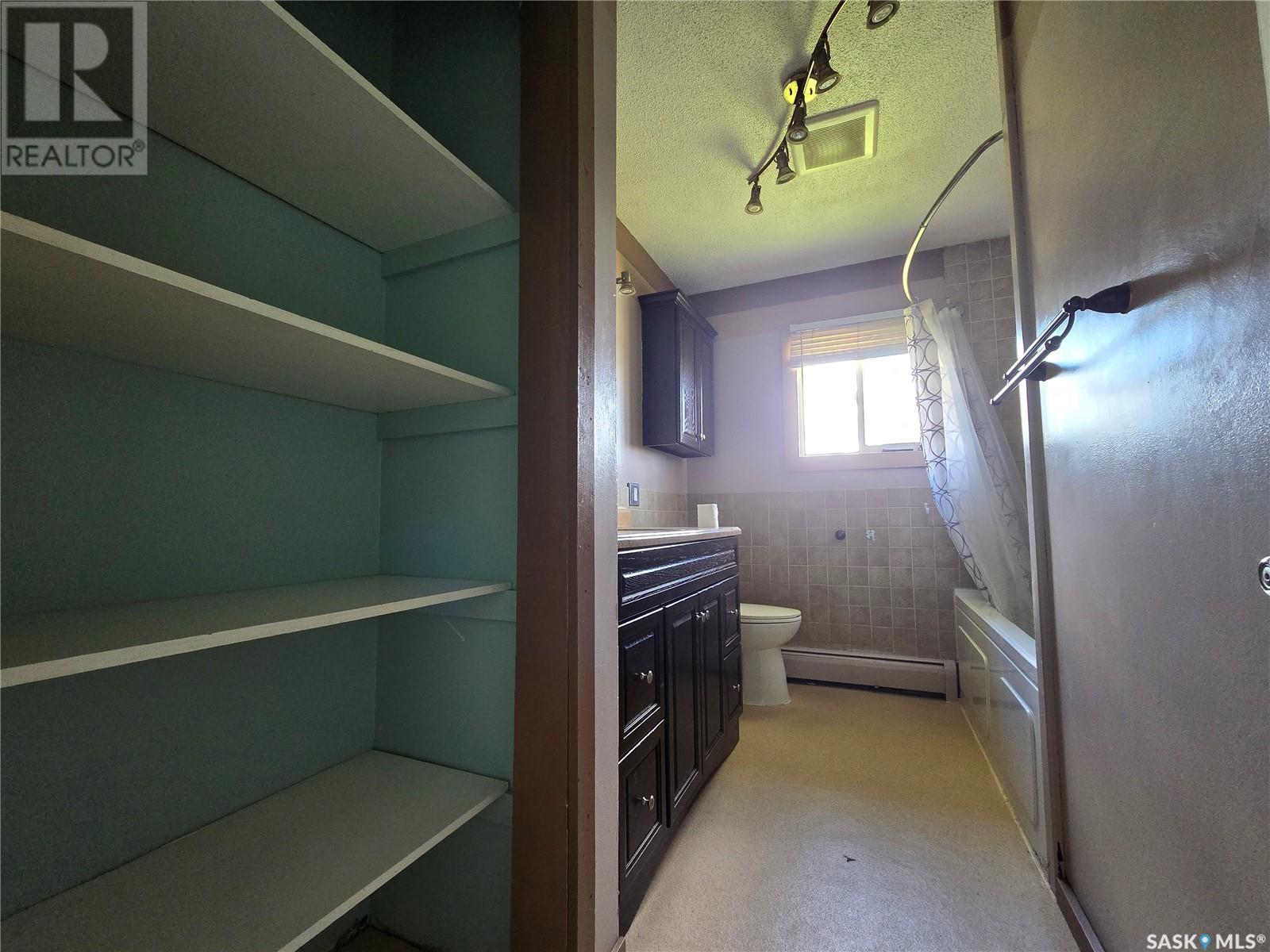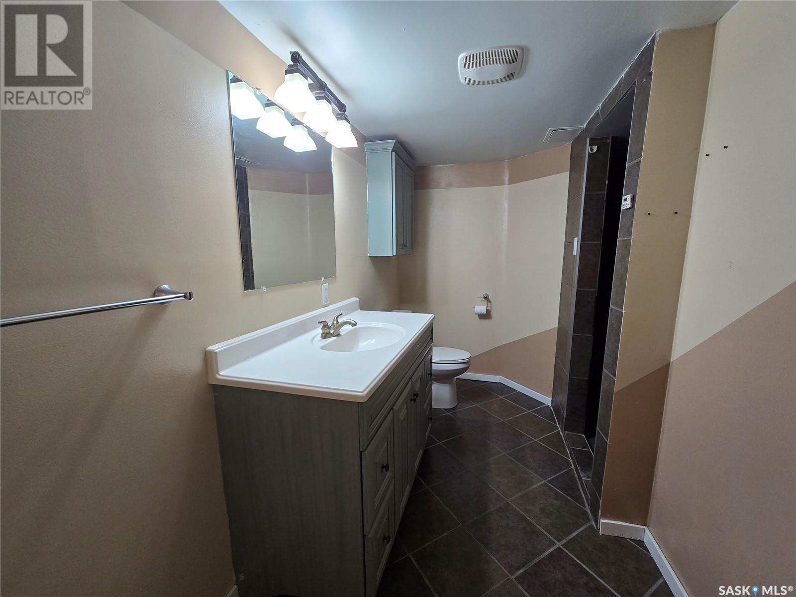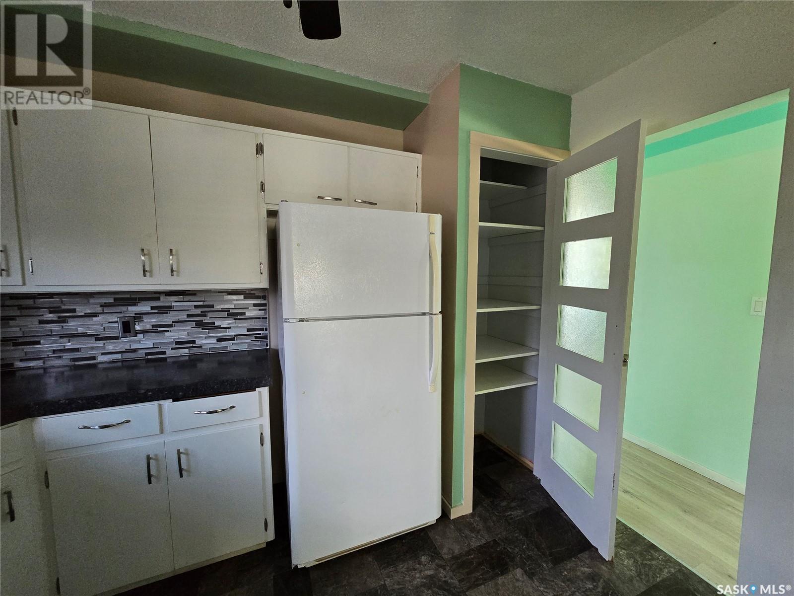 Great opportunity to own this spotless home in Stoughton, Sk. Bright and spacious living/dining combination, with easy care laminate flooring. The dining area has a great shelving area, tucked into one corner! The functional kitchen has been upgraded with newer flooring, tiled backsplash, newer countertops, and a separate pantry. Three large bedrooms and a four piece bathroom complete the main floor. As you head downstairs, you'll discover a huge family room, extra large spare bedroom, and a unique, tiled walk-in shower, in the three piece bath. There's a very spacious laundry/ utility room, as well as another large storage room, for seasonal items, or canning. Step outside, onto the wood deck in the back yard, to a private, fully fenced area, great for family time, a play area for the kids, or pets. There is also a single , detached garage, off the alley, plus extra parking. This very well maintained, solid home has hot water heat, with a new boiler in 2005, newer PVC windows, and some upgraded light fixtures. Shows extremely well! Make this home a "must see" on your list!! (id:43042)