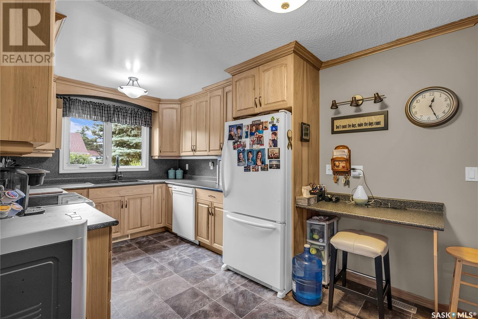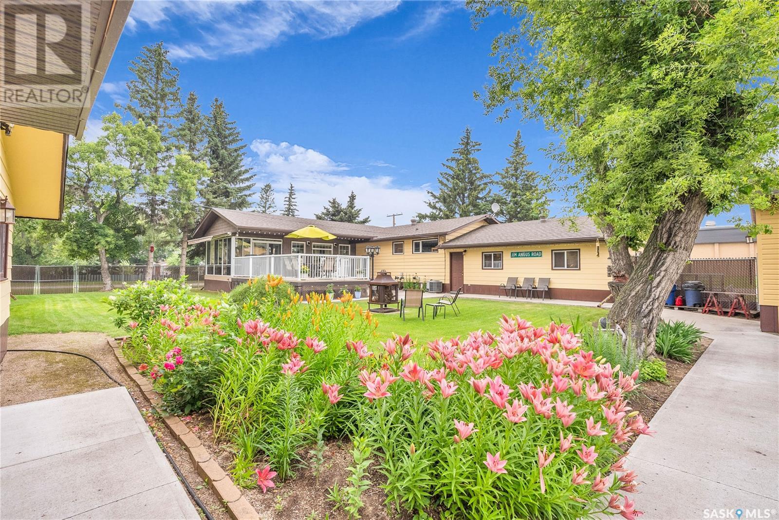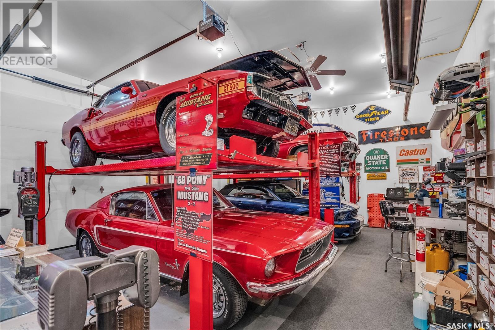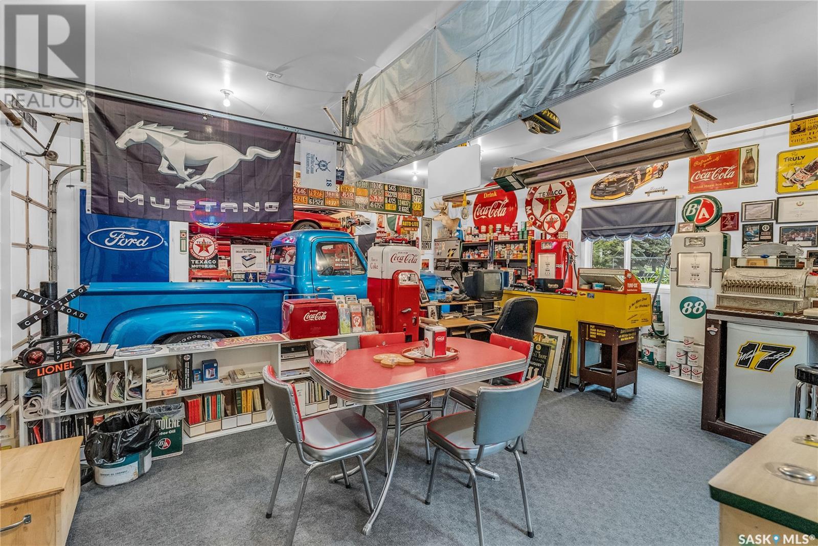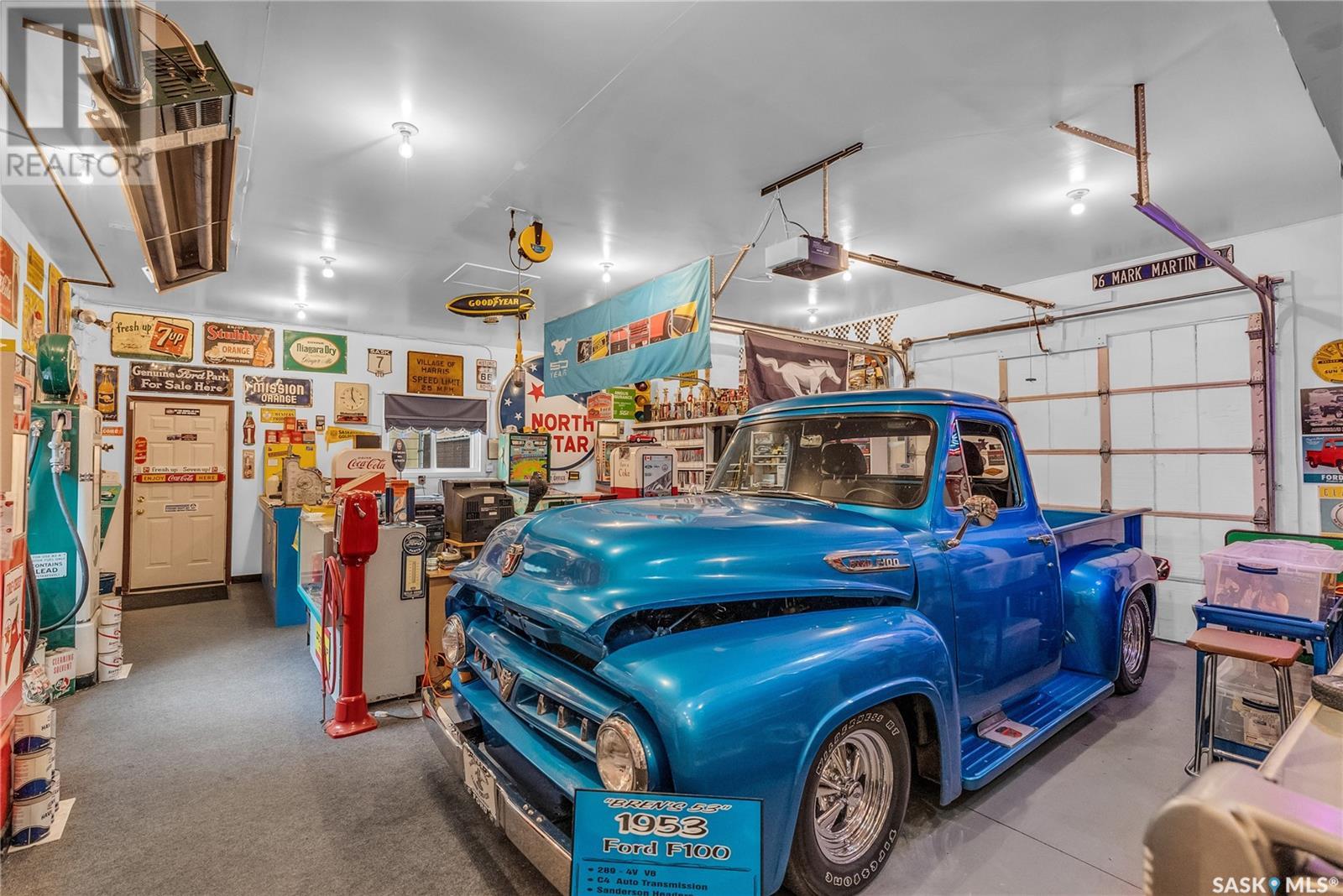 Calling all auto enthusiasts, mechanics, and car collectors! With a rare 170-ft frontage on over half an acre, there's more than enough space for vehicles, trailers, and future development. Garage space for up to 10 vehicles, 9 heated, this is a dream setup for car enthusiasts or mechanics! Whether you're looking to wrench, restore, or showcase your collection, this setup delivers. It features a heated attached 2-car garage (24x26), a heated detached garage/workshop (24x56) that can fit up to 7 vehicles, and a third detached 16x24 garage with an attached garden shed for added storage. The workshop has room for 2 hoists, hobby space, and more! Built in 1965, this home has seen substantial updates over the years, including a spacious addition off the kitchen with a gas fireplace, an enclosed sunroom, and a 350 sq ft back deck-all added in 2010. The main level features a cozy front living room with a gas fireplace and large windows, plus an additional sitting/dining area off the kitchen with vaulted ceilings, garden doors, and abundant natural light-perfect for hosting or relaxing. There are two bedrooms on the main floor, including a primary with an updated 3-piece bath. A second full bathroom and a spacious laundry room complete the main level. The finished basement offers a comfortable family room (new flooring, baseboards, paint), two bedrooms, an office, and another full bath. The expansive backyard is beautifully landscaped, fully fenced and includes a firepit, play structure, garden area, and perennials-plus a well and hydrant for outdoor watering. Upgrades:new 30 yr shingles(222) and additional attic insulation, triple glazed windows(2010), on-demand water heater(2025), and medium efficiency furnace/AC(2008). Located across from the school in Harris, this home has small-town charm with big-time garage space-just a short drive to Rosetown, Delisle, and the Nutrien mines and only 40 minutes to Saskatoon. **collectibles in garage are not for sale and are removed. (id:43042)