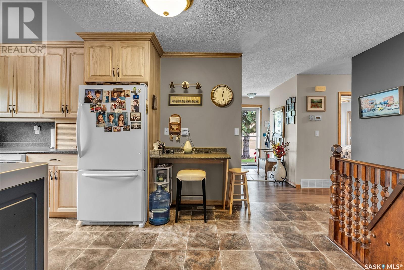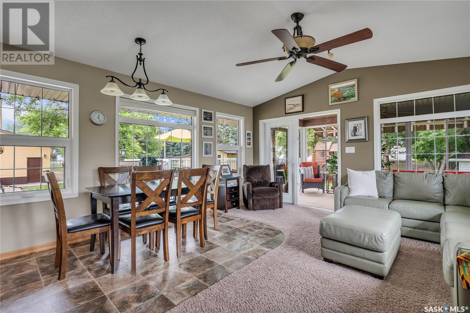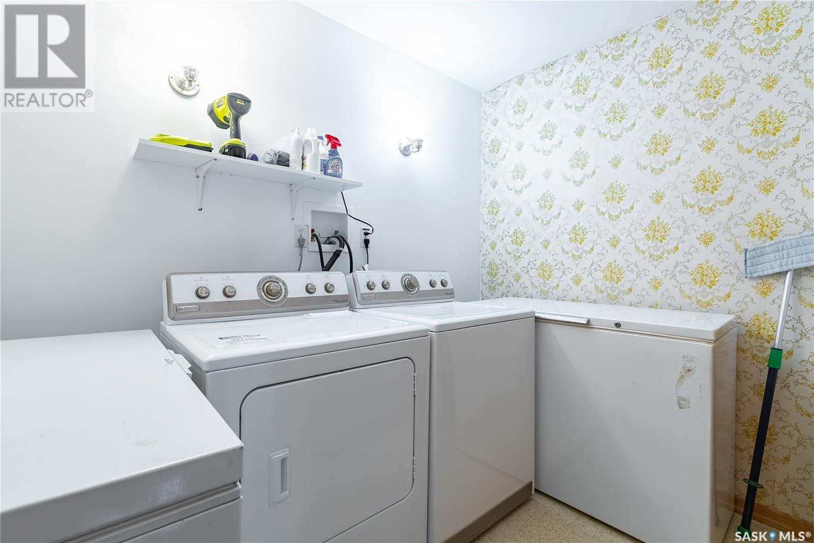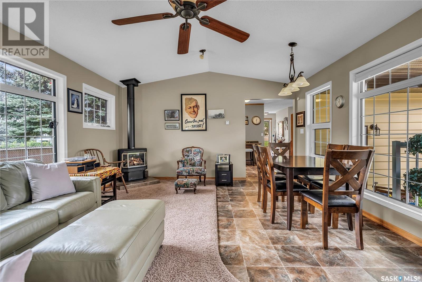 Calling all auto enthusiasts, mechanics, and car collectors! With a rare 170-ft frontage on over half an acre, there's more than enough space for vehicles, trailers, and future development. Garage space for up to 10 vehicles, 9 heated, this is a dream setup for car enthusiasts or mechanics! Whether you're looking to wrench, restore, or showcase your collection, this setup delivers. It features a heated attached 2-car garage (24x26), a heated detached garage/workshop (24x56) that can fit up to 7 vehicles, and a third detached 16x24 garage with an attached garden shed for added storage. The workshop has room for 2 hoists, hobby space, and more! Built in 1965, this home has seen substantial updates over the years, including a spacious addition off the kitchen with a gas fireplace, an enclosed sunroom, and a 350 sq ft back deck-all added in 2010. The main level features a cozy front living room with a gas fireplace and large windows, plus an additional sitting/dining area off the kitchen with vaulted ceilings, garden doors, and abundant natural light-perfect for hosting or relaxing. There are two bedrooms on the main floor, including a primary with an updated 3-piece bath. A second full bathroom and a spacious laundry room complete the main level. The finished basement offers a comfortable family room (new flooring, baseboards, paint), two bedrooms, an office, and another full bath. The expansive backyard is beautifully landscaped, fully fenced and includes a firepit, play structure, garden area, and perennials-plus a well and hydrant for outdoor watering. Upgrades:new 30 yr shingles(222) and additional attic insulation, triple glazed windows(2010), on-demand water heater(2025), and medium efficiency furnace/AC(2008). Located across from the school in Harris, this home has small-town charm with big-time garage space-just a short drive to Rosetown, Delisle, and the Nutrien mines and only 40 minutes to Saskatoon. **collectibles in garage are not for sale and are removed. (id:43042)