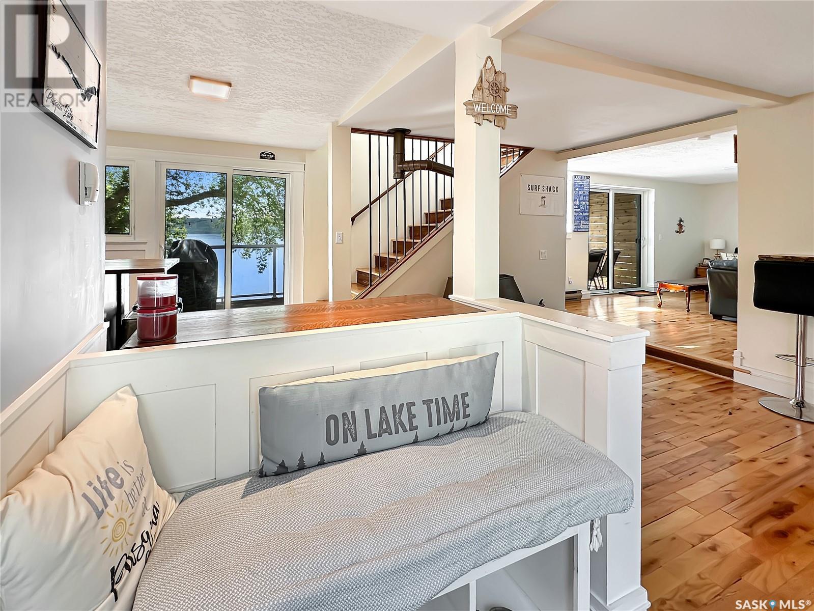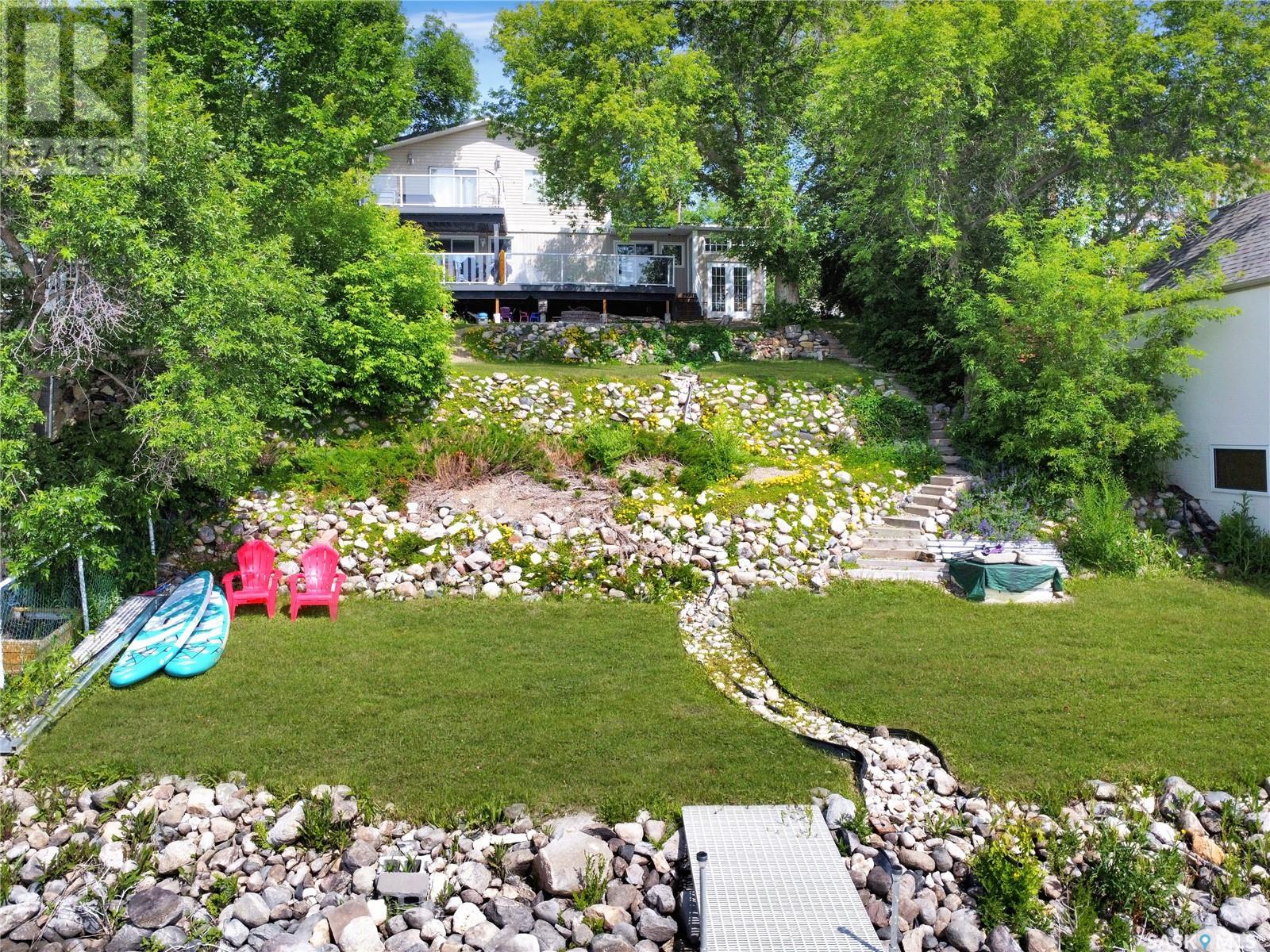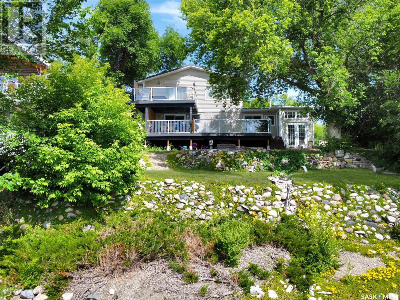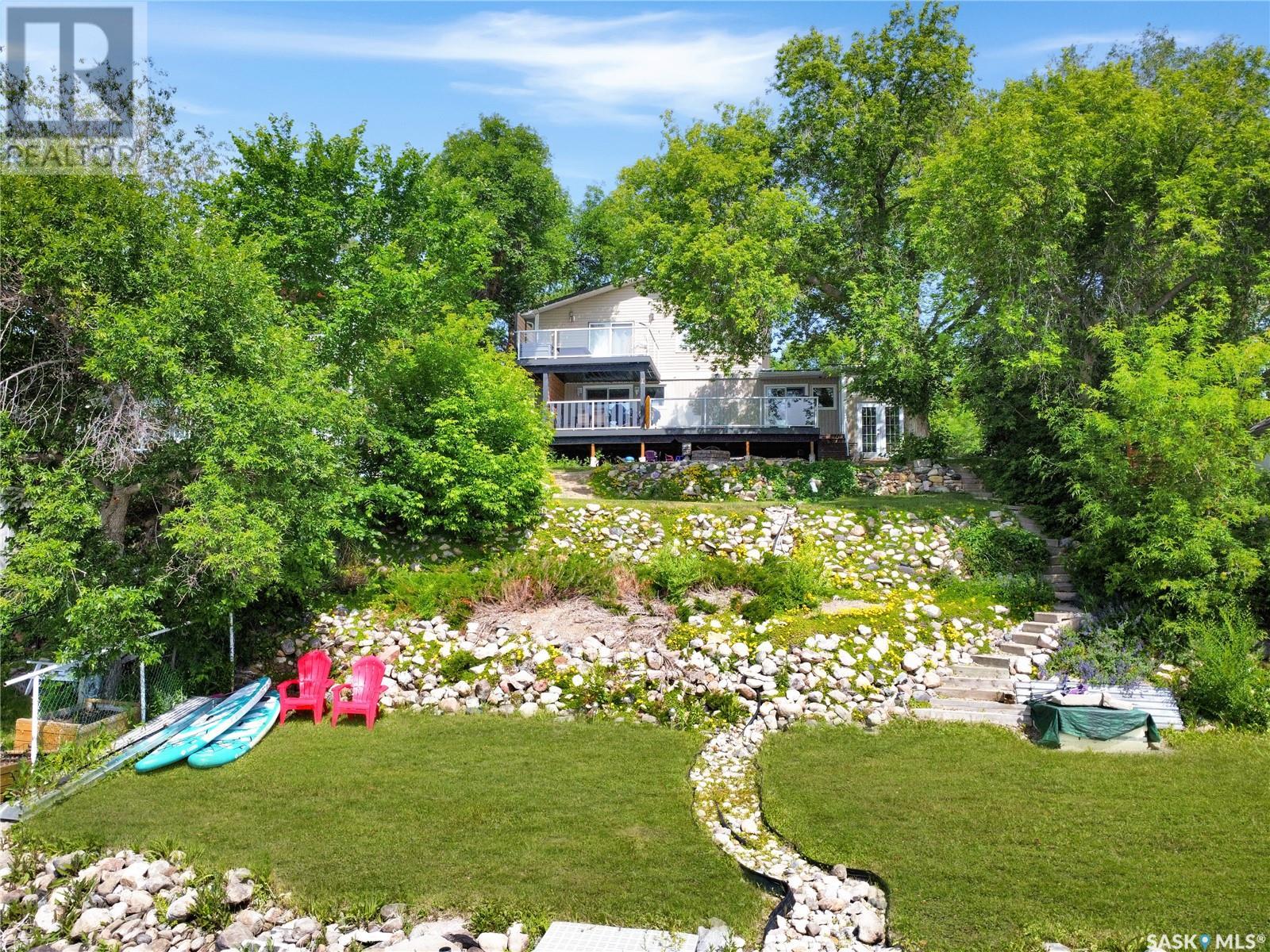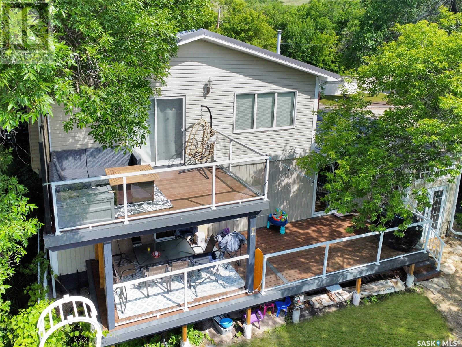 This year-round lakefront home offers 50 feet of shoreline on scenic Pasqua Lake, with 1,831 sq. ft. of well-planned living space across two levels. Inside, you'll find two spacious bedrooms—each with its own private ensuite. The primary bedroom goes a step further with a 15' x 11' ensuite/dressing area that offers a touch of luxury and privacy. The modern kitchen is built for gatherings, featuring a strikingly large island and updated finishes. The open layout flows onto two outdoor spaces—a main-level deck and a second-story balcony—both redone with low-maintenance decking to maximize your time enjoying the view, not maintaining it. The single attached garage provides convenience, while the beautifully treed yard with established perennials adds to the property’s charm and curb appeal. Downstairs, the basement hosts the mechanical systems, including in-floor a boiler system, and a tidy storage area. Please note: the dock and boat lift are not included in the sale. For your private tour, please reach out to your favorite local agent. (id:43042)